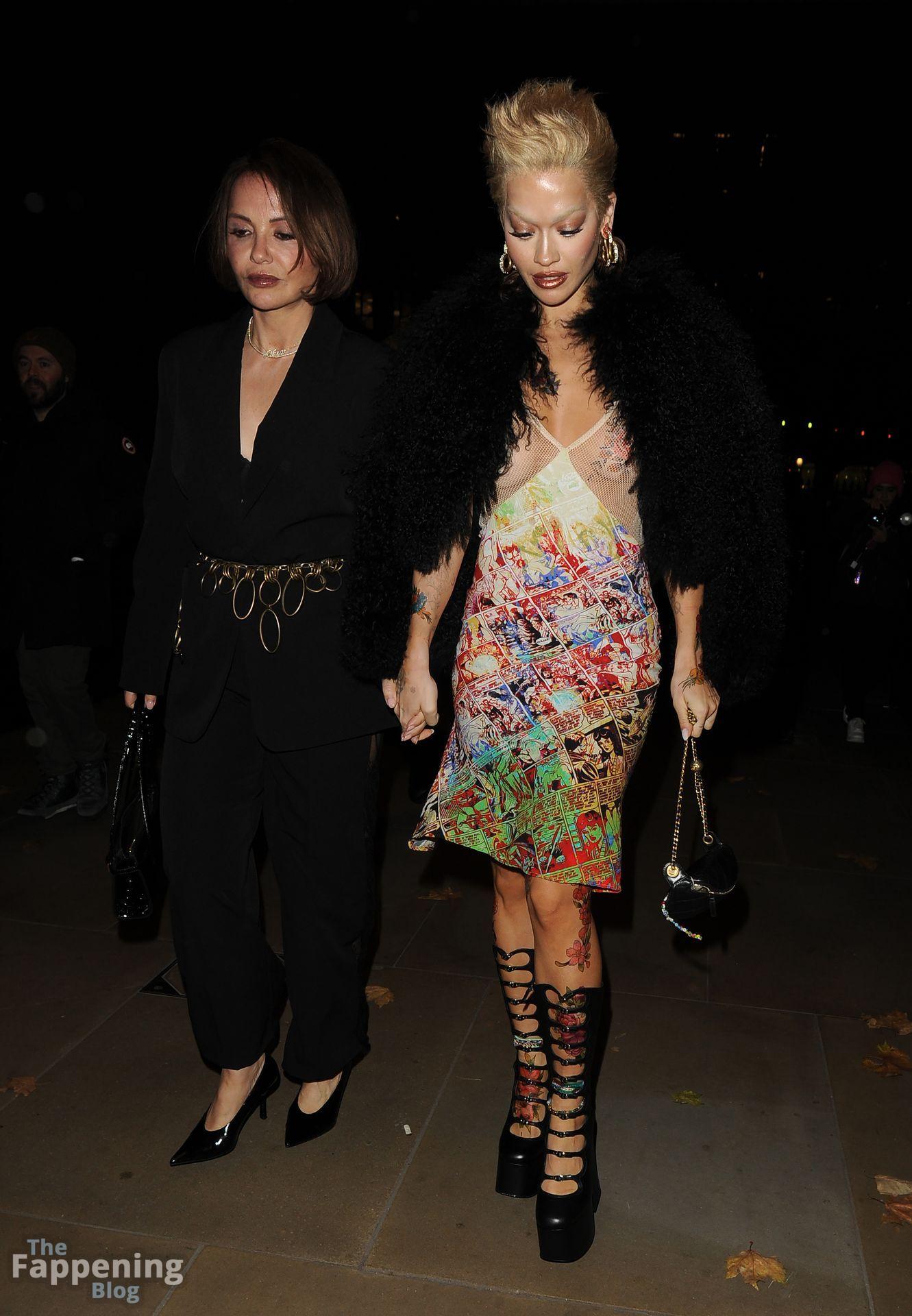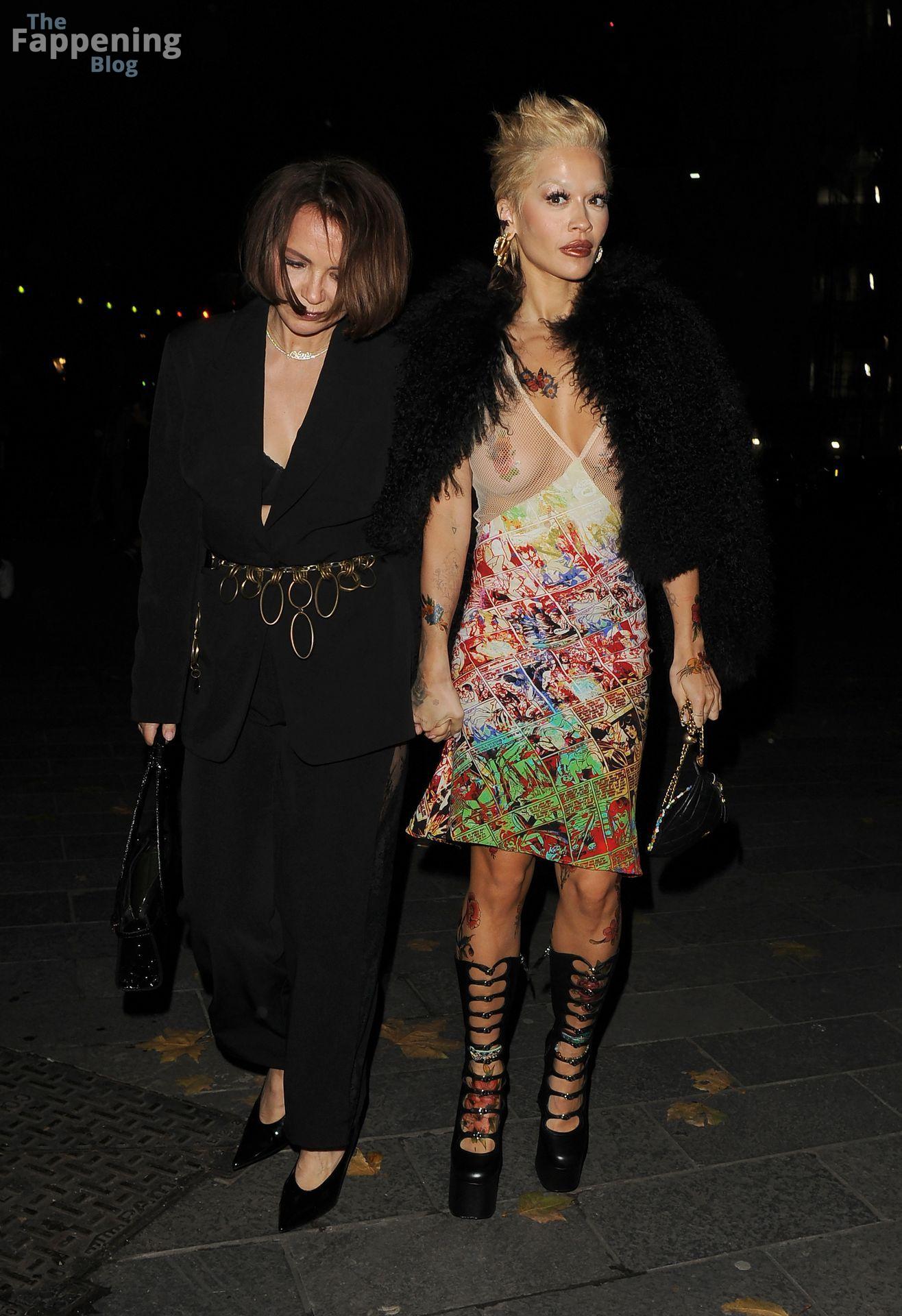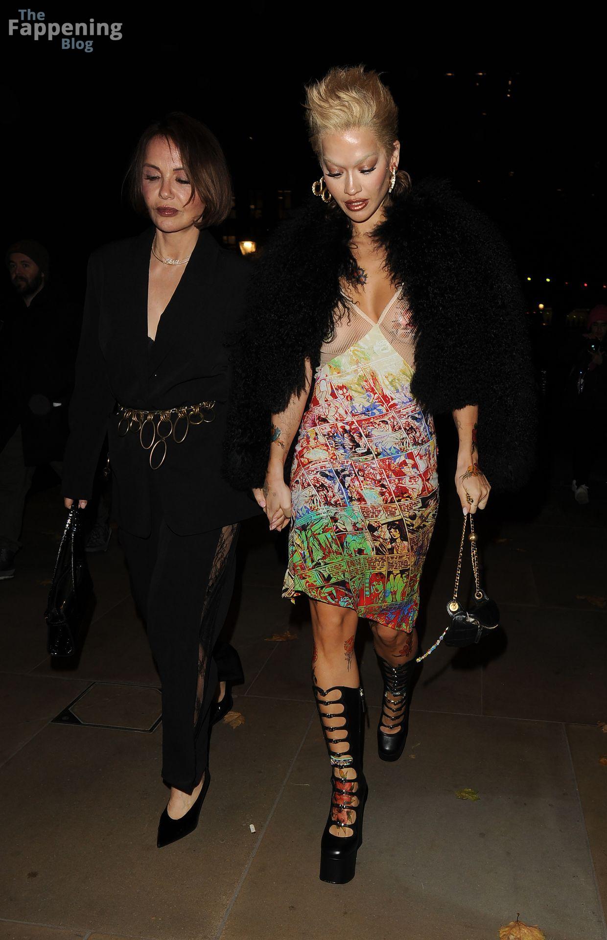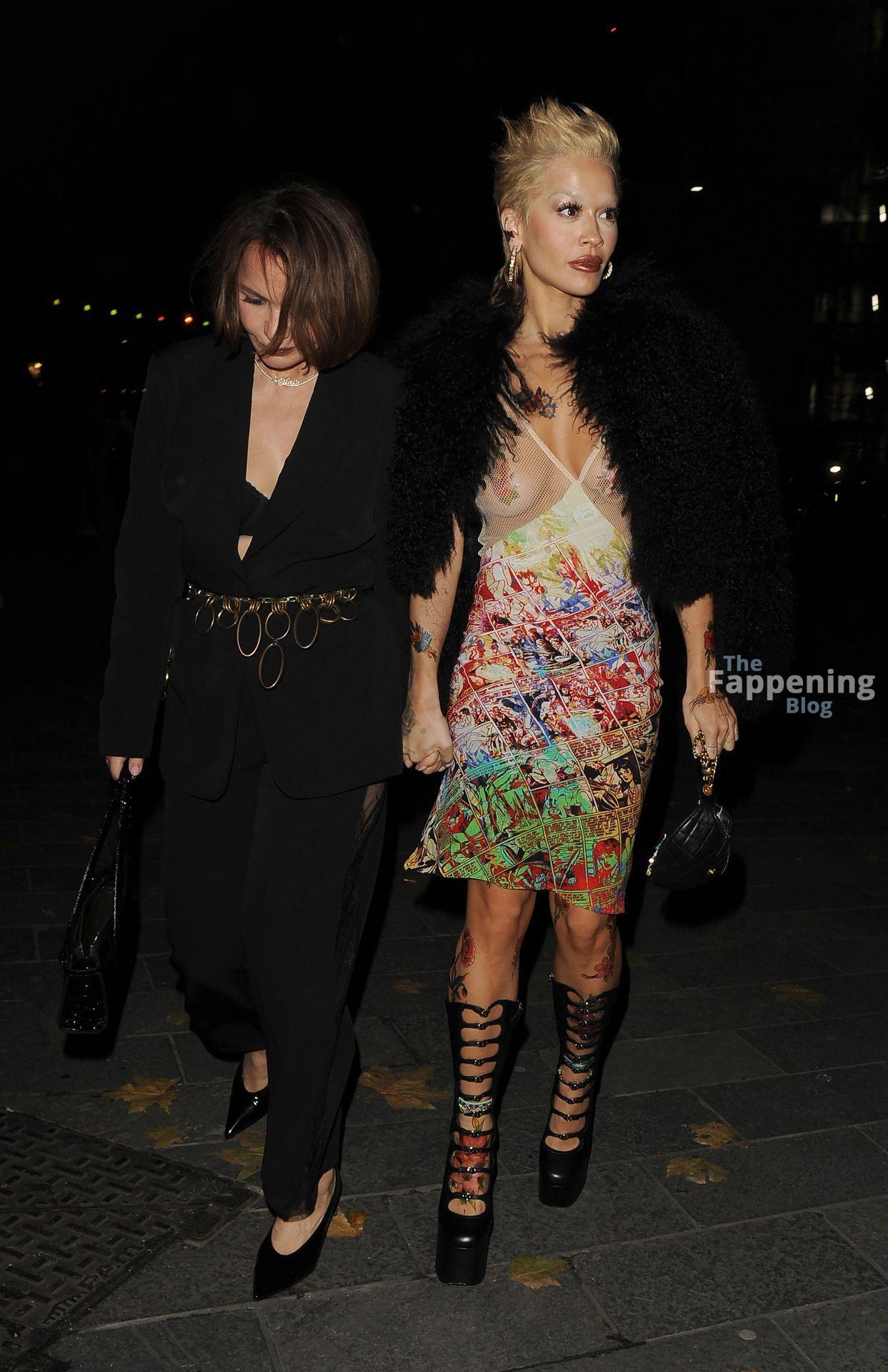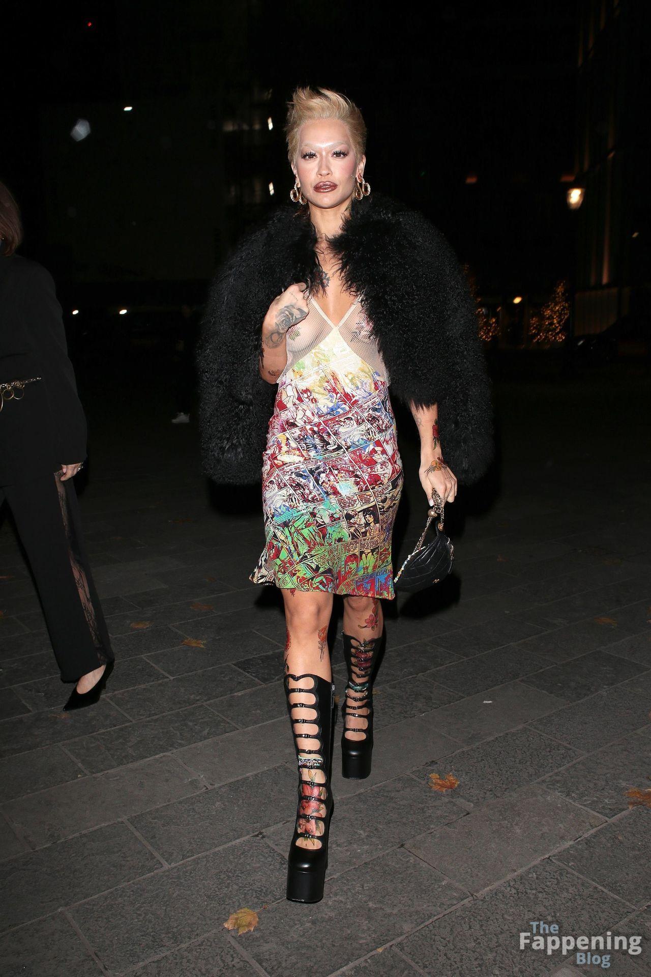 Rita Ora llama la atención con un vestido completamente transparente que deja ver su pecho desnudo en la afterparty de los British Fashion Awards en The MAINE Mayfair Restaurant & Bar.