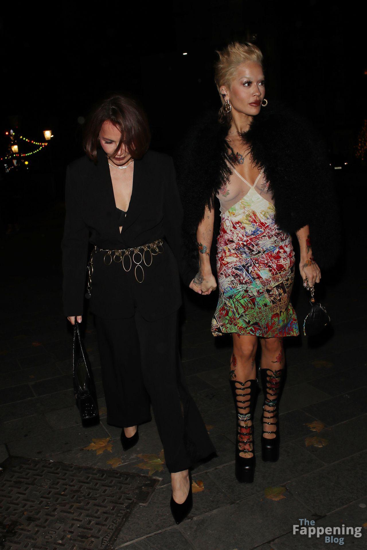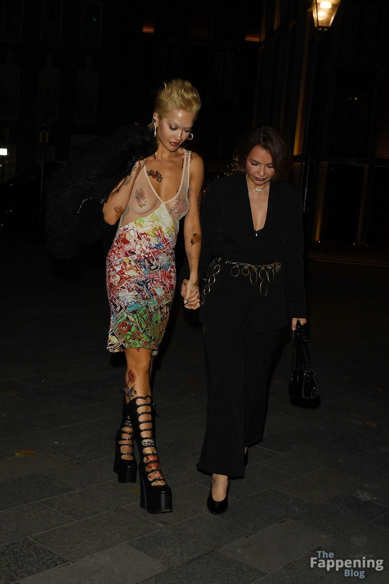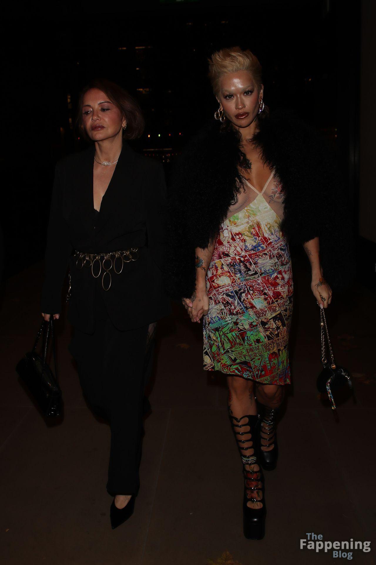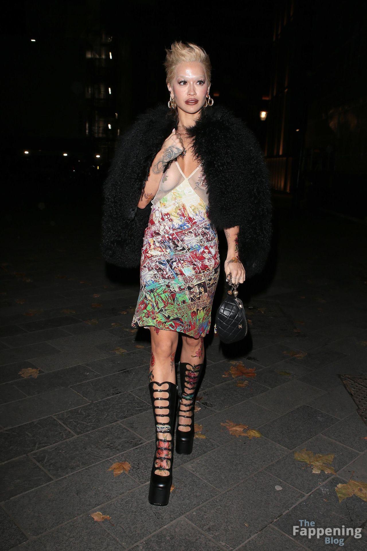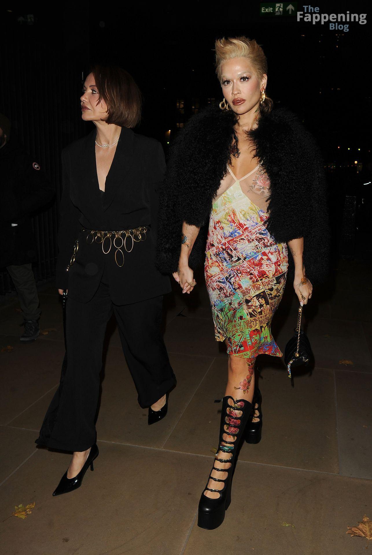 Rita Ora llama la atención con un vestido completamente transparente que deja ver su pecho desnudo en la afterparty de los British Fashion Awards en The MAINE Mayfair Restaurant & Bar.