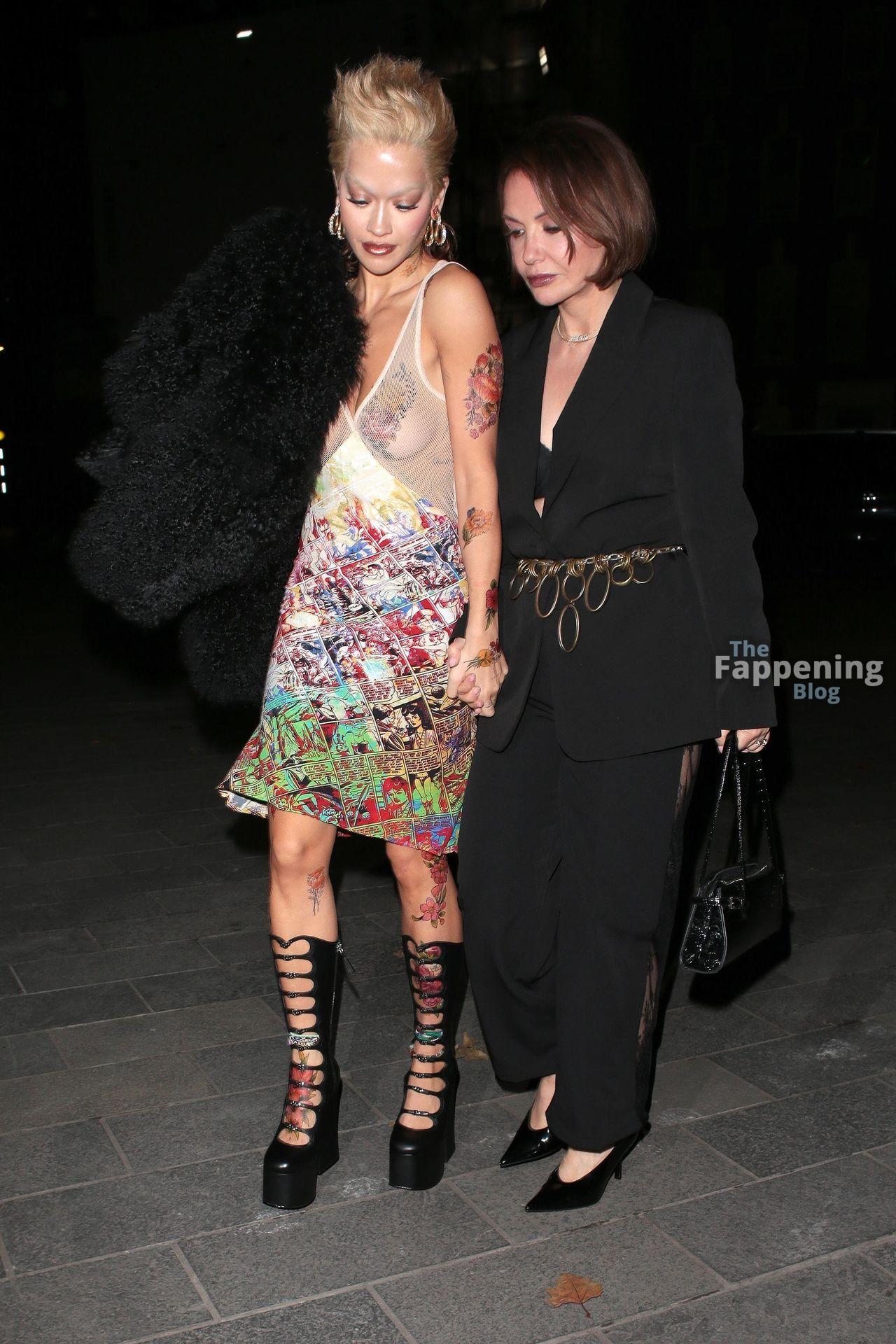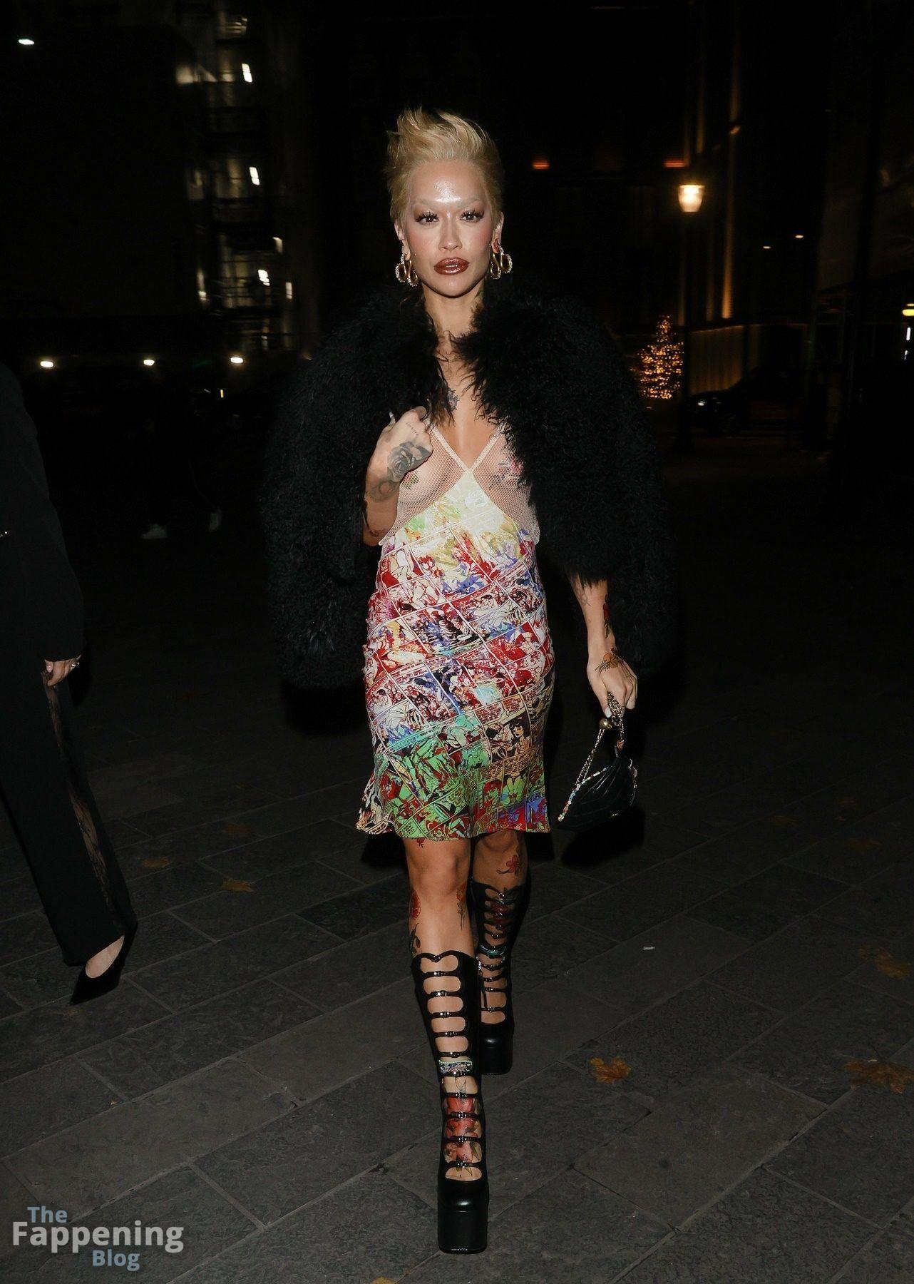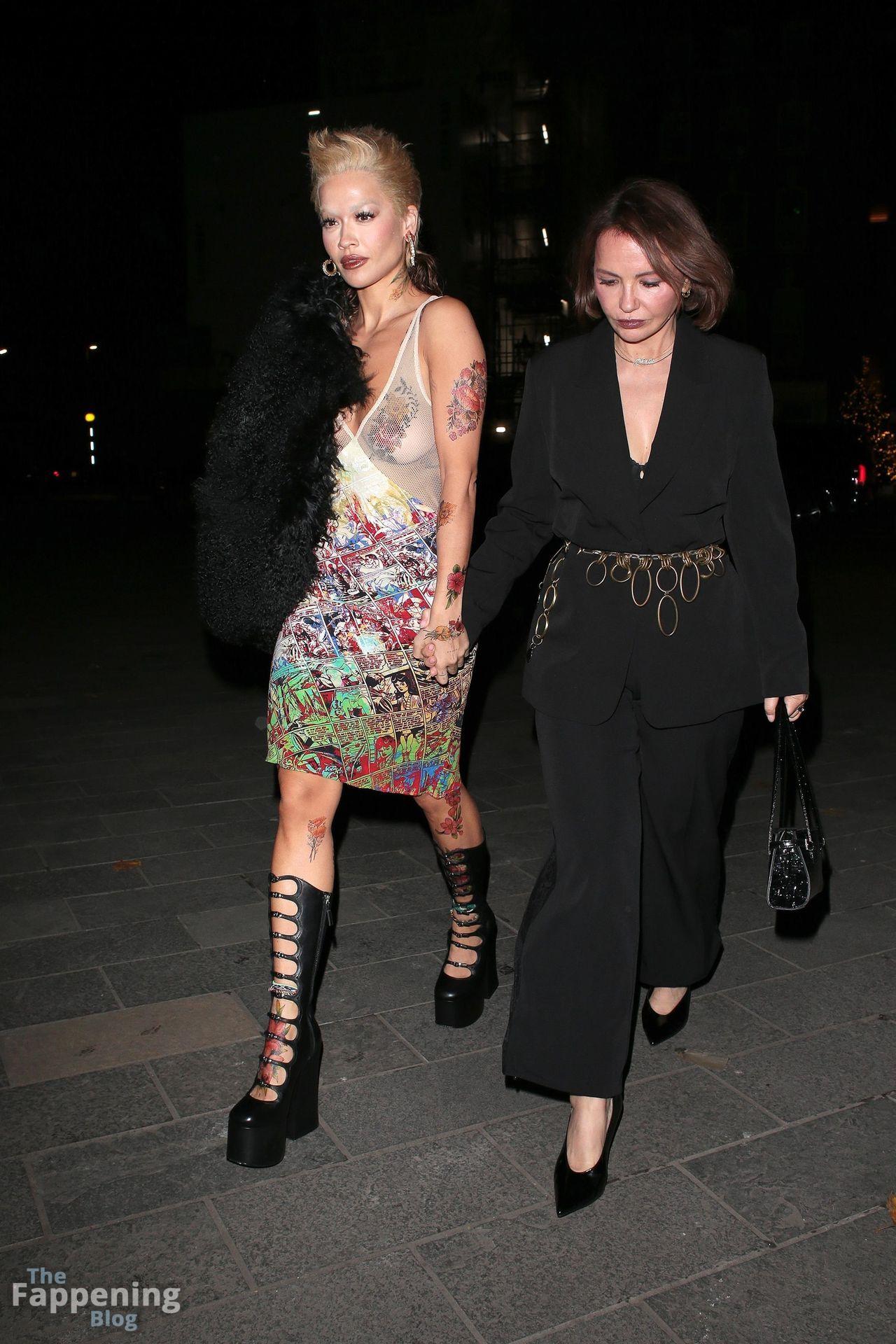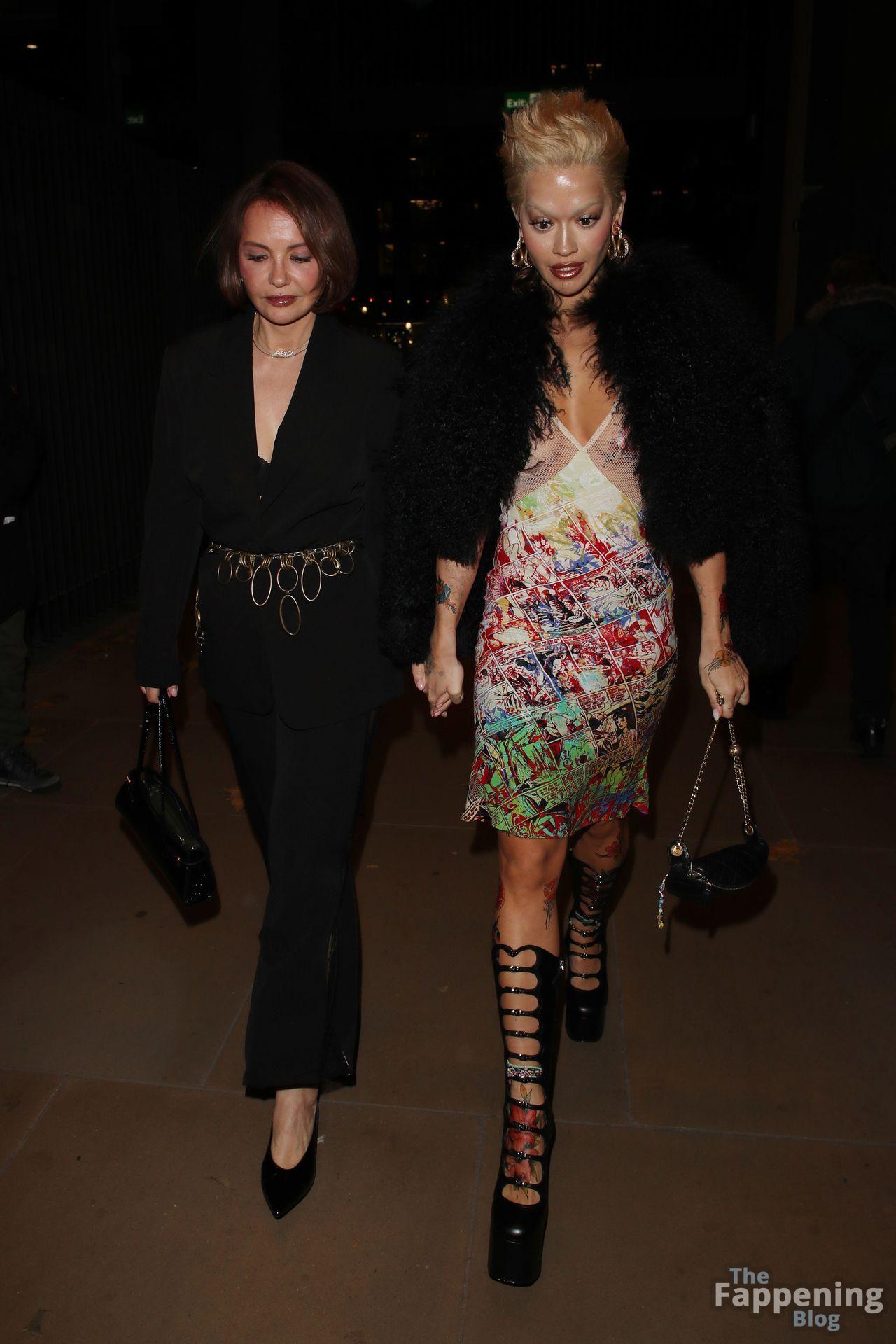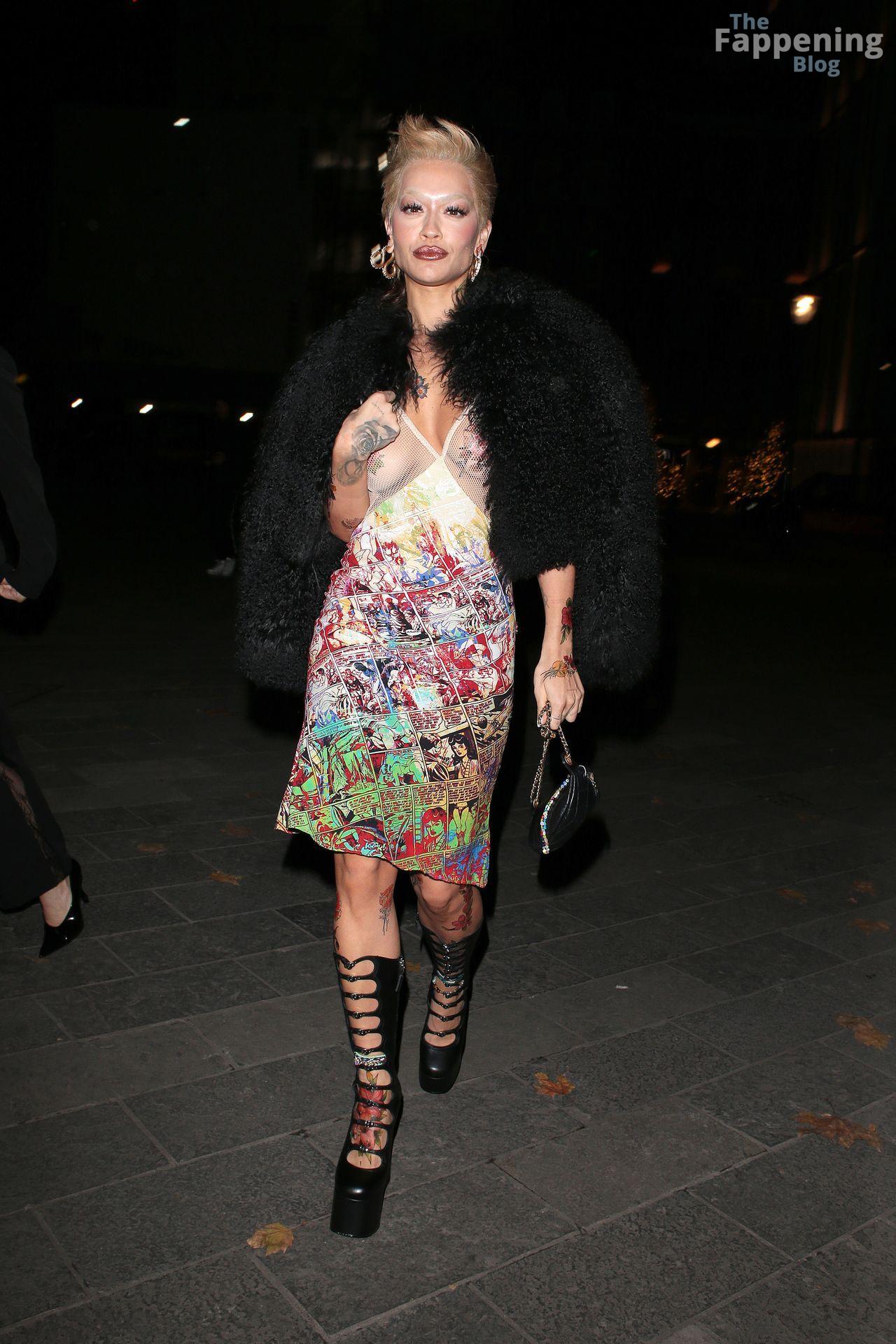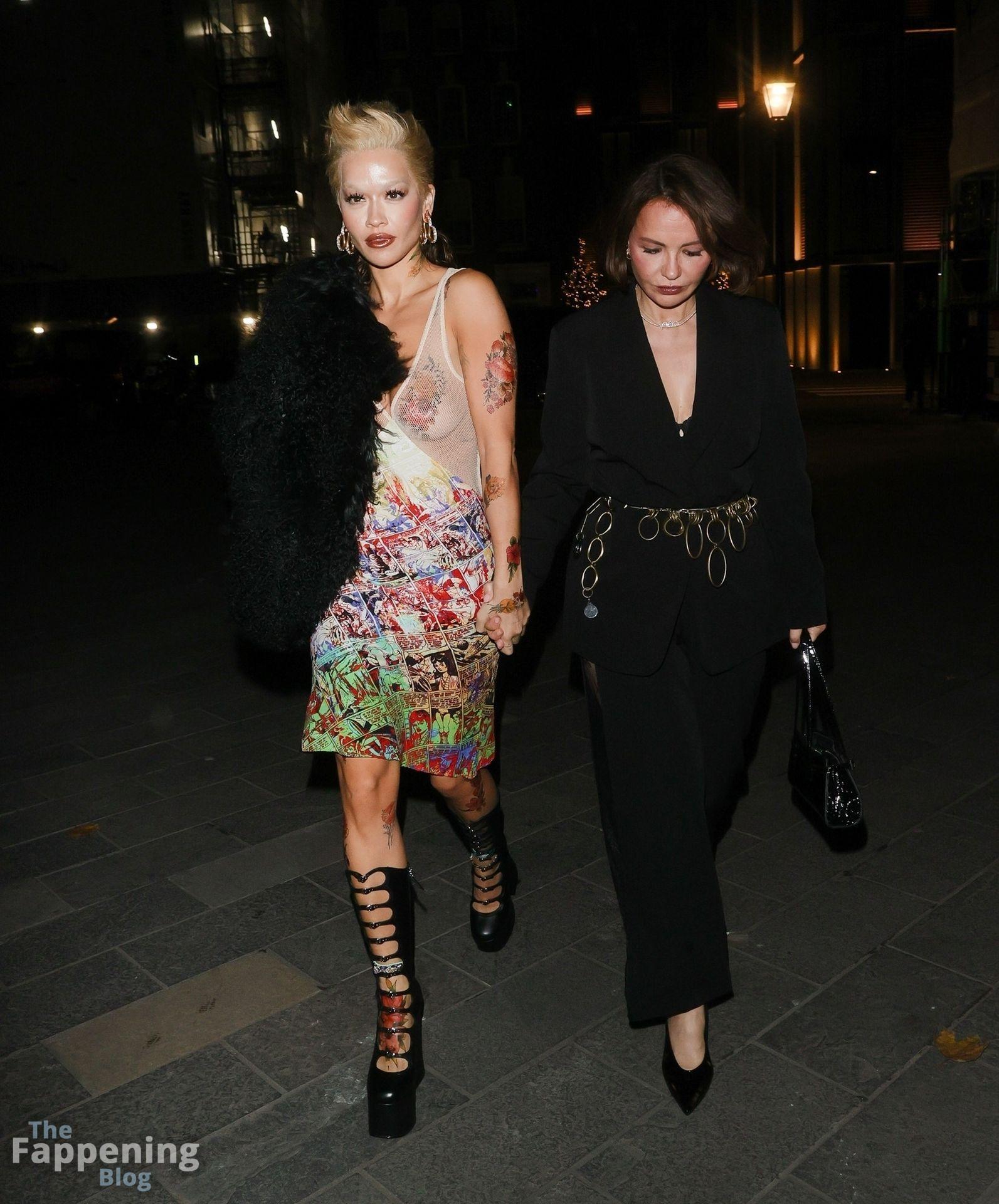 Rita Ora llama la atención con un vestido completamente transparente que deja ver su pecho desnudo en la afterparty de los British Fashion Awards en The MAINE Mayfair Restaurant & Bar.