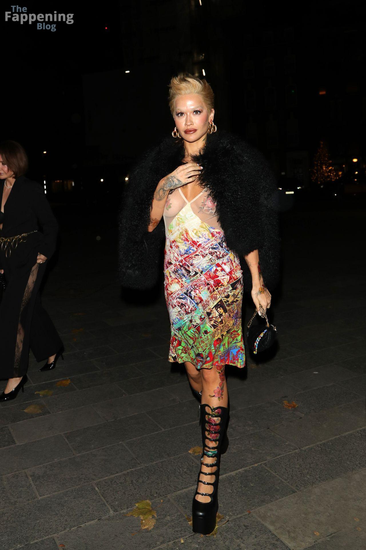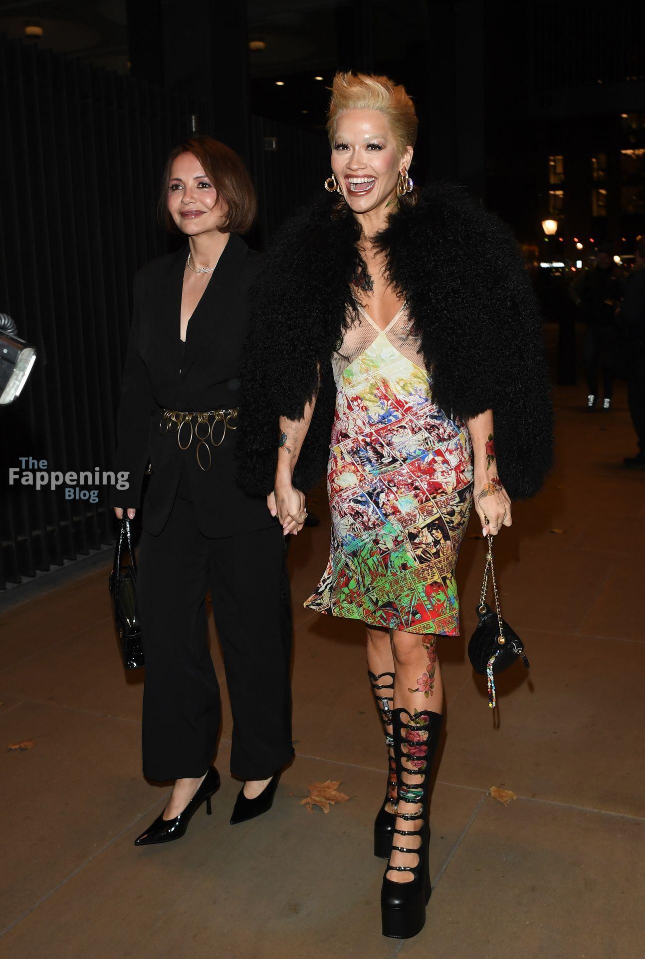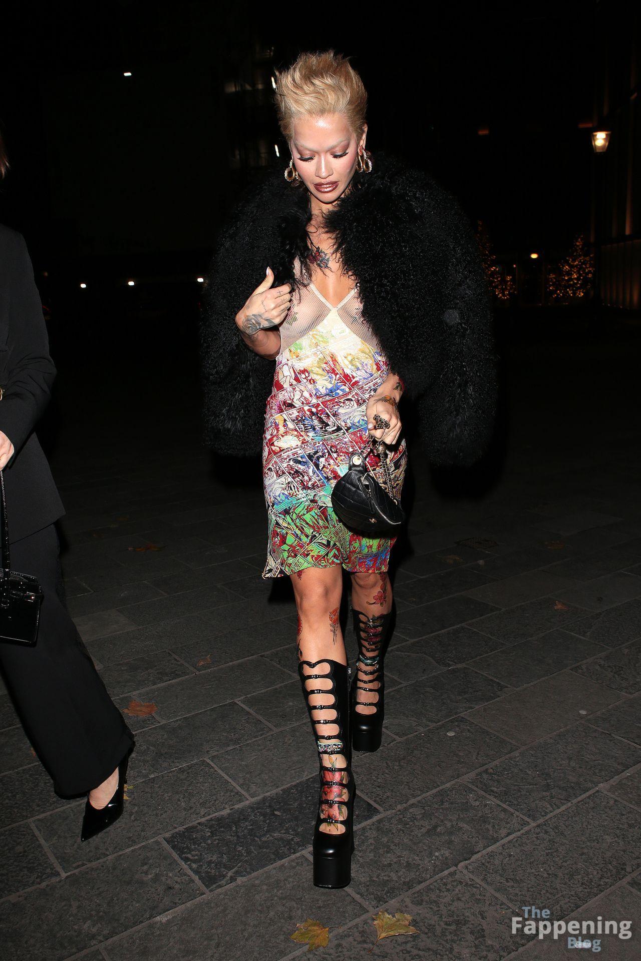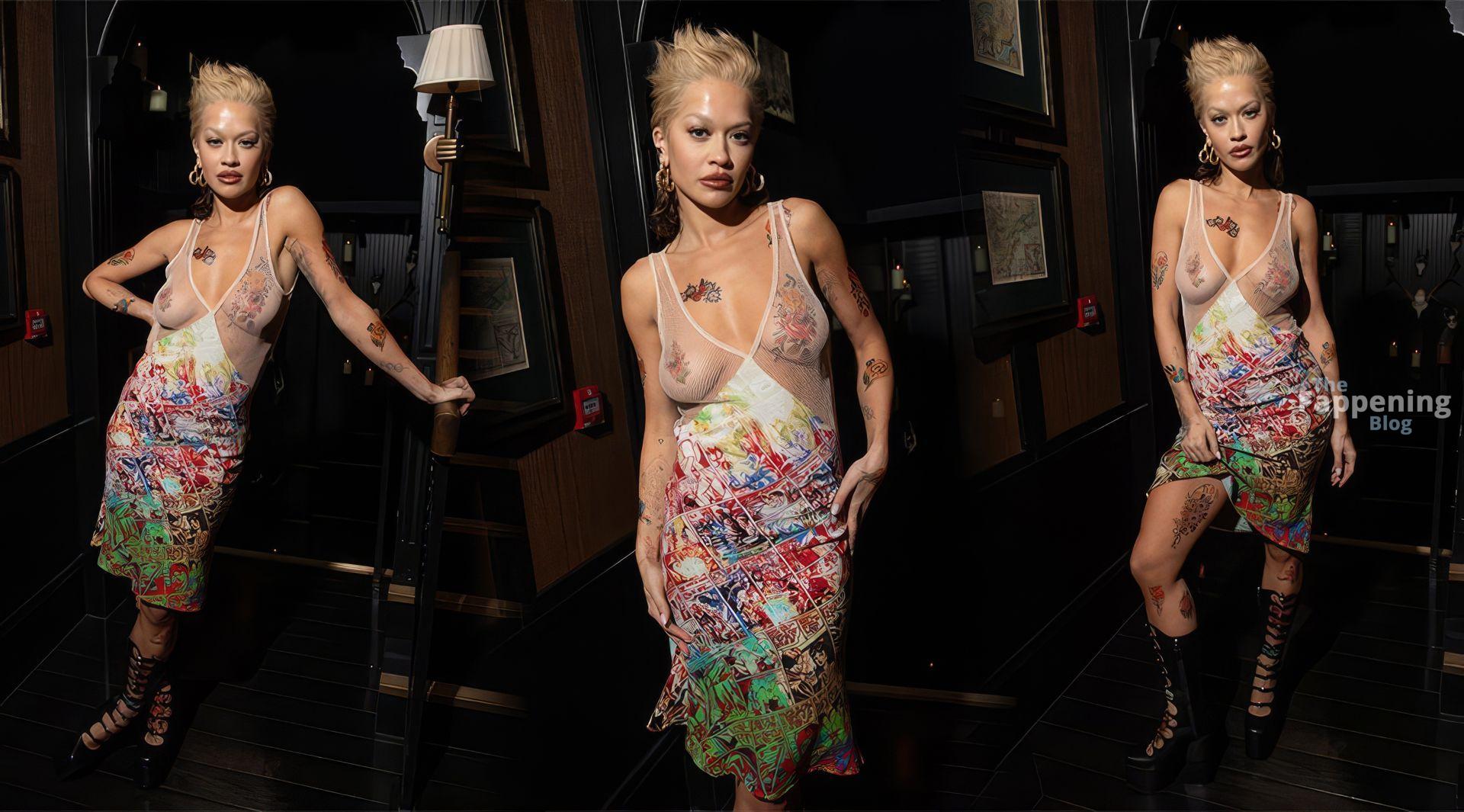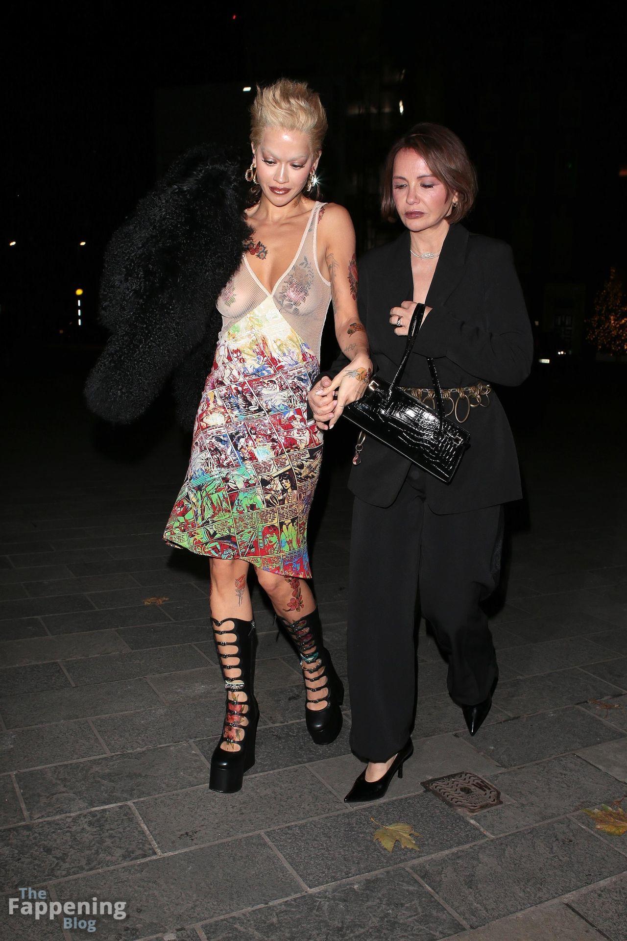Rita Ora llama la atención con un vestido completamente transparente que deja ver su pecho desnudo en la afterparty de los British Fashion Awards en The MAINE Mayfair Restaurant & Bar.