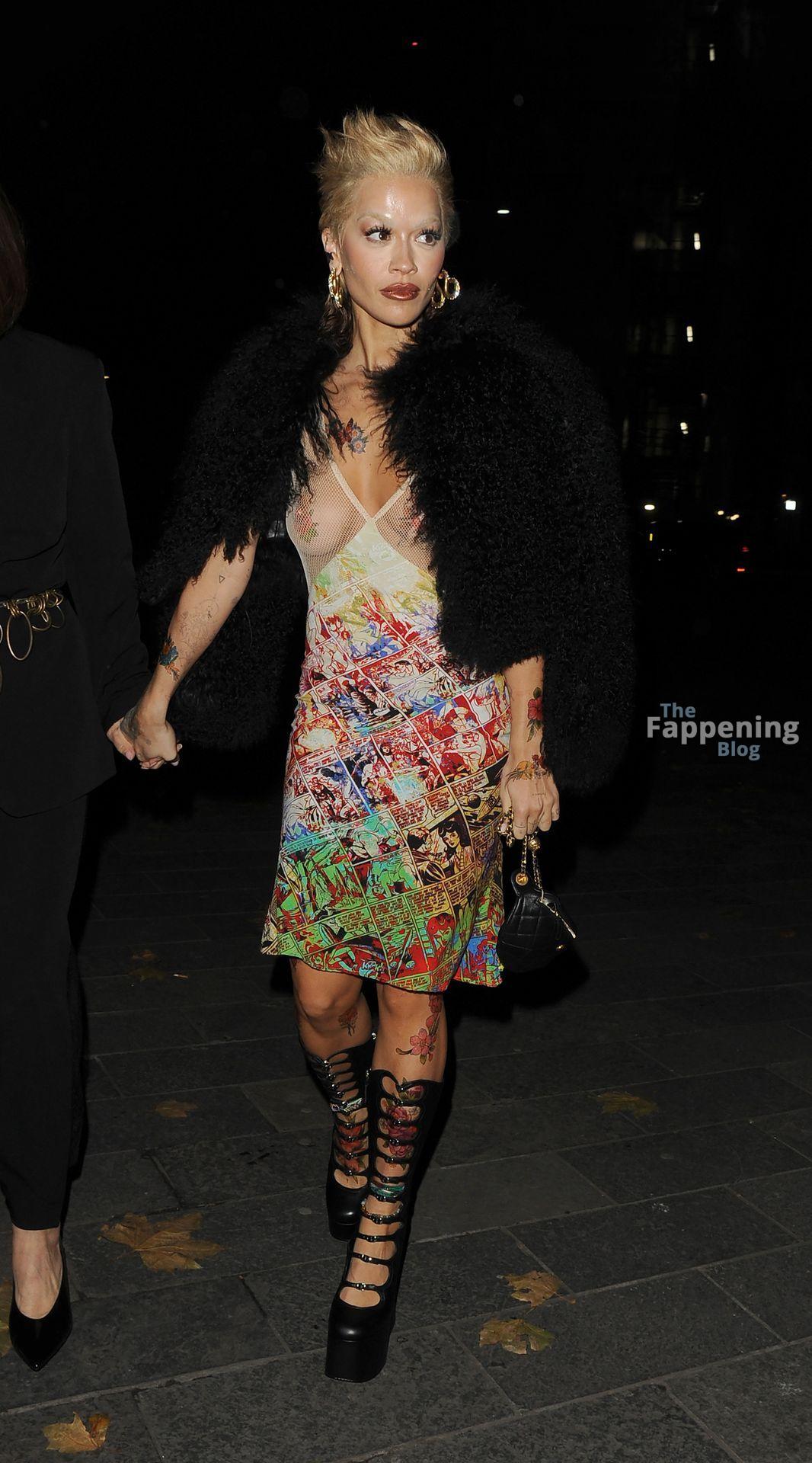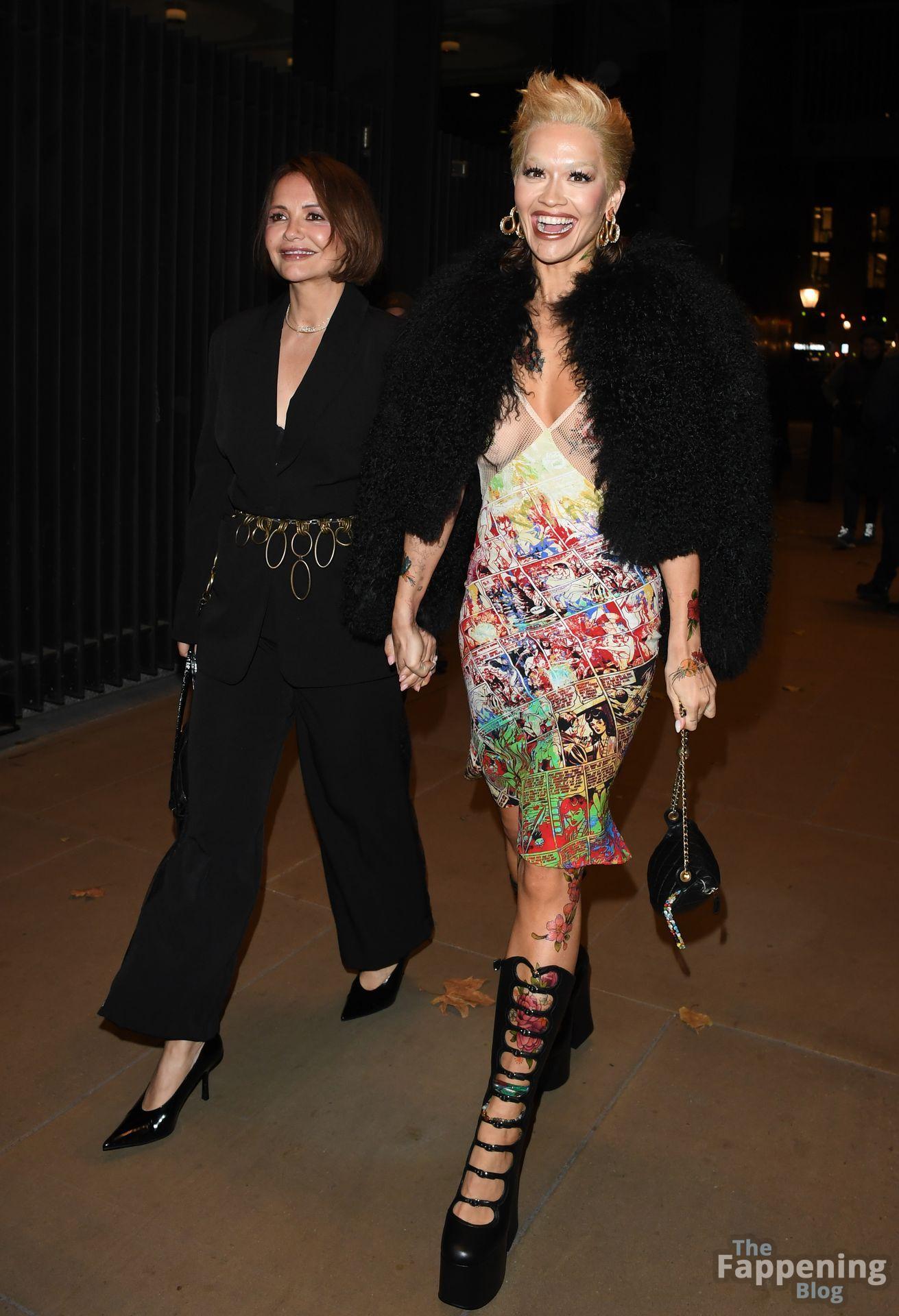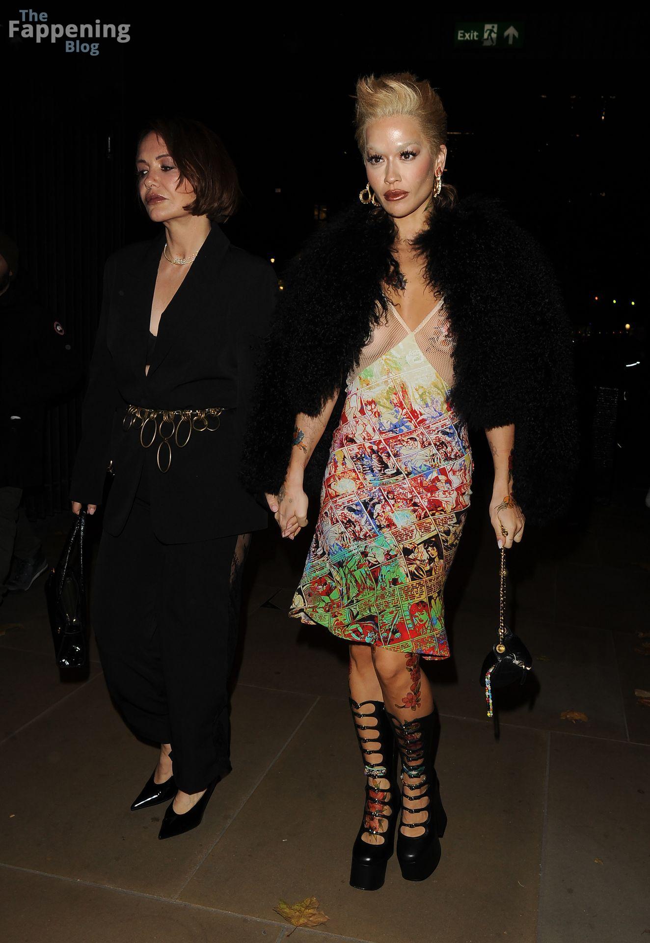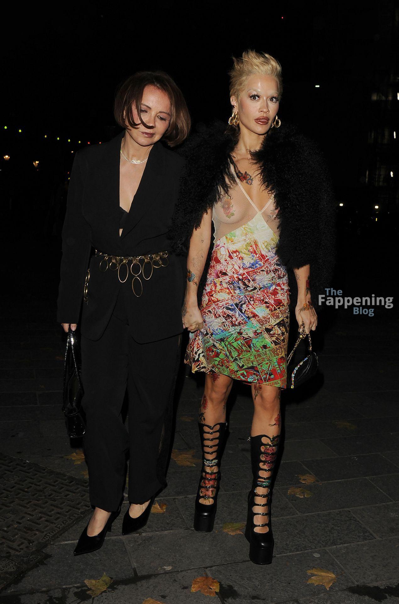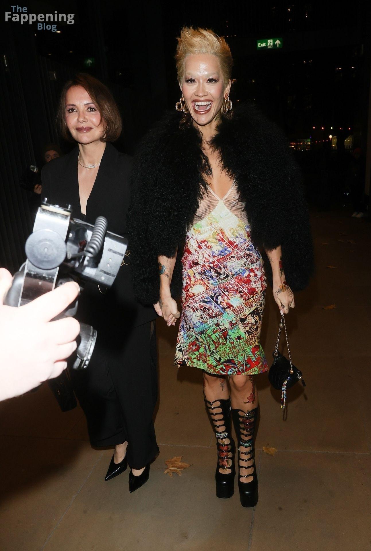 Rita Ora llama la atención con un vestido completamente transparente que deja ver su pecho desnudo en la afterparty de los British Fashion Awards en The MAINE Mayfair Restaurant & Bar.