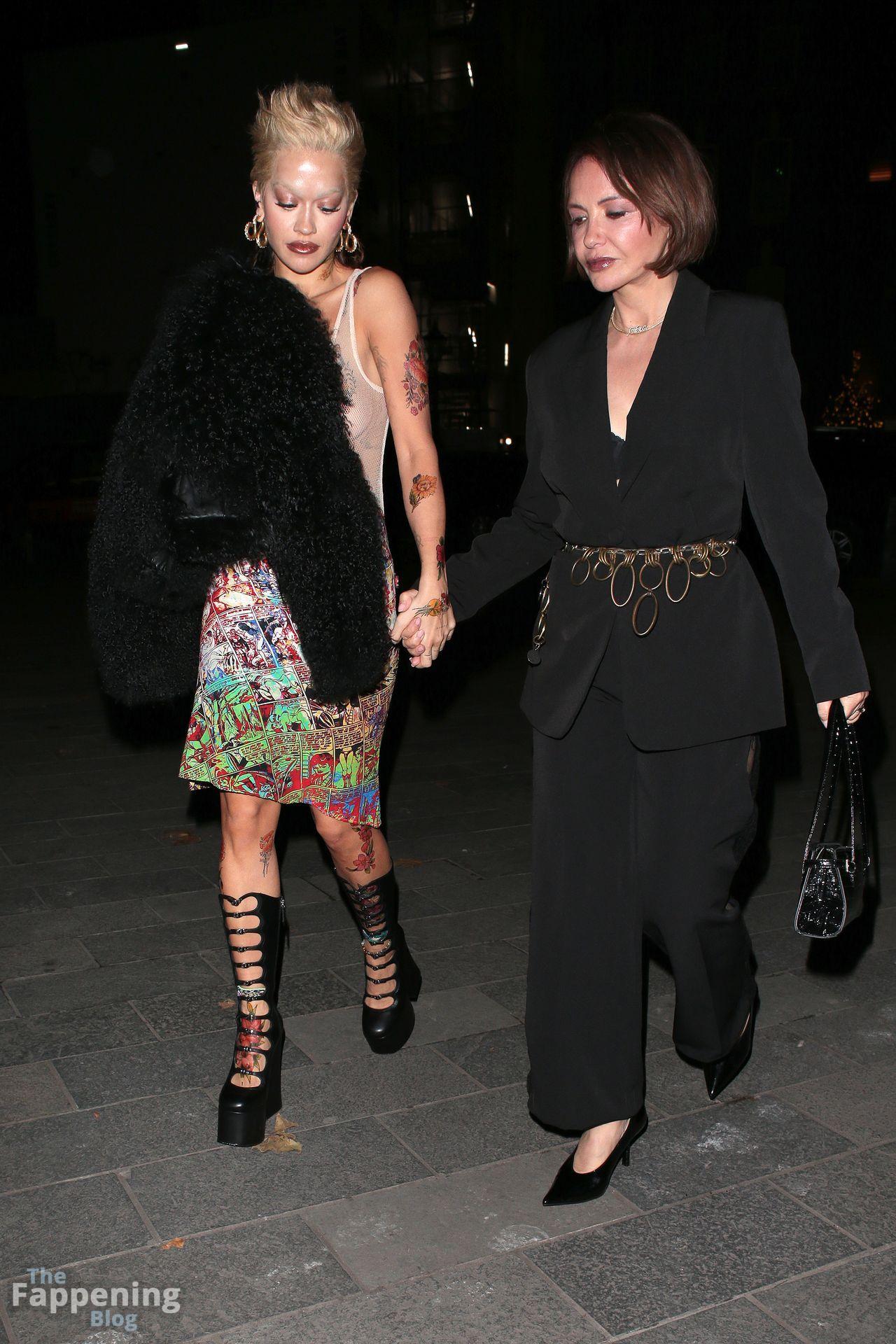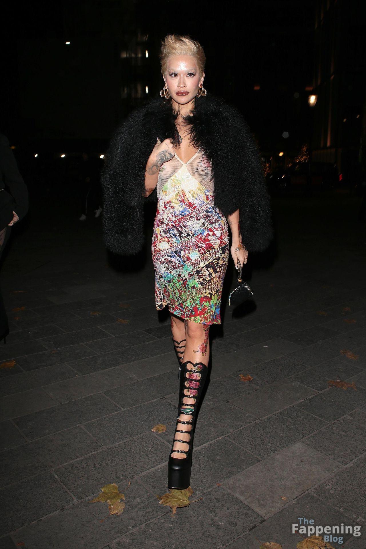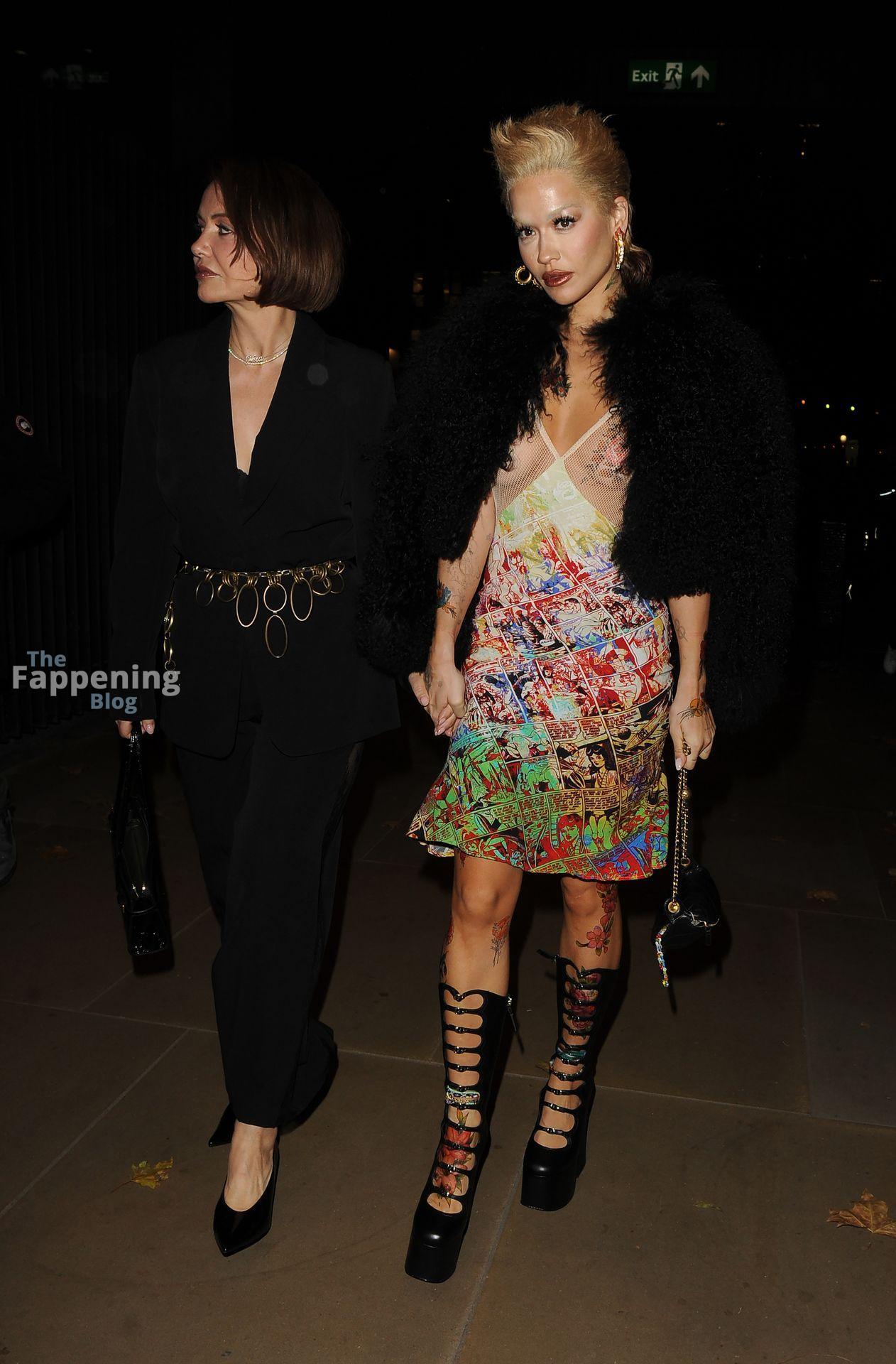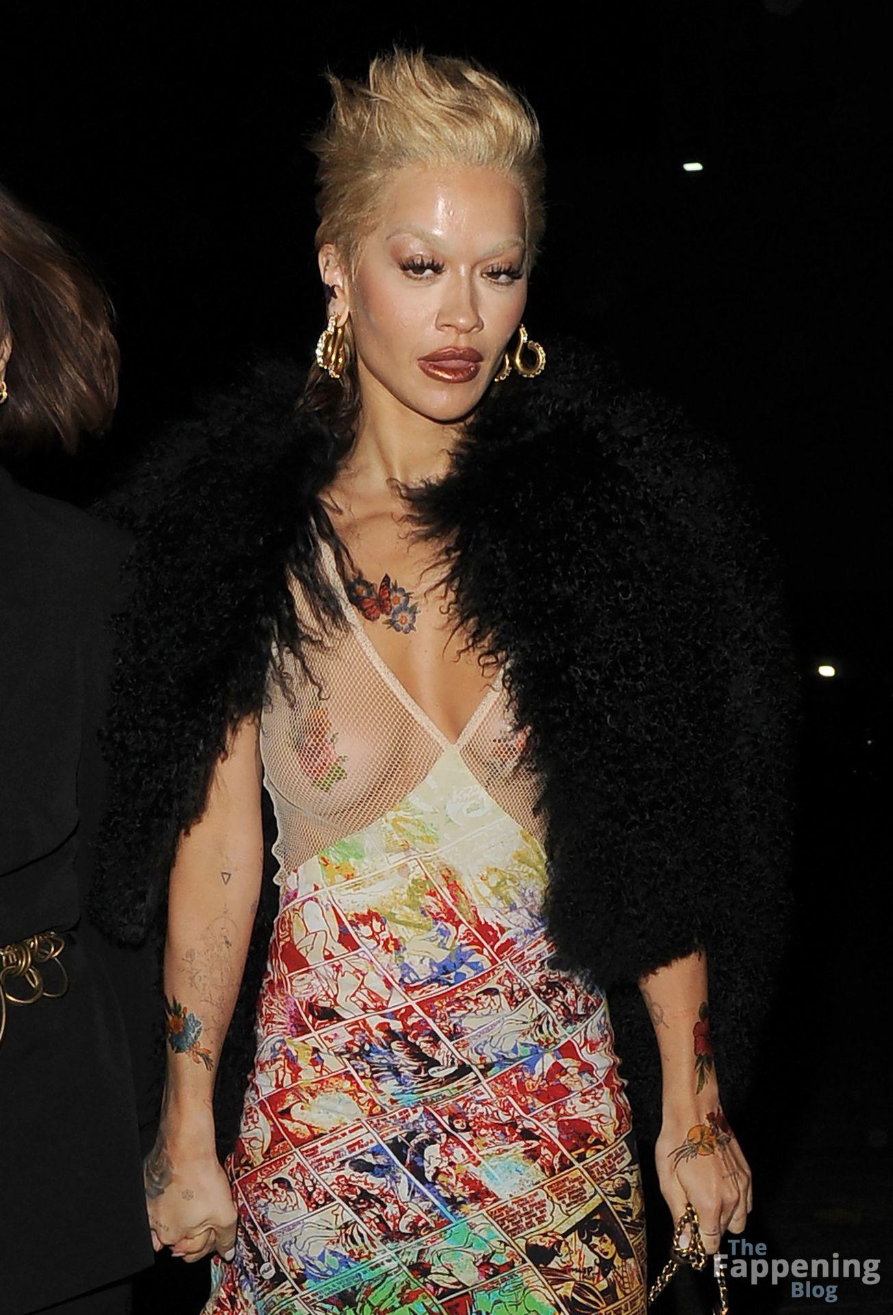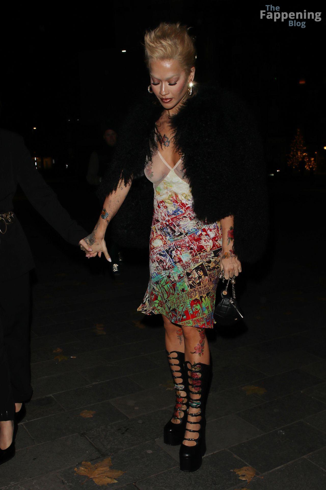 Rita Ora llama la atención con un vestido completamente transparente que deja ver su pecho desnudo en la afterparty de los British Fashion Awards en The MAINE Mayfair Restaurant & Bar.