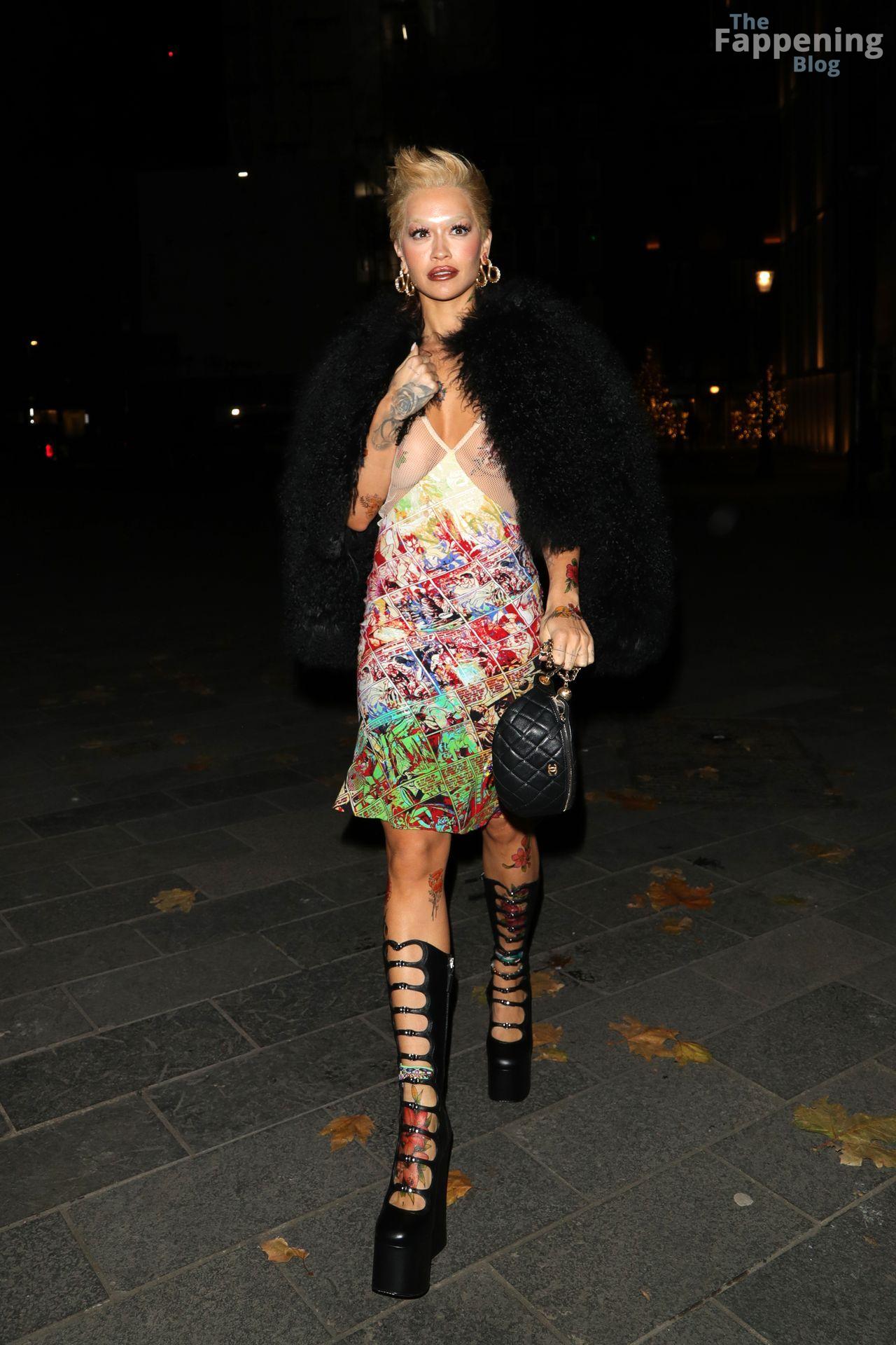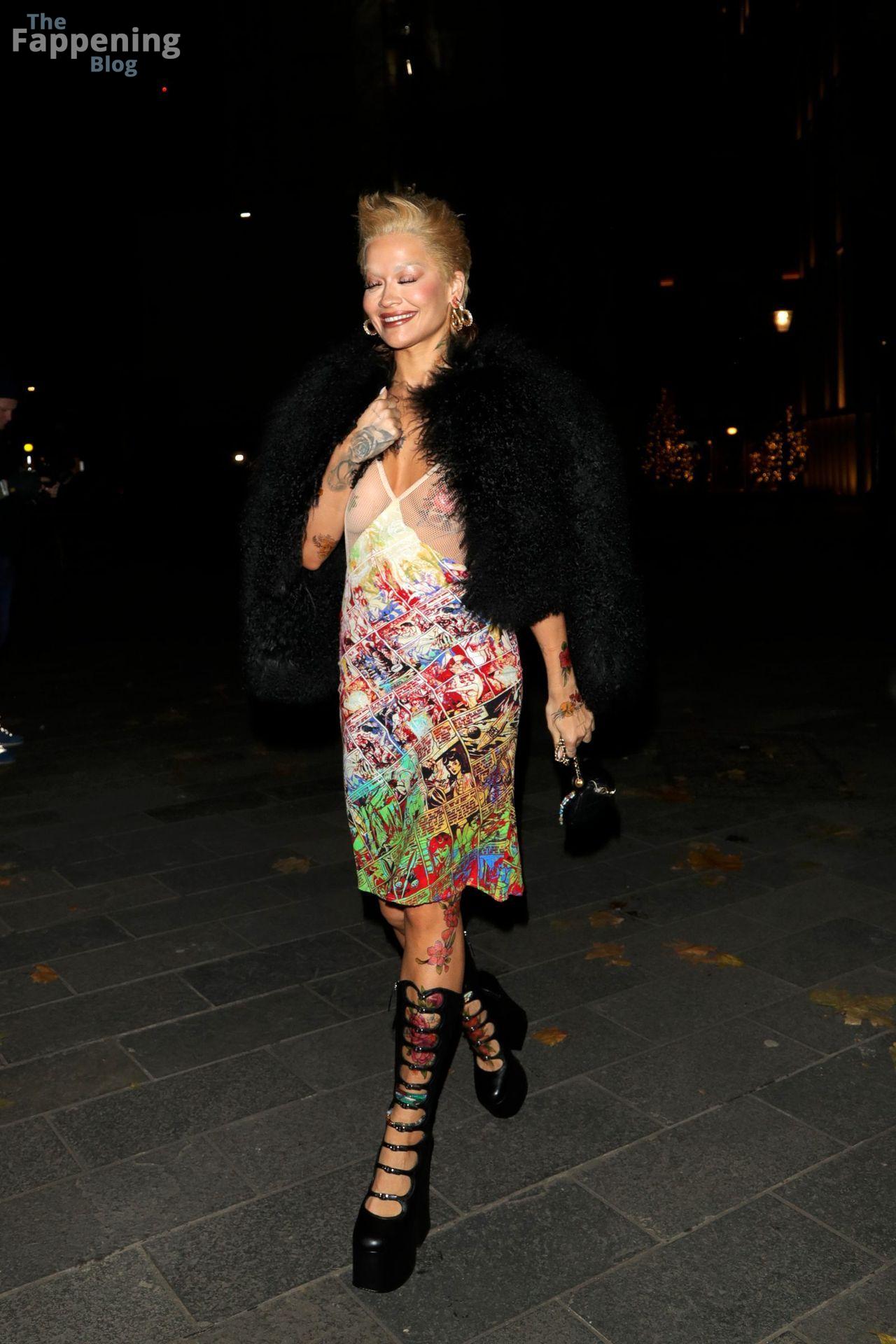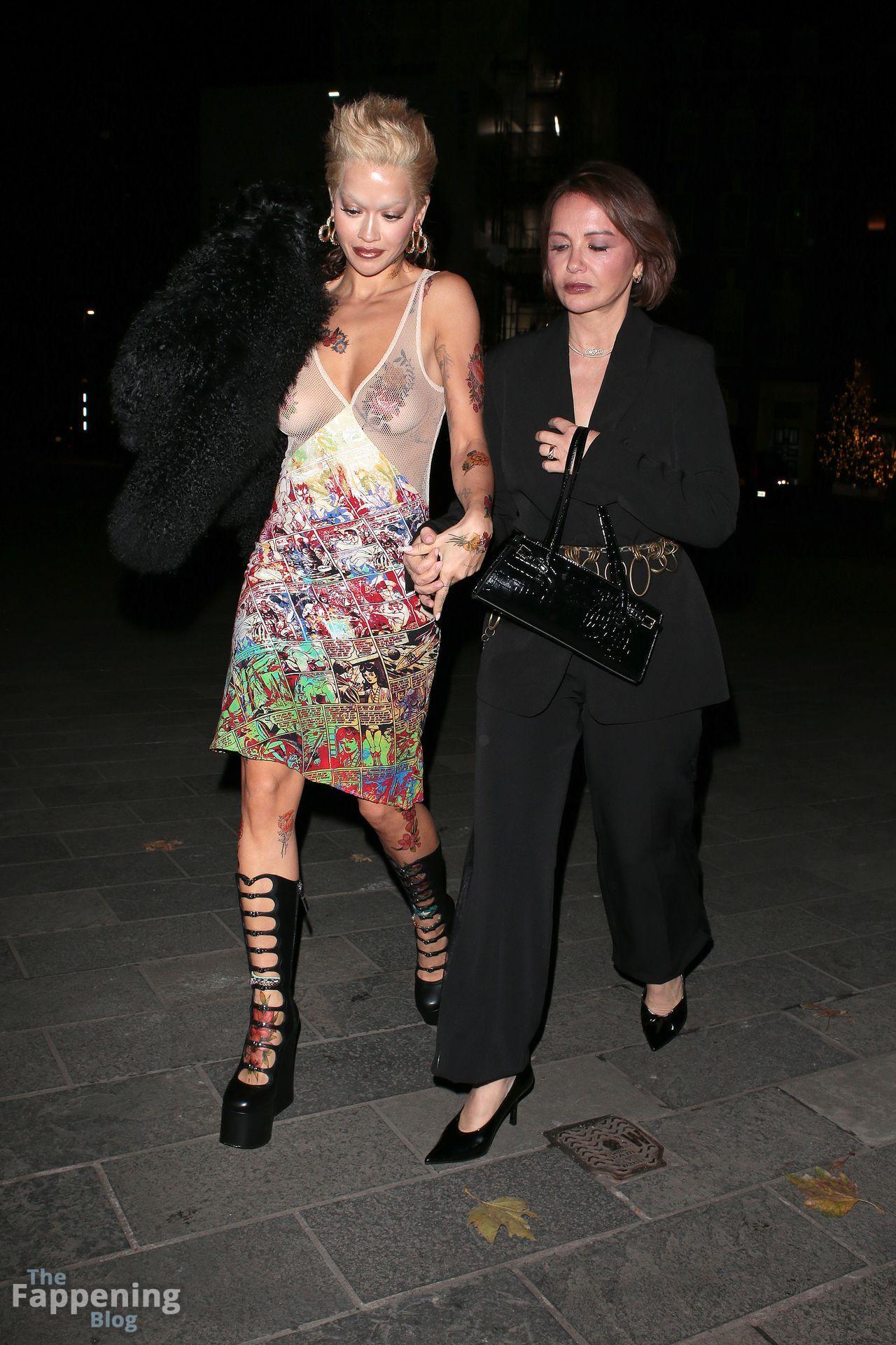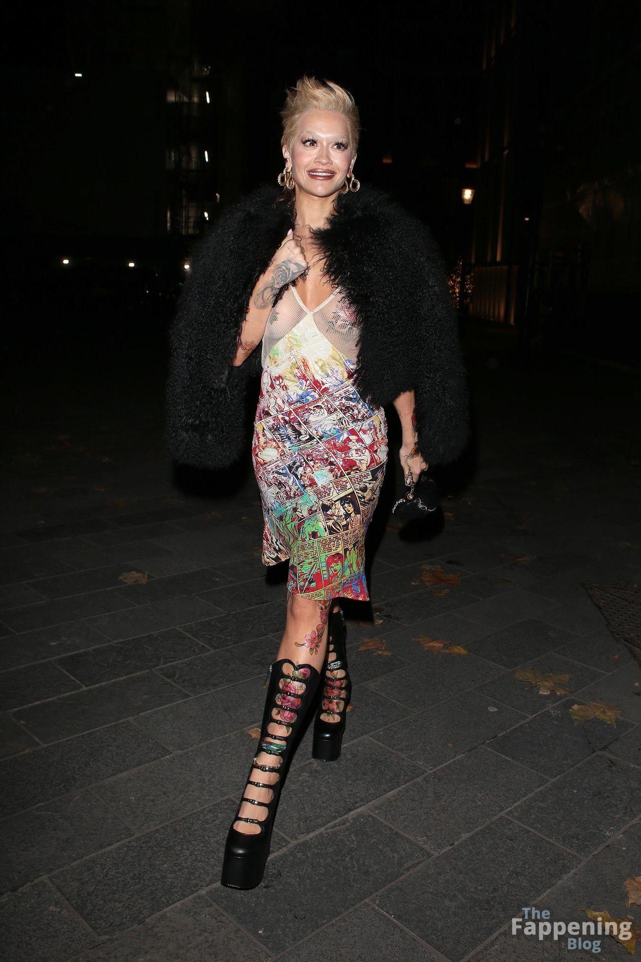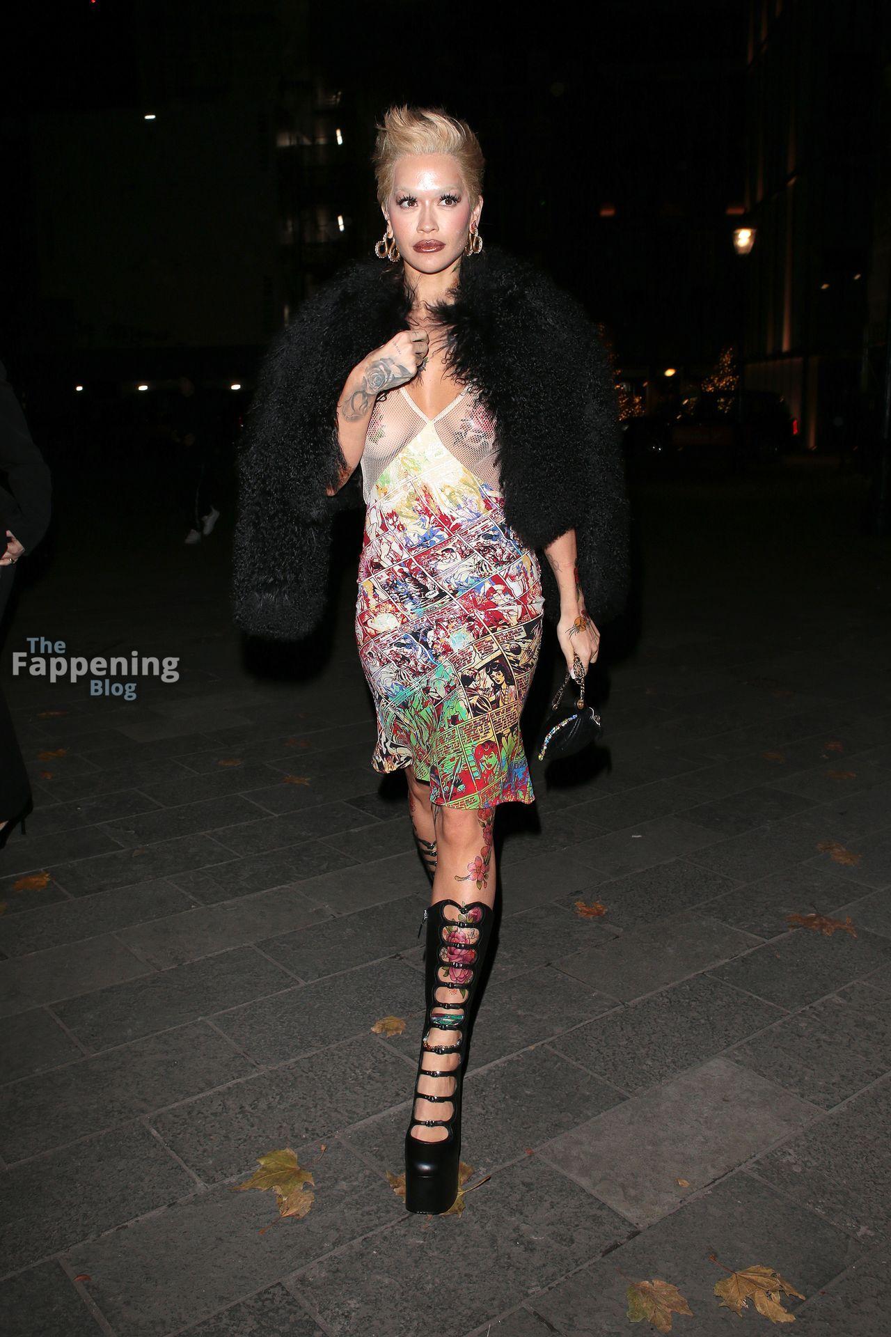 Rita Ora llama la atención con un vestido completamente transparente que deja ver su pecho desnudo en la afterparty de los British Fashion Awards en The MAINE Mayfair Restaurant & Bar.