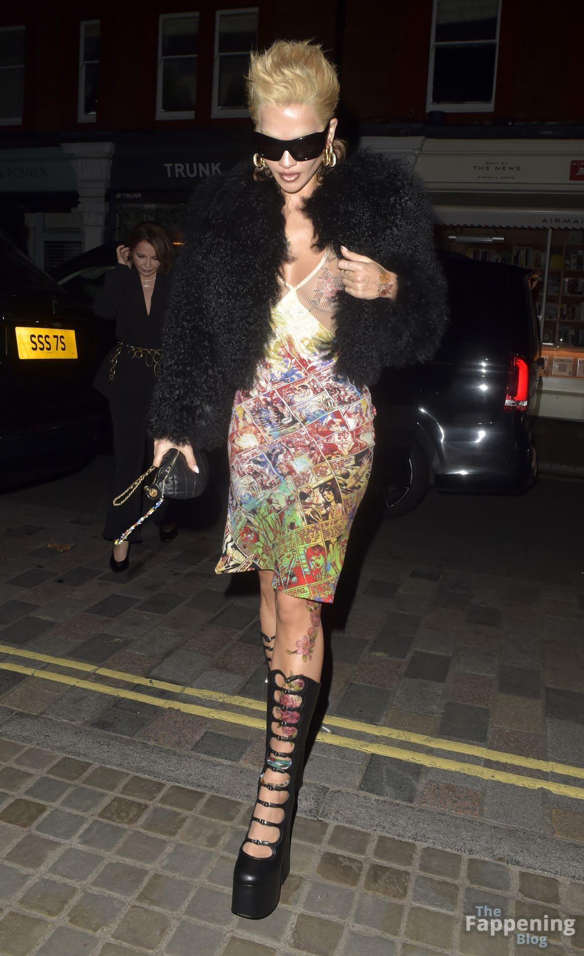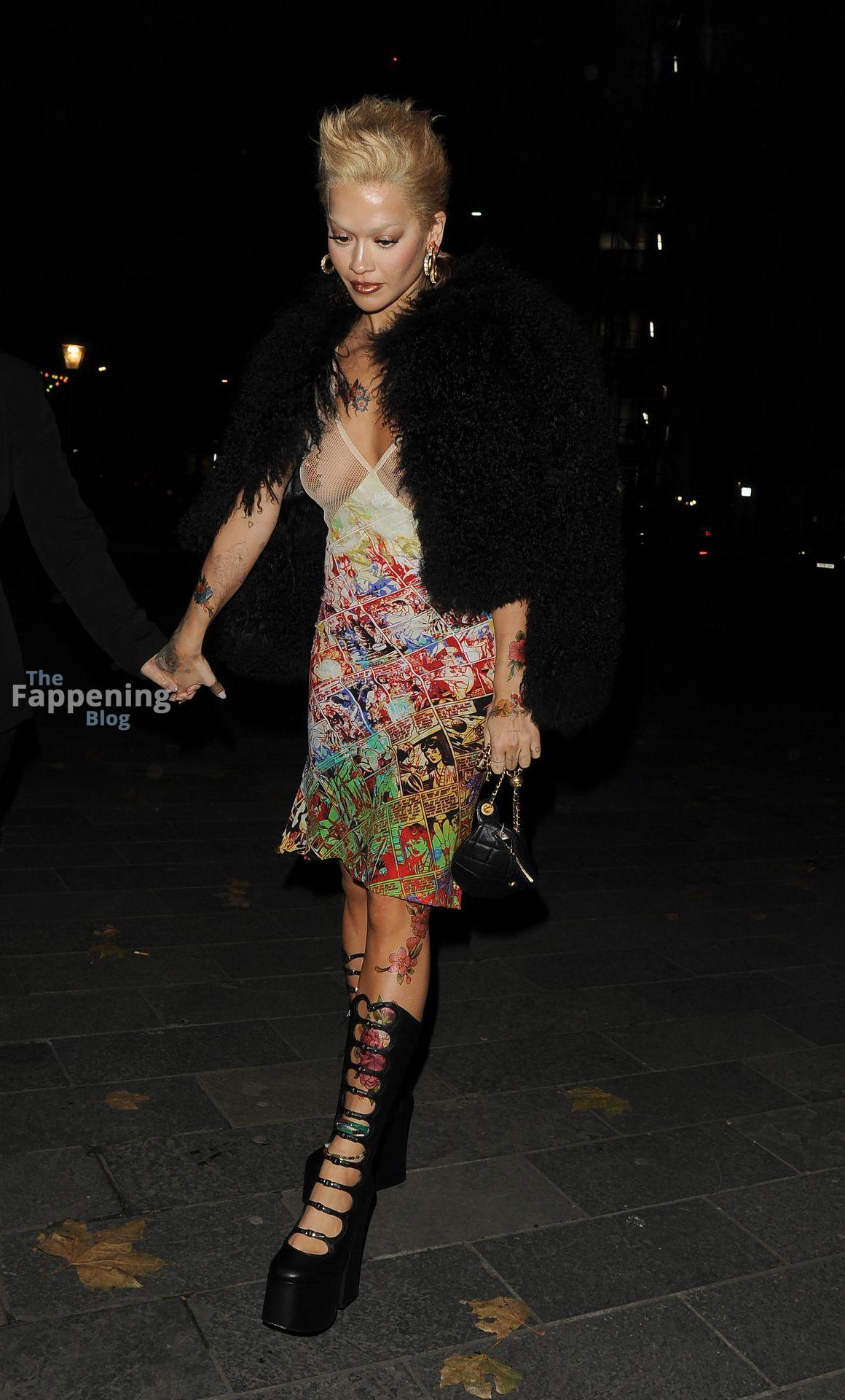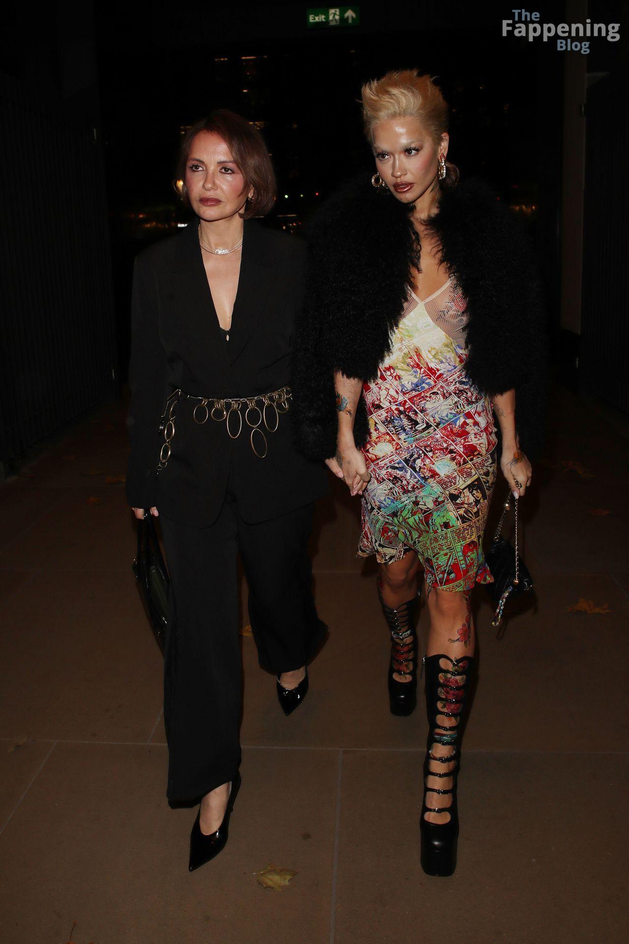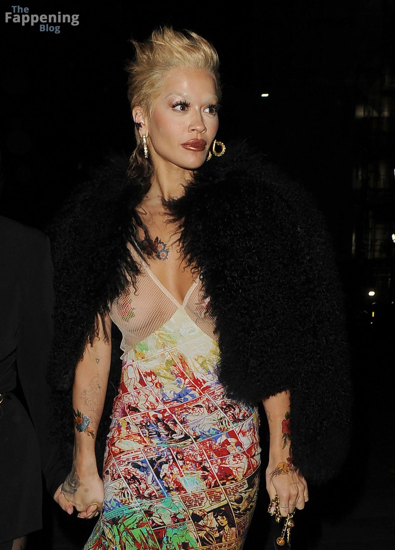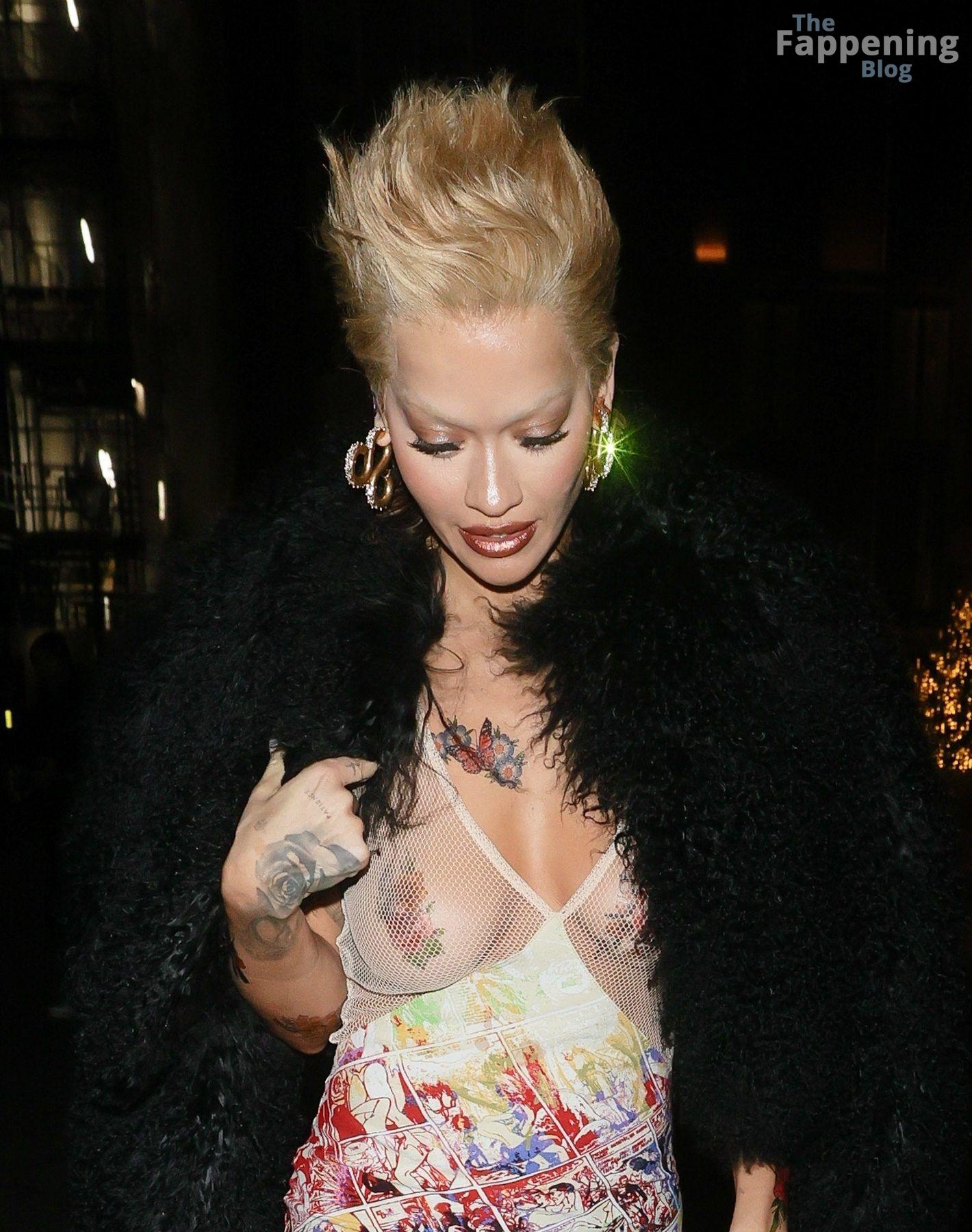 Rita Ora llama la atención con un vestido completamente transparente que deja ver su pecho desnudo en la afterparty de los British Fashion Awards en The MAINE Mayfair Restaurant & Bar.