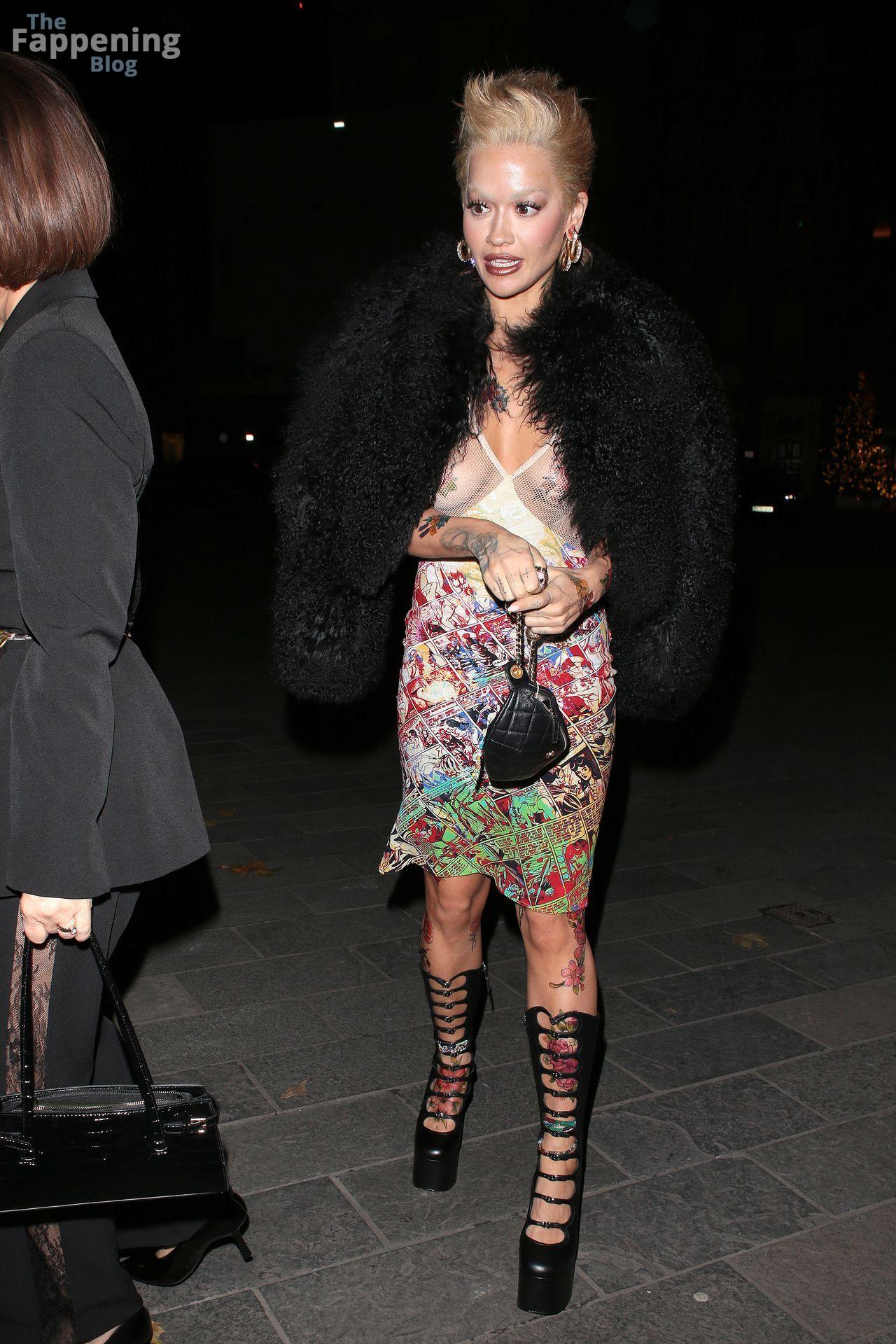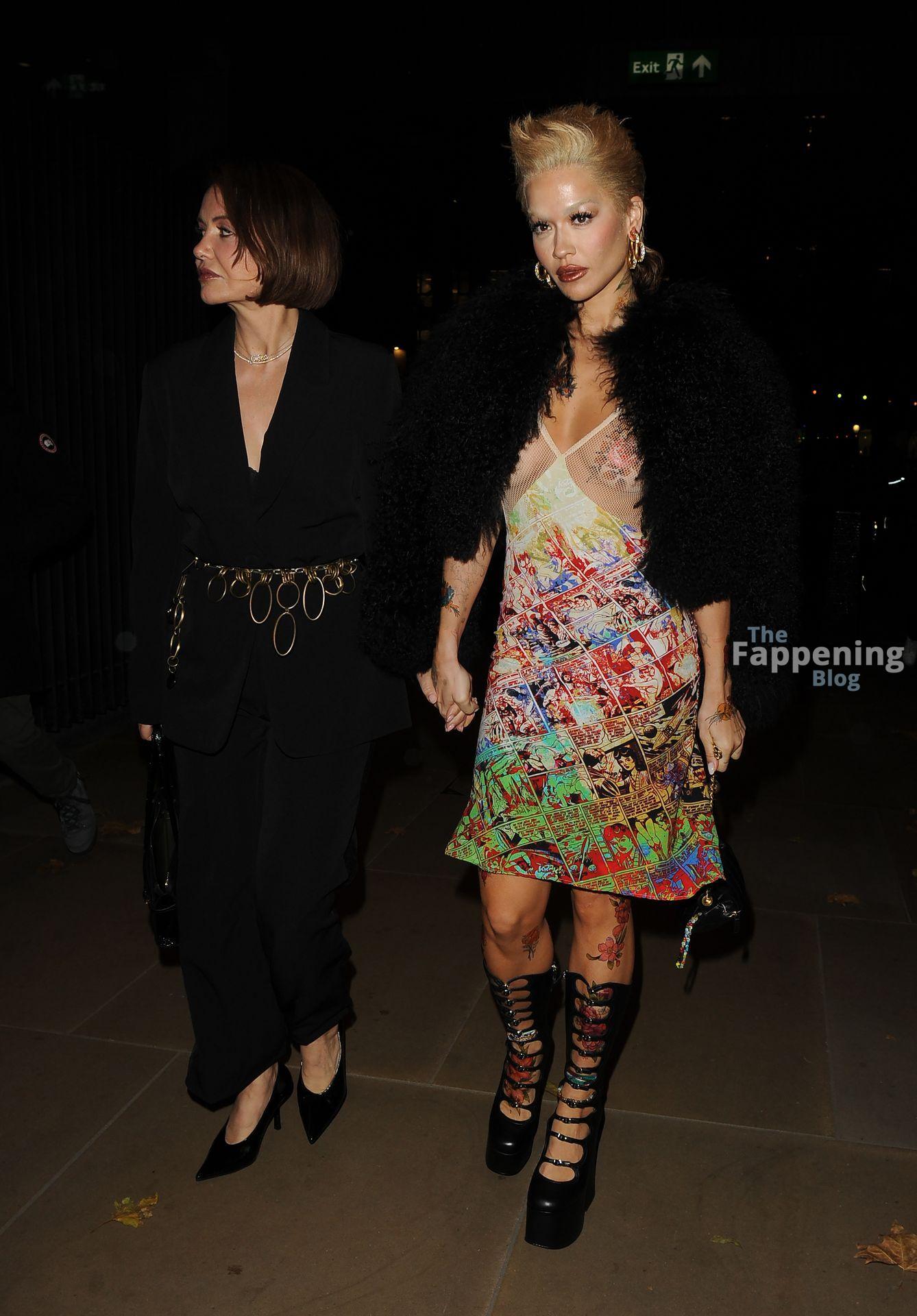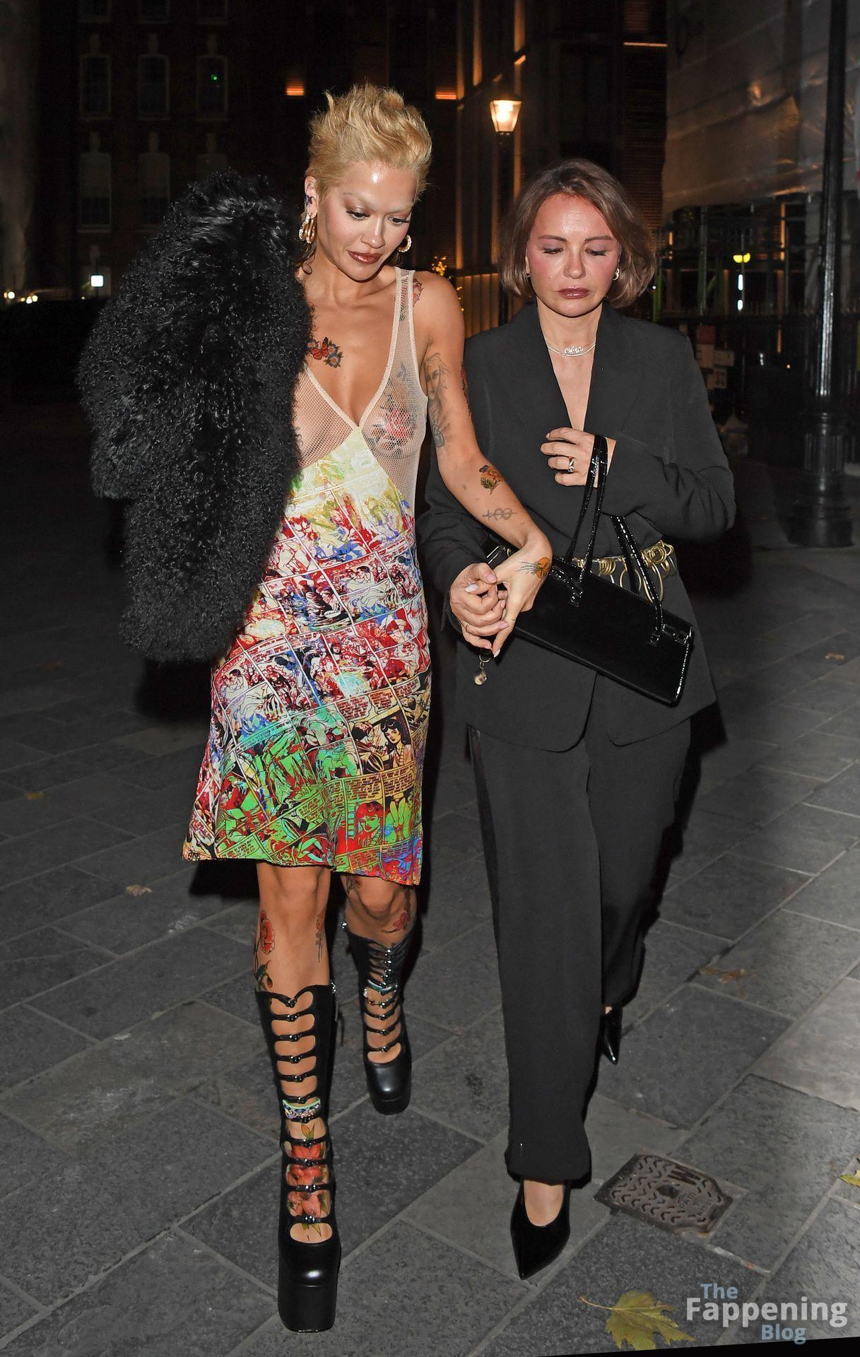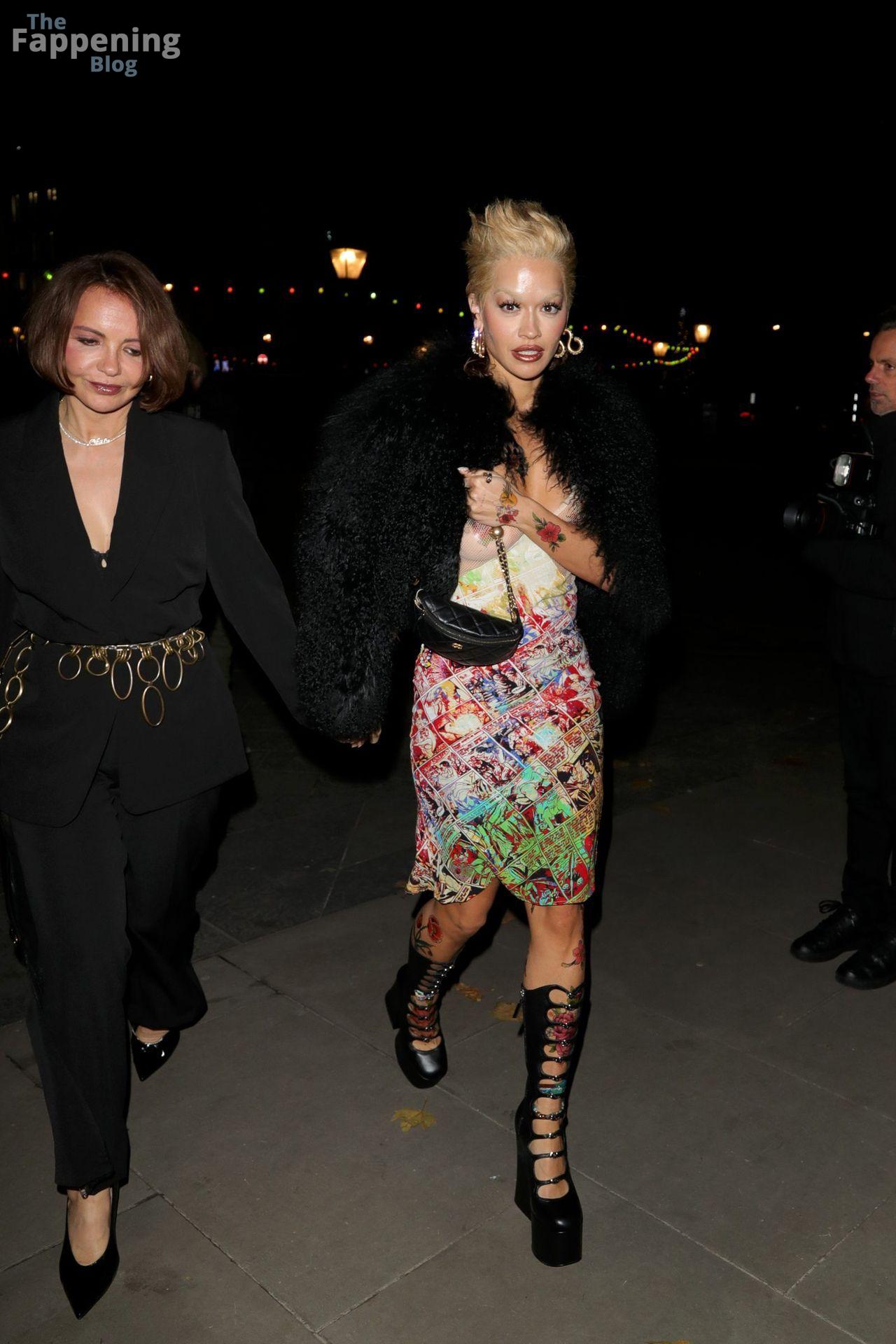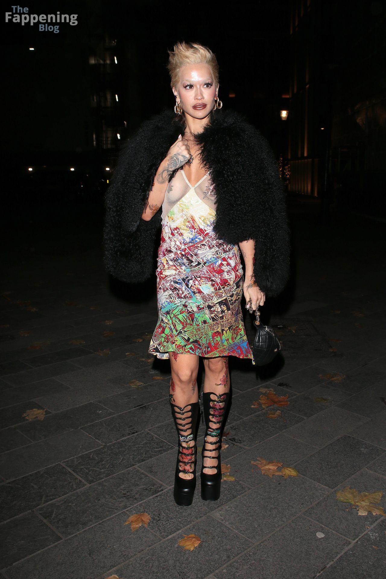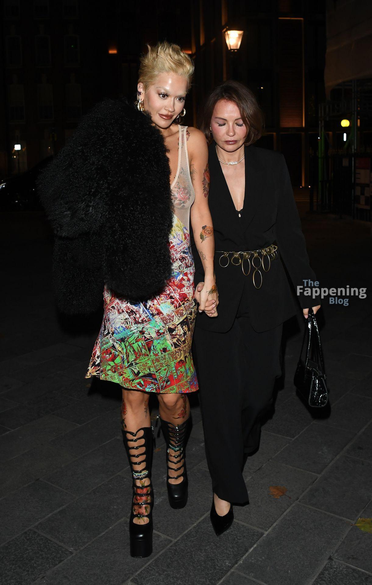 Rita Ora llama la atención con un vestido completamente transparente que deja ver su pecho desnudo en la afterparty de los British Fashion Awards en The MAINE Mayfair Restaurant & Bar.