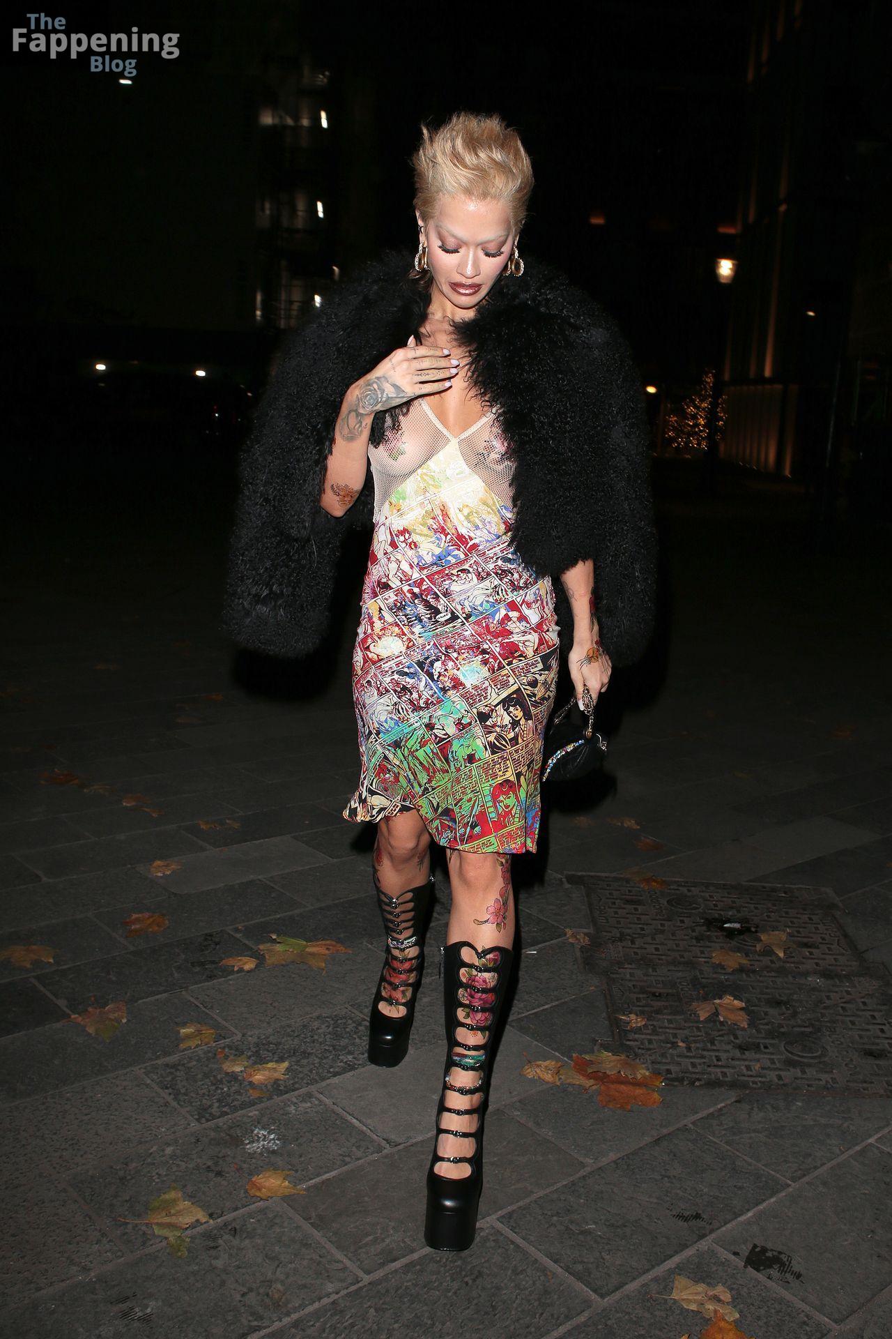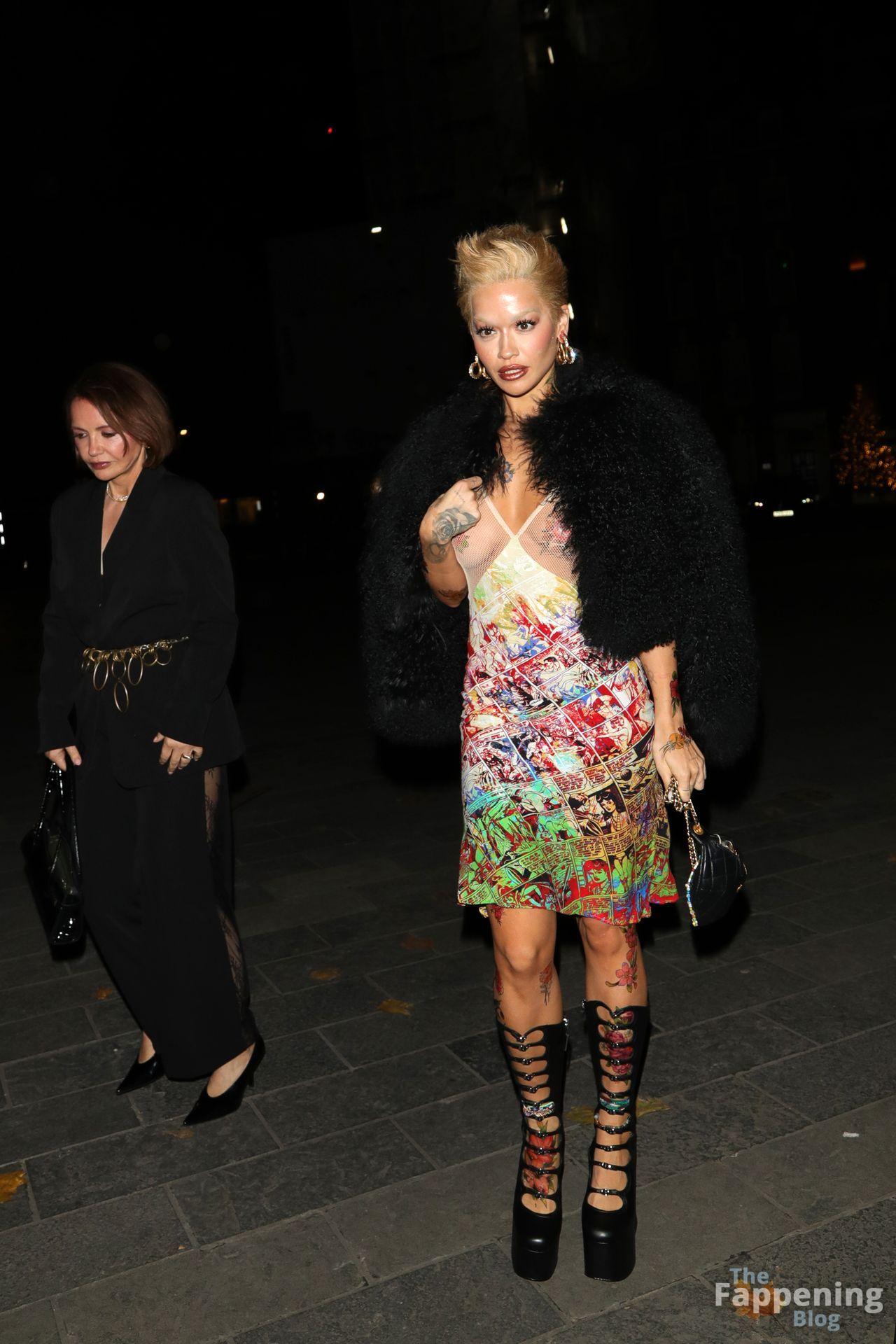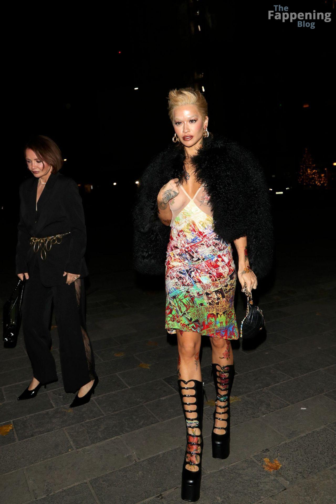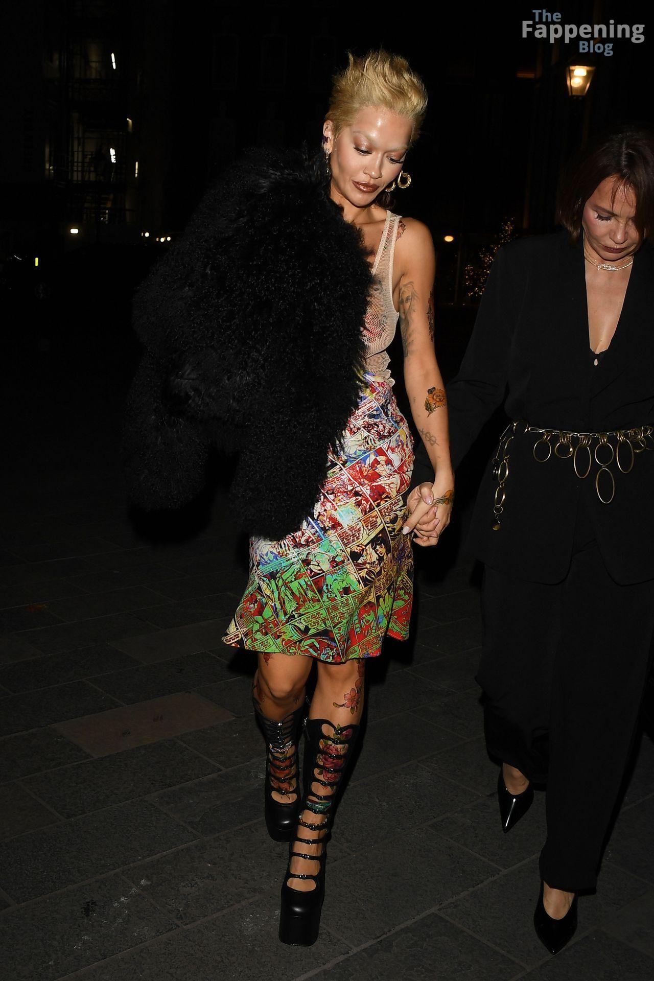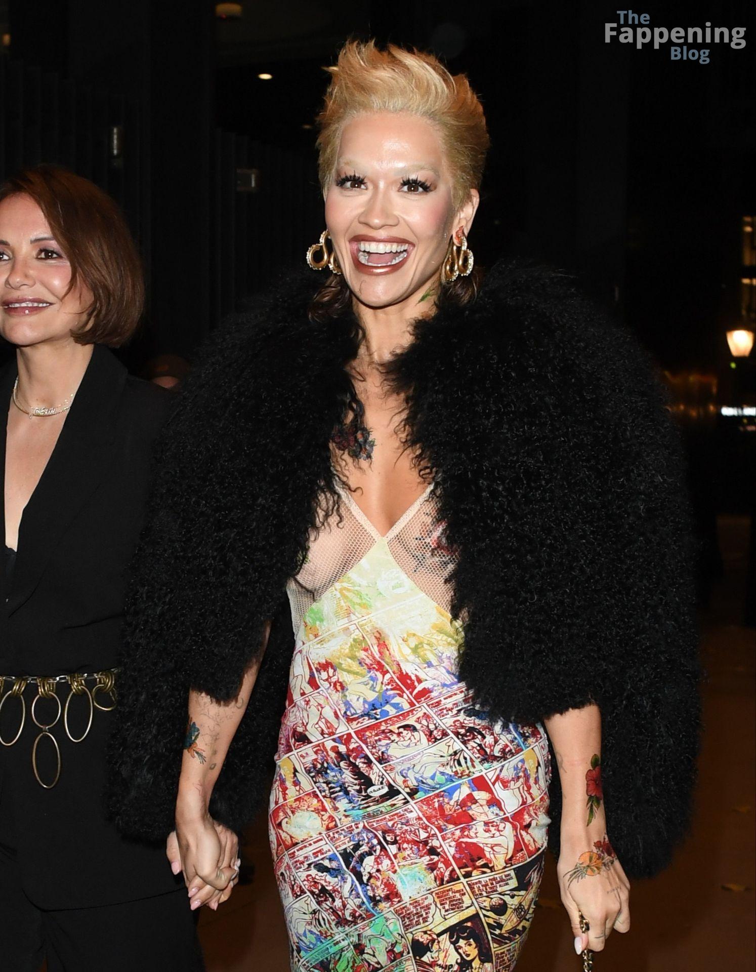 Rita Ora llama la atención con un vestido completamente transparente que deja ver su pecho desnudo en la afterparty de los British Fashion Awards en The MAINE Mayfair Restaurant & Bar.