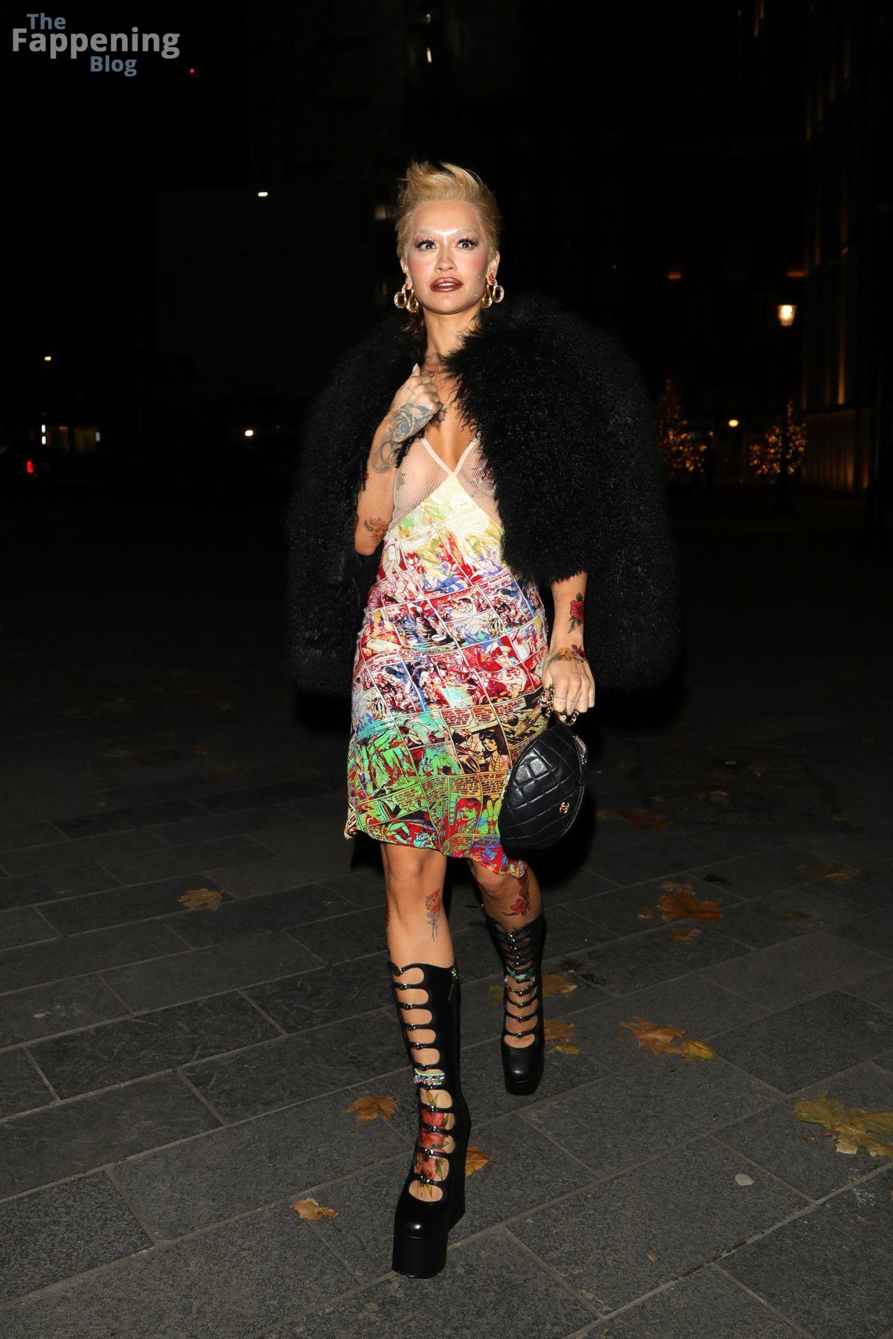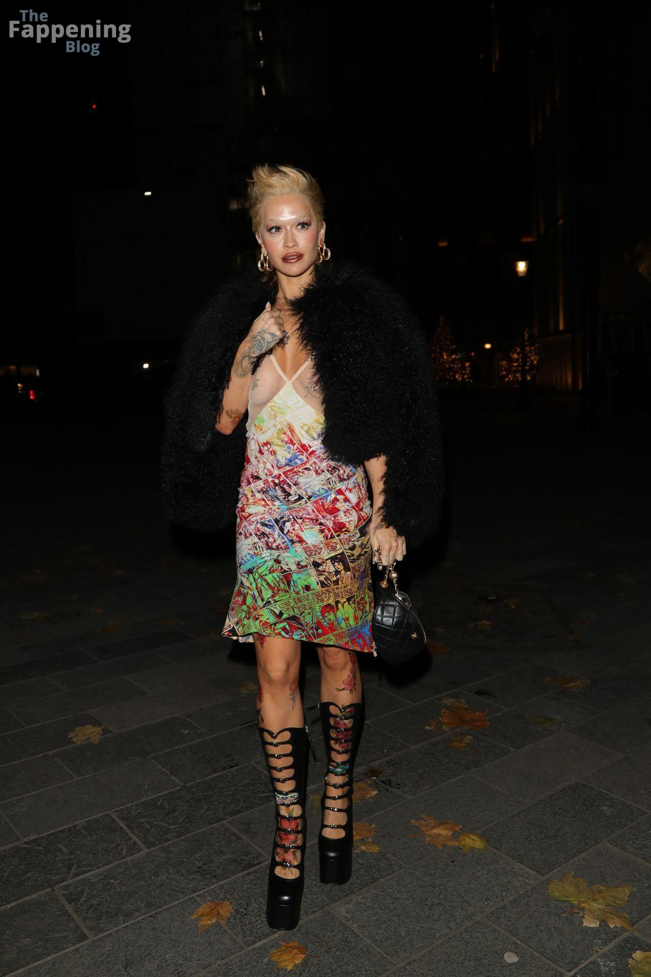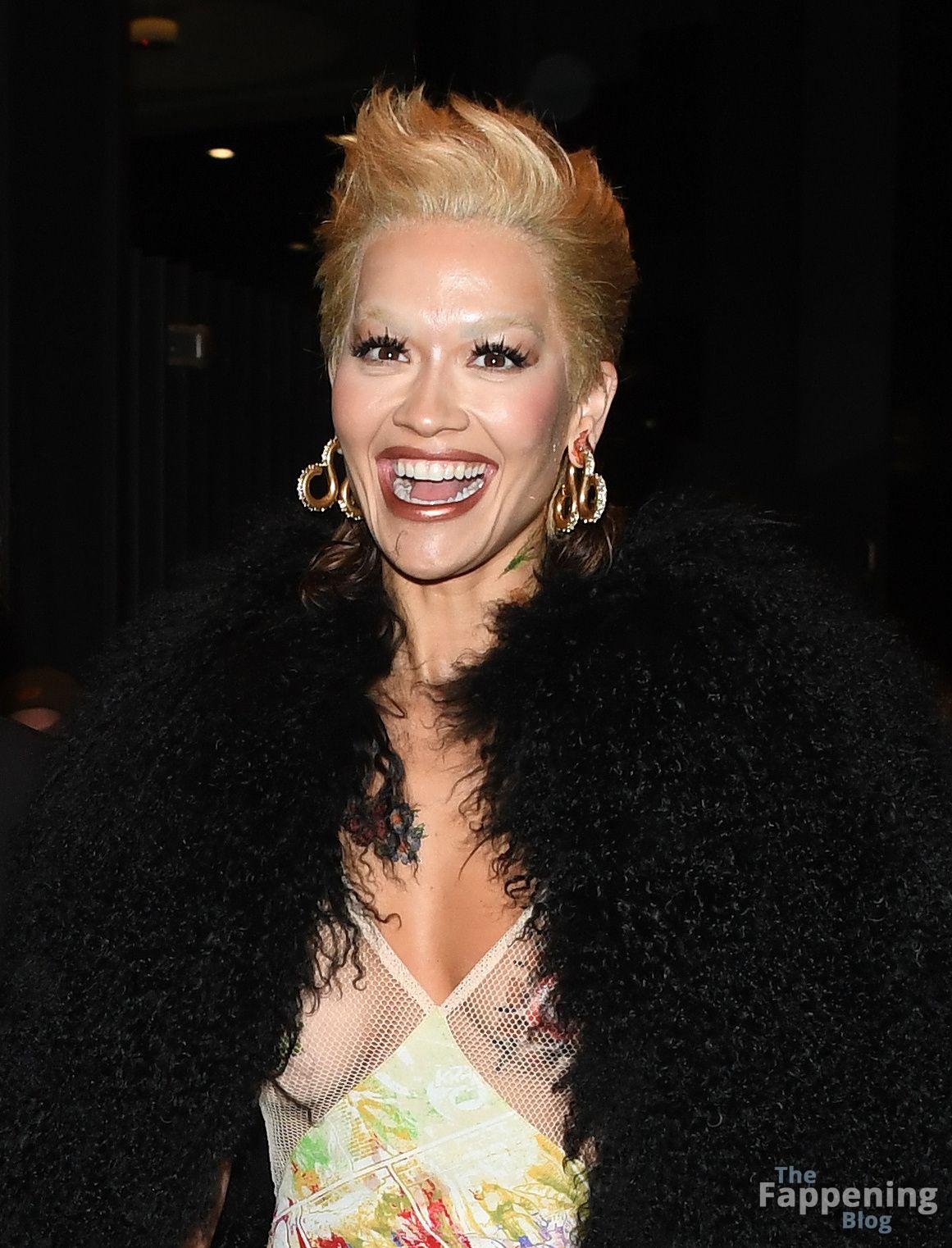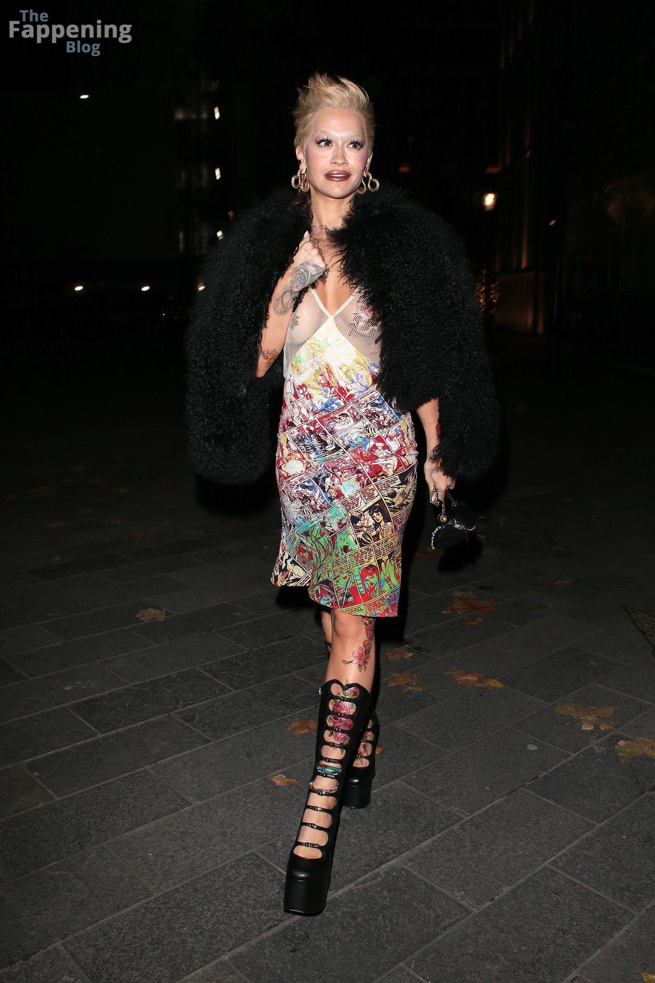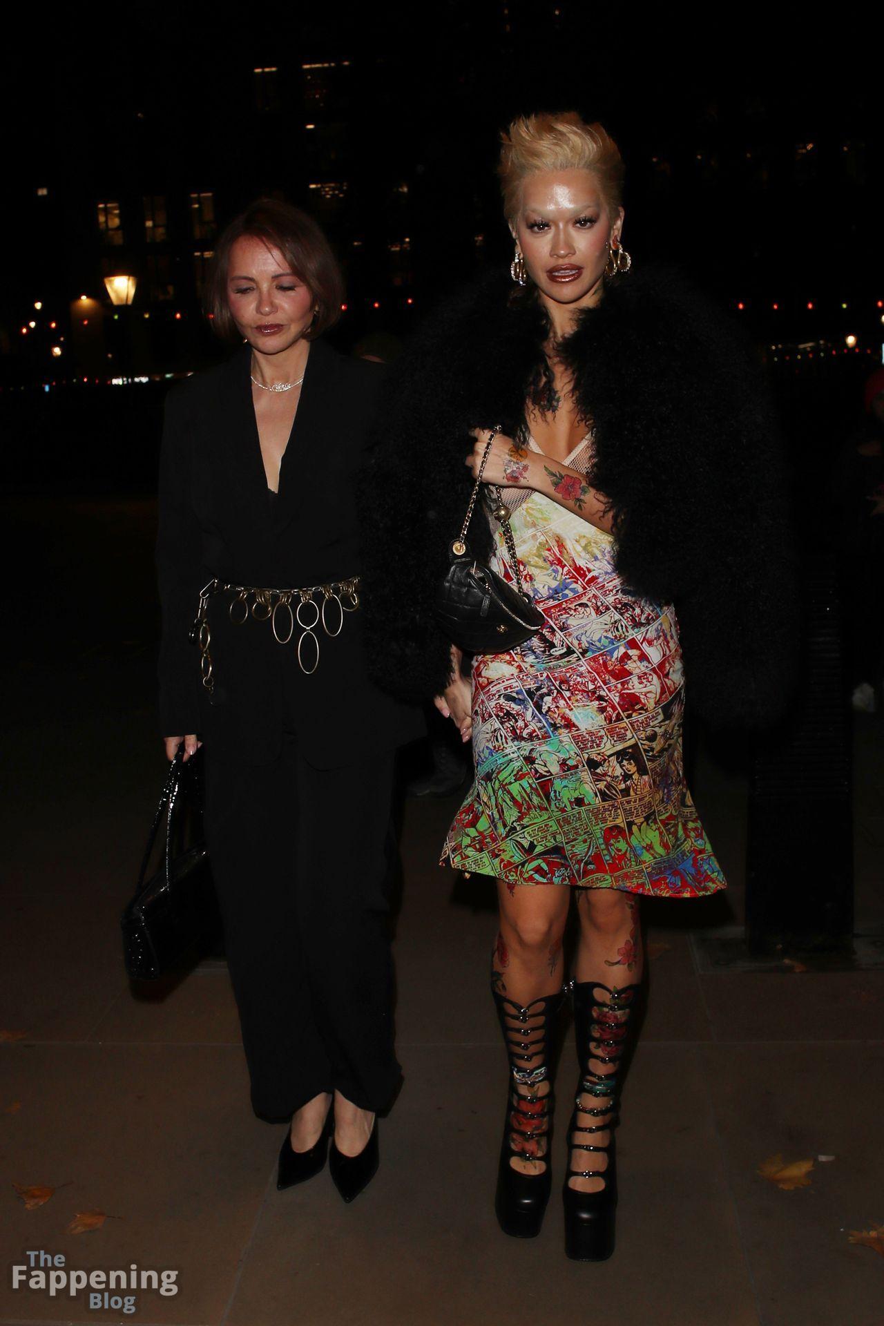 Rita Ora llama la atención con un vestido completamente transparente que deja ver su pecho desnudo en la afterparty de los British Fashion Awards en The MAINE Mayfair Restaurant & Bar.