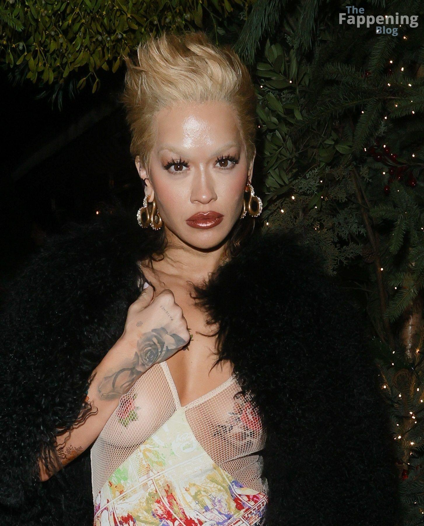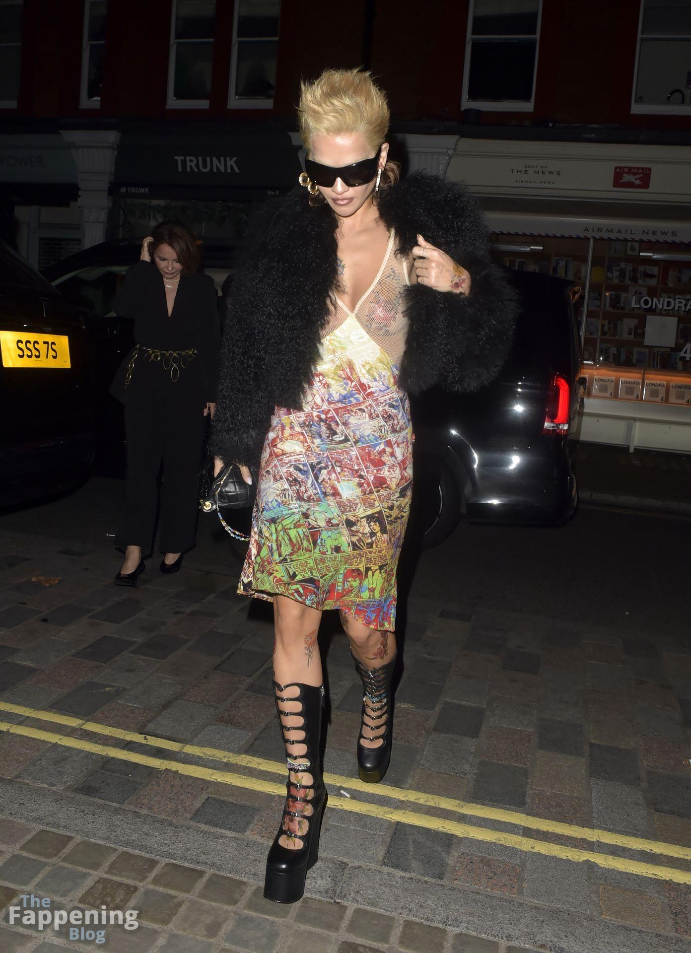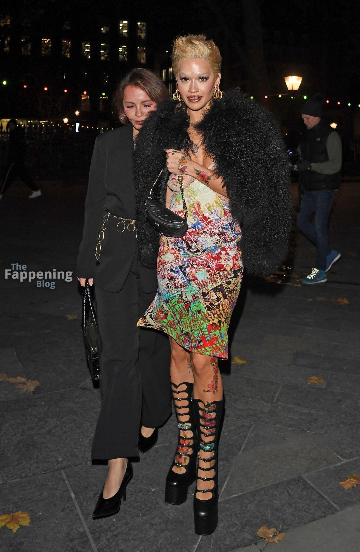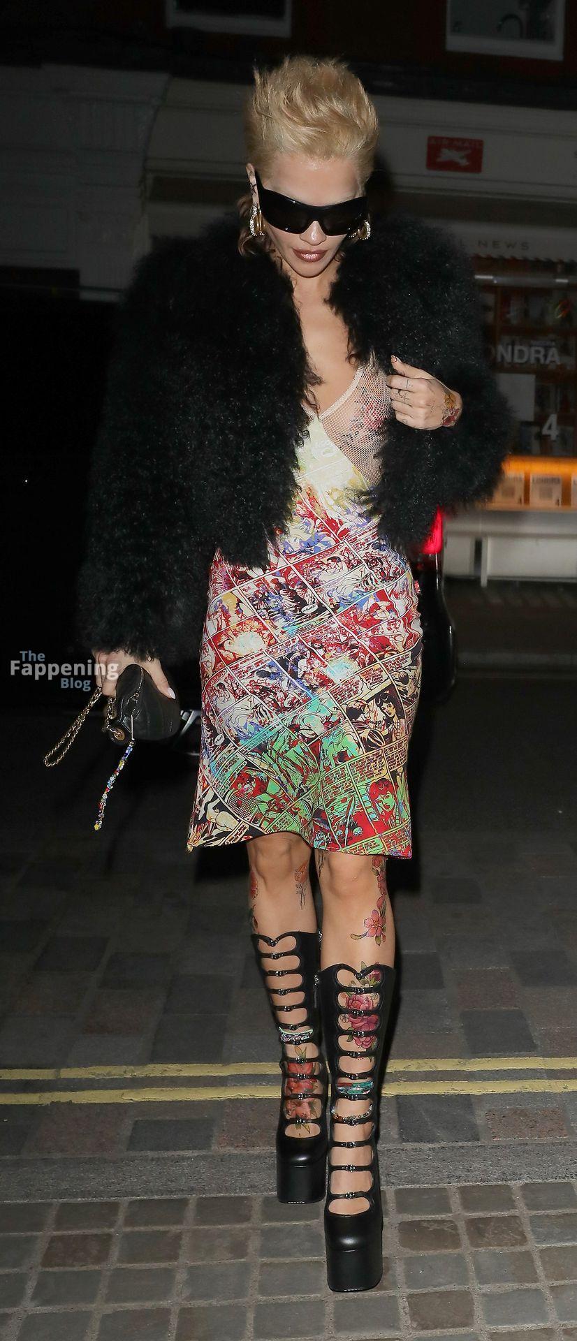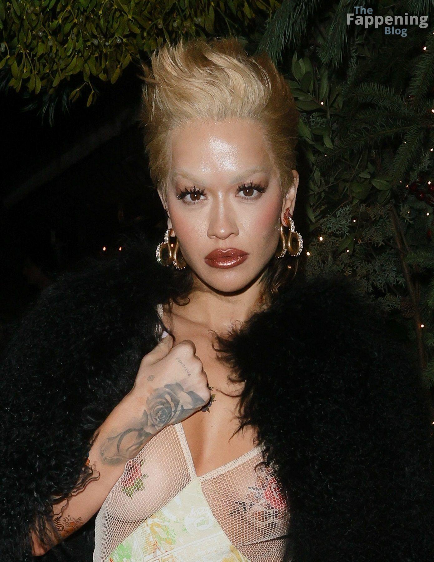 Rita Ora llama la atención con un vestido completamente transparente que deja ver su pecho desnudo en la afterparty de los British Fashion Awards en The MAINE Mayfair Restaurant & Bar.