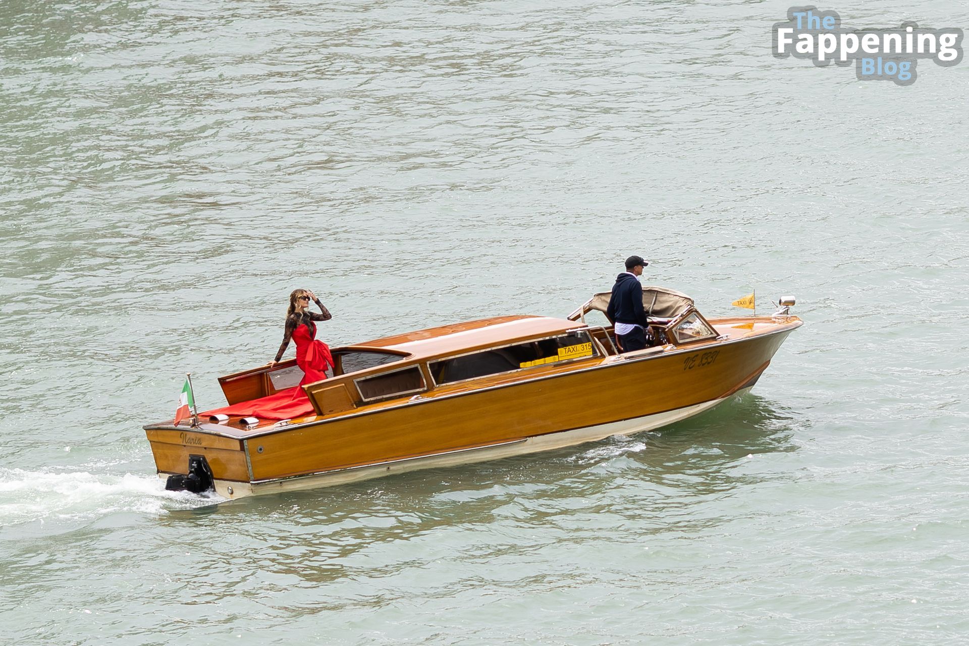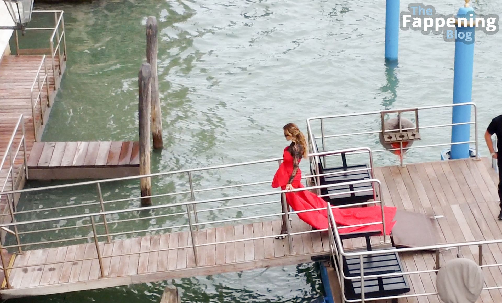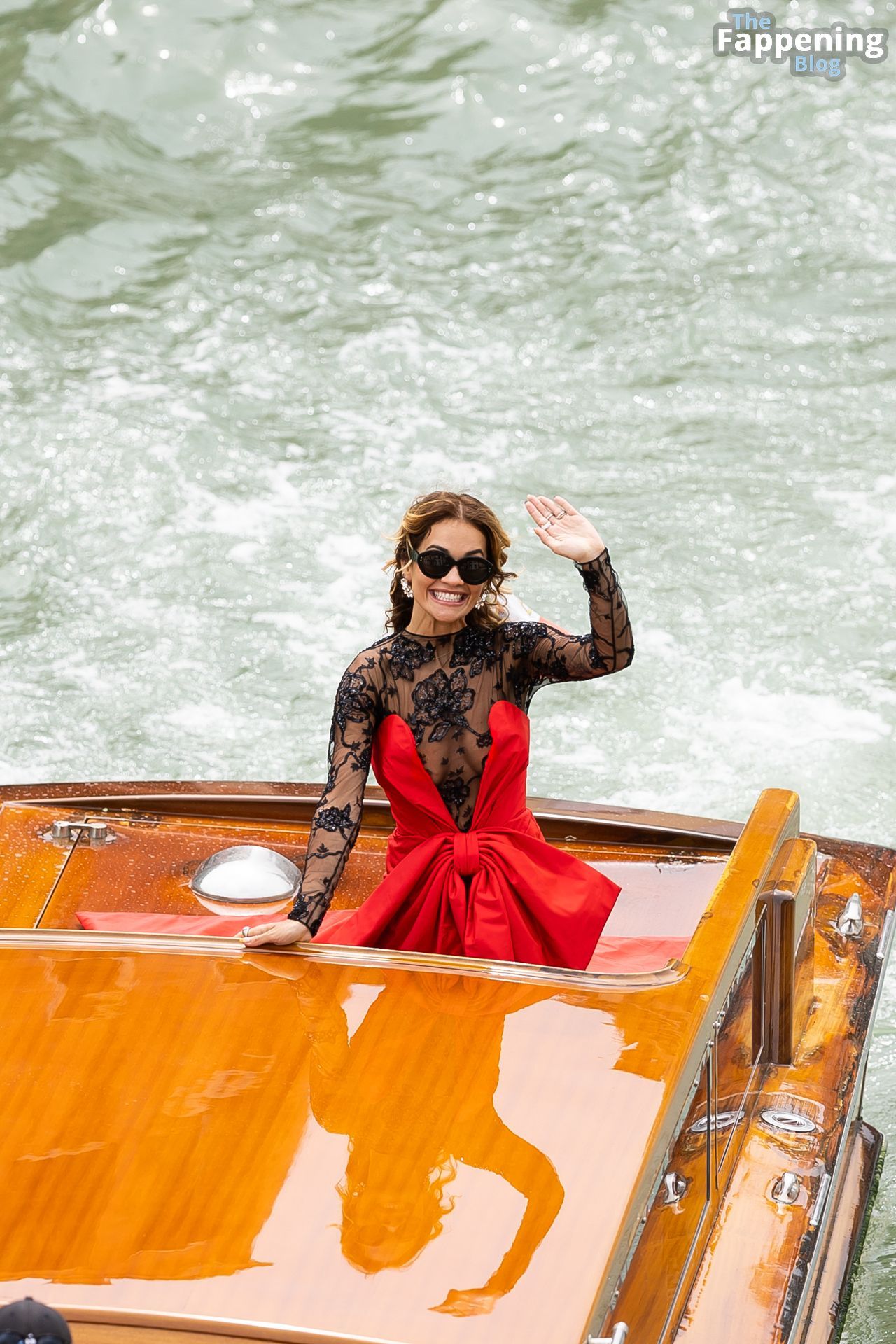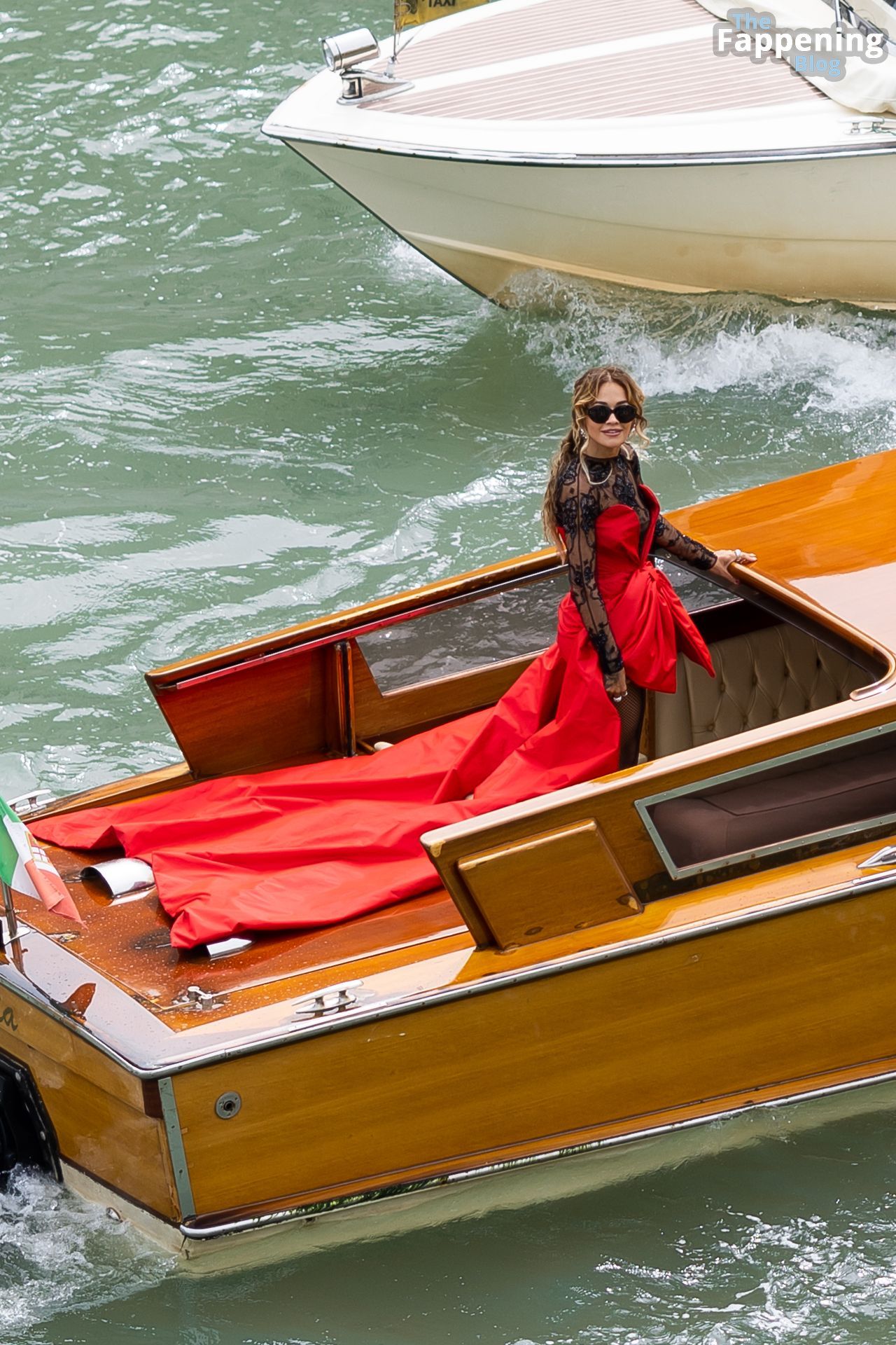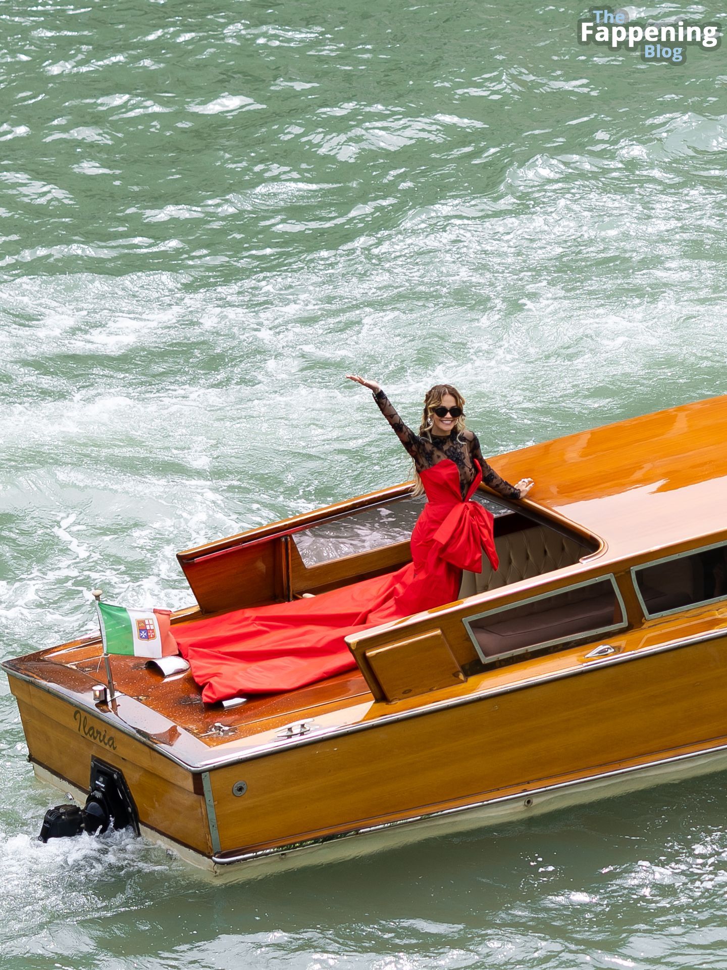 Rita Ora Presume Sus Pechos y un Largo Vestido Rojo de Moschino Caminando hacia un Barco en Venecia (42 Fotos)