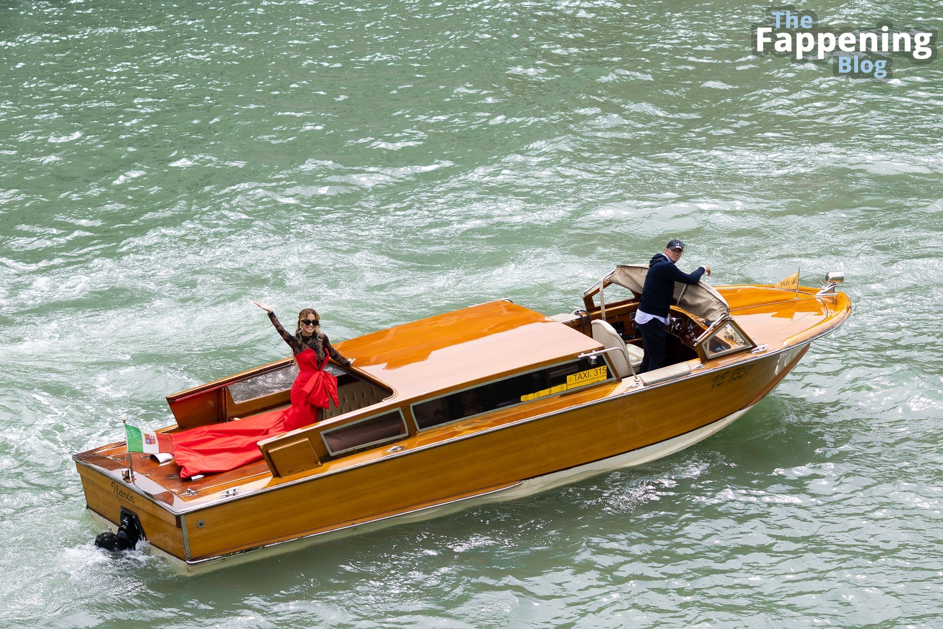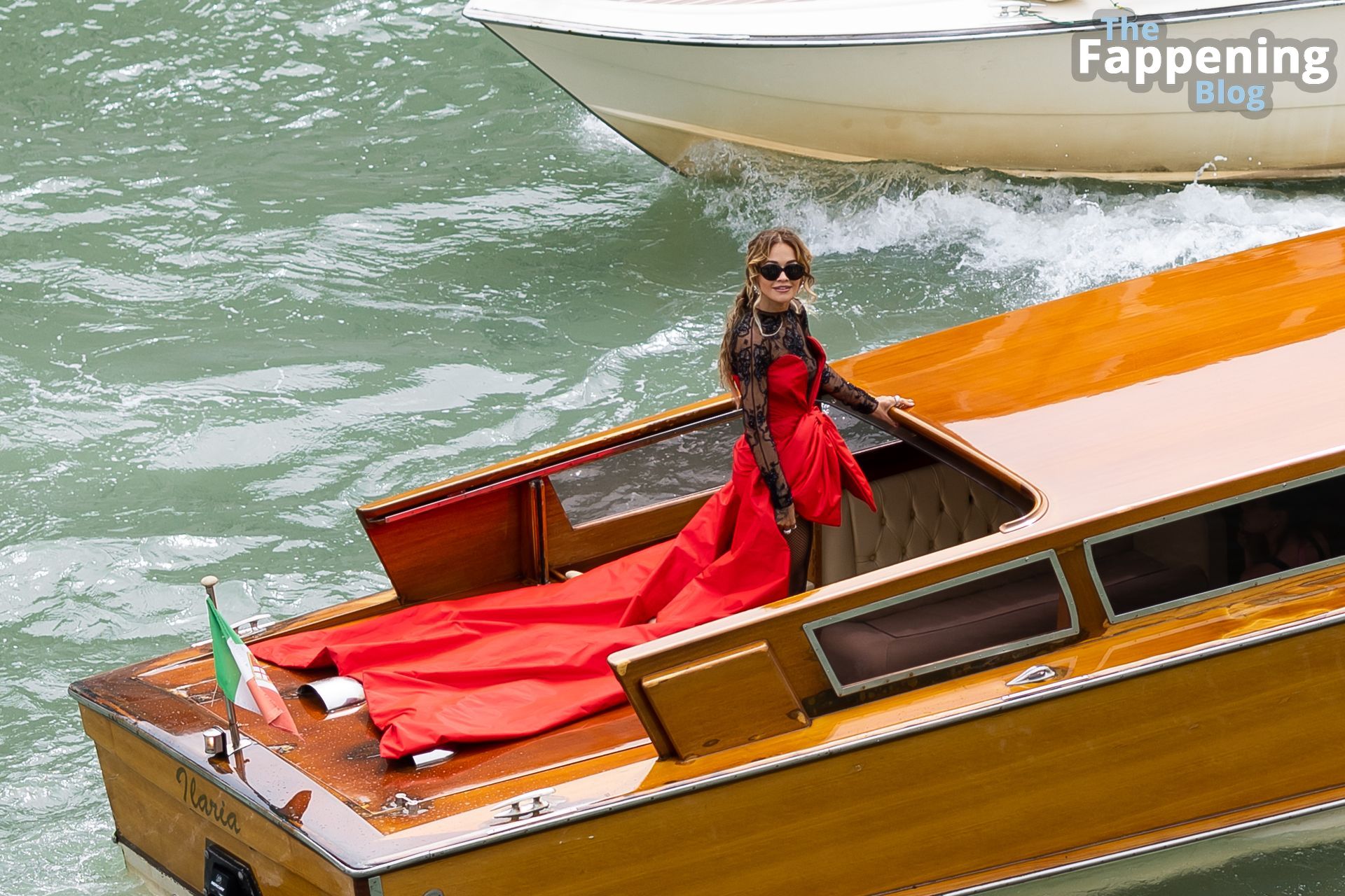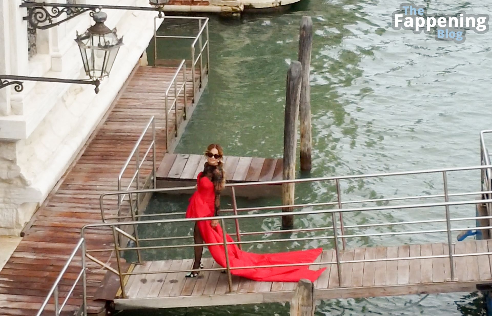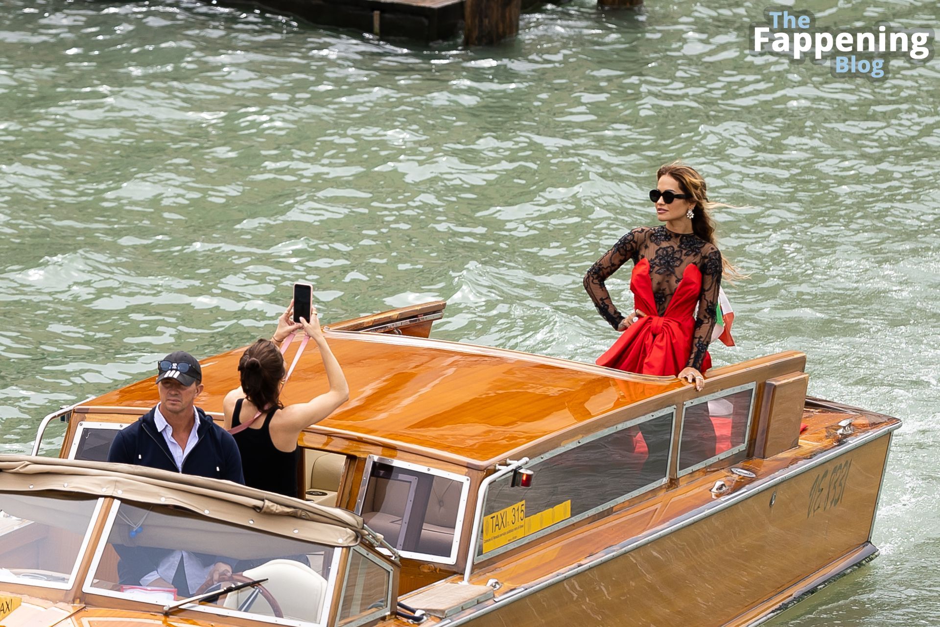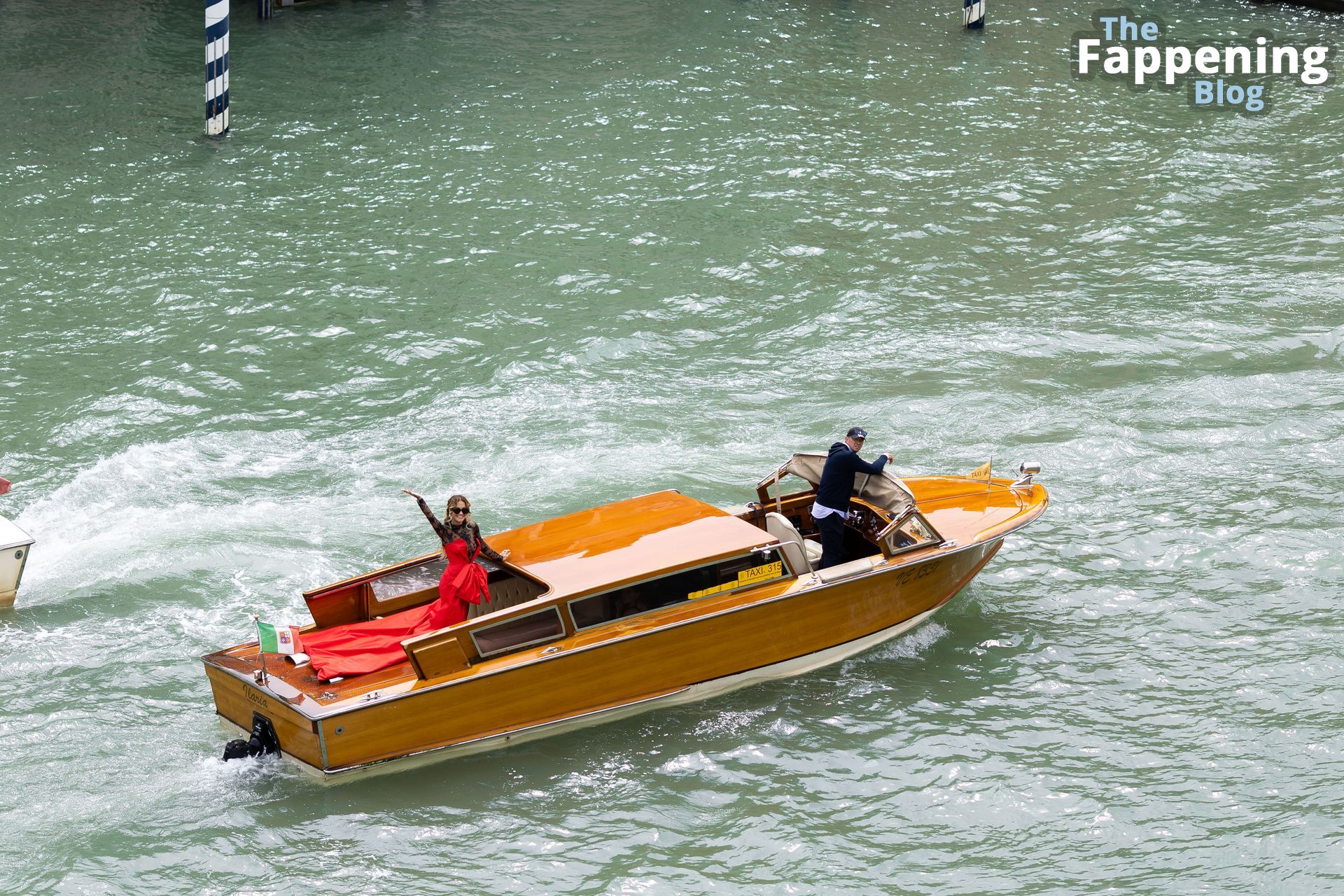 Rita Ora Presume Sus Pechos y un Largo Vestido Rojo de Moschino Caminando hacia un Barco en Venecia (42 Fotos)