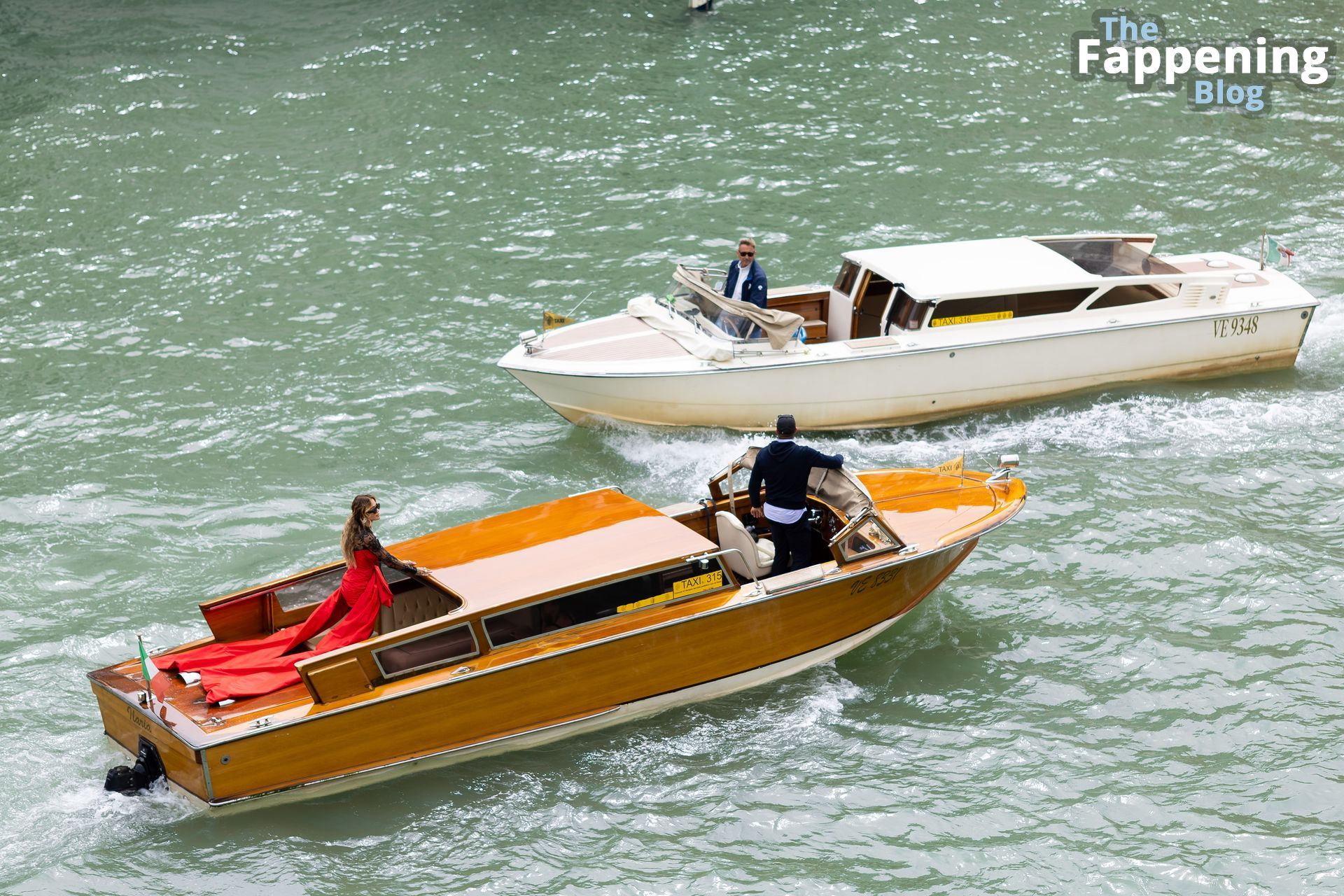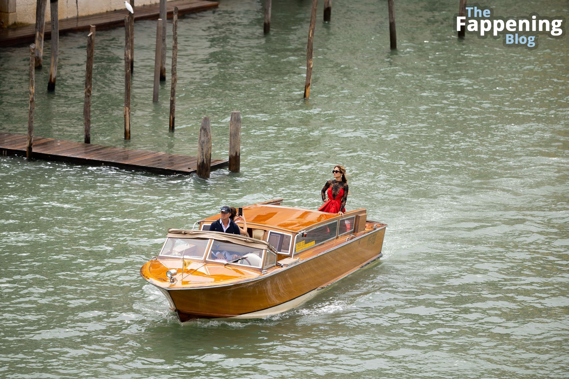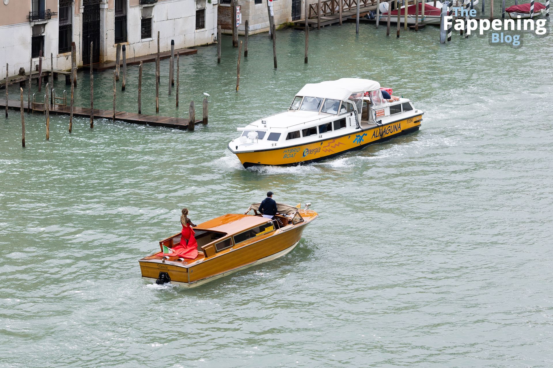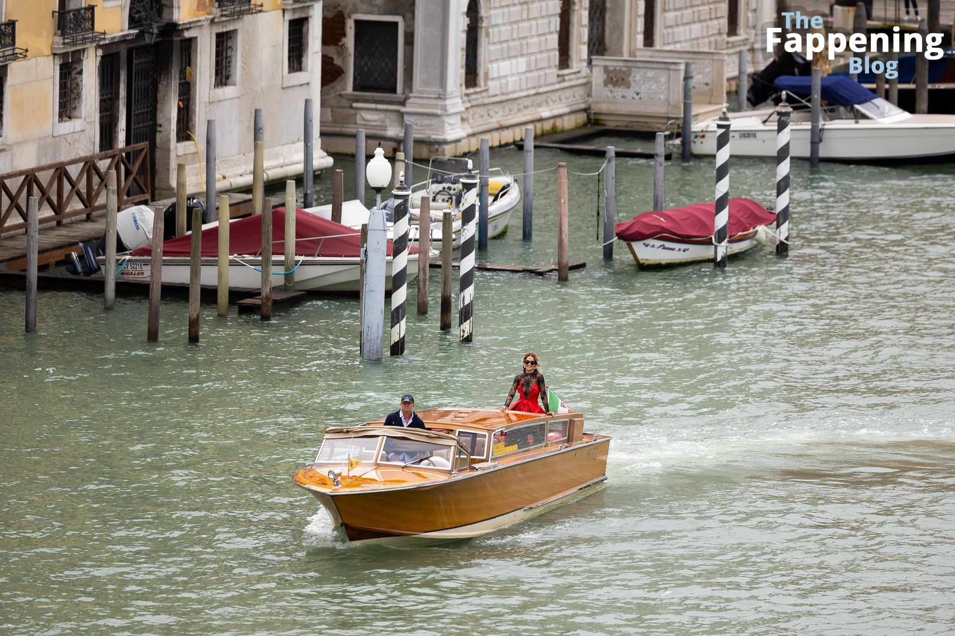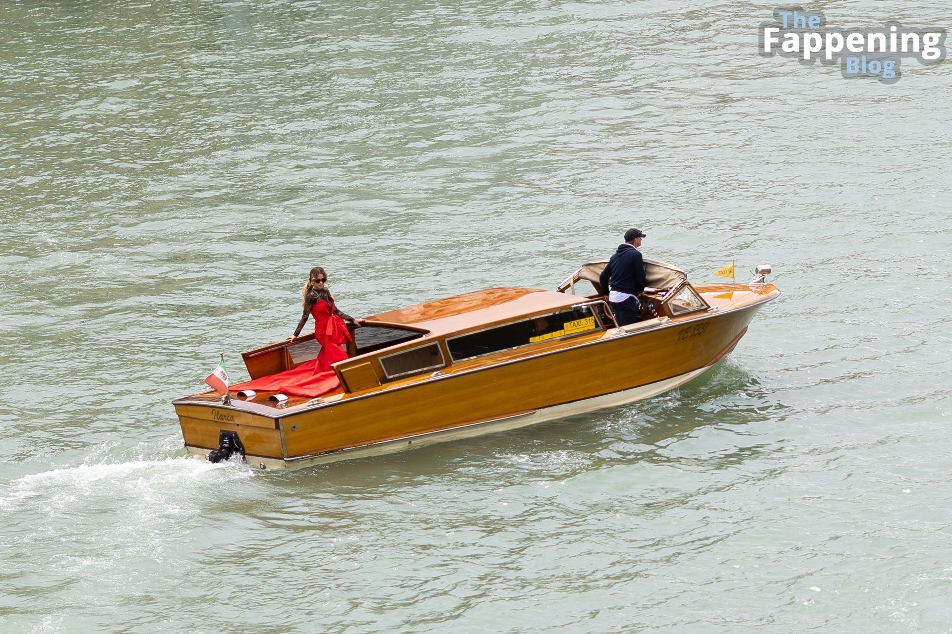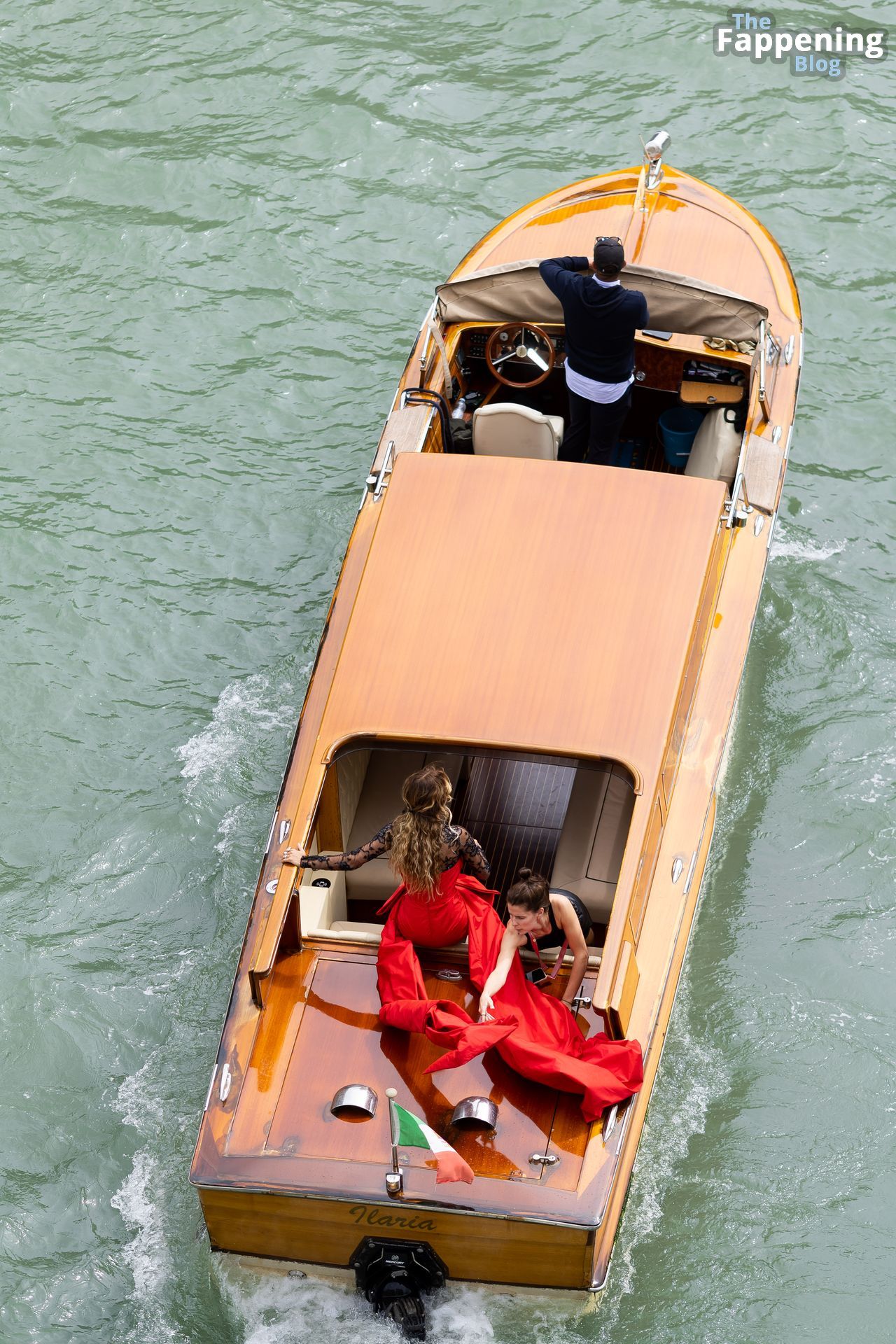 Rita Ora Presume Sus Pechos y un Largo Vestido Rojo de Moschino Caminando hacia un Barco en Venecia (42 Fotos)