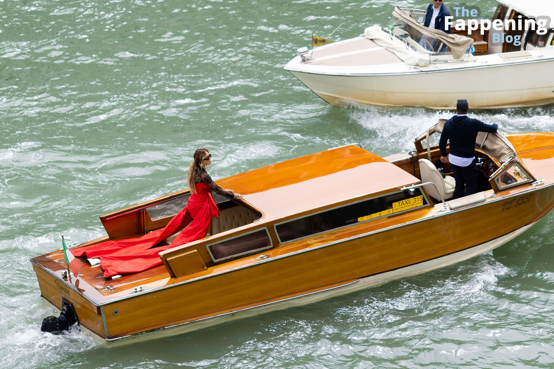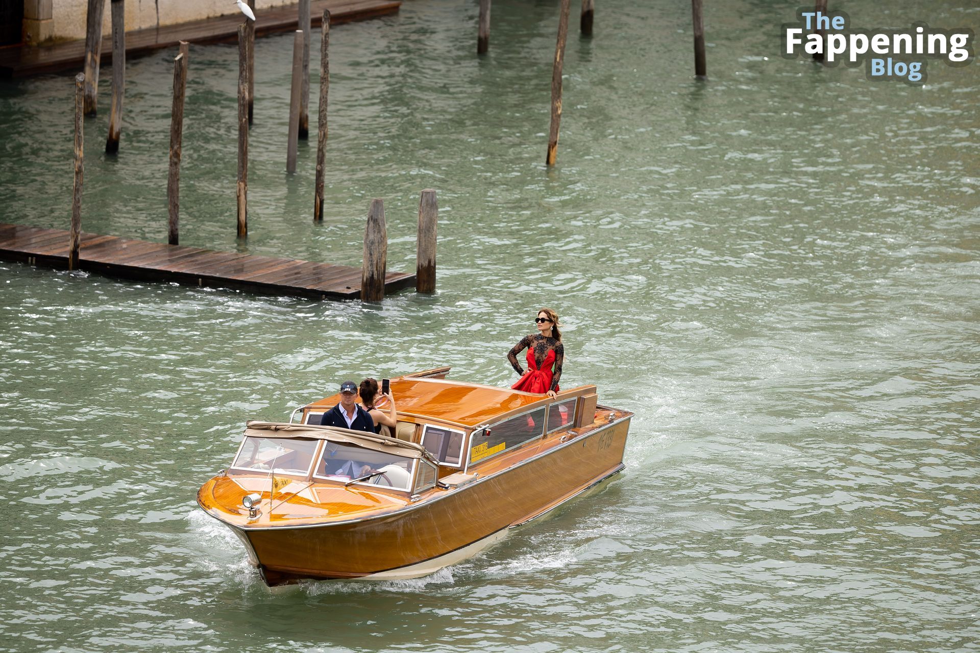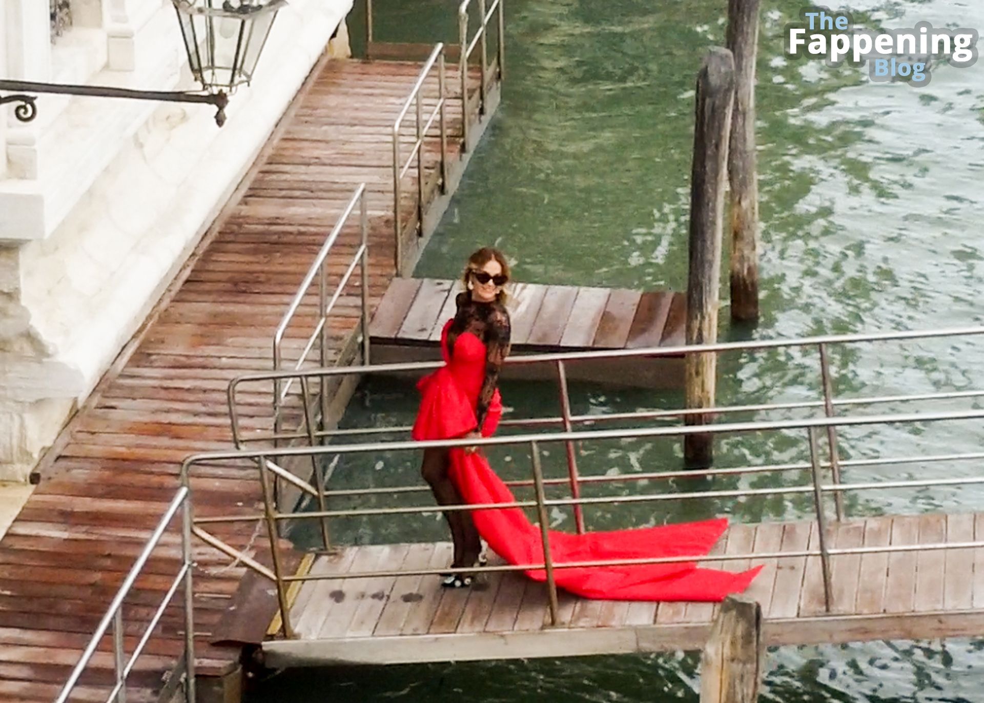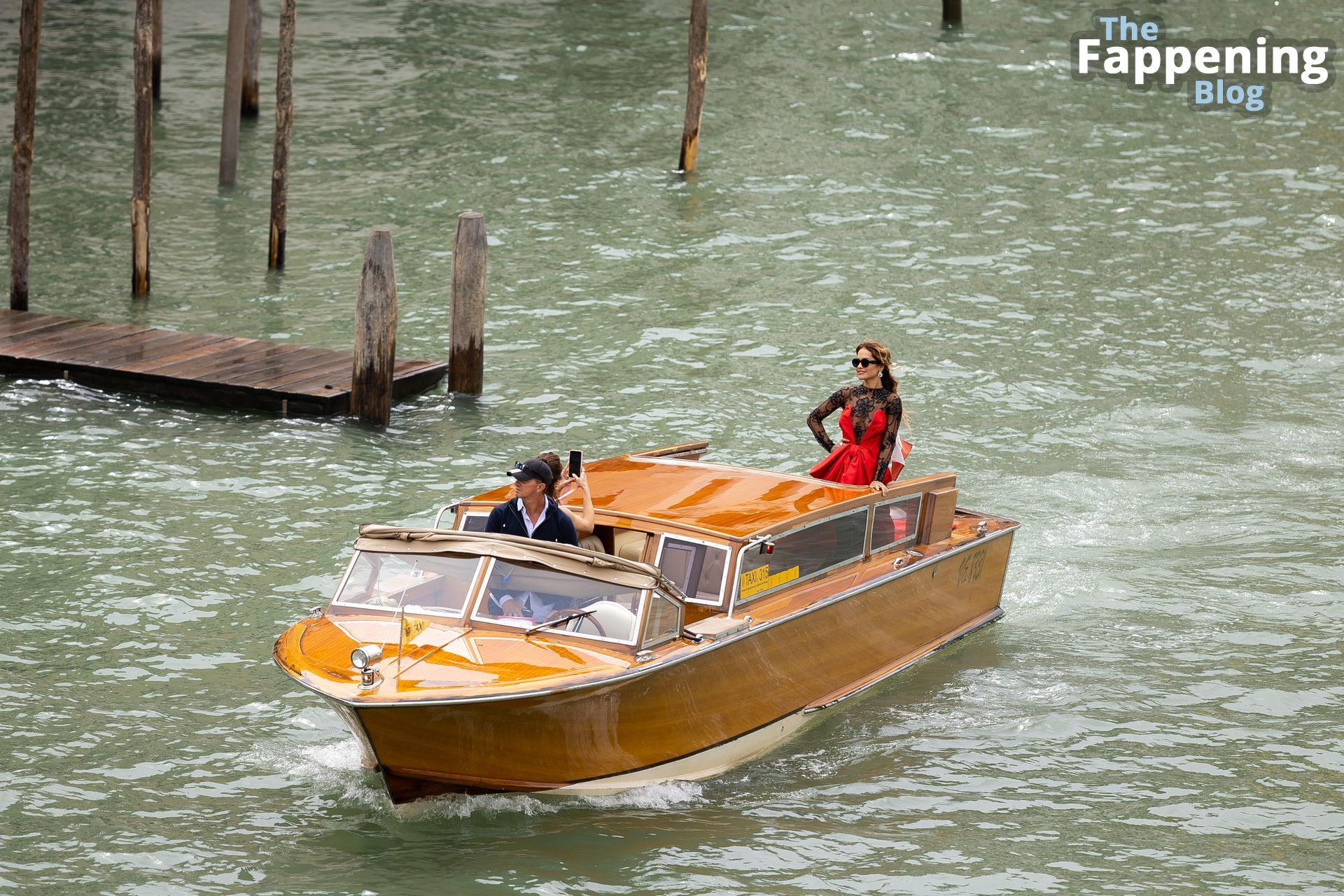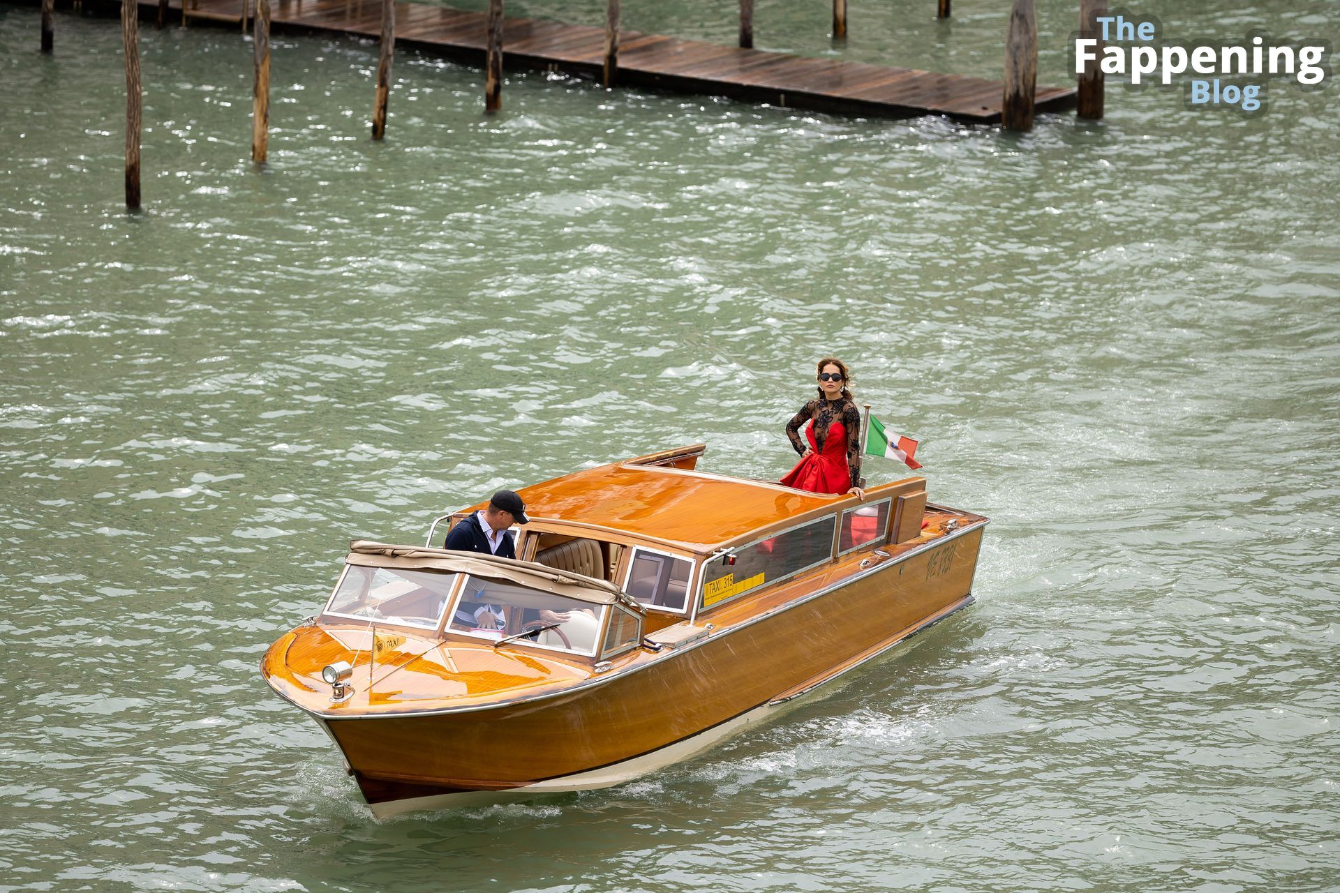 Rita Ora Presume Sus Pechos y un Largo Vestido Rojo de Moschino Caminando hacia un Barco en Venecia (42 Fotos)