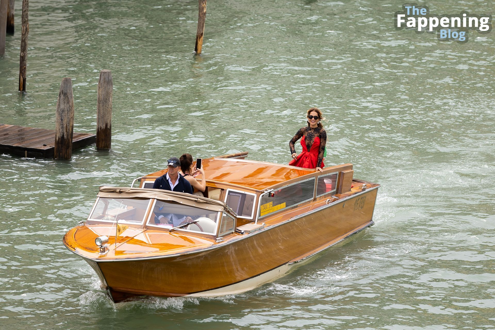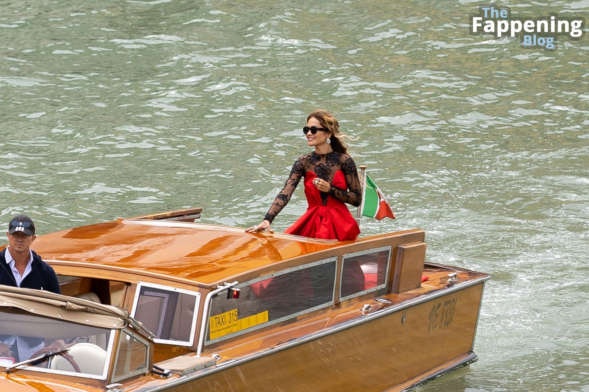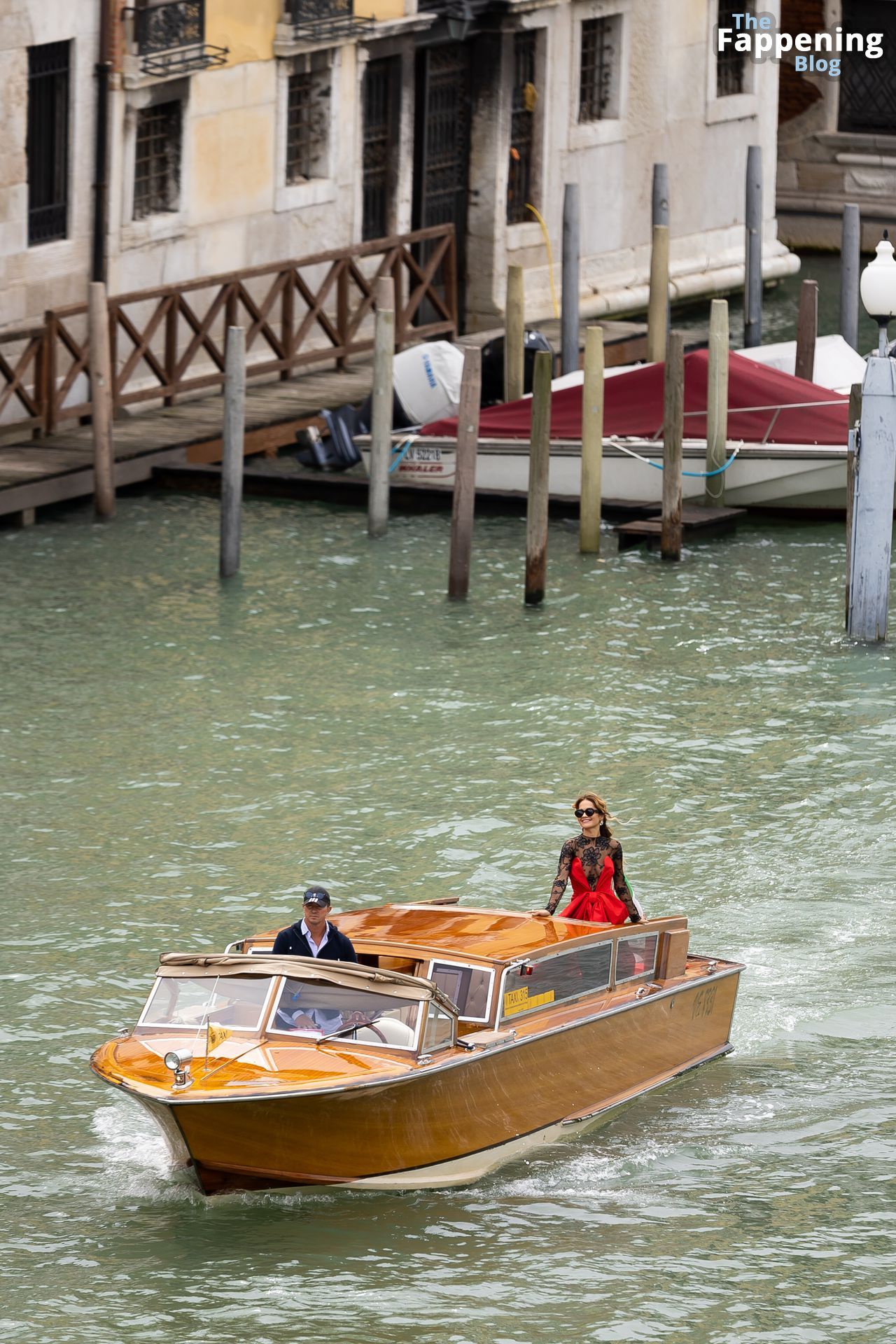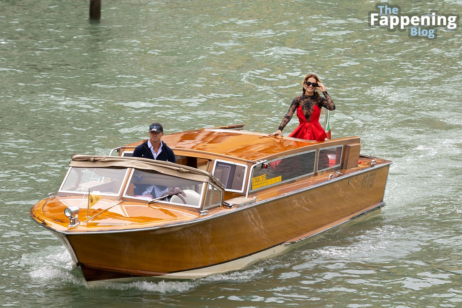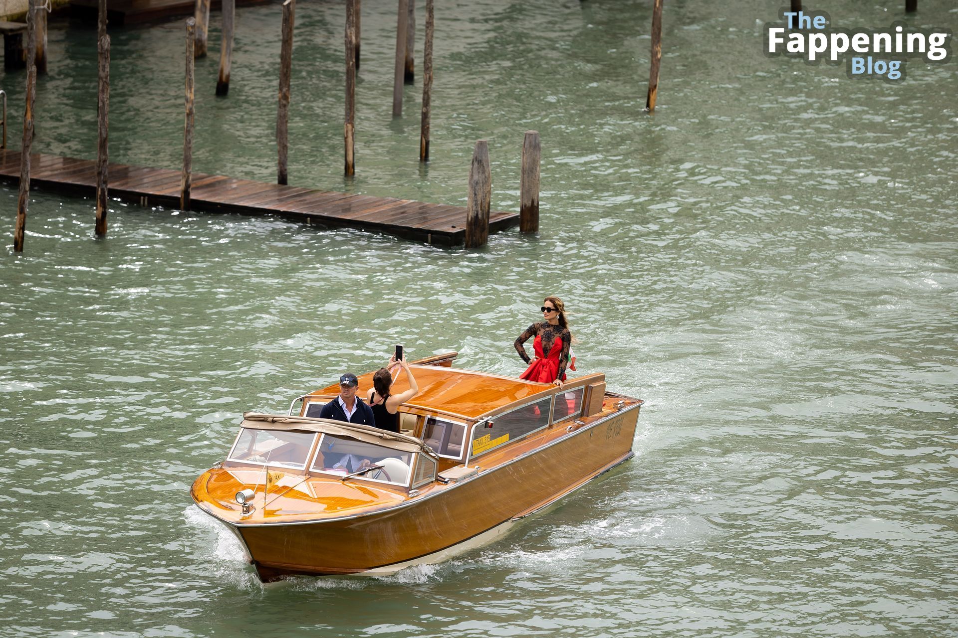 Rita Ora Presume Sus Pechos y un Largo Vestido Rojo de Moschino Caminando hacia un Barco en Venecia (42 Fotos)