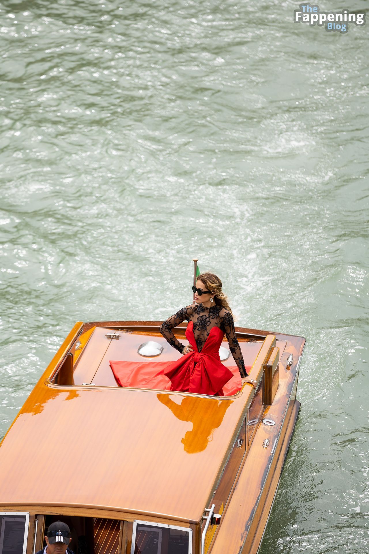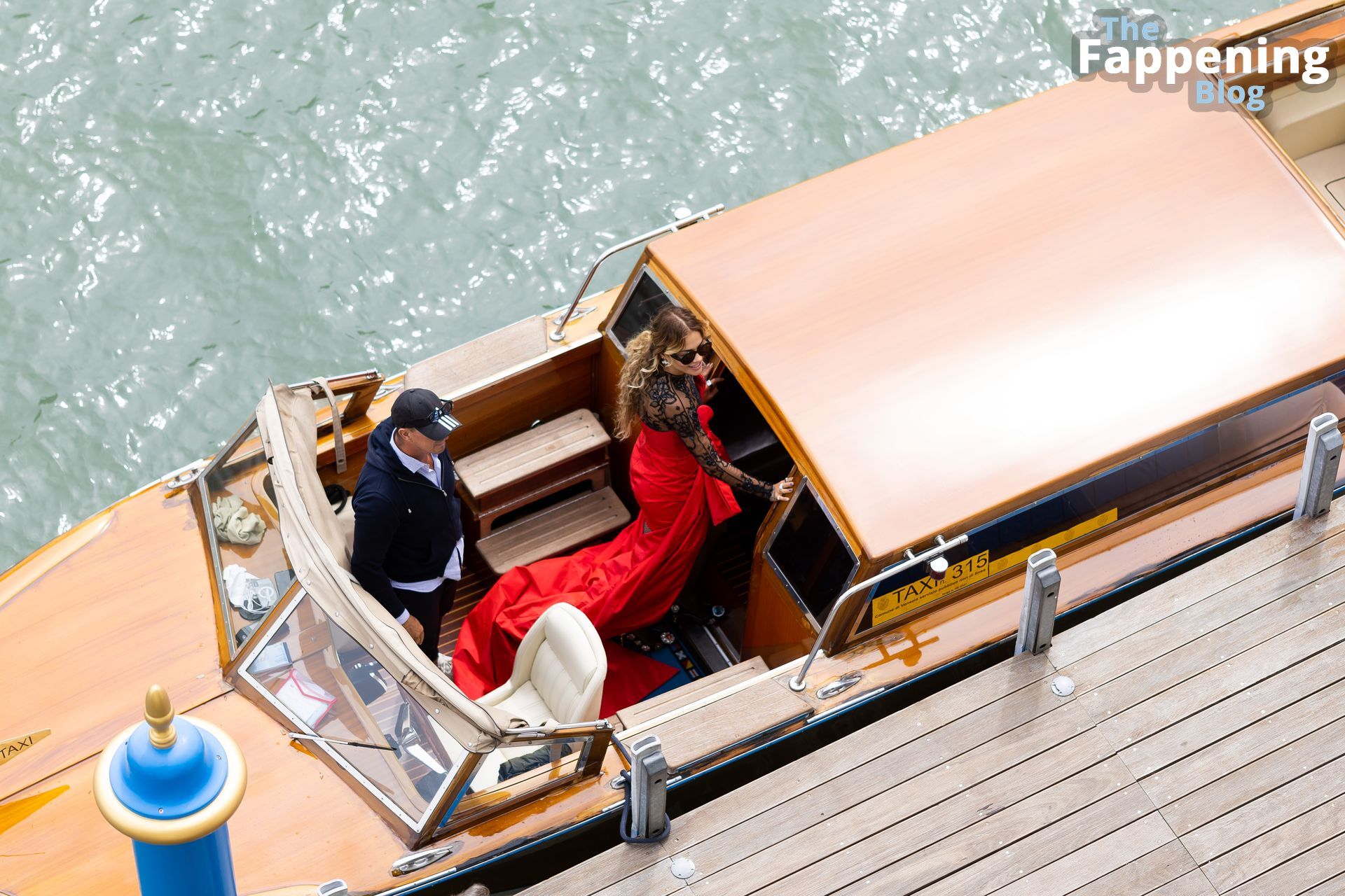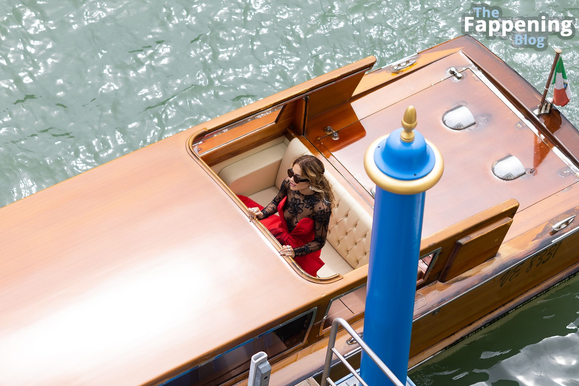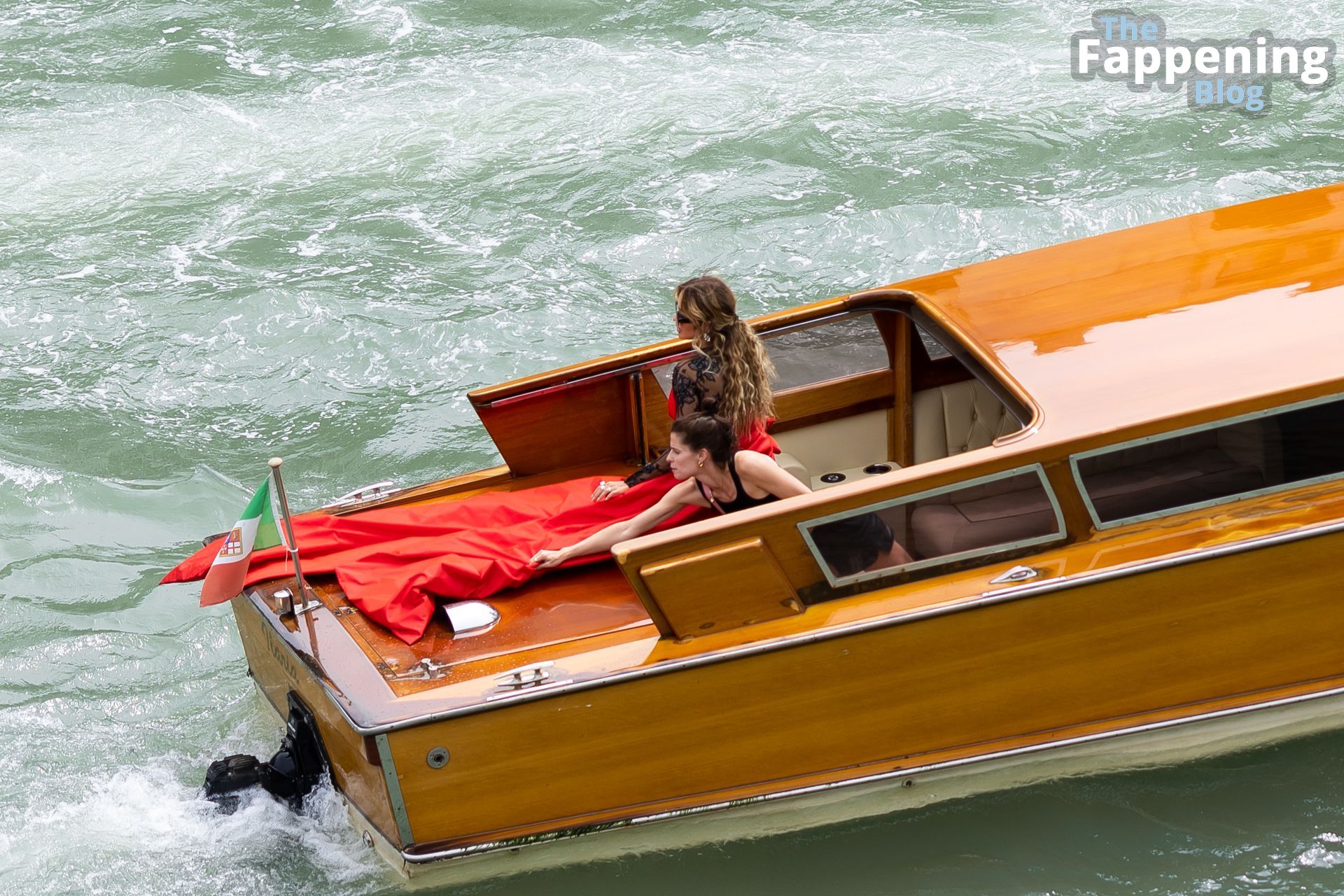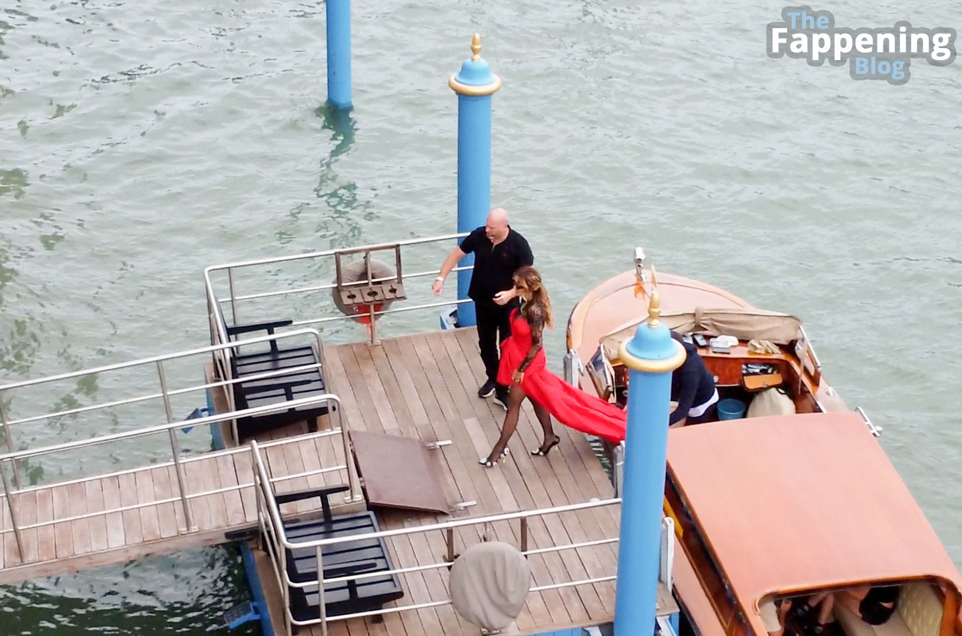 Rita Ora Presume Sus Pechos y un Largo Vestido Rojo de Moschino Caminando hacia un Barco en Venecia (42 Fotos)