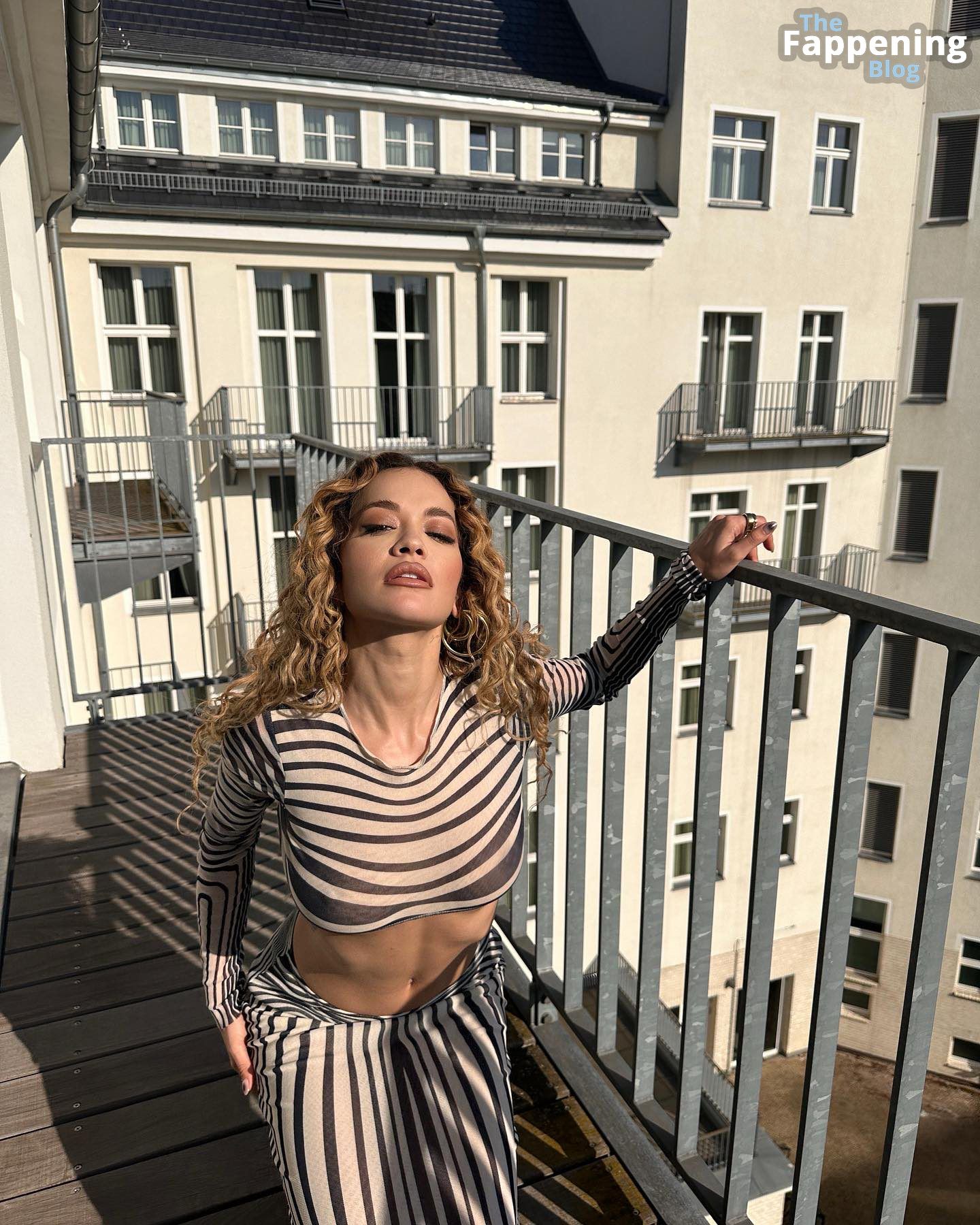 ¡Prepárate para sorprenderte con la increíble sesión de fotos en el balcón de Rita Ora en Berlín! Ella luce ese estilo sin sujetador y sin miedo, viéndose absolutamente impresionante con una blusa ligeramente transparente.