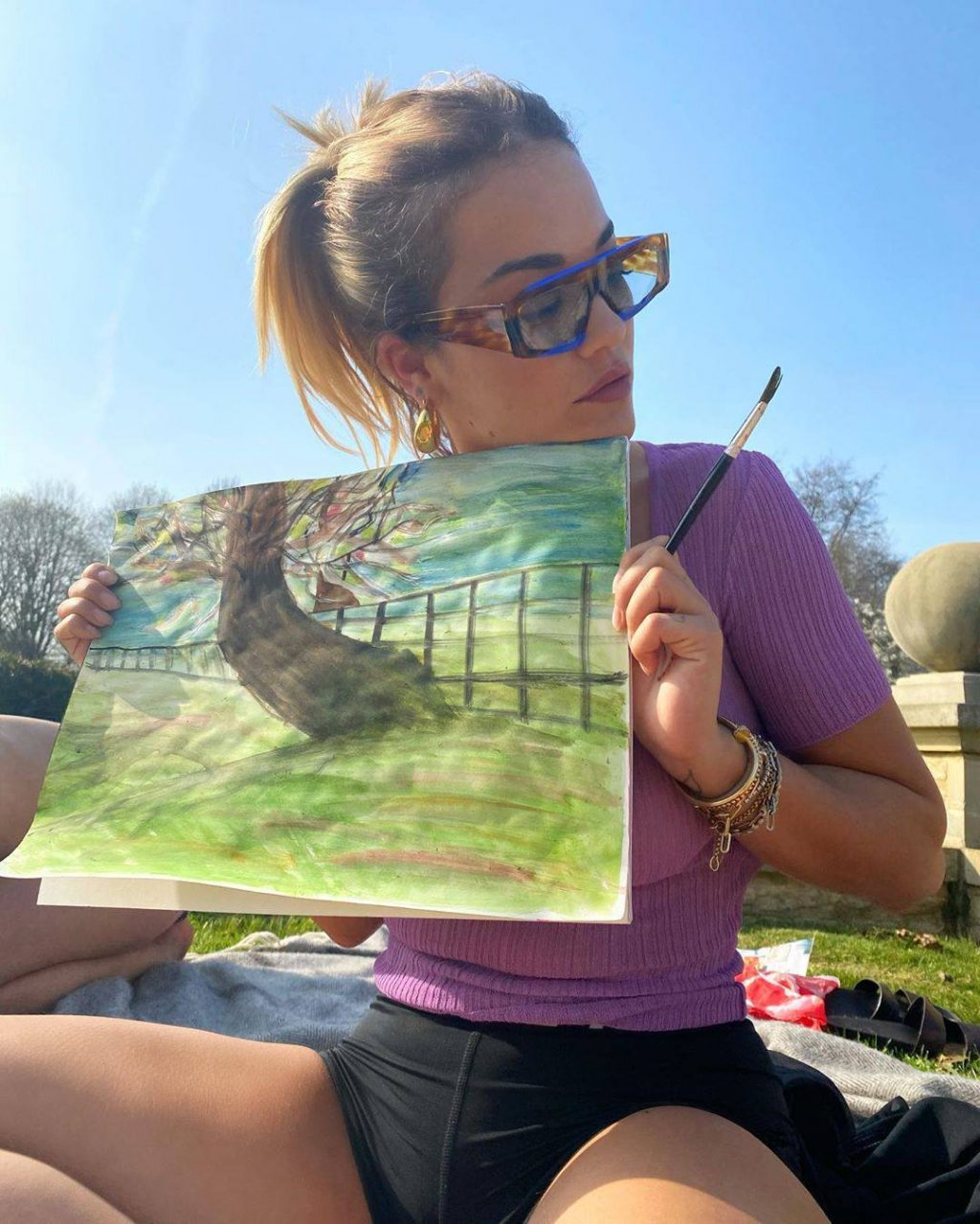 Rita Ora compartió algunas fotos sexys para #stayhome – Instagram, 04/10/2020. La cantante de 29 años censuró sus pechos mientras posaba con una camiseta rosa transparente en el césped.