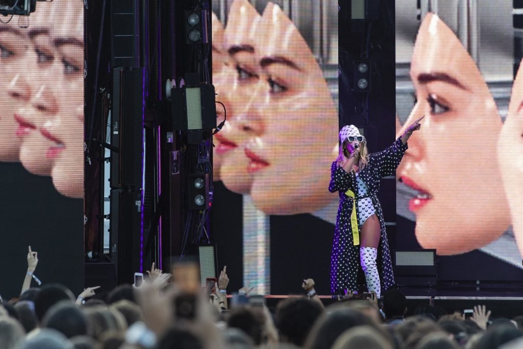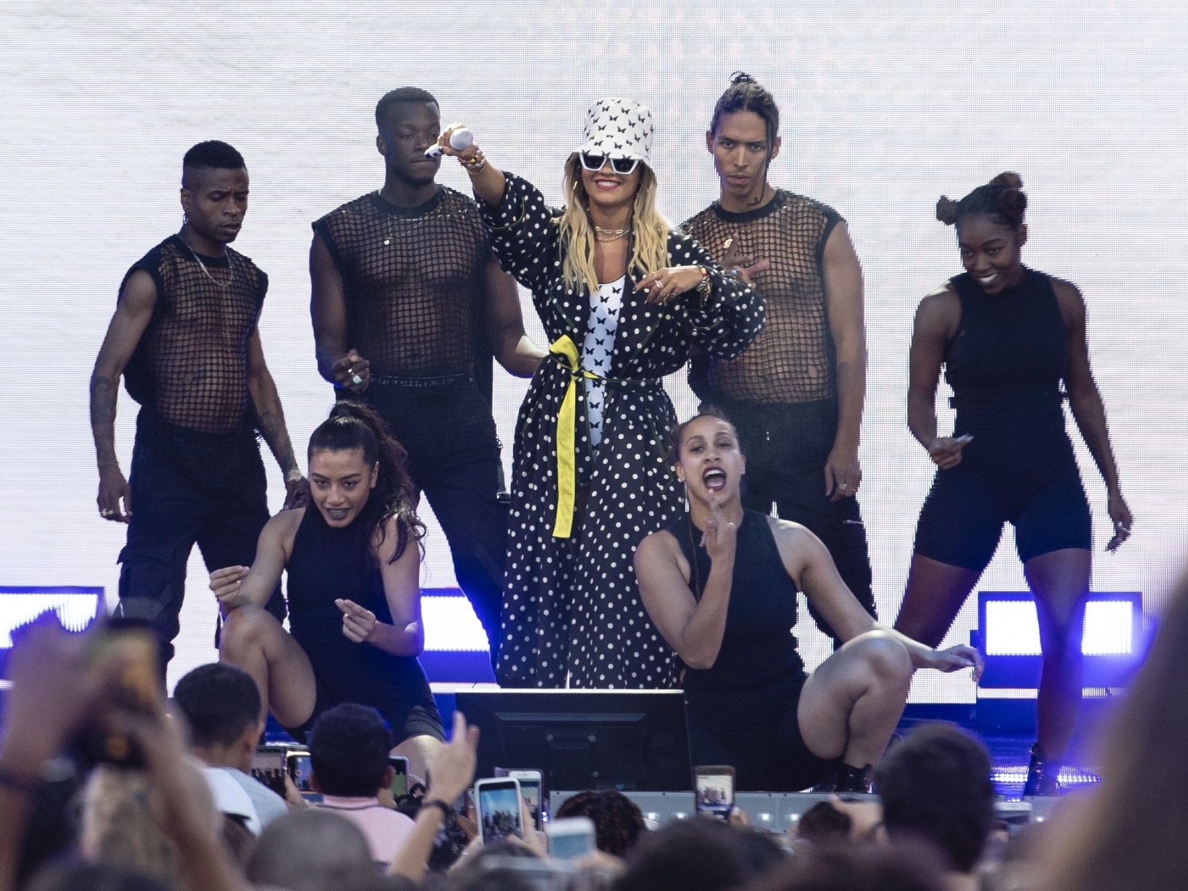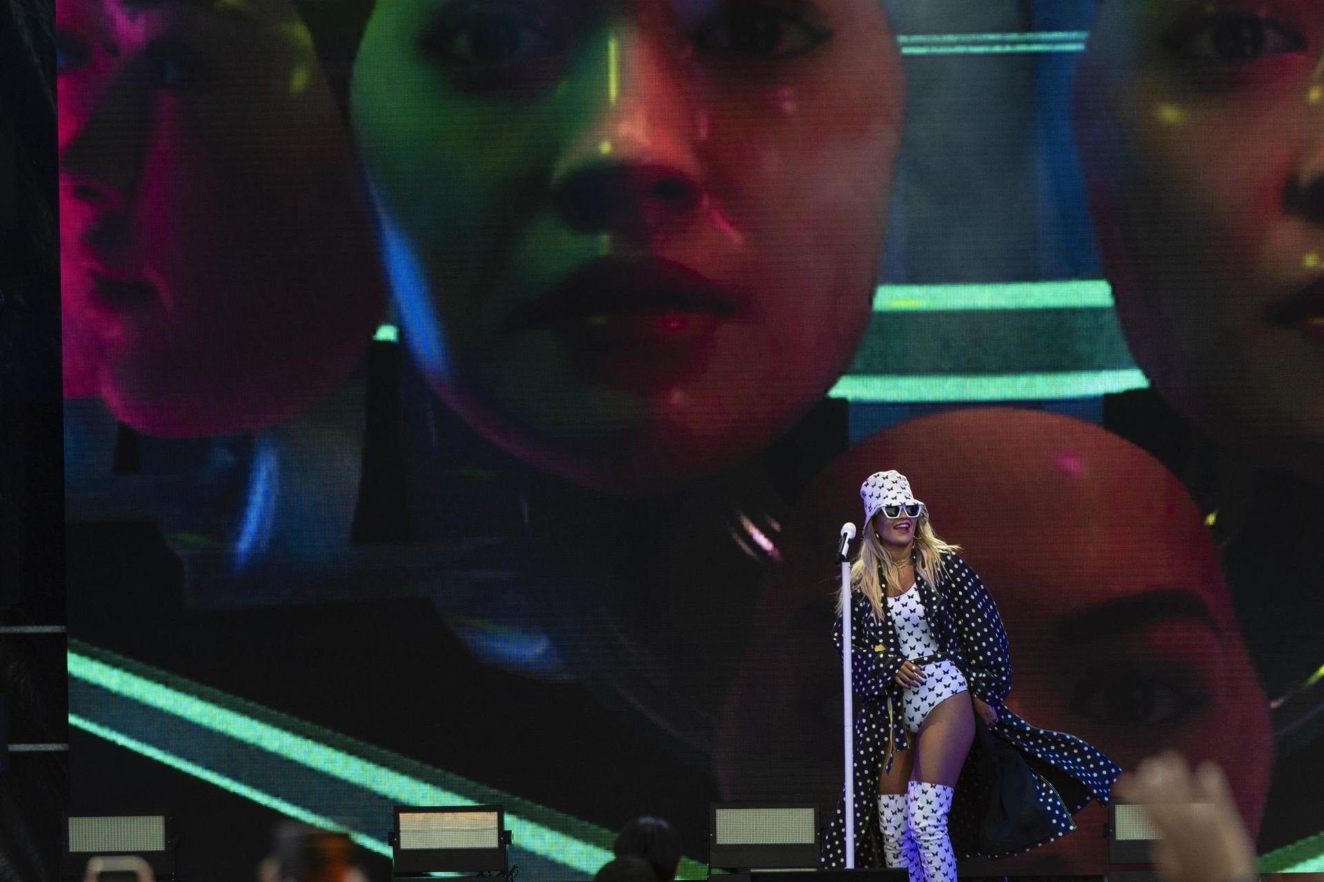 La cantante Rita Ora actúa durante conciertos privados en Velizy 2 y Parly 2 en Vélizy-Villacoublay, Francia, 14/09/2019.