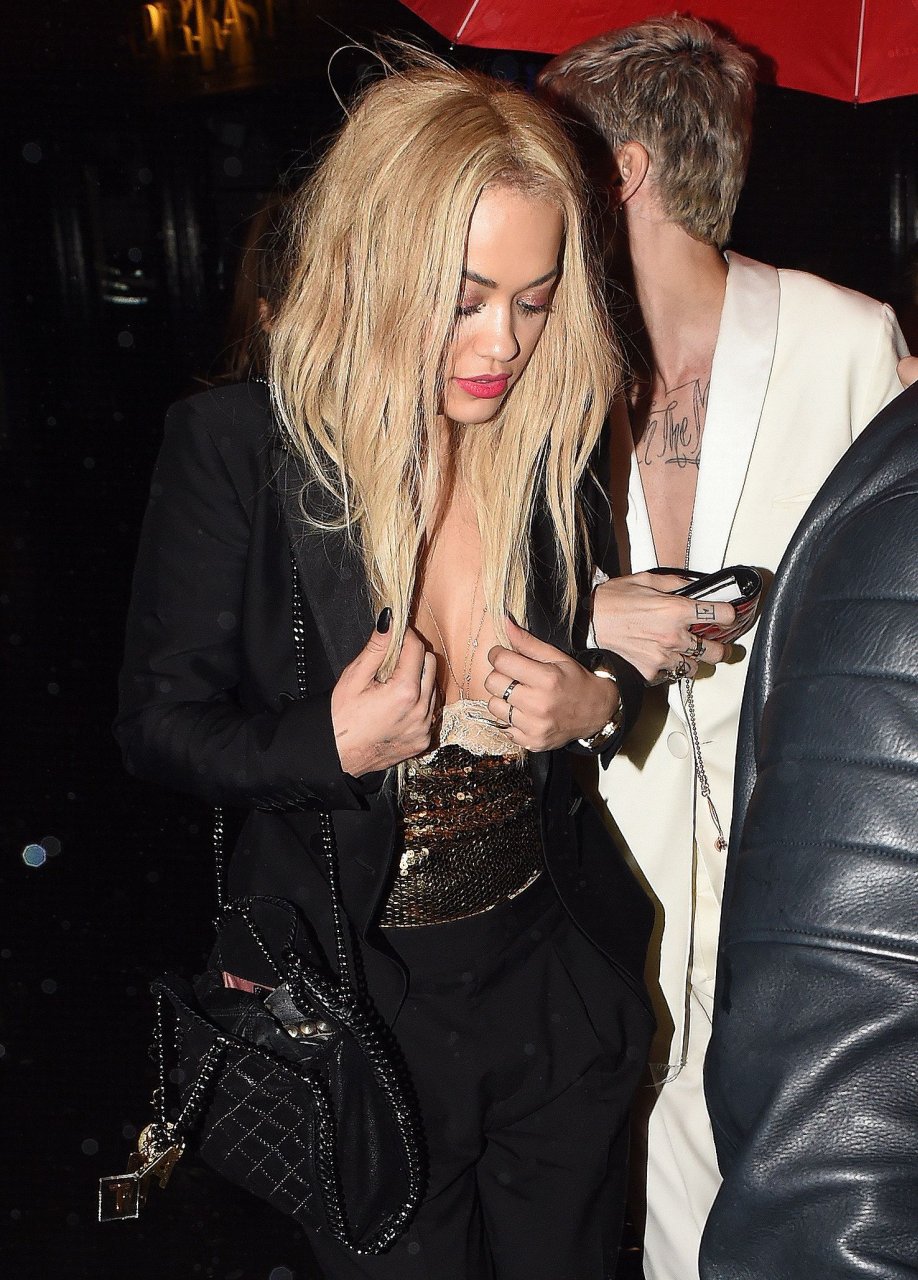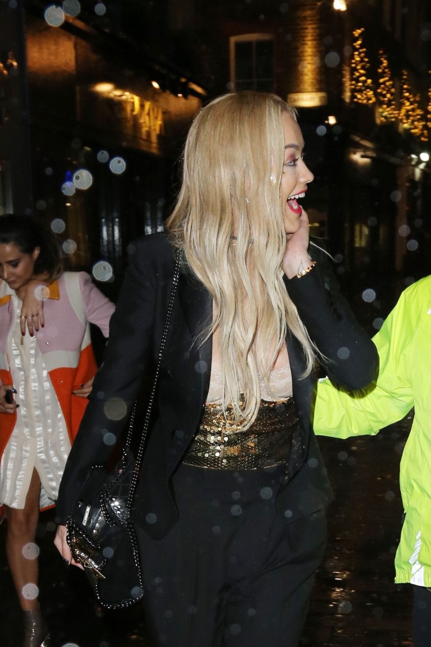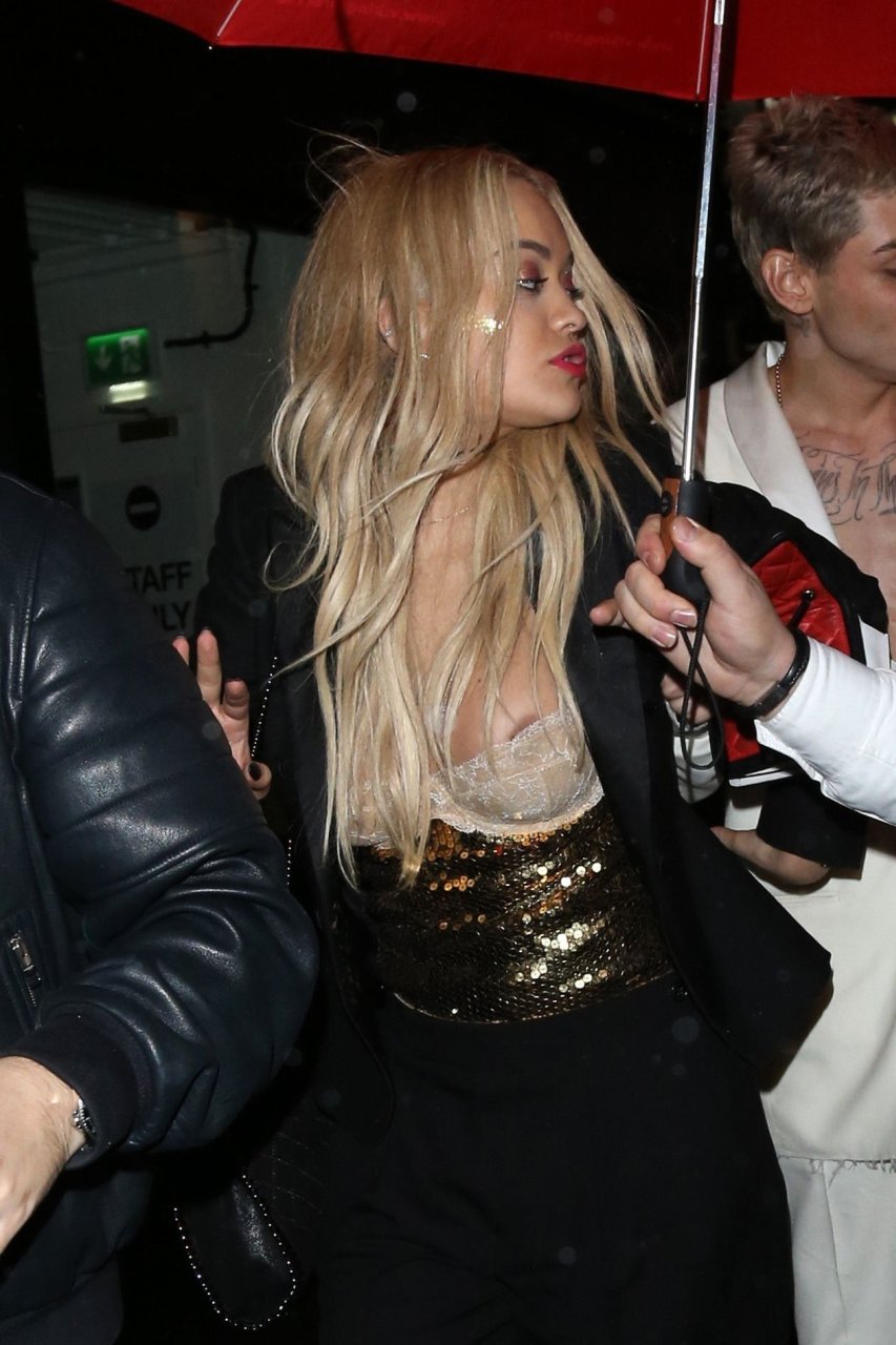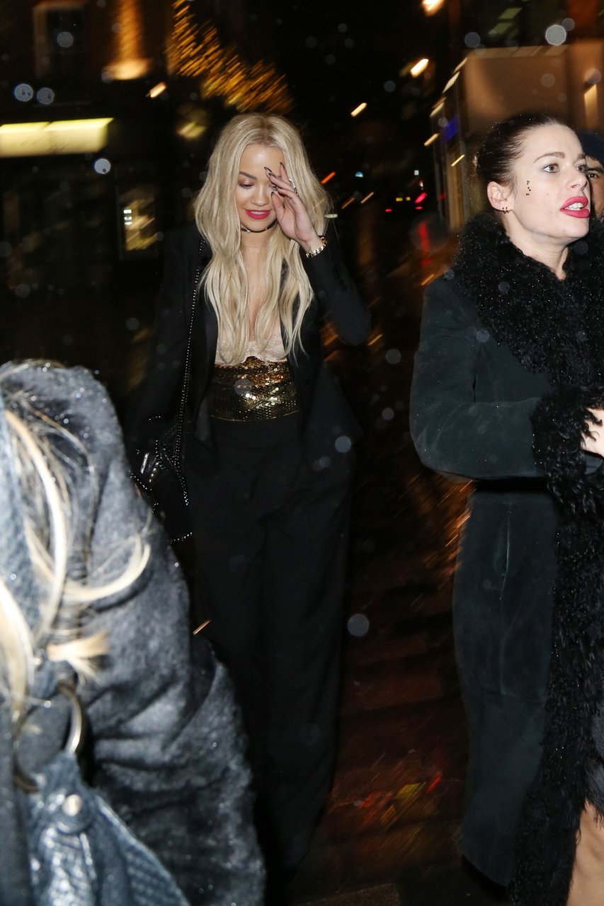Nuevas fotos de paparazzi de Rita Ora con un sujetador de encaje fuera del restaurante China Tang en Londres, 30/11/15. Rita Ora es una cantante, compositora y actriz británica. Edad 25 (26 de noviembre de 1990).