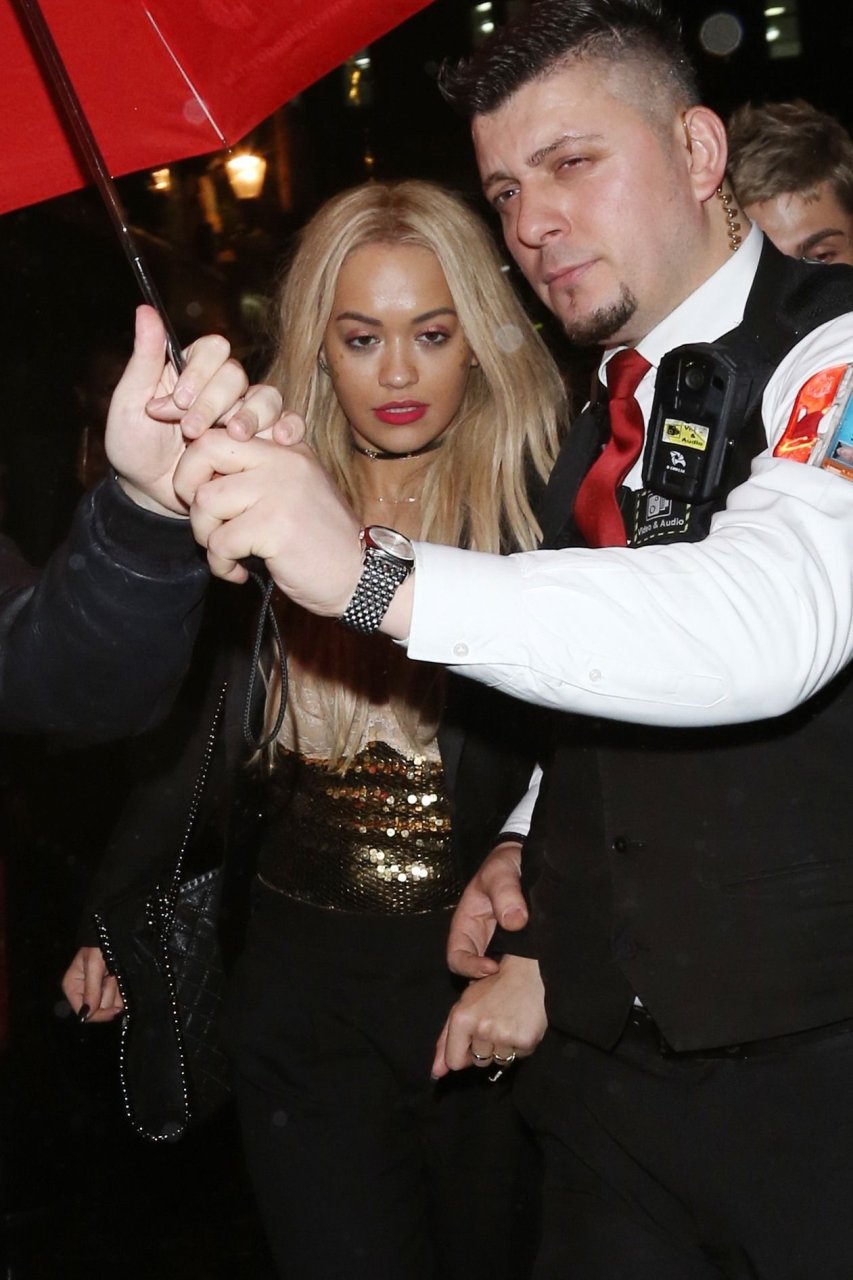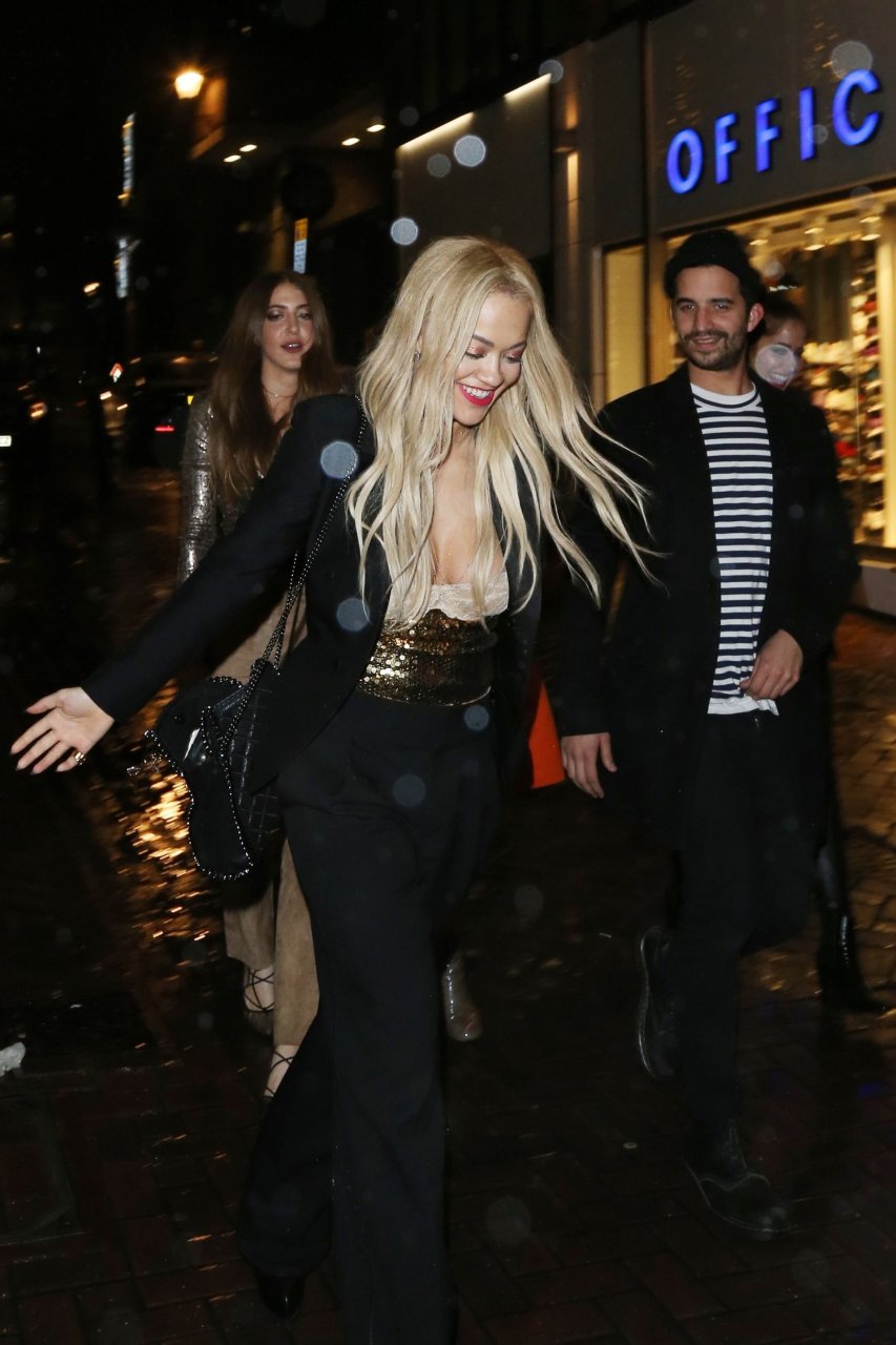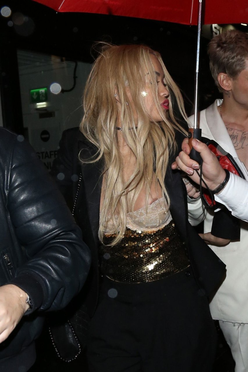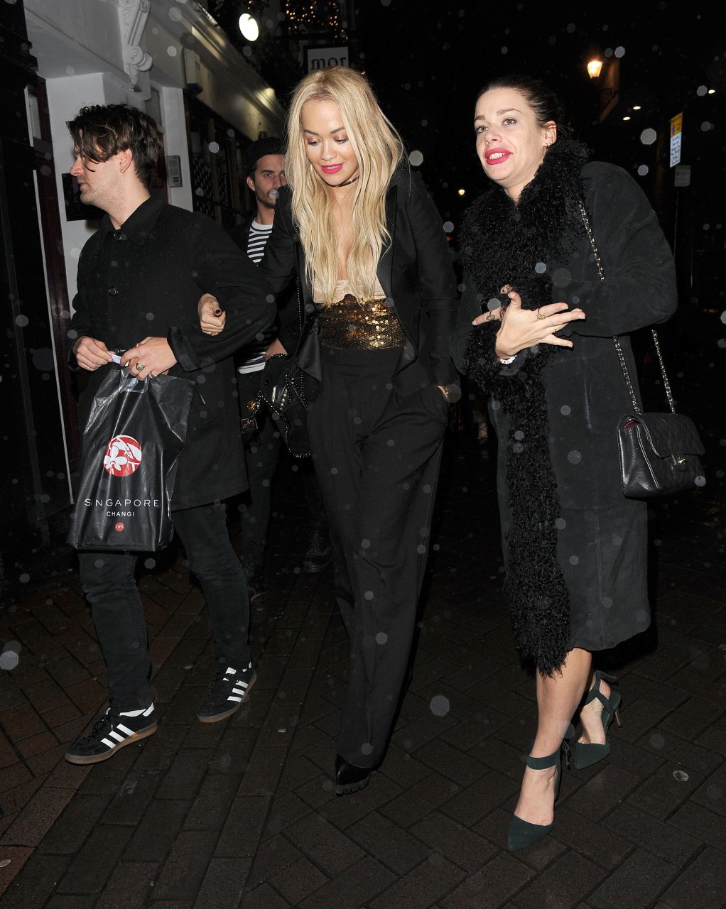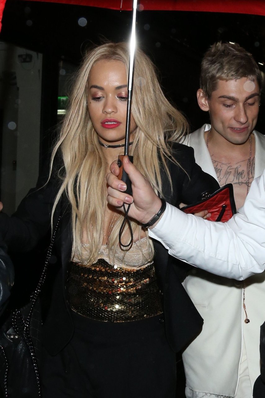 Nuevas fotos de paparazzi de Rita Ora con un sujetador de encaje fuera del restaurante China Tang en Londres, 30/11/15. Rita Ora es una cantante, compositora y actriz británica. Edad 25 (26 de noviembre de 1990).