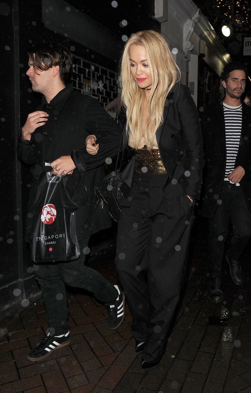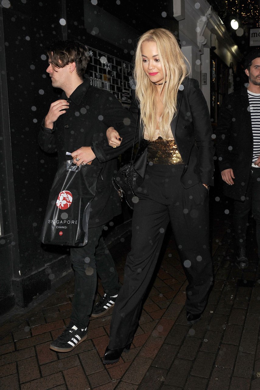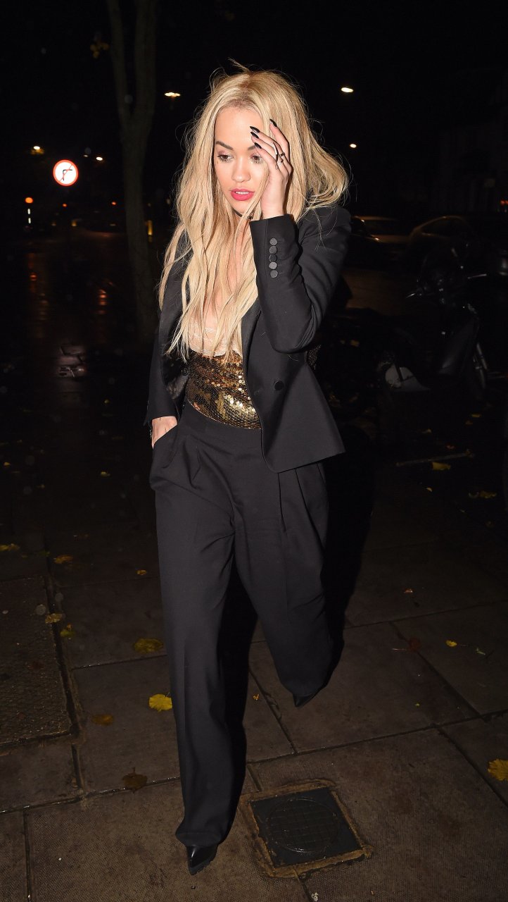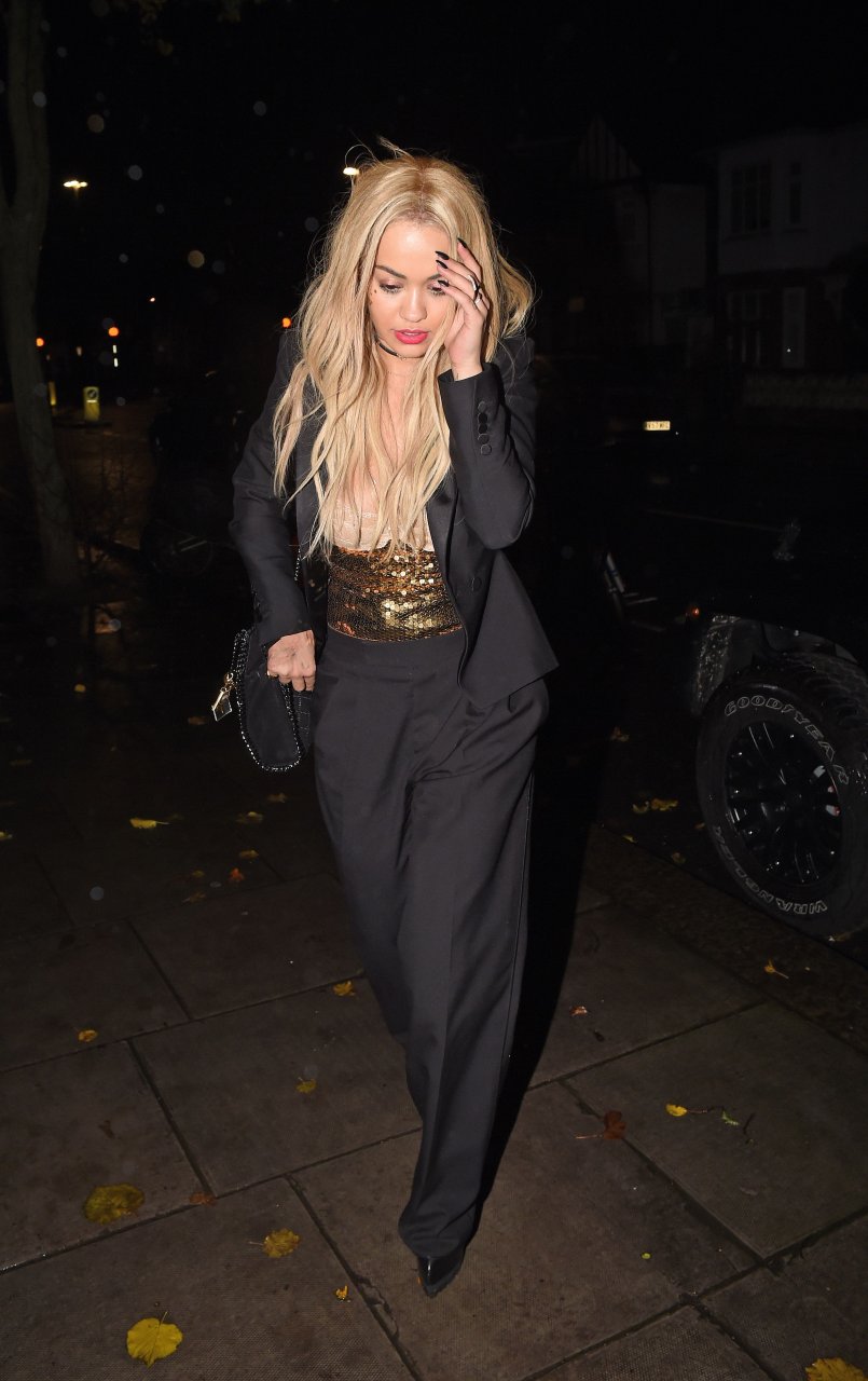 Nuevas fotos de paparazzi de Rita Ora con un sujetador de encaje fuera del restaurante China Tang en Londres, 30/11/15. Rita Ora es una cantante, compositora y actriz británica. Edad 25 (26 de noviembre de 1990).