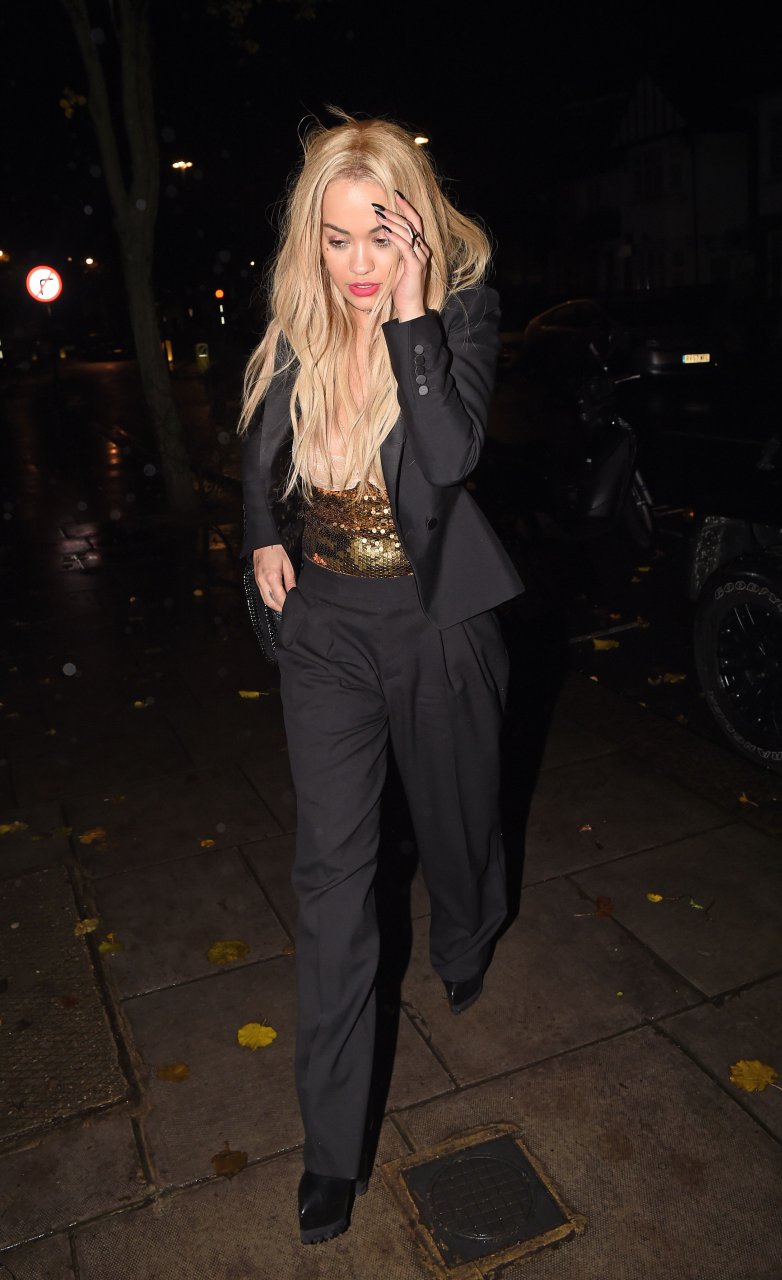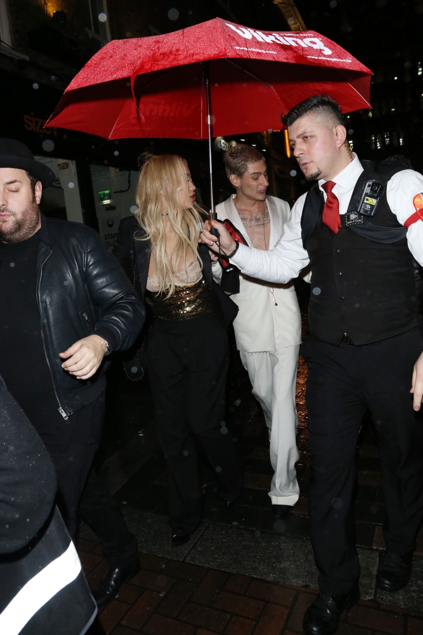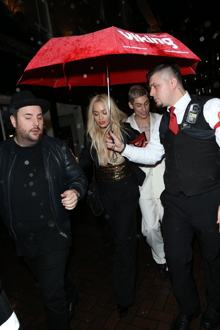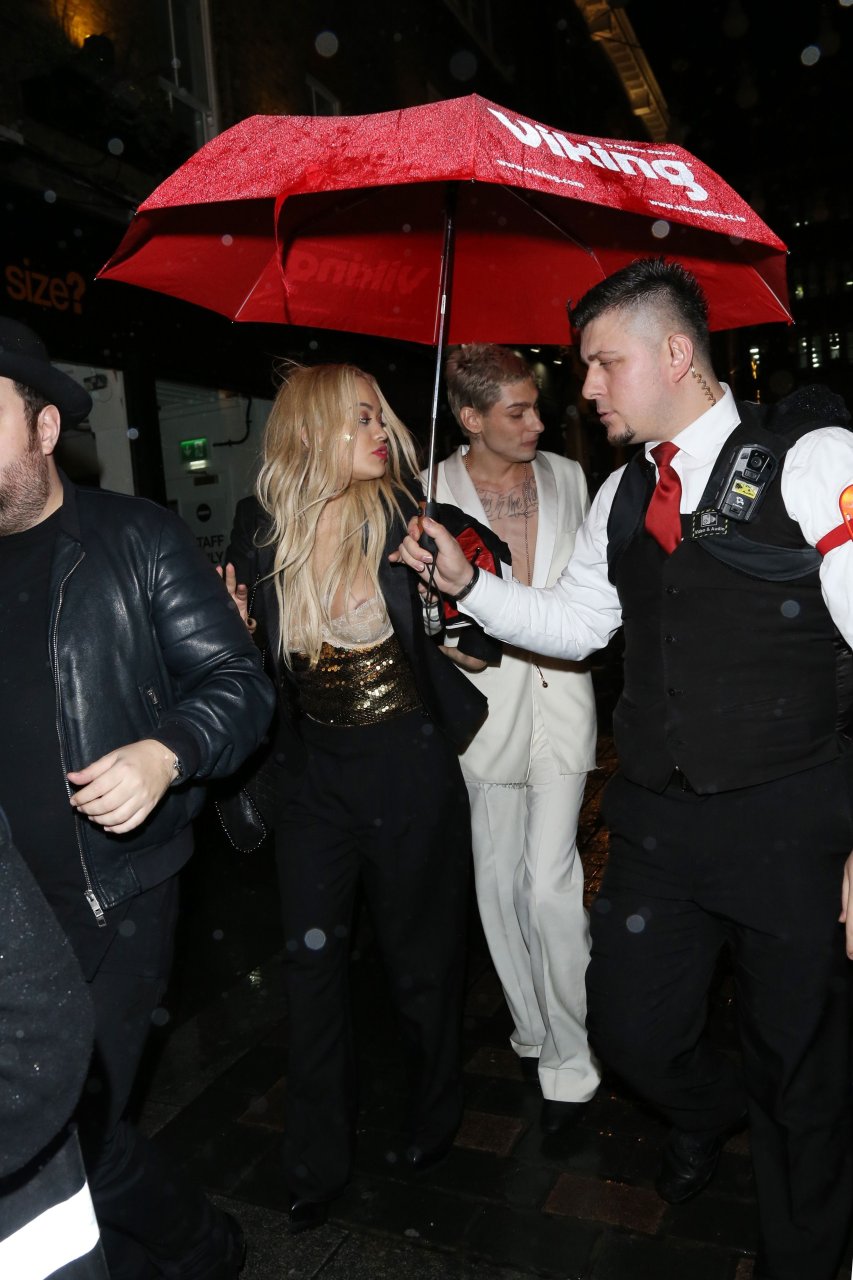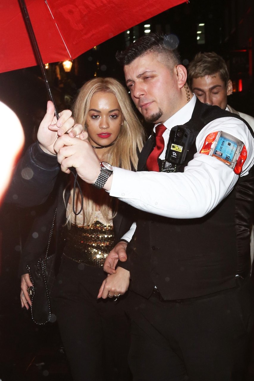 Nuevas fotos de paparazzi de Rita Ora con un sujetador de encaje fuera del restaurante China Tang en Londres, 30/11/15. Rita Ora es una cantante, compositora y actriz británica. Edad 25 (26 de noviembre de 1990).