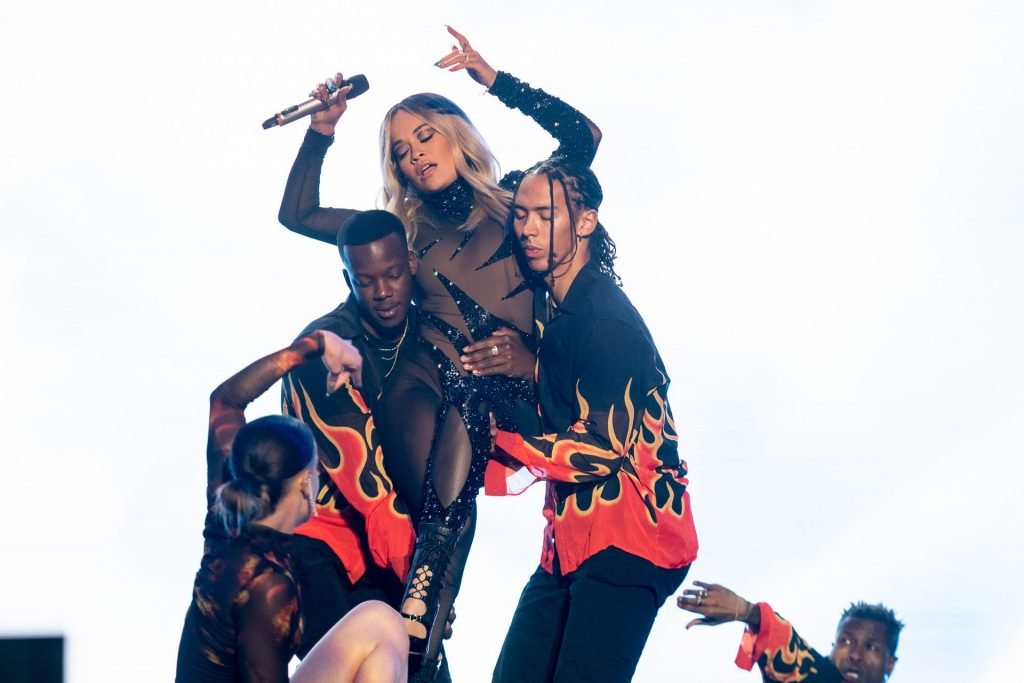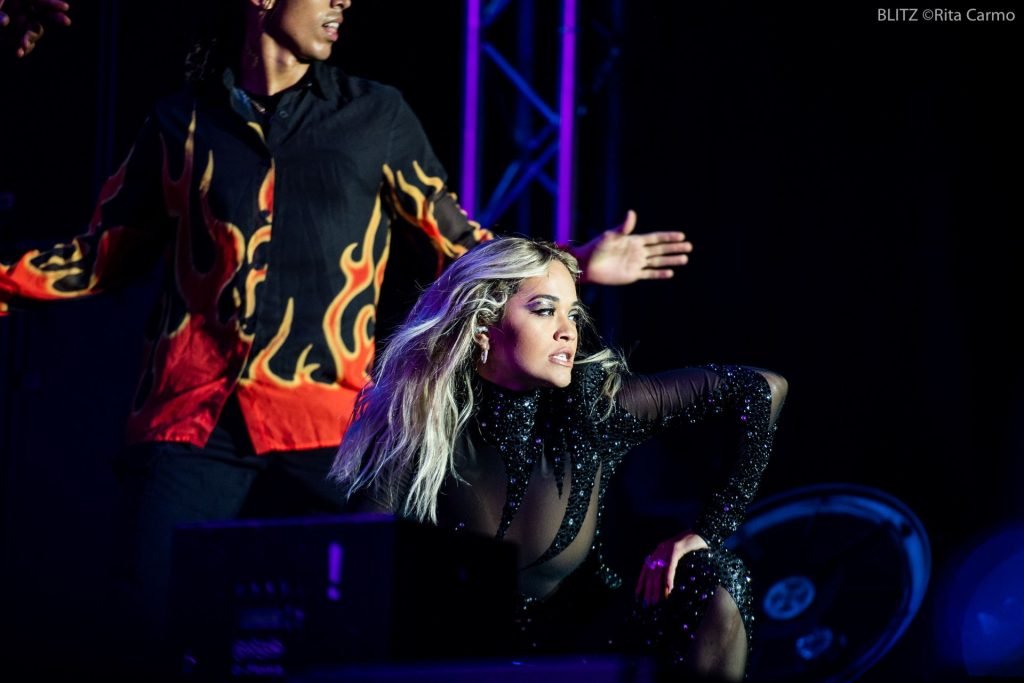 Rita Ora actúa en la 23ª edición del Festival Meo Sudoeste en Zambujeira do Mar, Portugal, 08/10/2019. La cantante eligió para el concierto un ajustado conjunto negro.