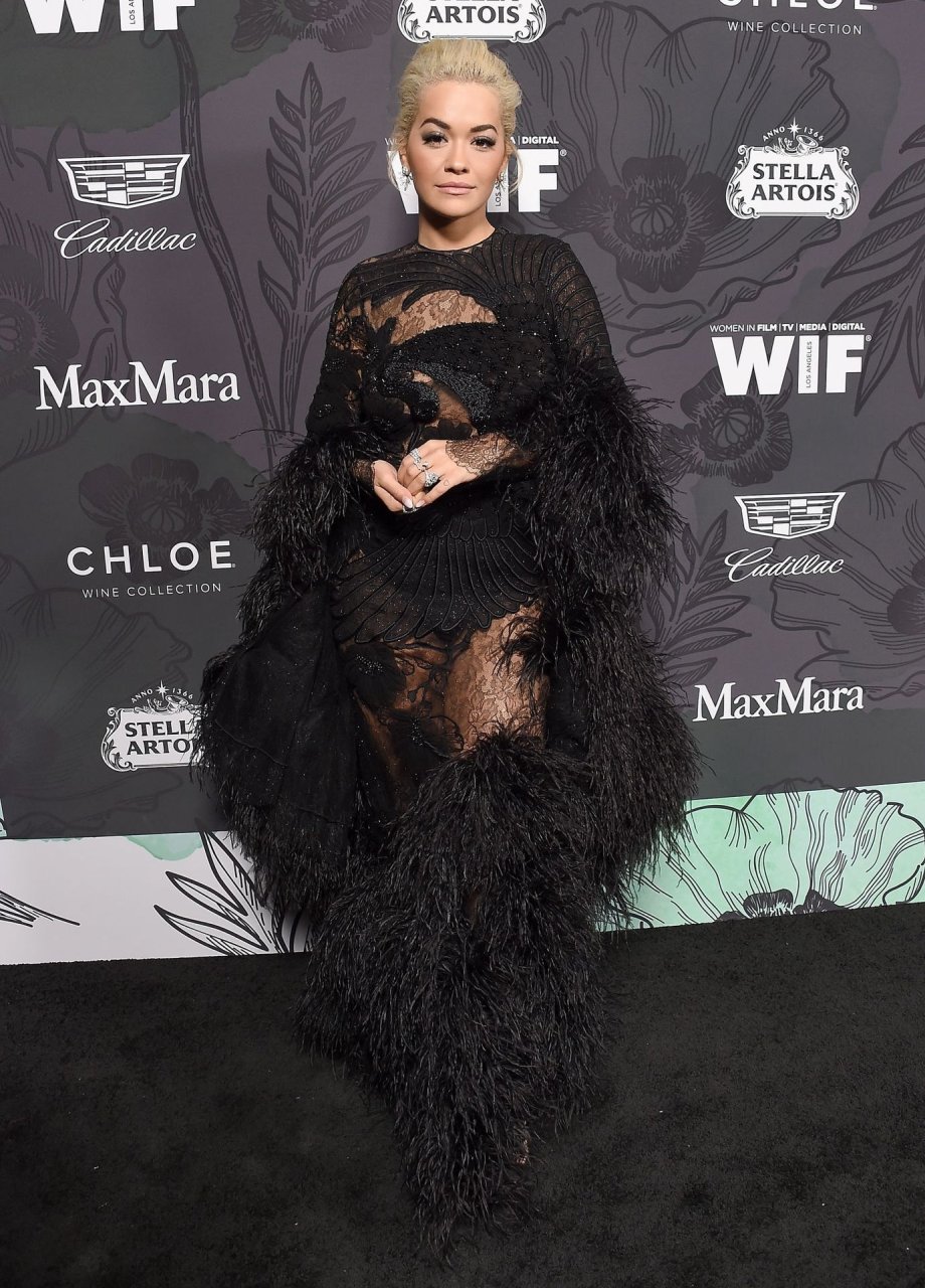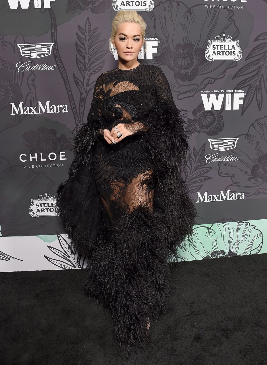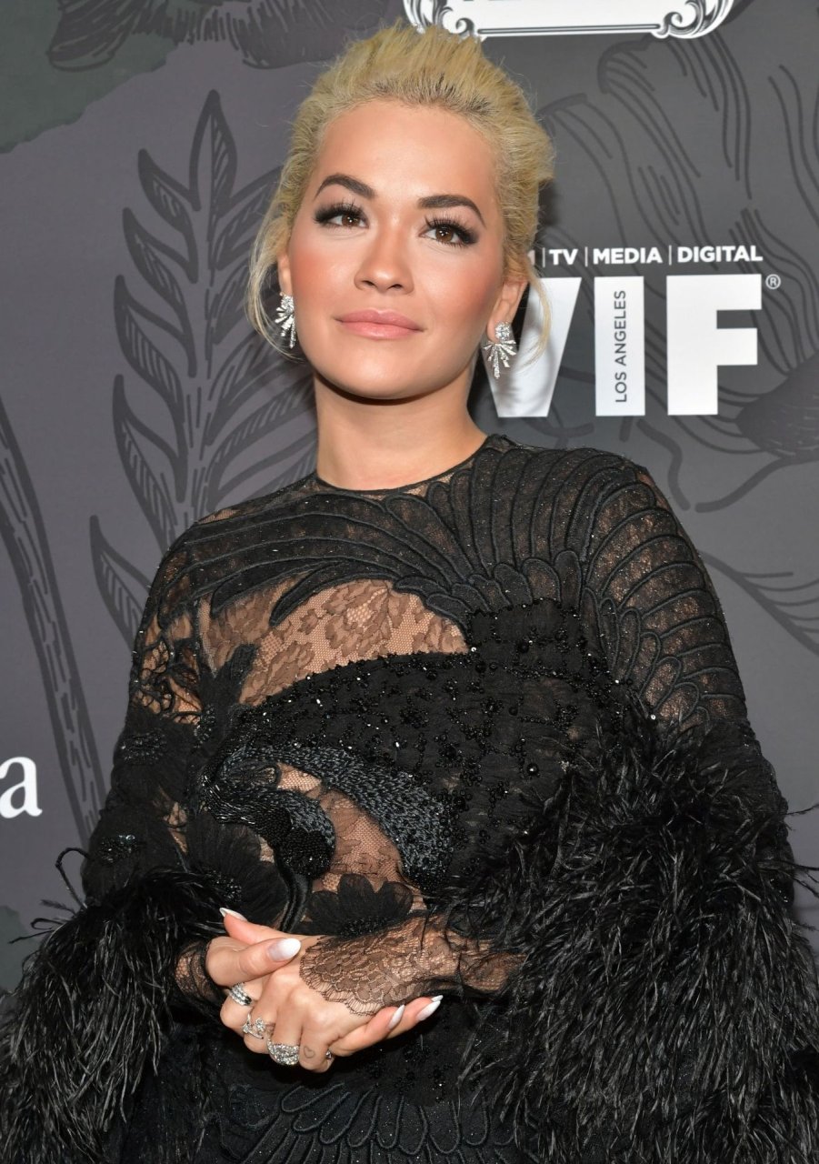 Cantante/actriz Rita Ora deslumbra con un vestido negro en la 12ª Fiesta Anual Women In Film Oscar en Spring Place en Los Ángeles, California, 22/02/2019.