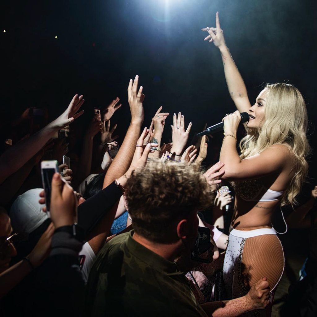 Rita Ora actúa en vivo en la O2 Academy de Birmingham durante su gira por el Reino Unido, 17/05/2018. Rita Ora es una cantante y actriz británica de origen albanés, nacida el 26 de noviembre de 1990 en Yugoslavia.