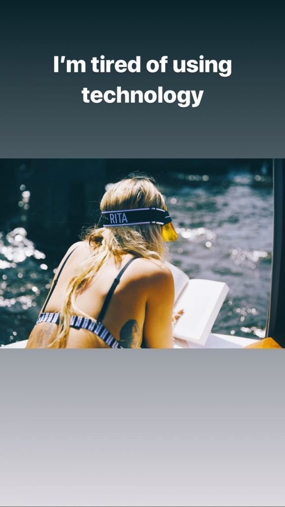 Rita Ora compartió algunas fotos sexys de una sesión fotográfica realizada por Kaj Jefferies – Instagram (mayo de 2018). La cantante posó con un top de bikini al aire libre. Está cansada de usar tecnología.