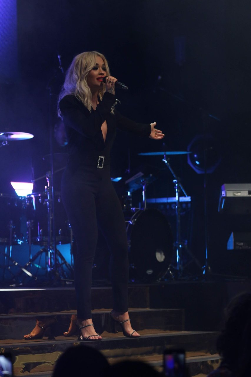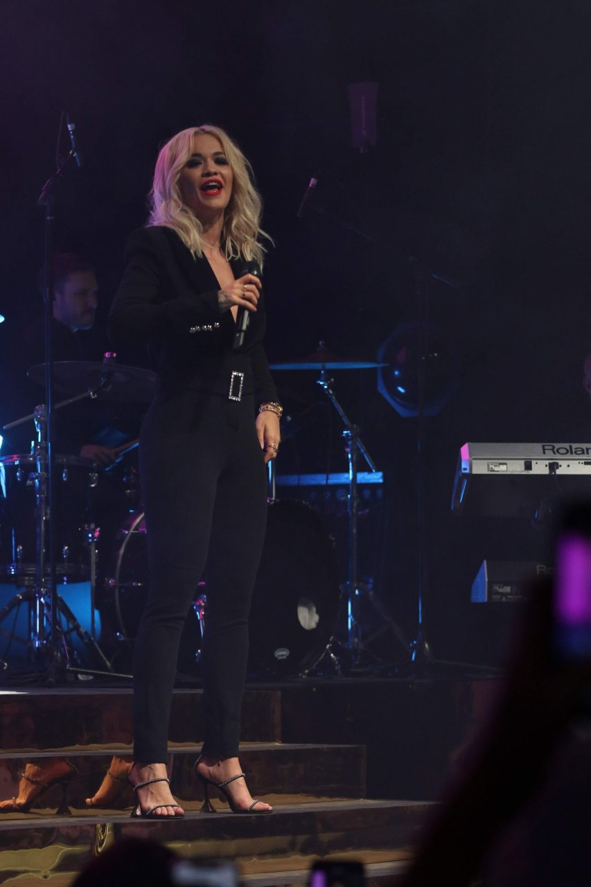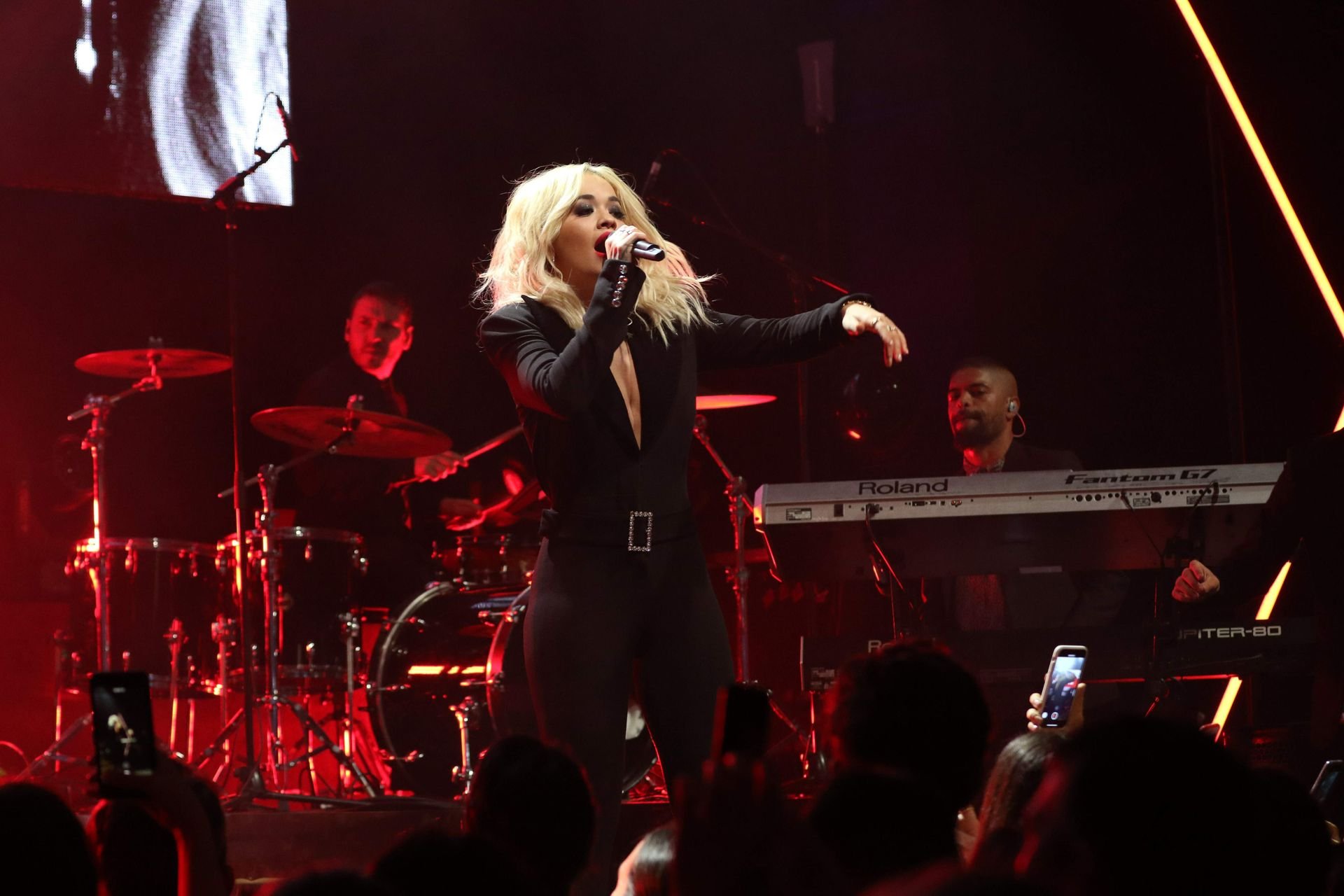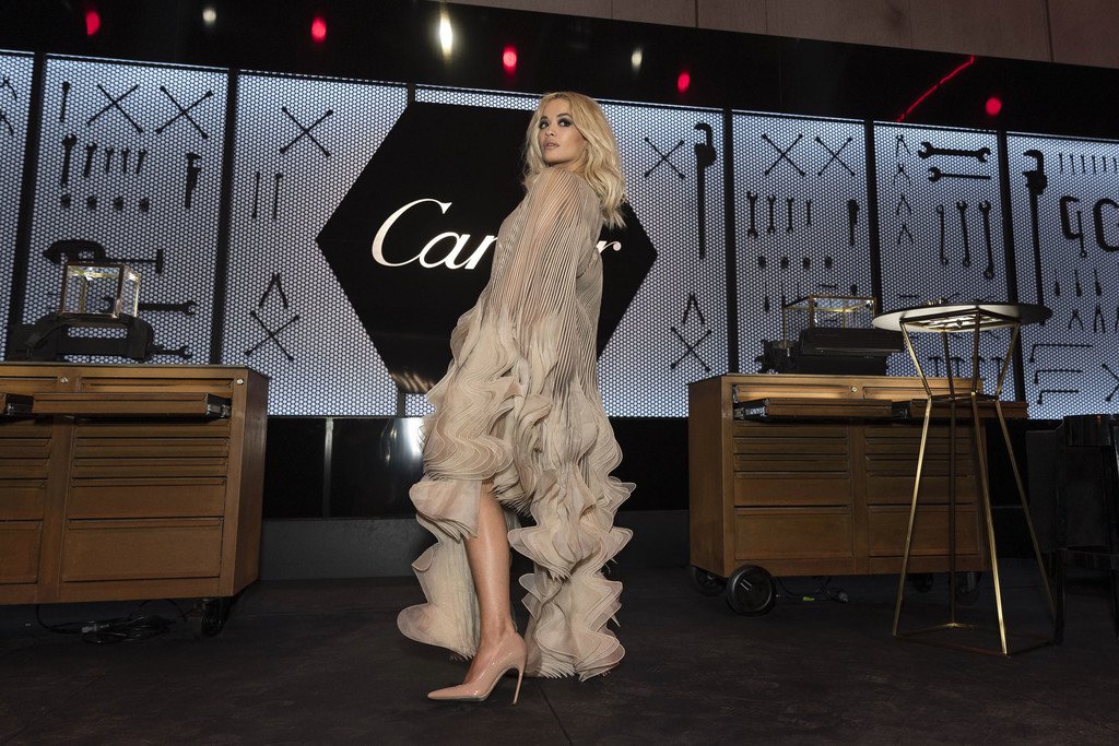 La cantante británica Rita Ora suele aparecer en eventos con atuendos reveladores, y esta vez lució en la fiesta de Cartier en Sídney un hermoso vestido transparente, 29/11/2018. La superestrella también actuó para los invitados con un ajustado conjunto negro.