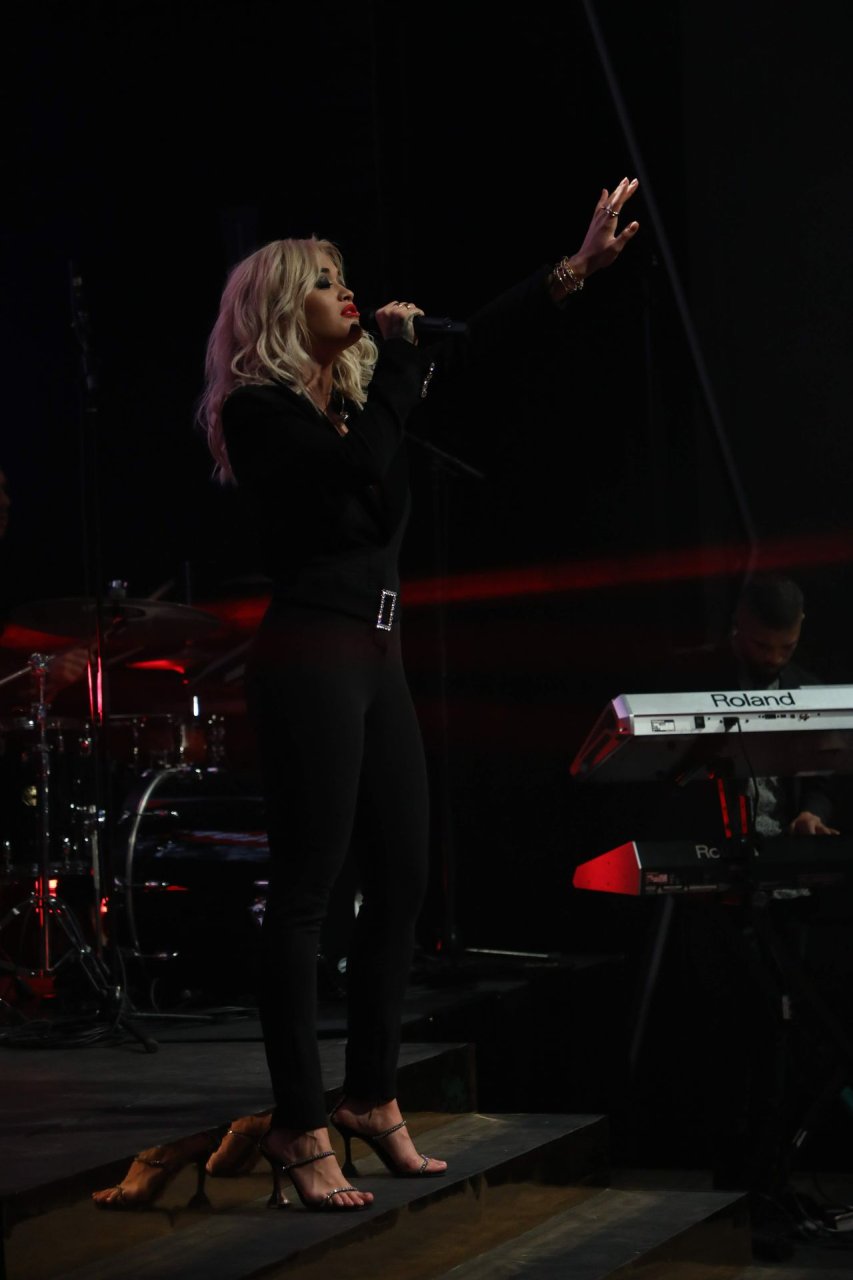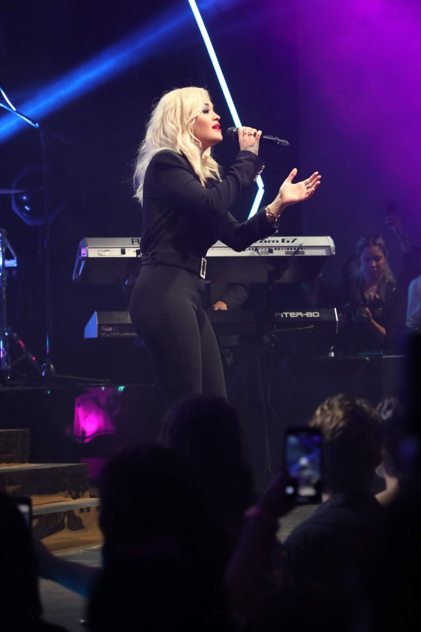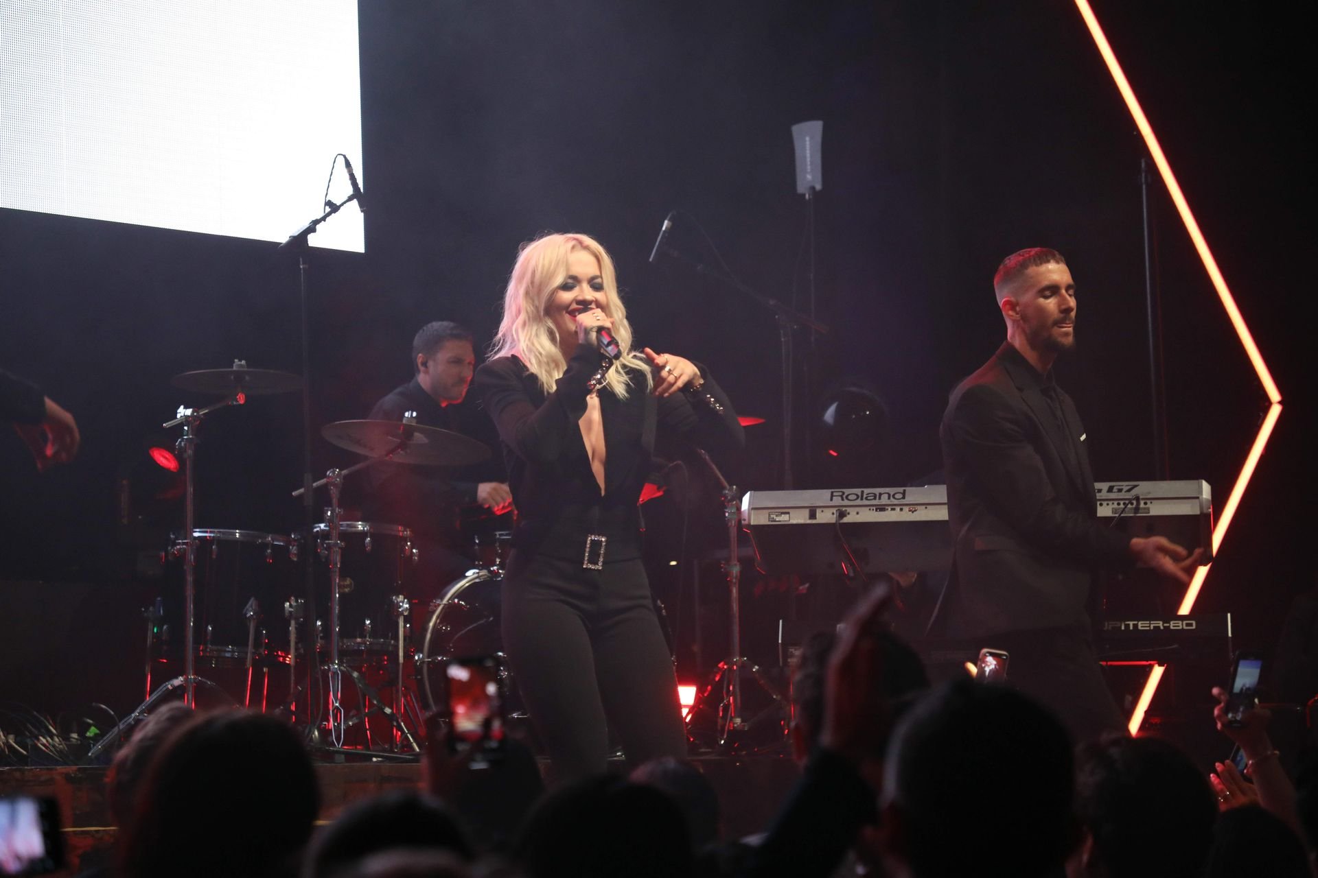 La cantante británica Rita Ora suele aparecer en eventos con atuendos reveladores, y esta vez lució en la fiesta de Cartier en Sídney un hermoso vestido transparente, 29/11/2018. La superestrella también actuó para los invitados con un ajustado conjunto negro.