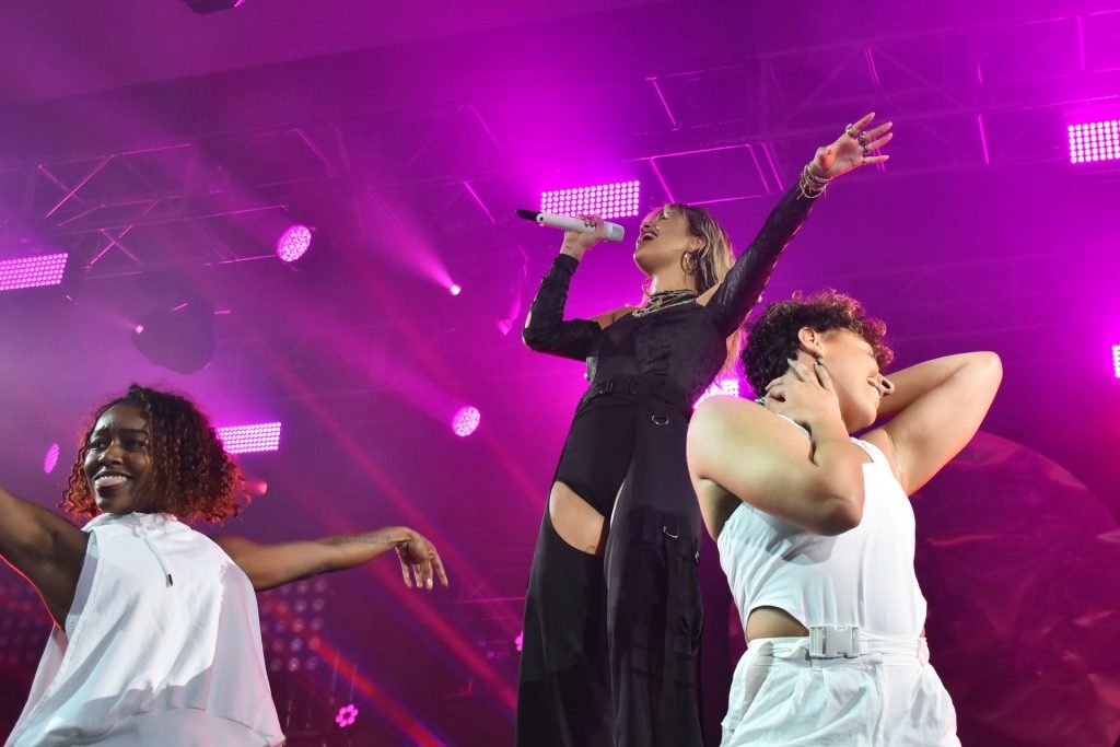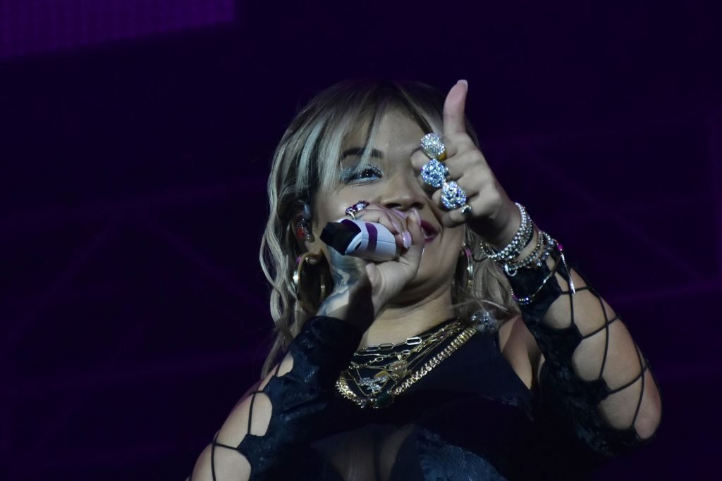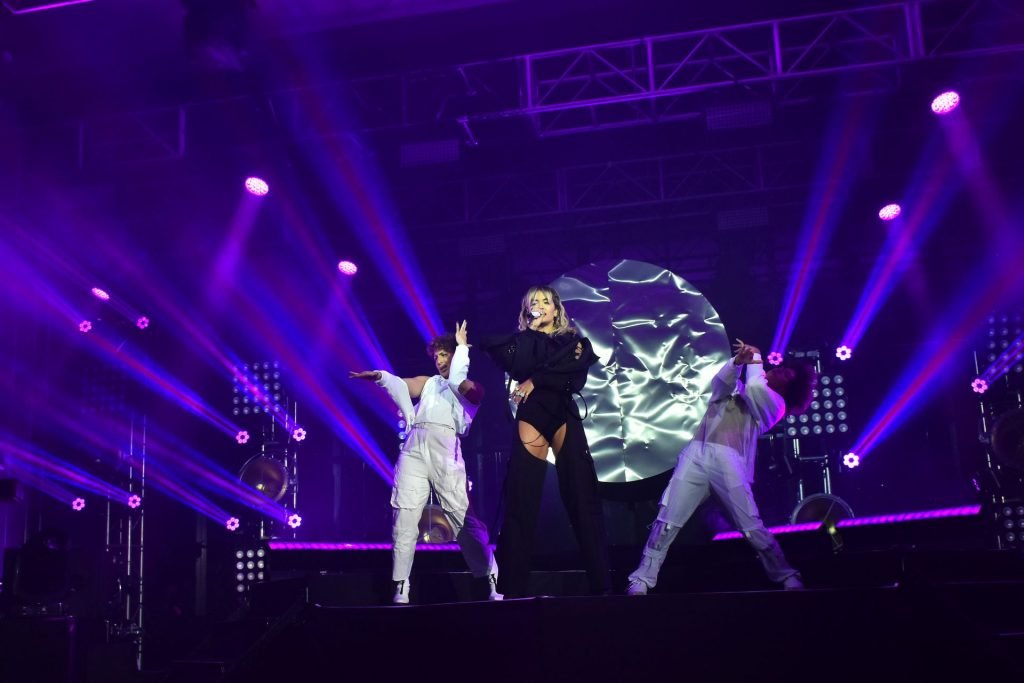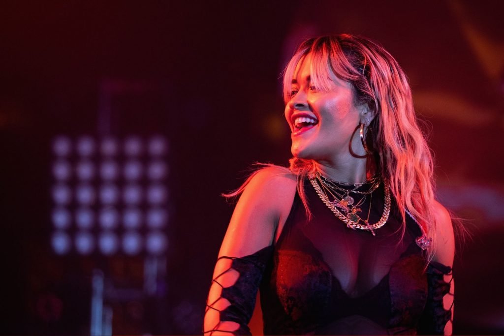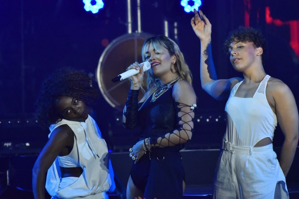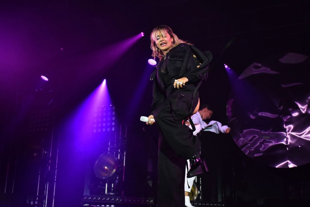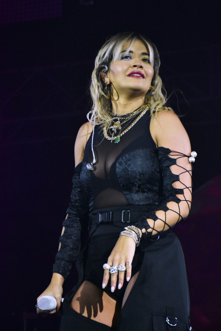 Singer Rita Ora performs at the American Express Gold Launch in Mexico City, 10/17/2019. She showed her cleavage and butt on stage.
