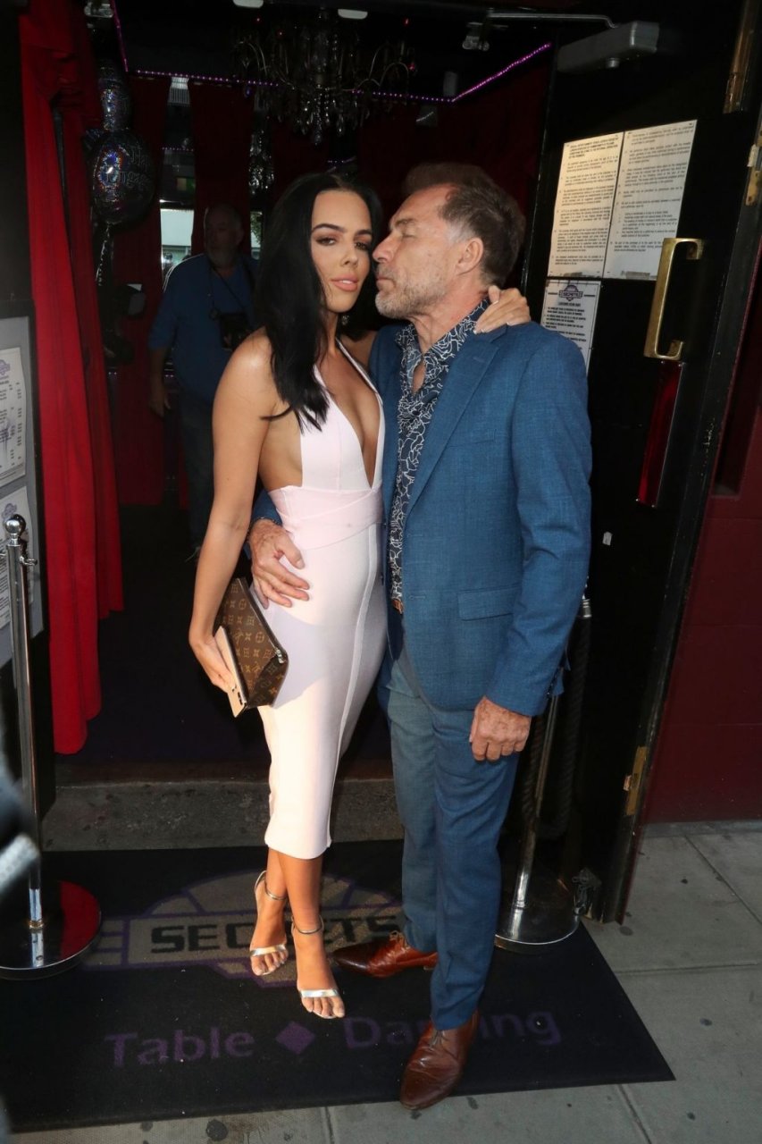 Christopher Quinten, de 60 años, conocido por su papel como Brian Tilsley en “Coronation Street”, celebra su compromiso con su prometida de 21 años, Robyn Delabarre, en The Secret Lounge, Hammersmith, 07/03/2019.