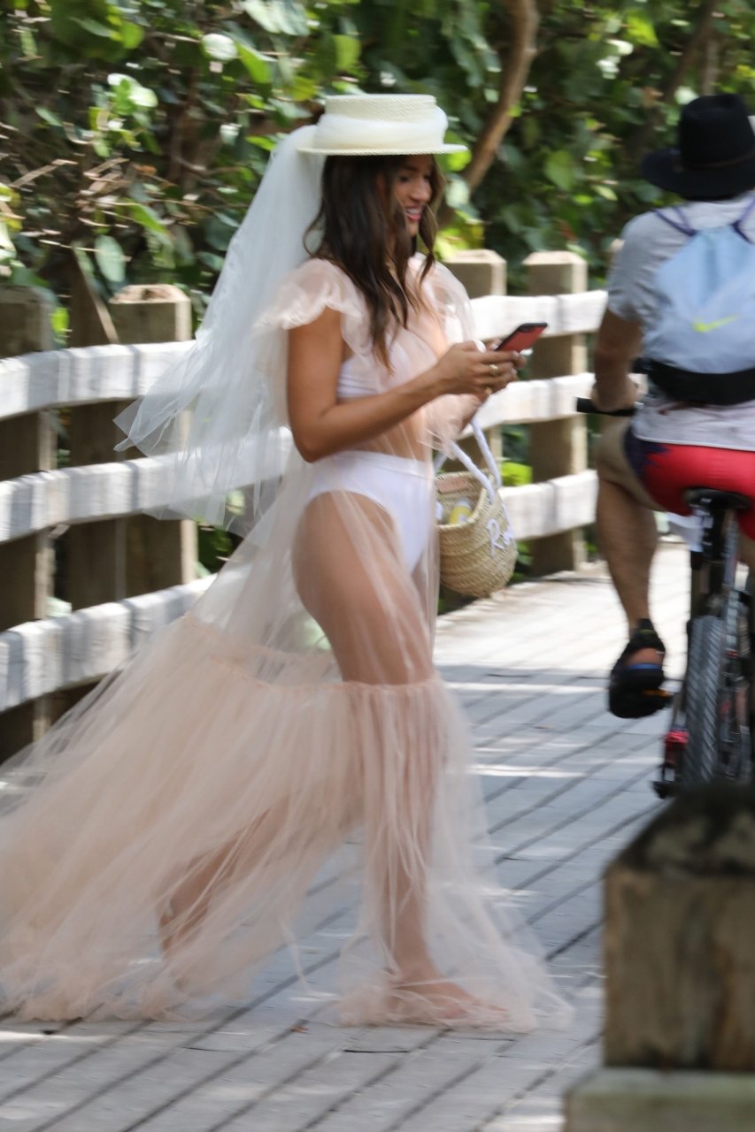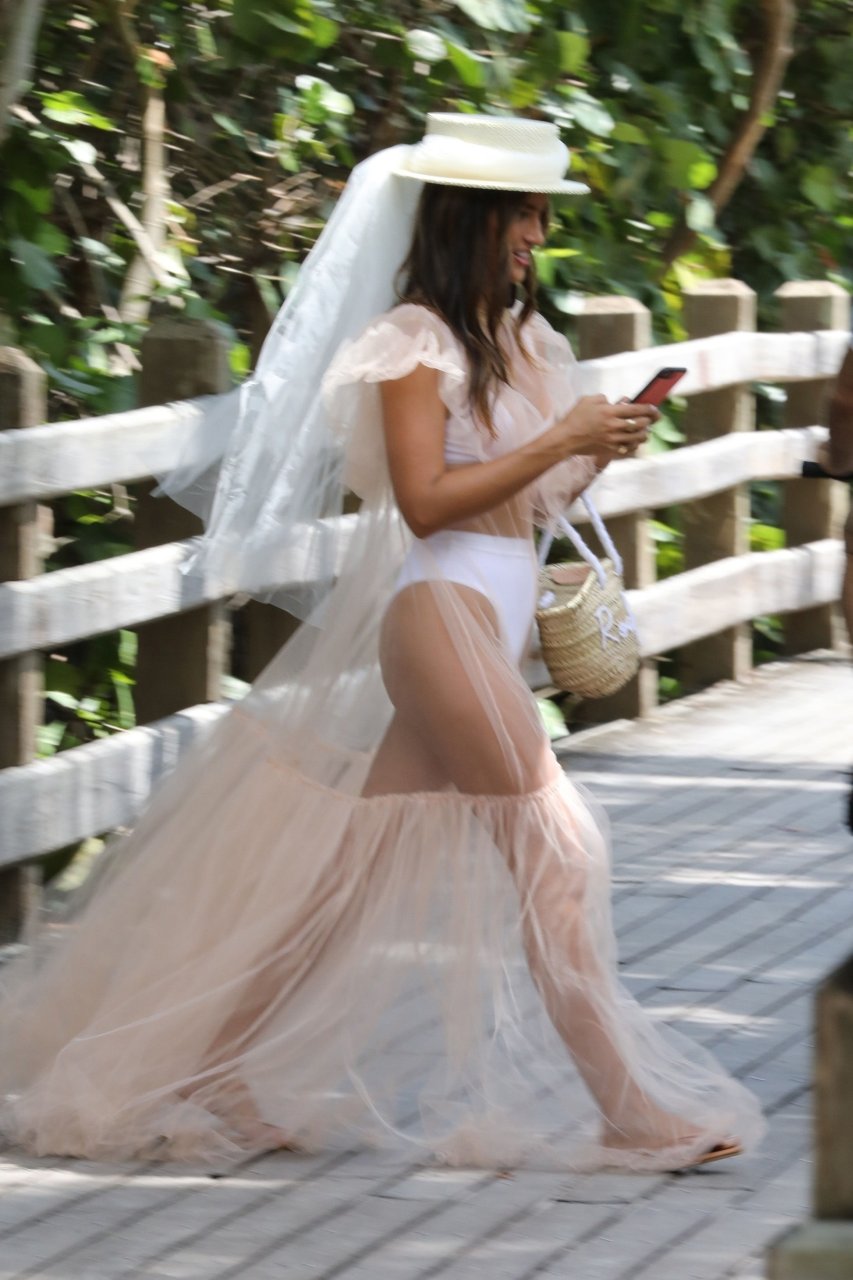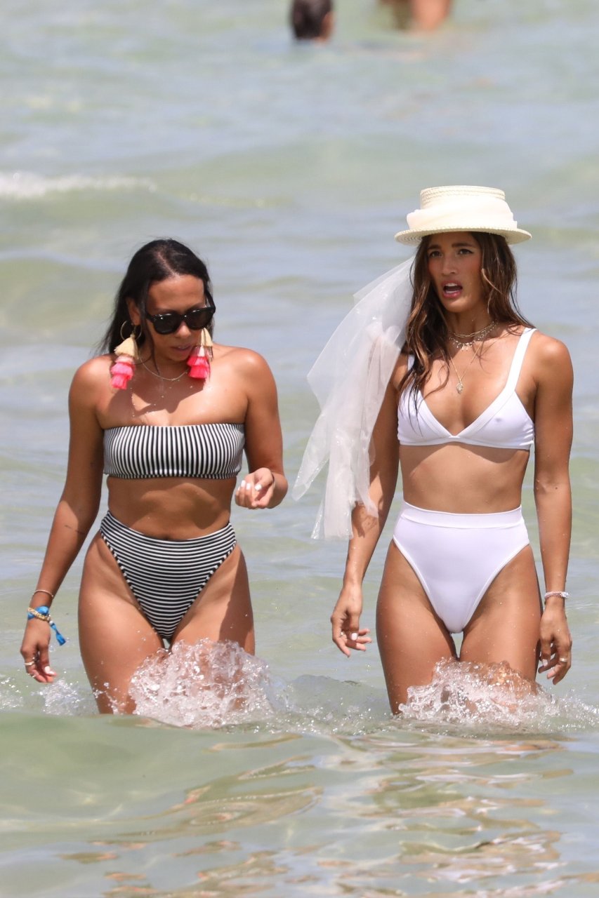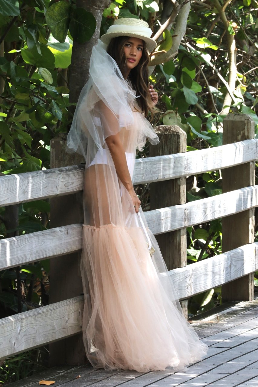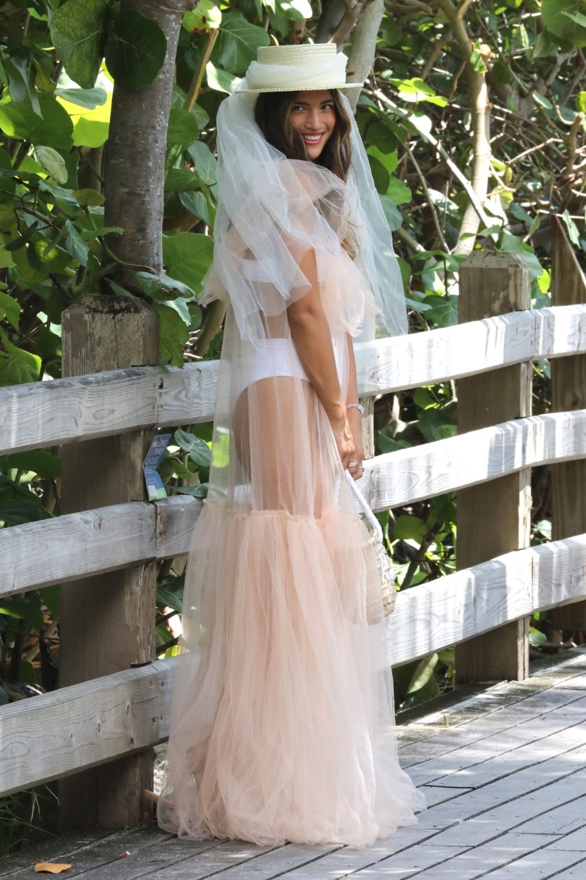 Rocky Barnes realiza una sesión de fotos en la playa antes de su boda en Miami Beach, 11/08/2018. Rocky aparece con sus amigas mientras se sumergen en las aguas de Florida en bikini, mientras Rocky lleva un velo para la sesión. Rachel (Rocky) Barnes es una modelo y bloguera estadounidense. Nacida: 12 de noviembre de 1985.