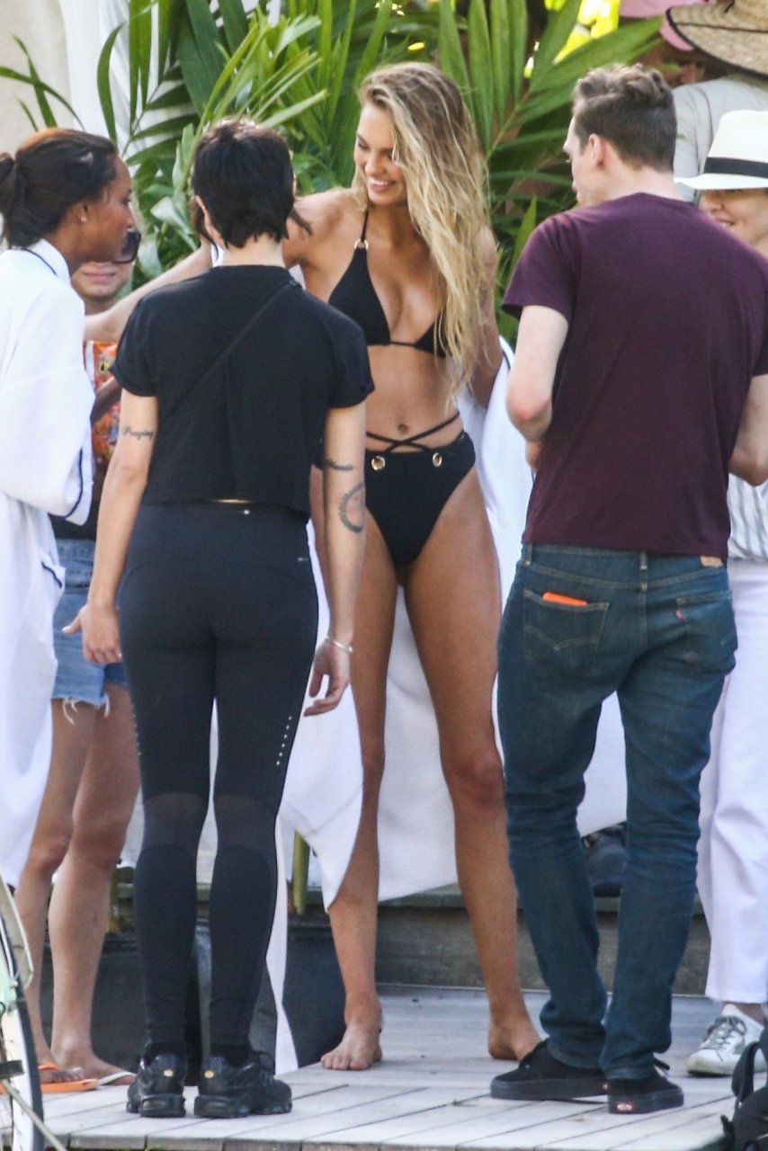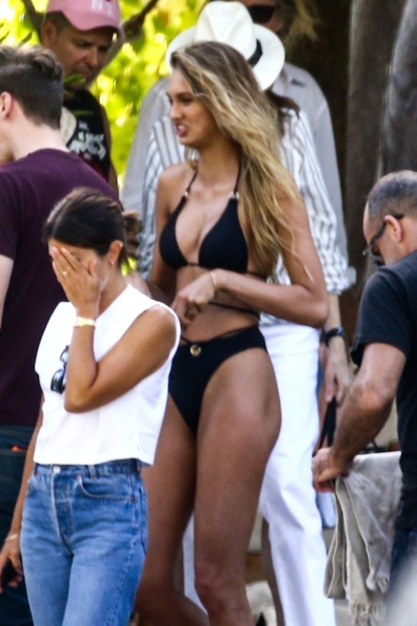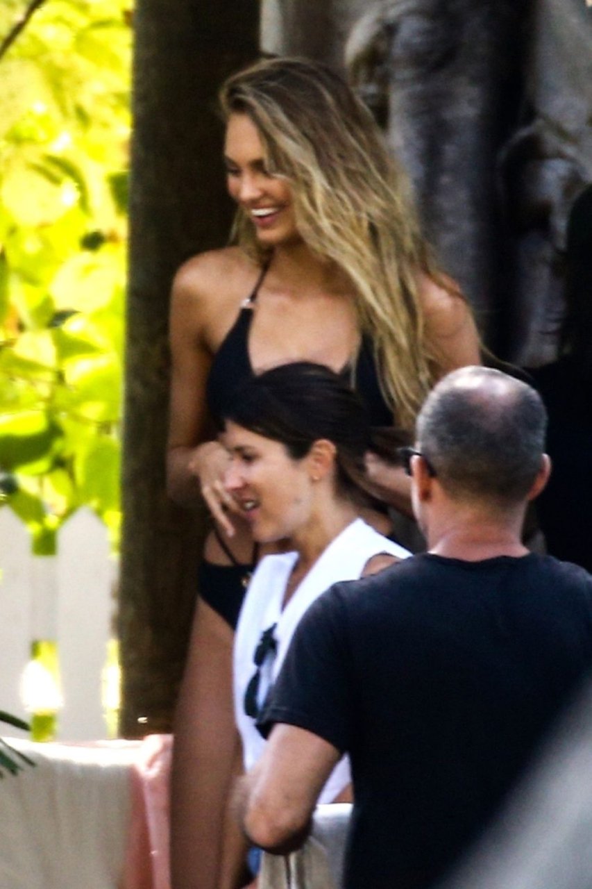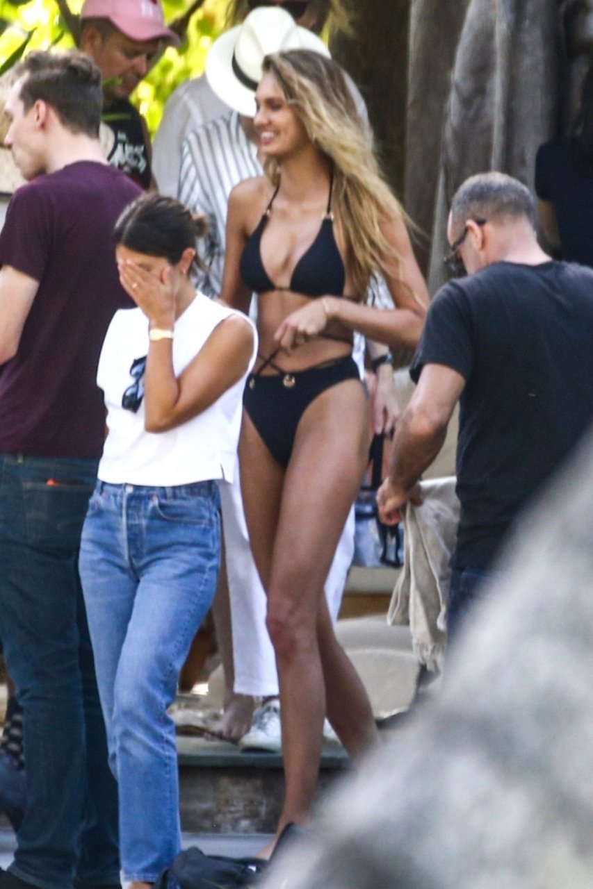 Las modelos de Victoria’s Secret Jasmine Tookes, Sara Sampaio y Romee Strijd posan en bikinis para una sesión de fotos de Victoria’s Secret en Key West, Florida, 12/01/2019.