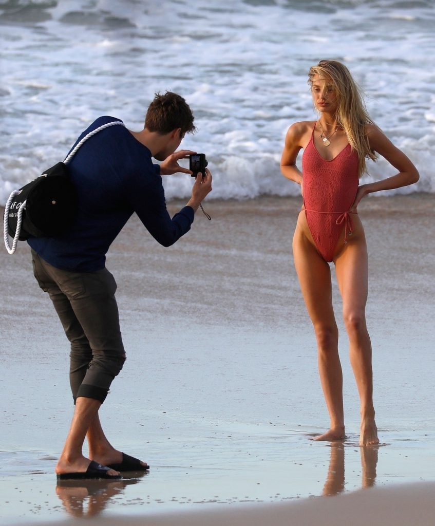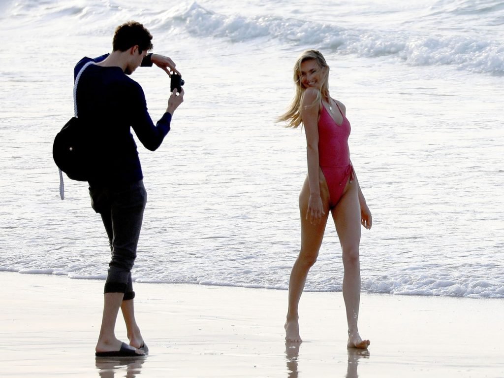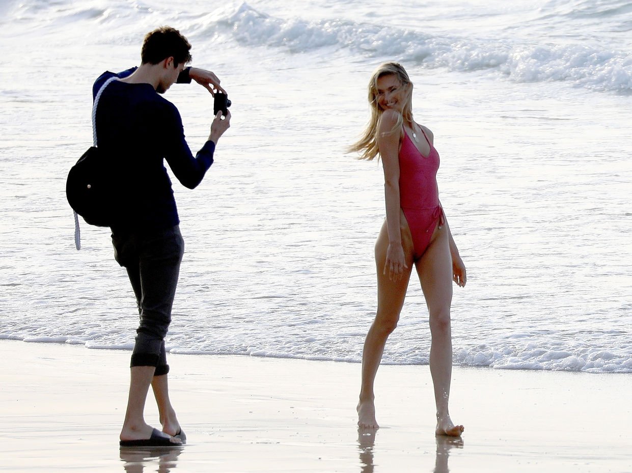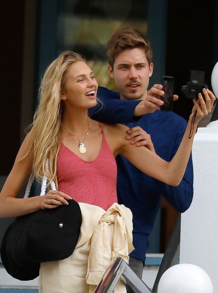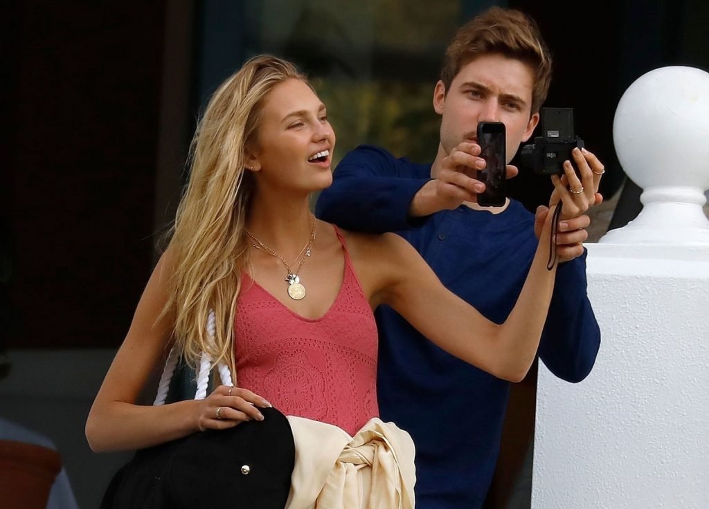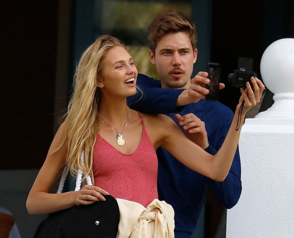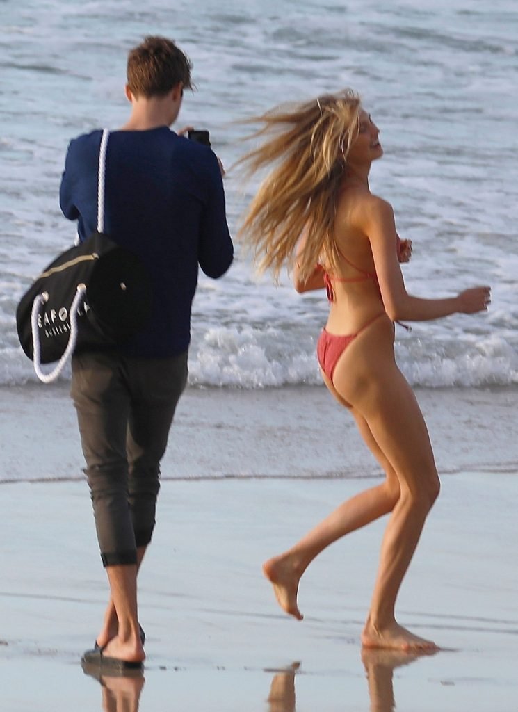 La modelo holandesa de 22 años de Victoria’s Secret y su novio fueron a la playa donde la delgada y atractiva posó con un sexy traje de baño de una pieza para su chico.