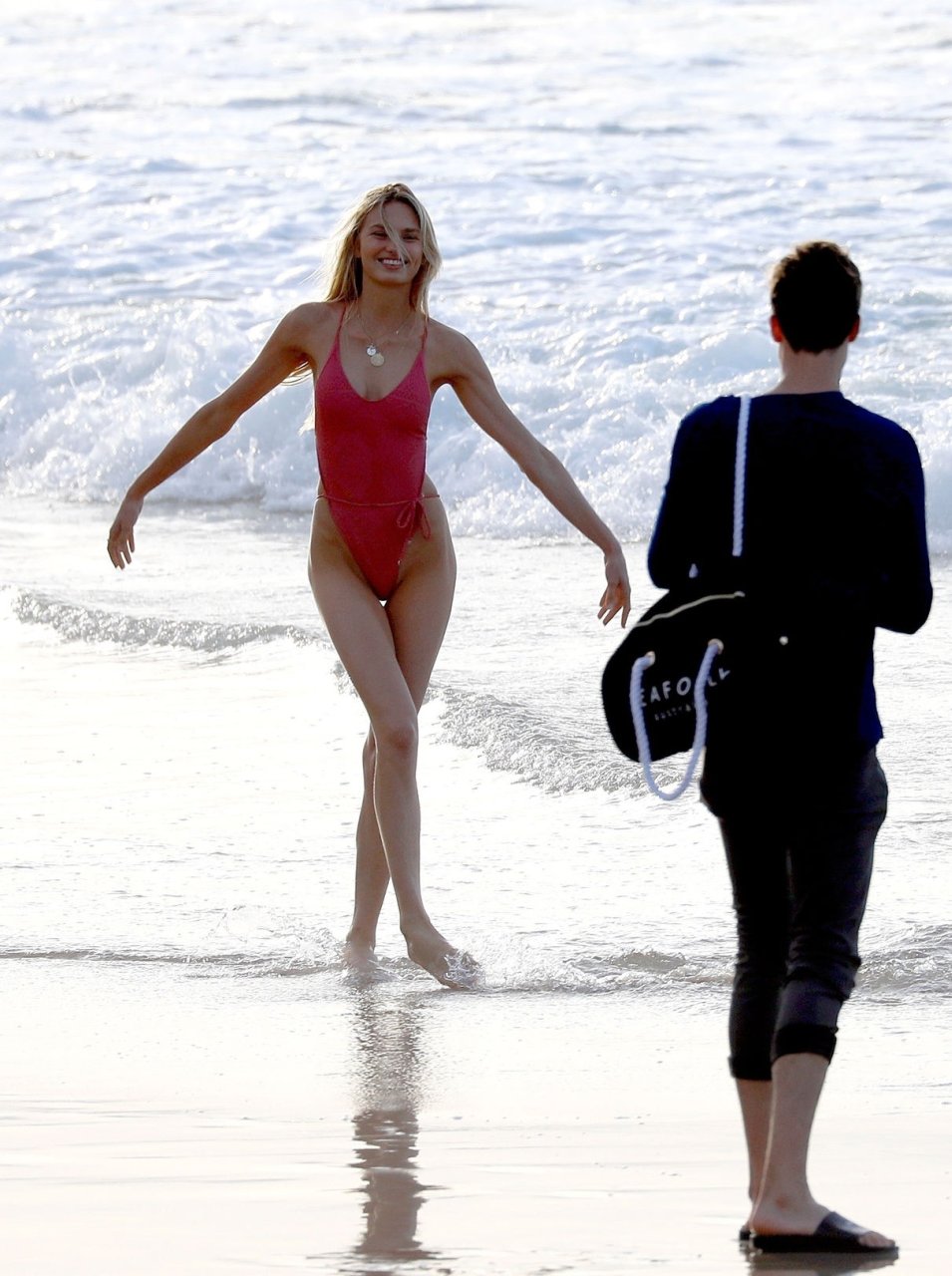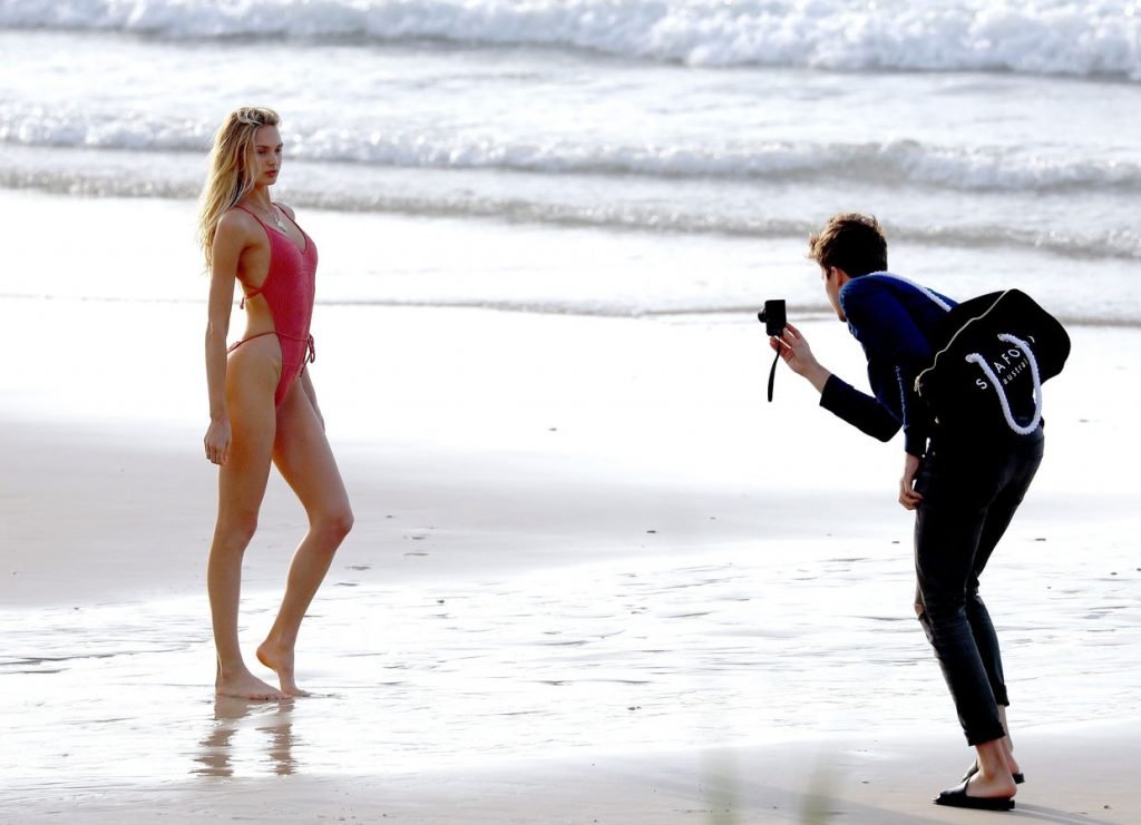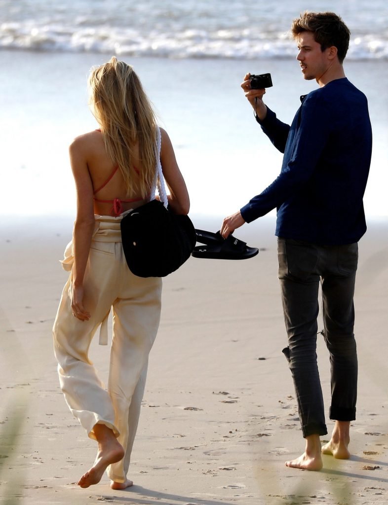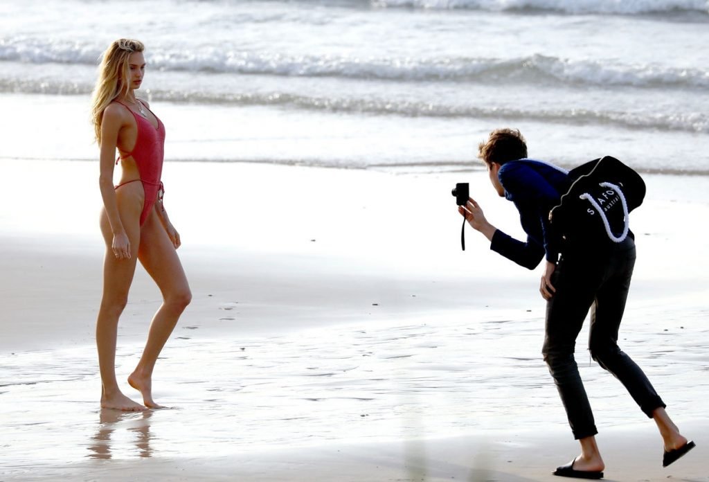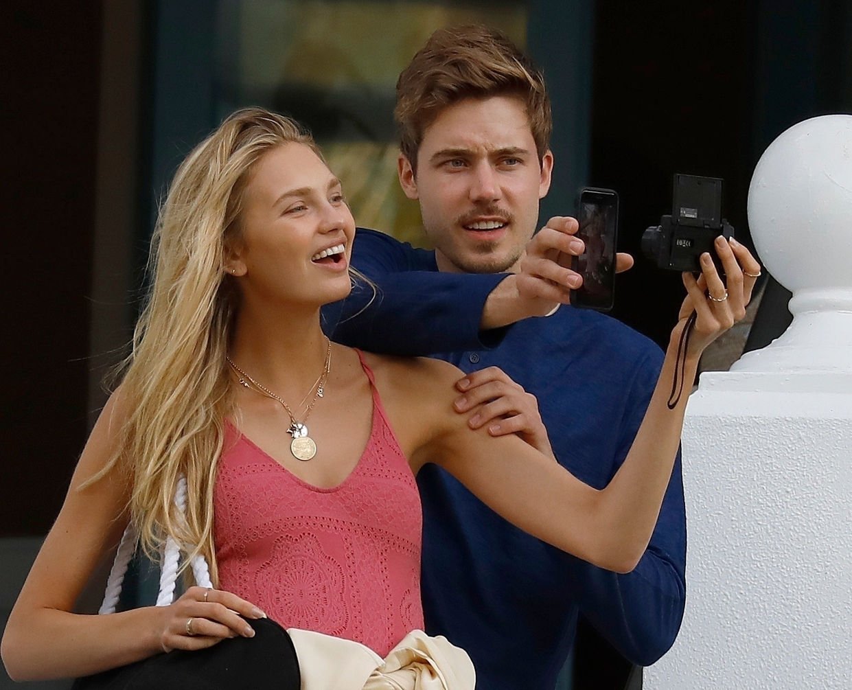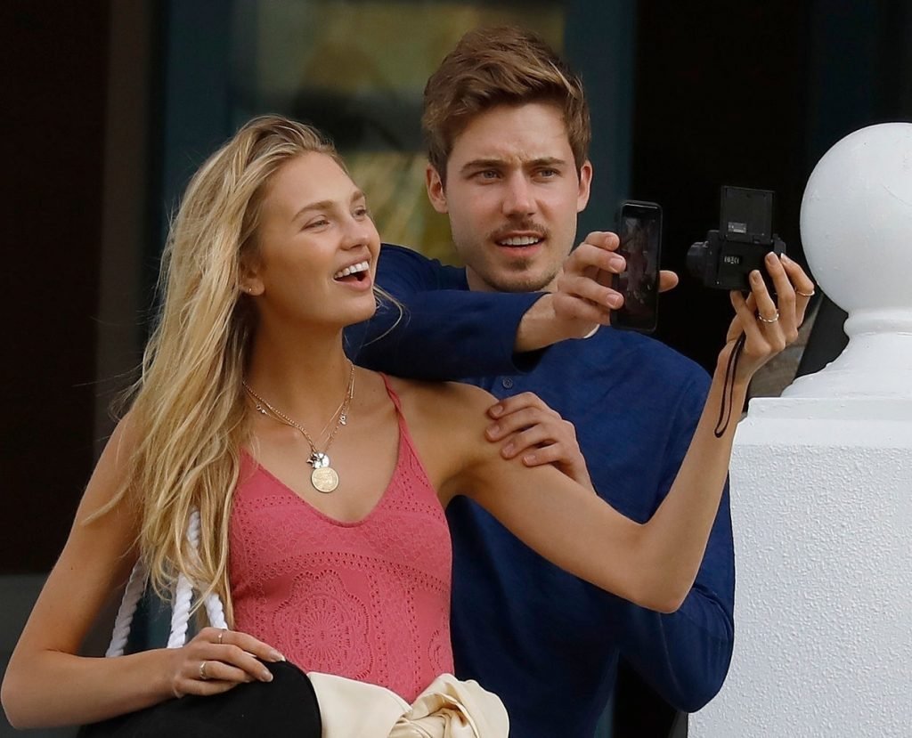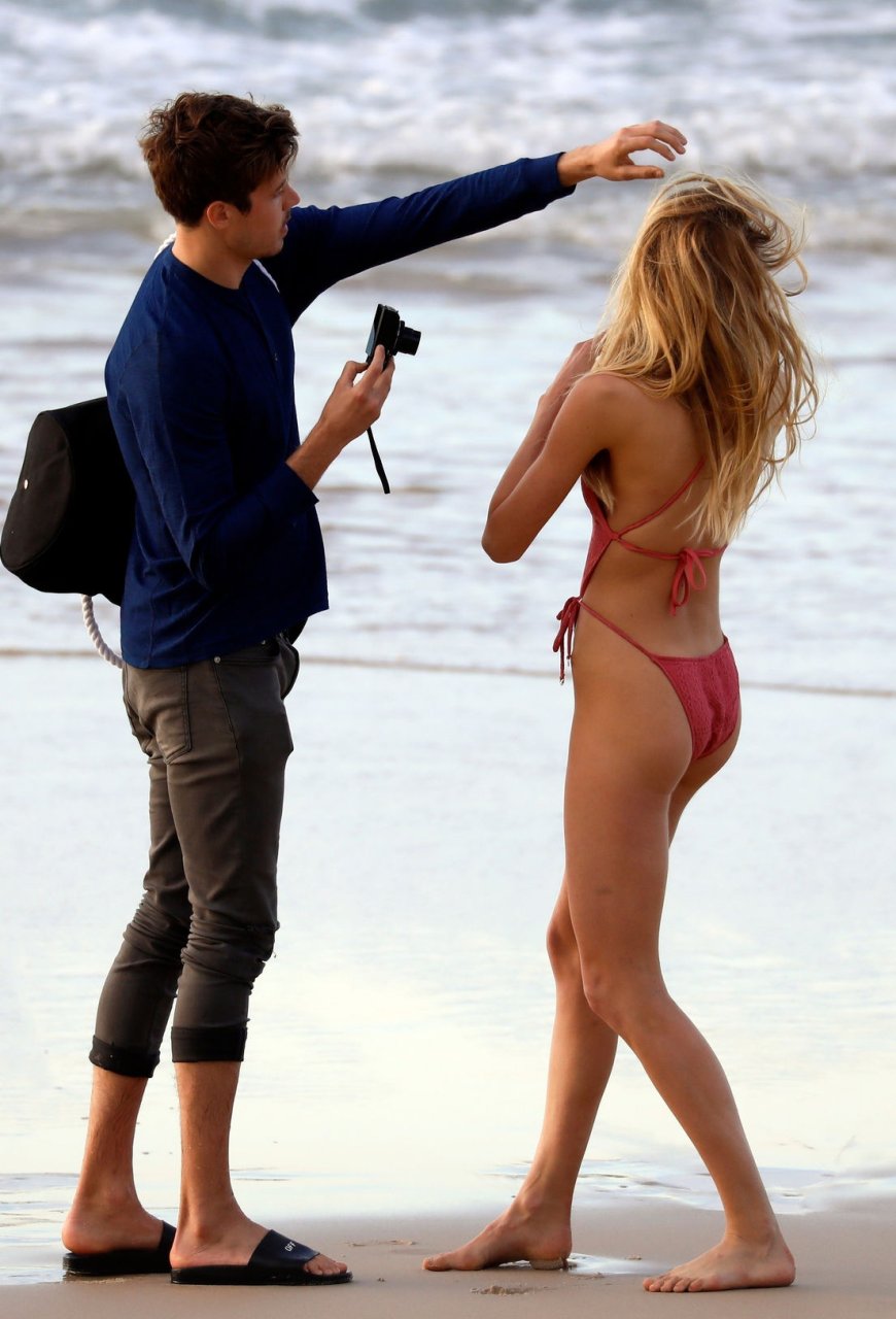 La modelo holandesa de 22 años de Victoria’s Secret y su novio fueron a la playa donde la delgada y atractiva posó con un sexy traje de baño de una pieza para su chico.