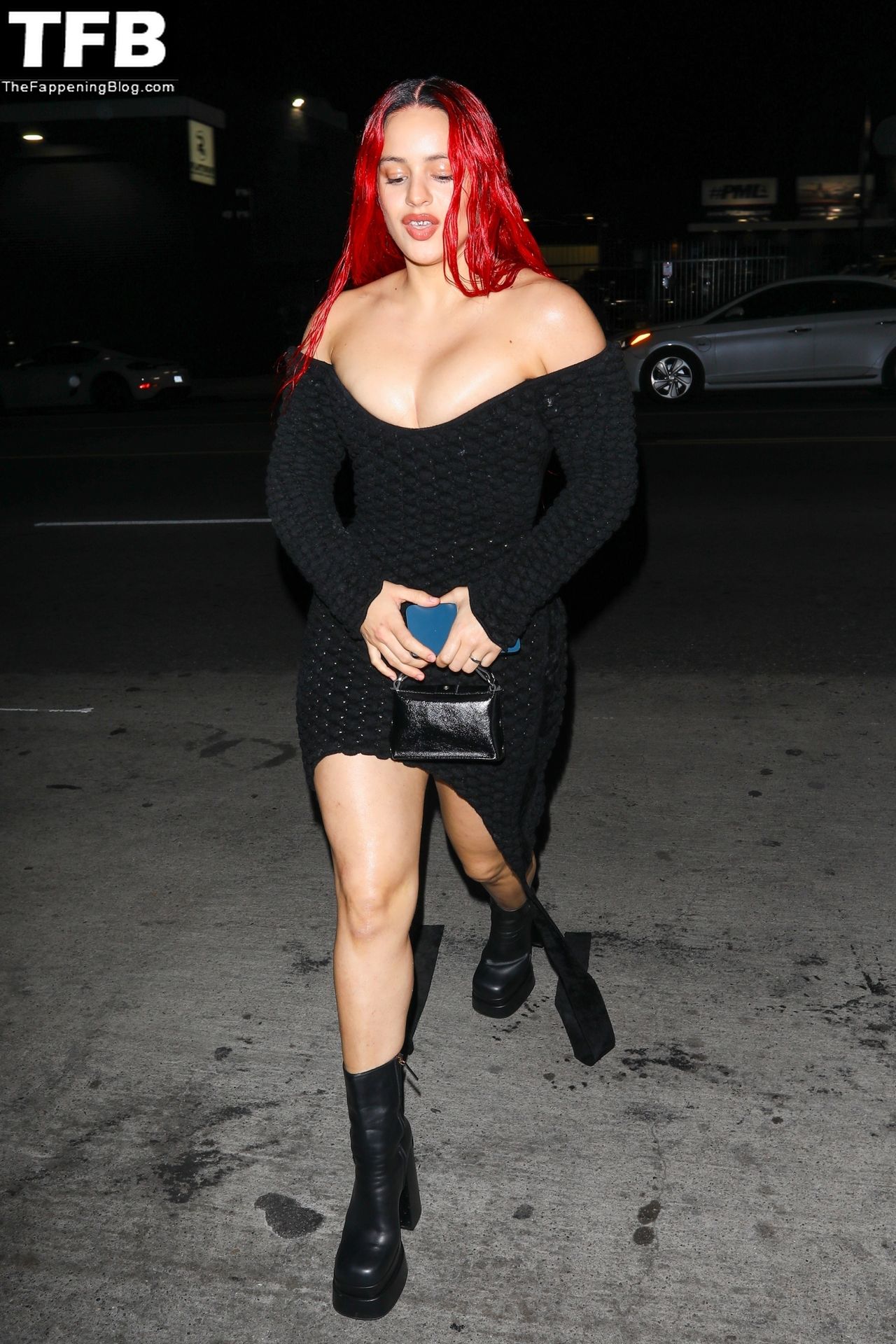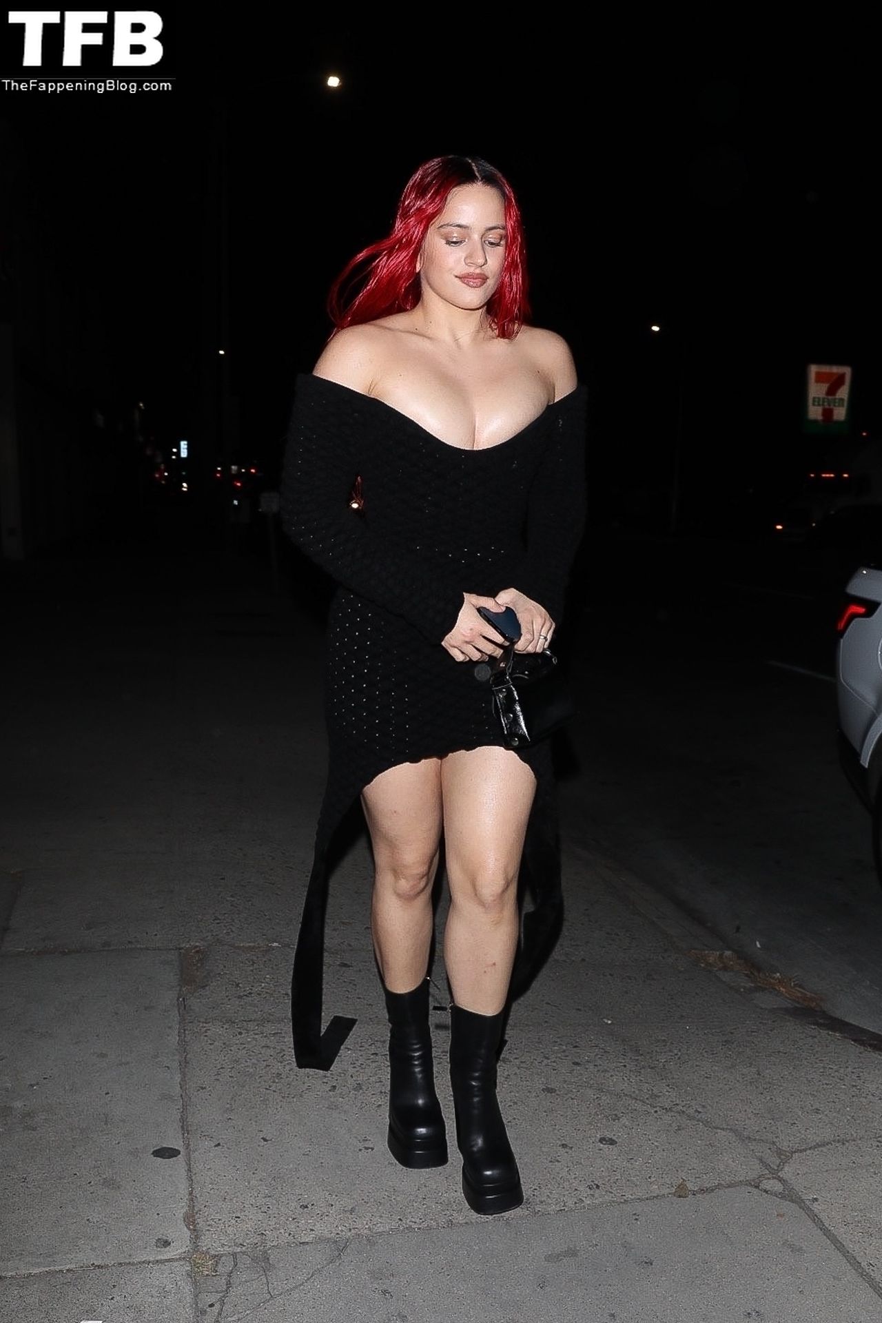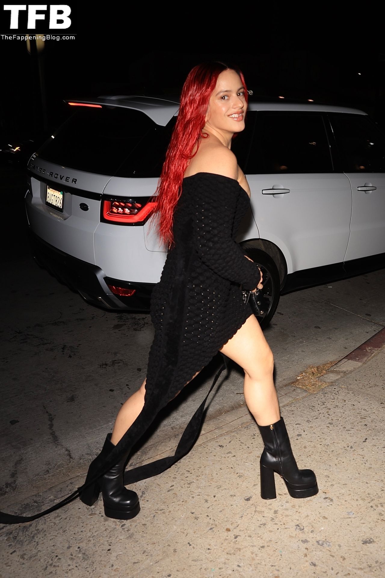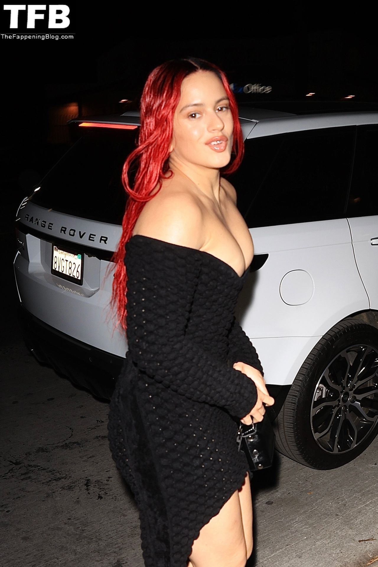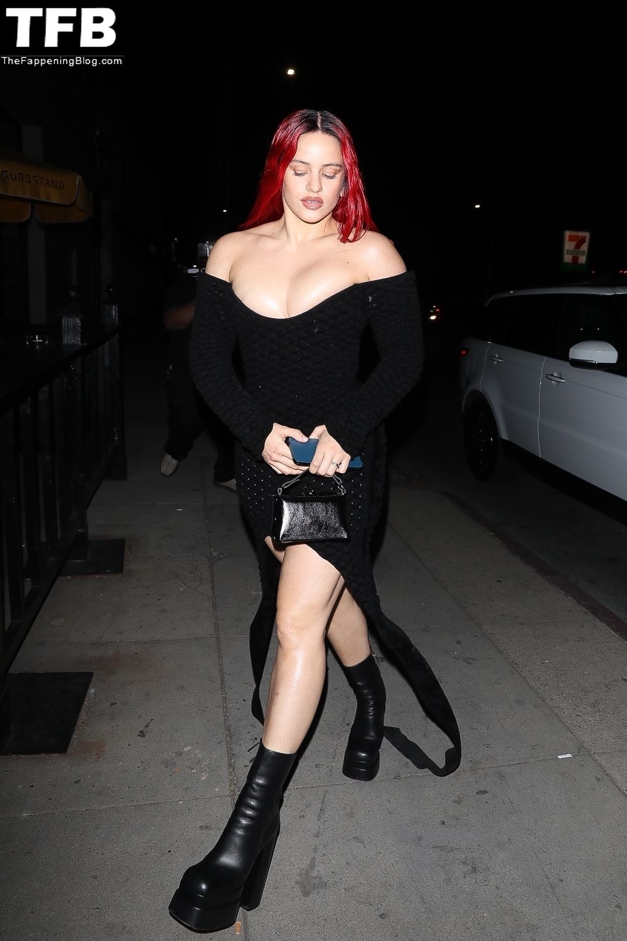 Una cantante recién pelirroja, Rosalia, debuta su audaz nuevo look mientras cena en Horses en Hollywood, 27/02/2022.