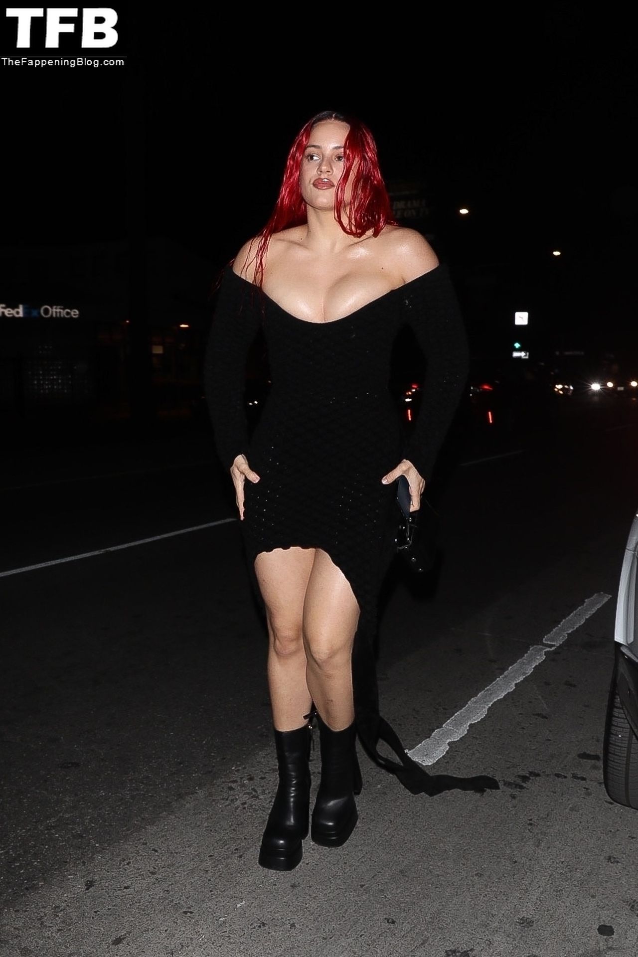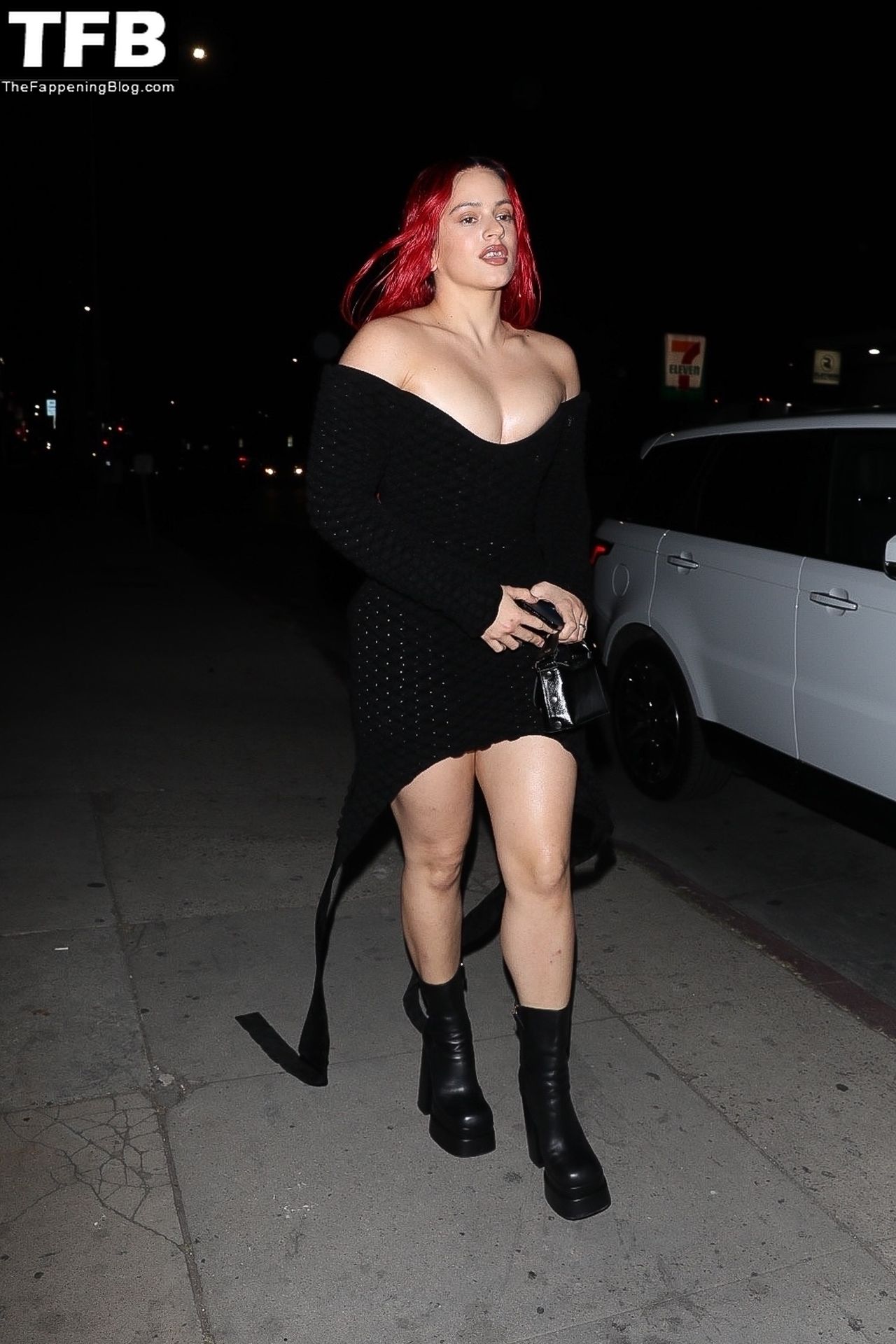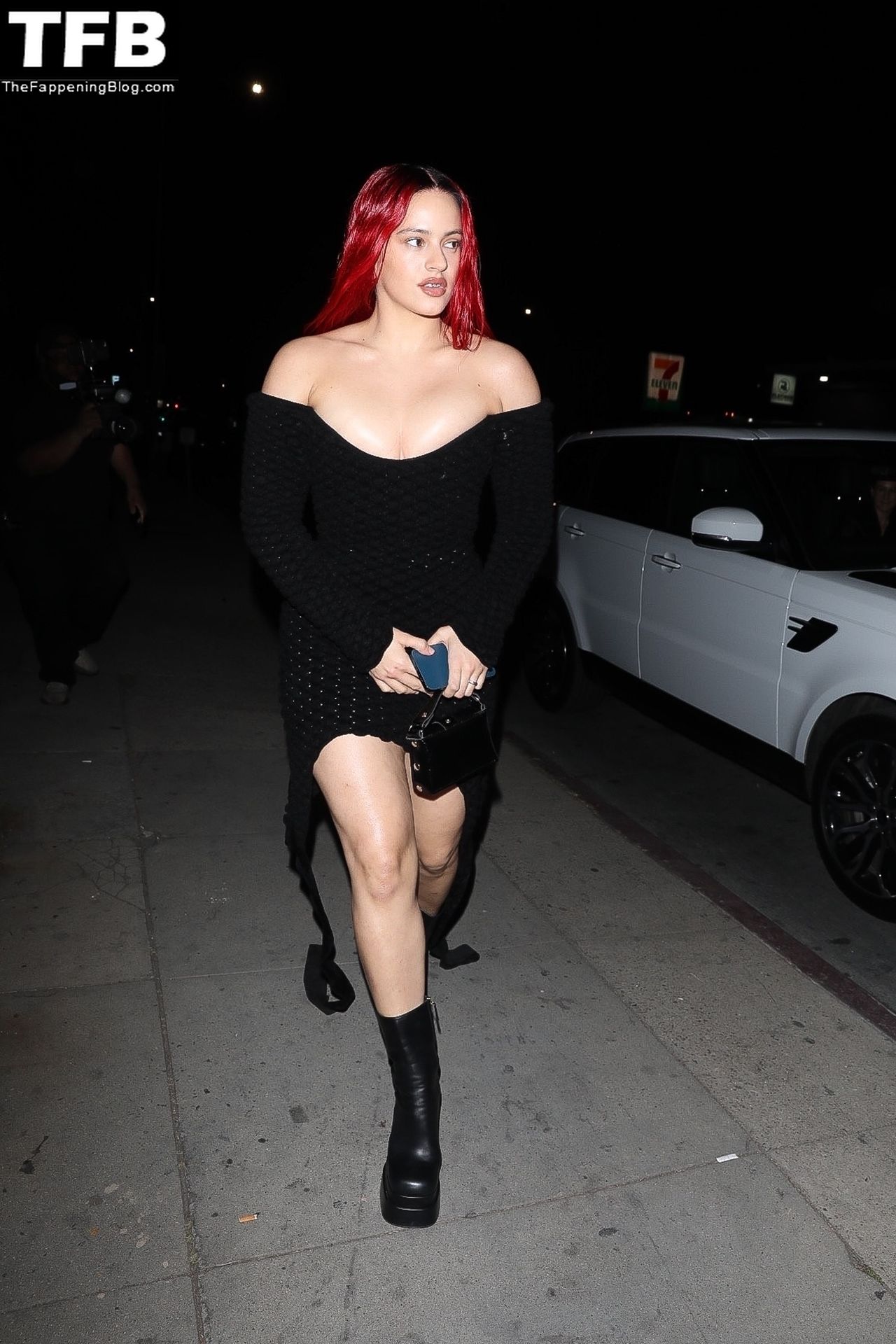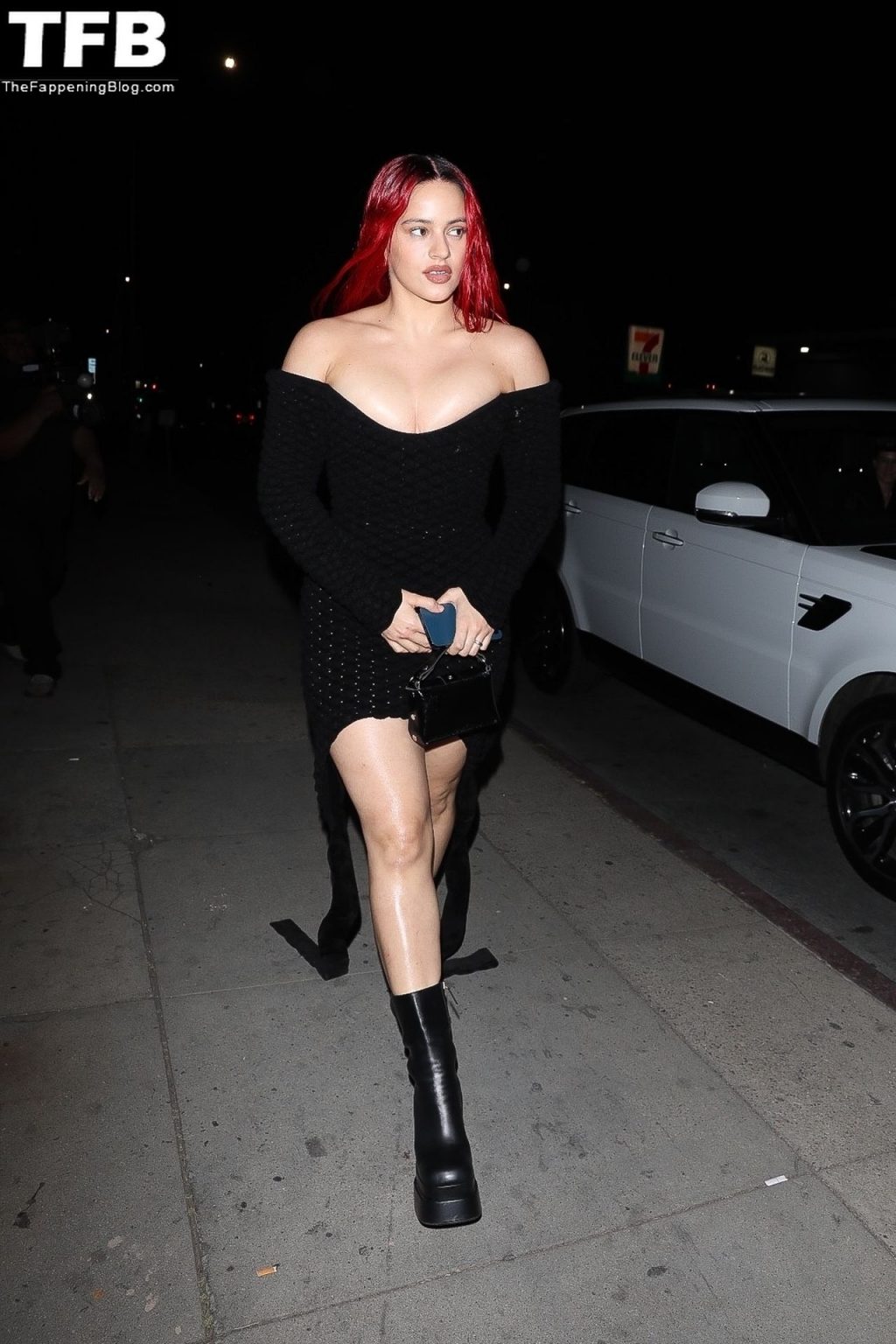 Una cantante recién pelirroja, Rosalia, debuta su audaz nuevo look mientras cena en Horses en Hollywood, 27/02/2022.