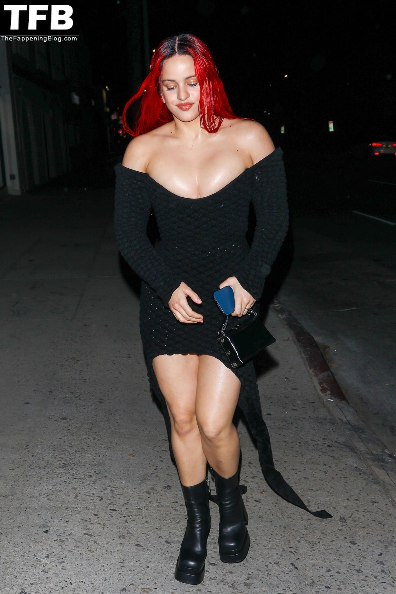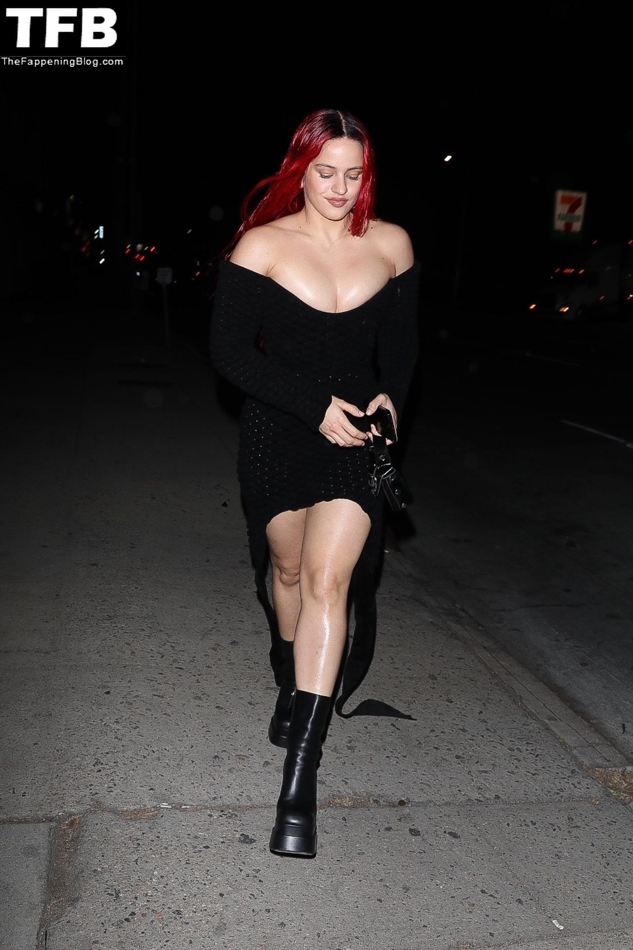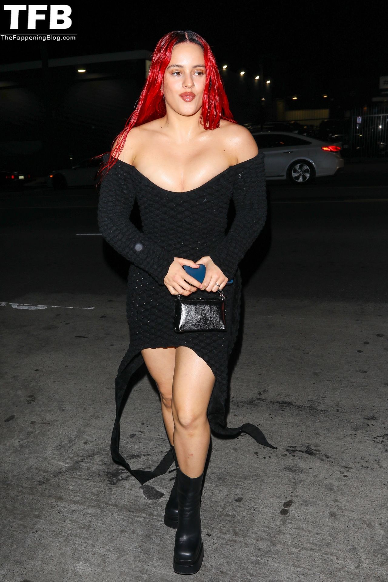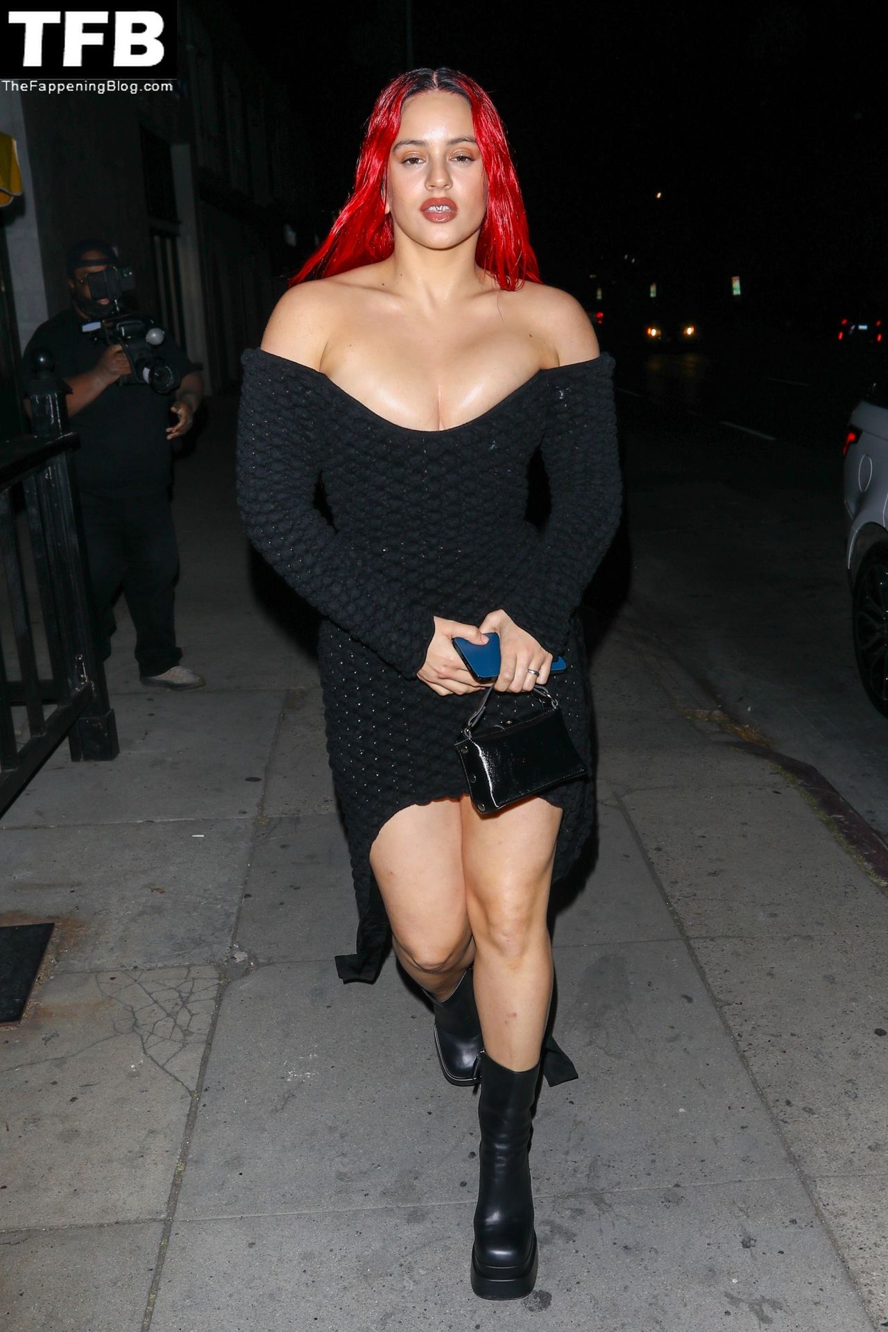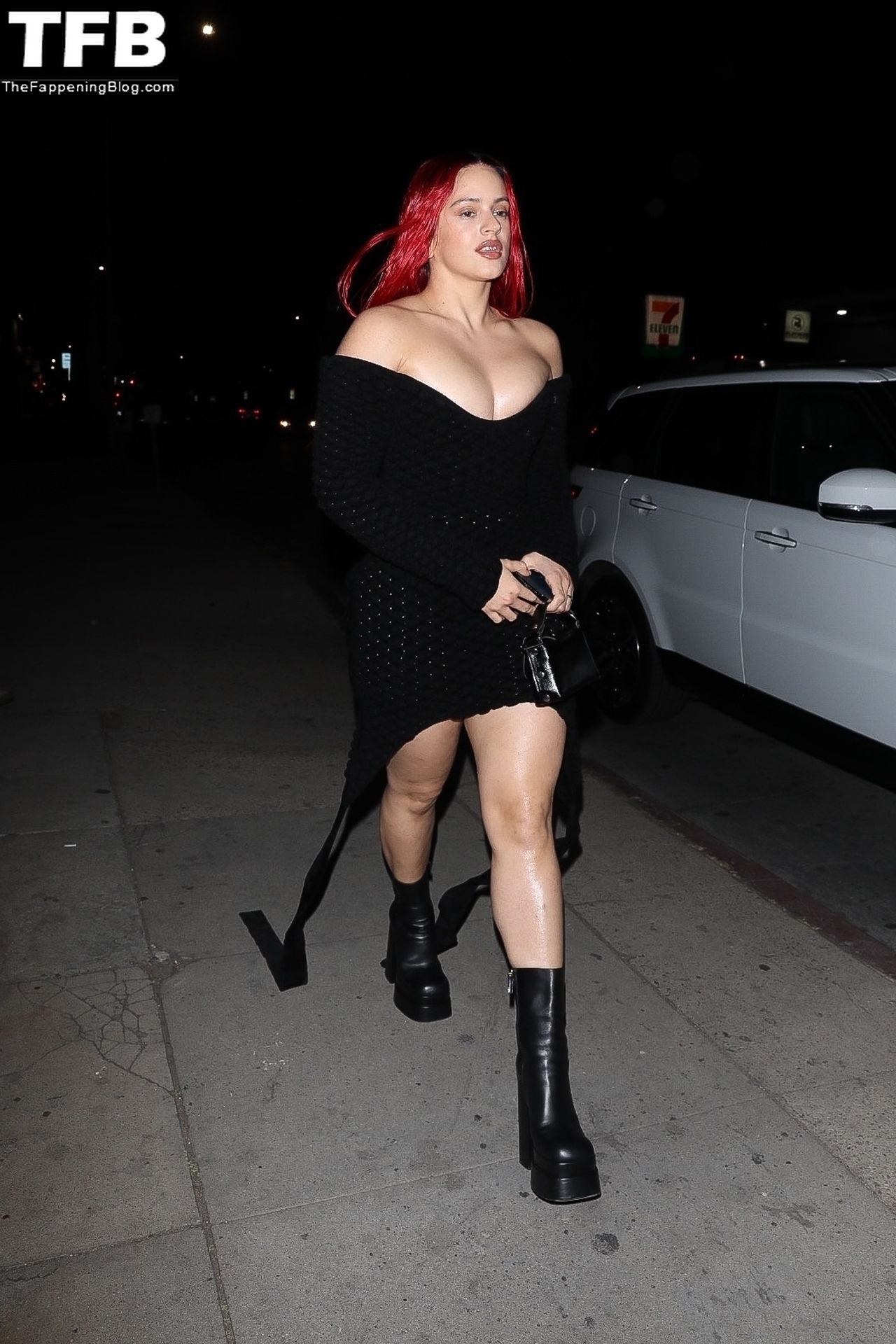 Una cantante recién pelirroja, Rosalia, debuta su audaz nuevo look mientras cena en Horses en Hollywood, 27/02/2022.
