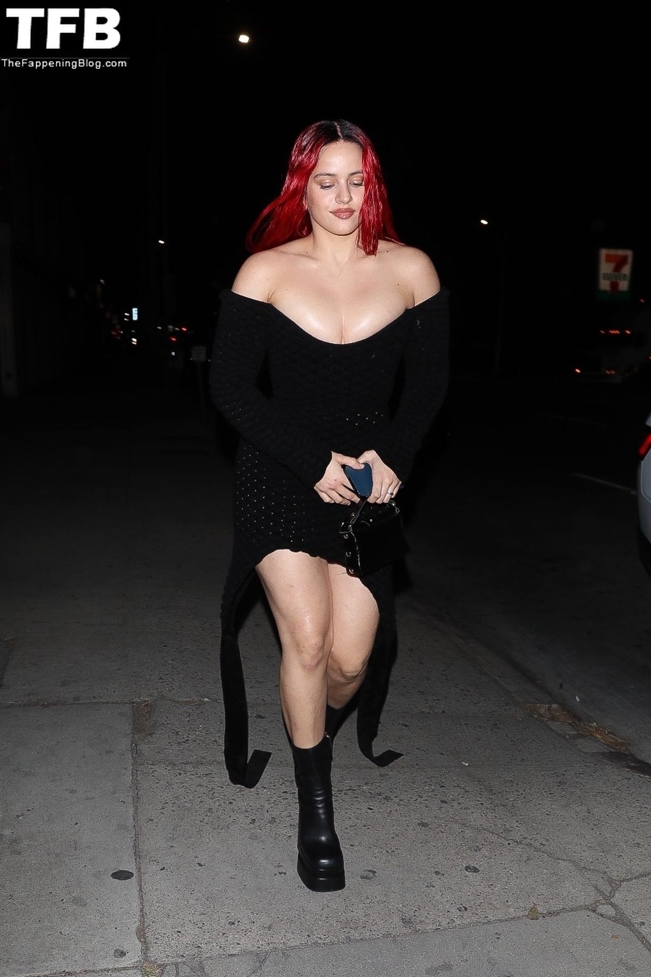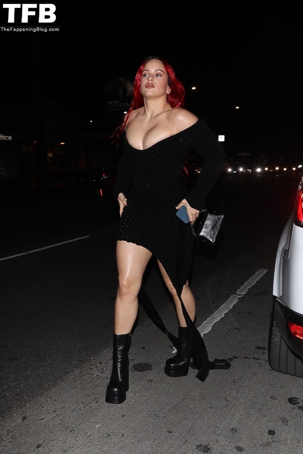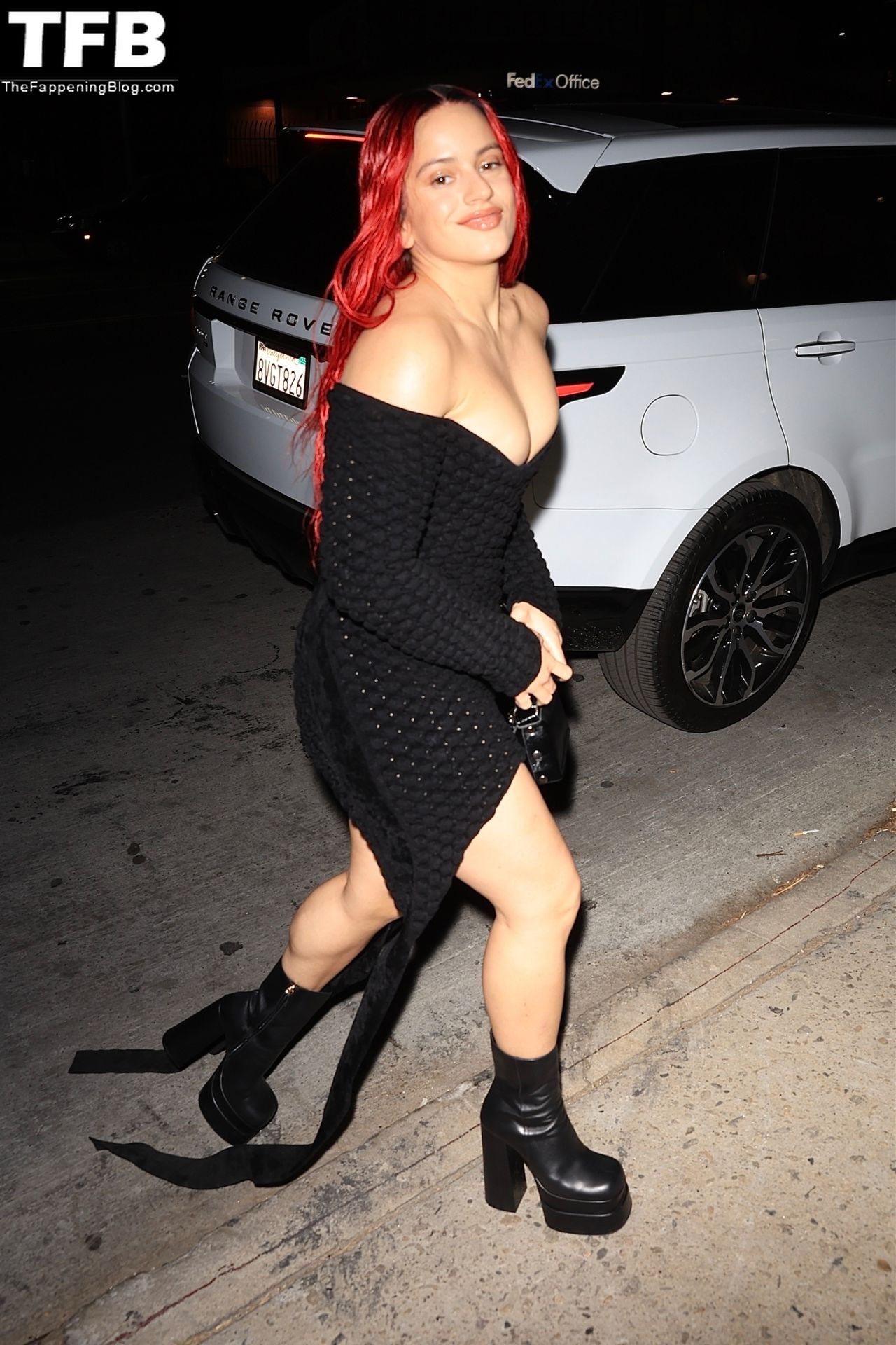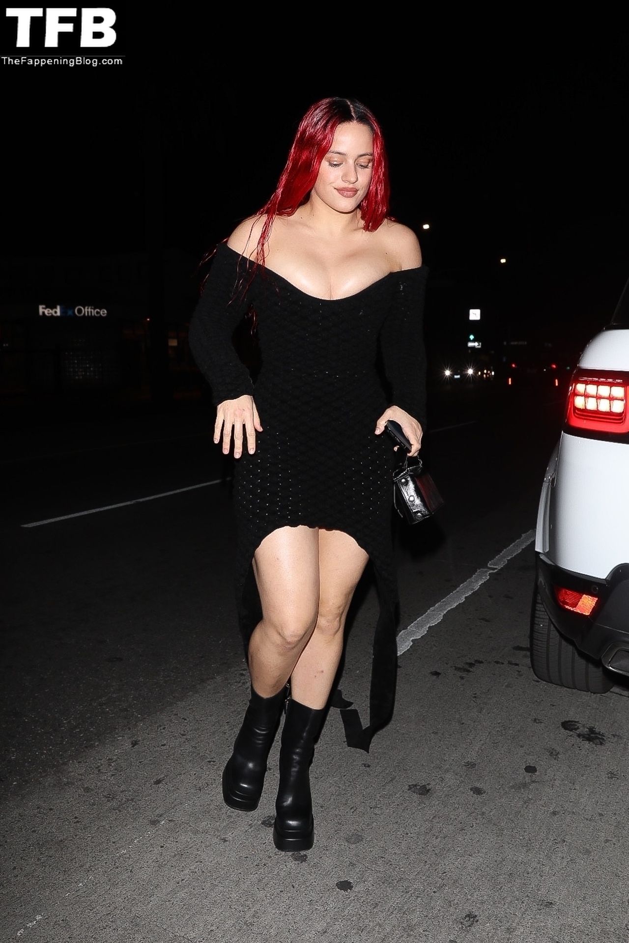 Una cantante recién pelirroja, Rosalia, debuta su audaz nuevo look mientras cena en Horses en Hollywood, 27/02/2022.