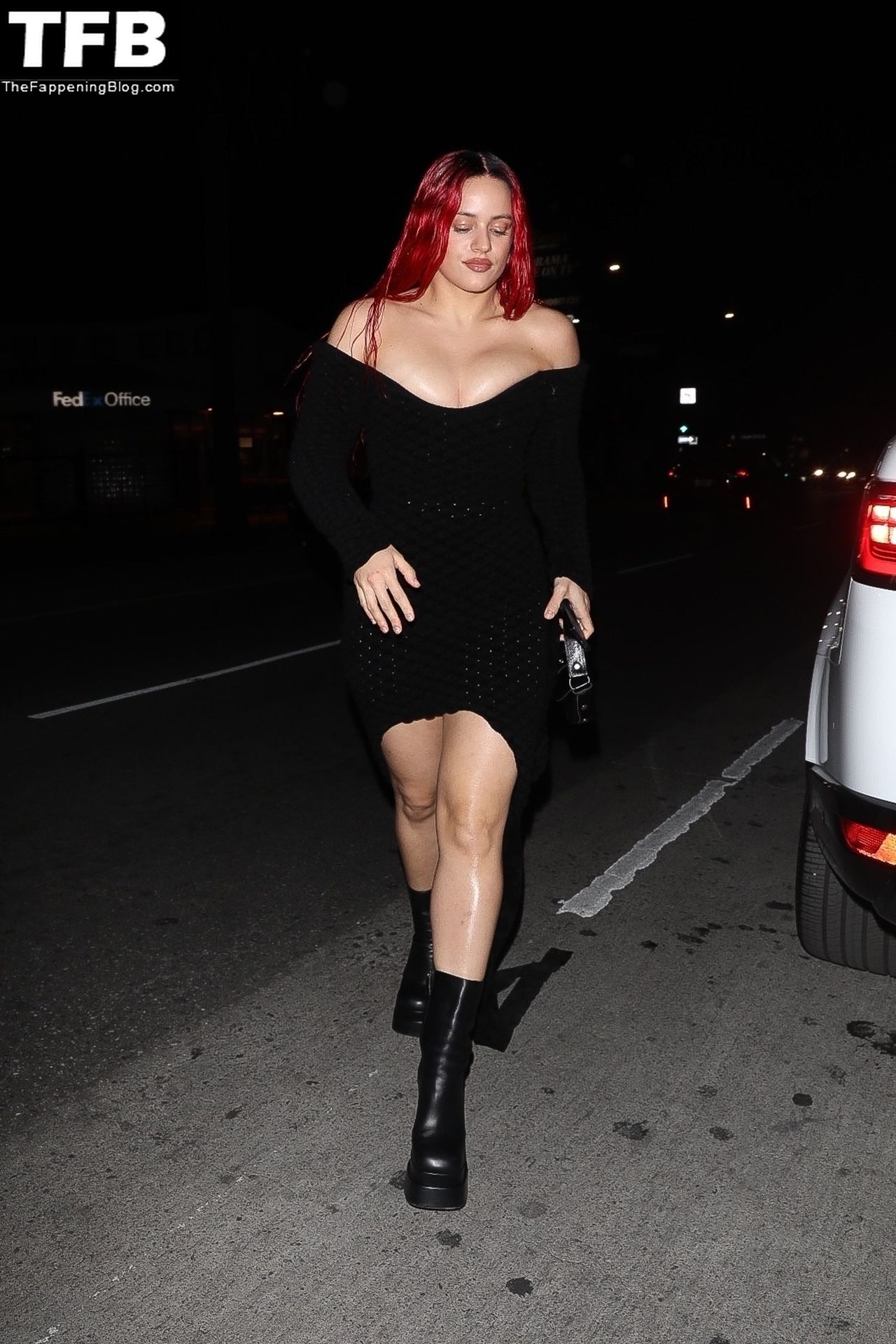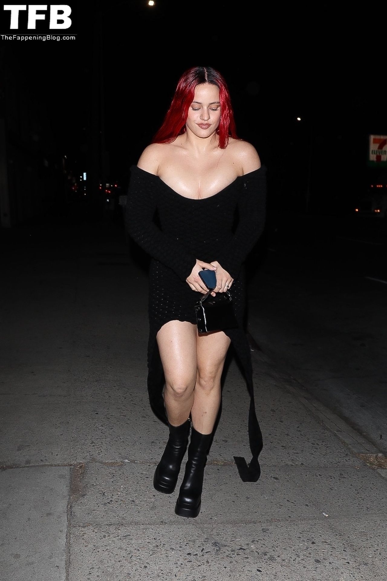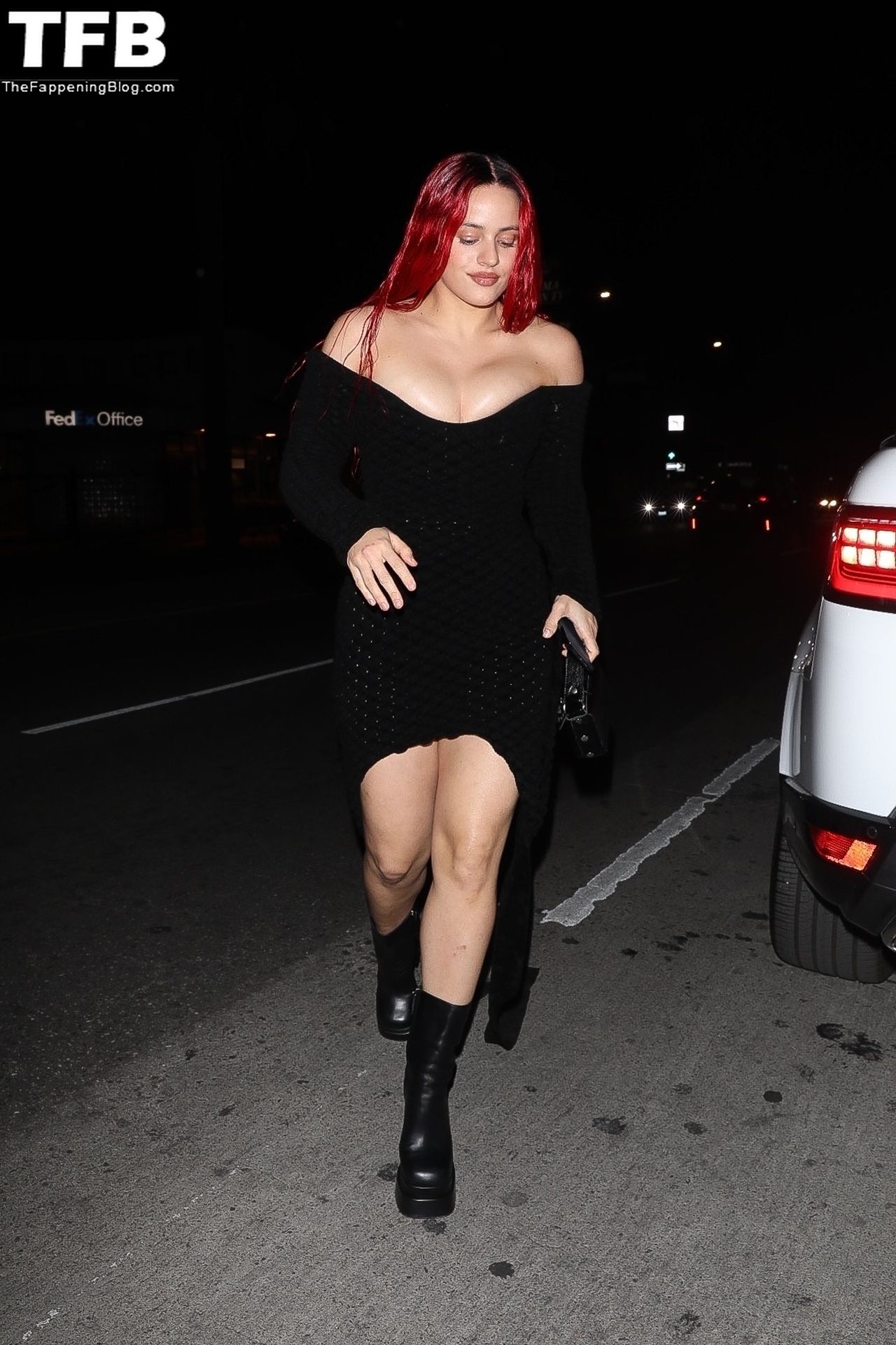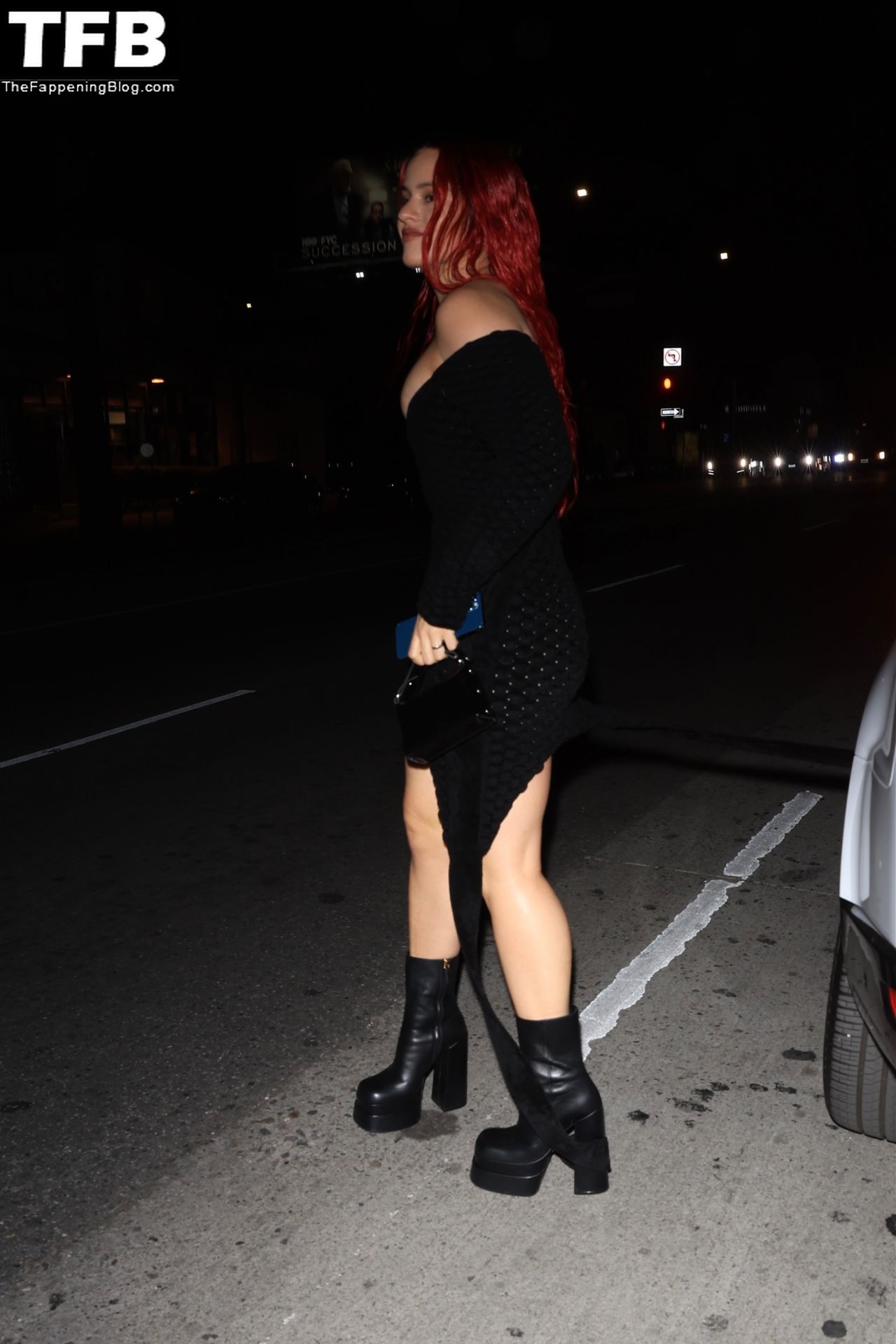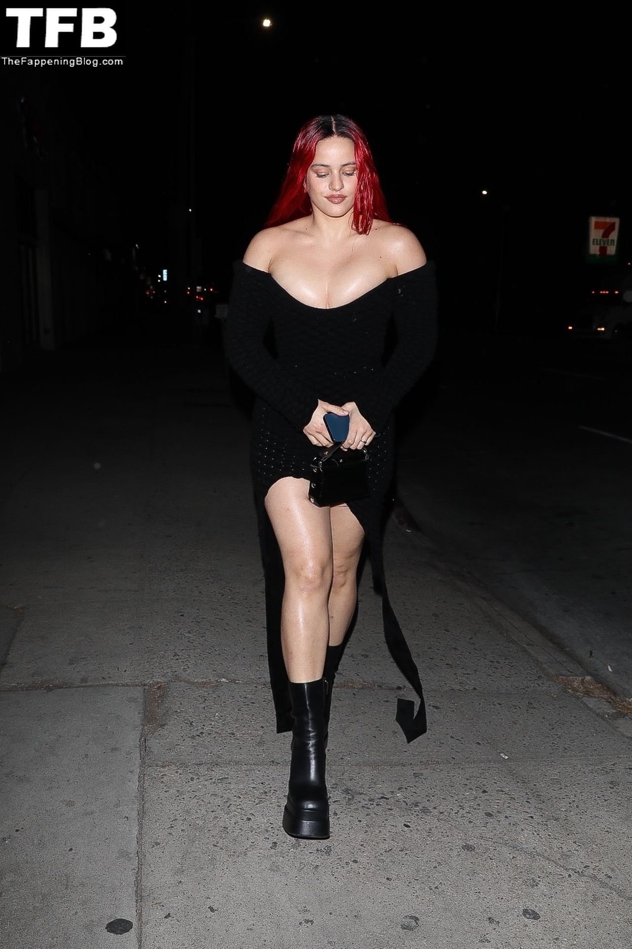 Una cantante recién pelirroja, Rosalia, debuta su audaz nuevo look mientras cena en Horses en Hollywood, 27/02/2022.