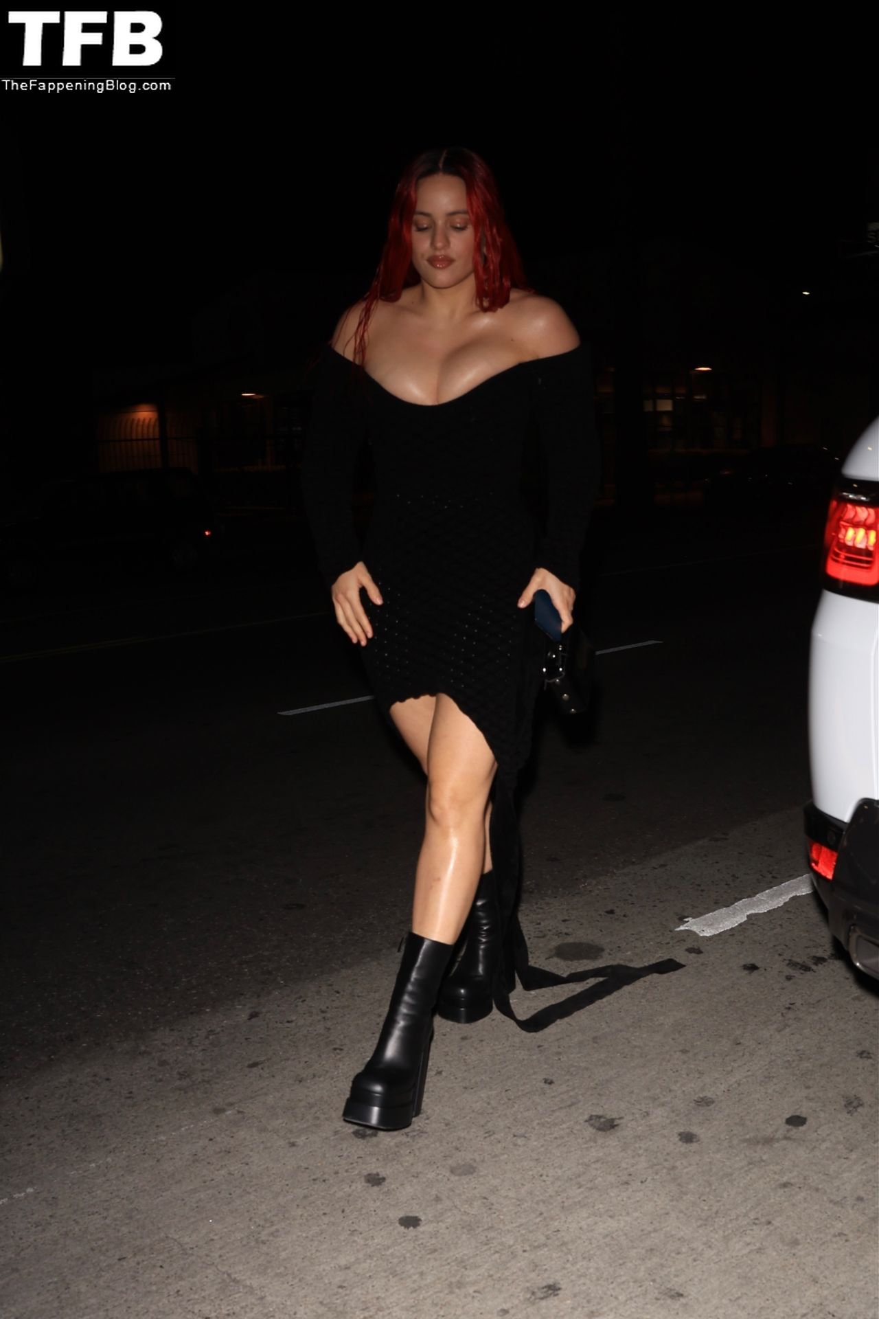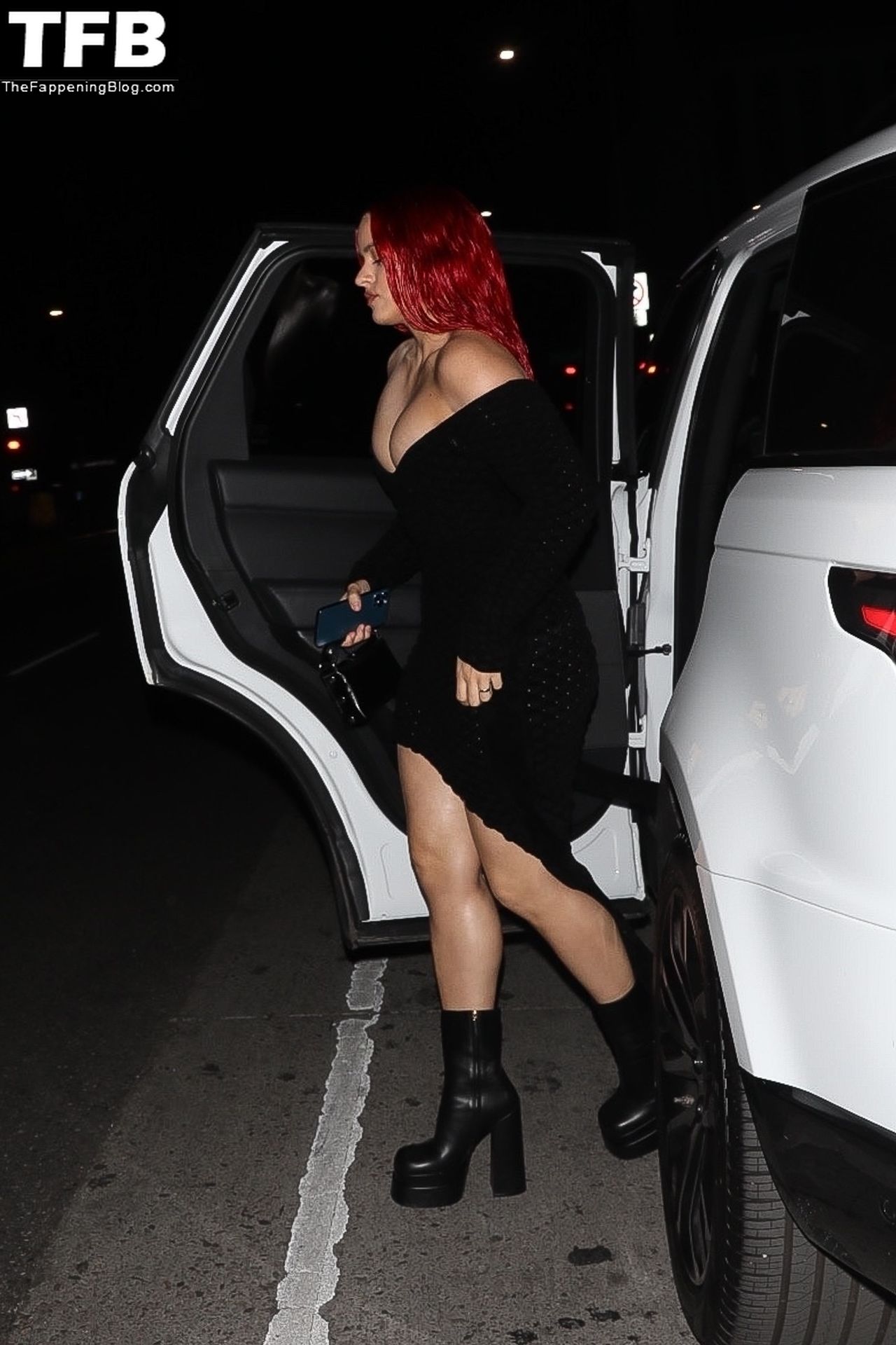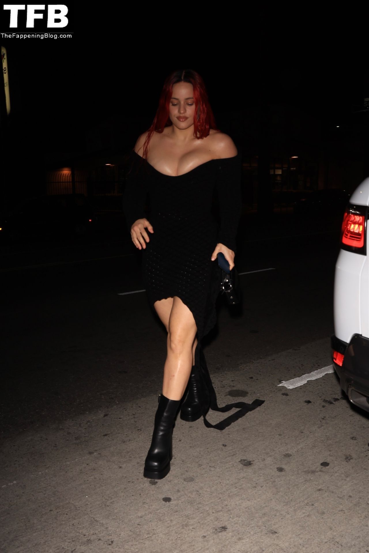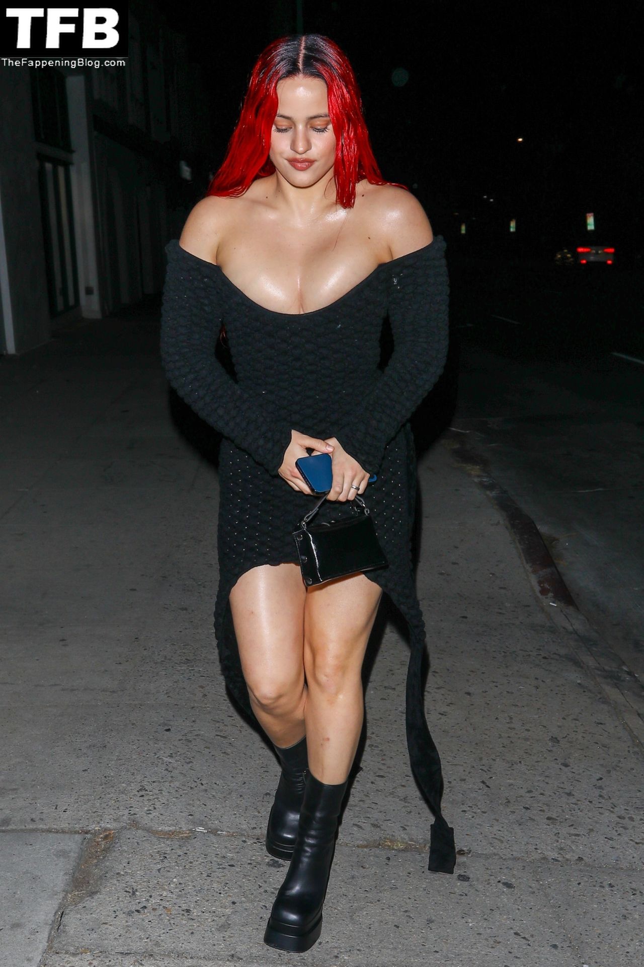 Una cantante recién pelirroja, Rosalia, debuta su audaz nuevo look mientras cena en Horses en Hollywood, 27/02/2022.
