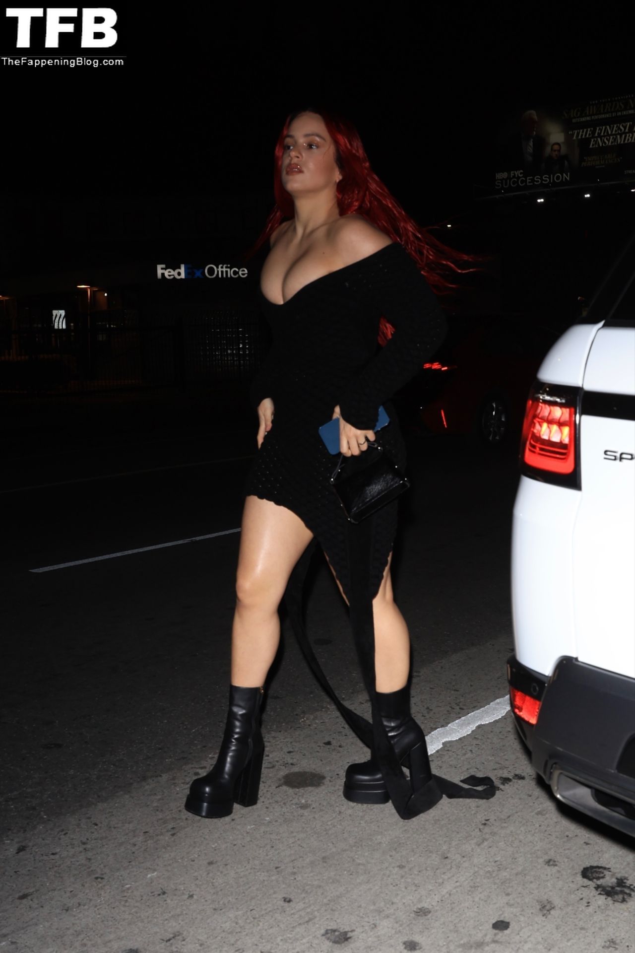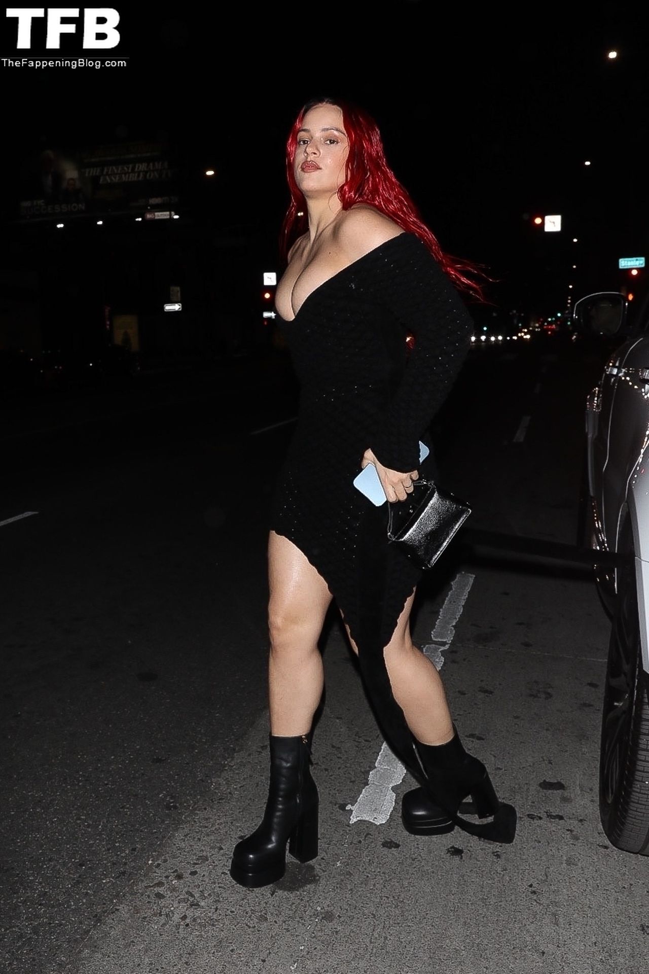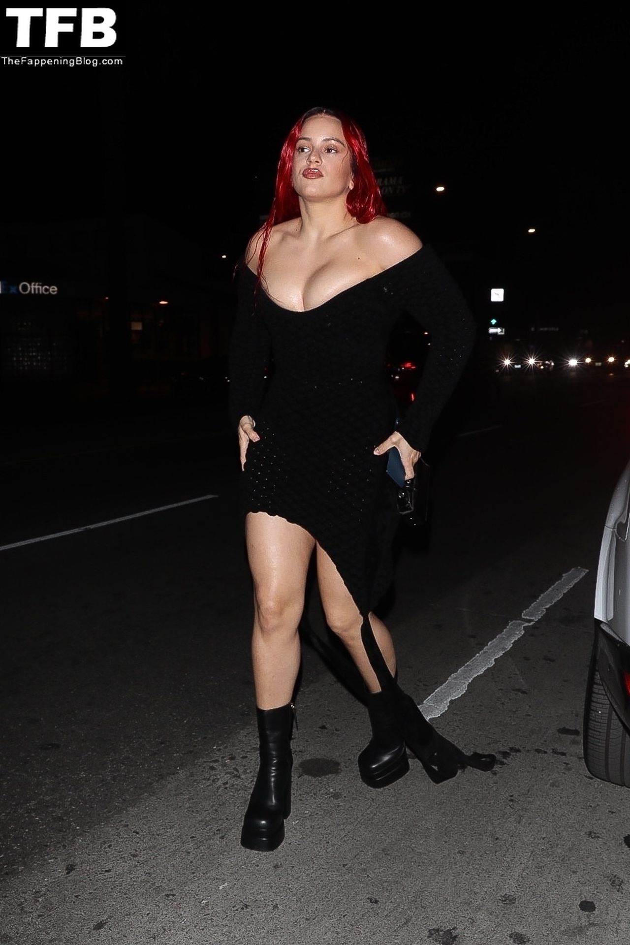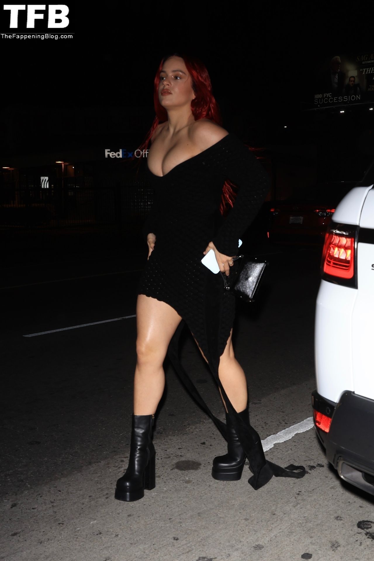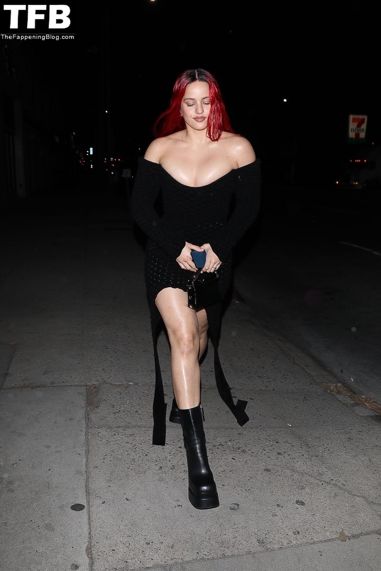 Una cantante recién pelirroja, Rosalia, debuta su audaz nuevo look mientras cena en Horses en Hollywood, 27/02/2022.
