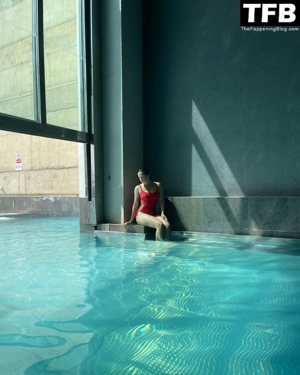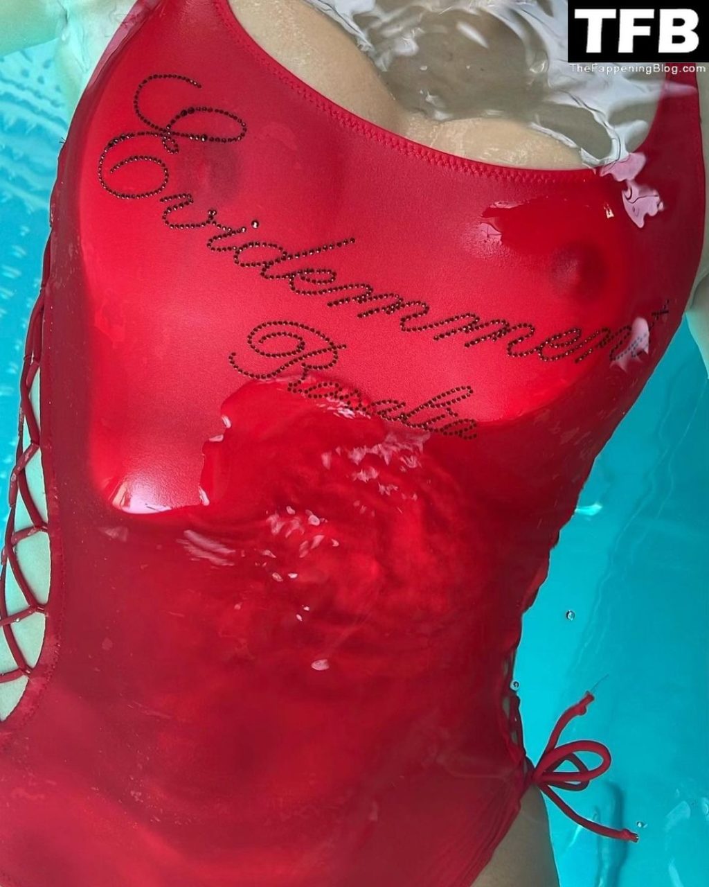La cantante Rosalia muestra sus pezones disfrutando de sus vacaciones en un traje de baño rojo mojado – Instagram, 29/06/2022.