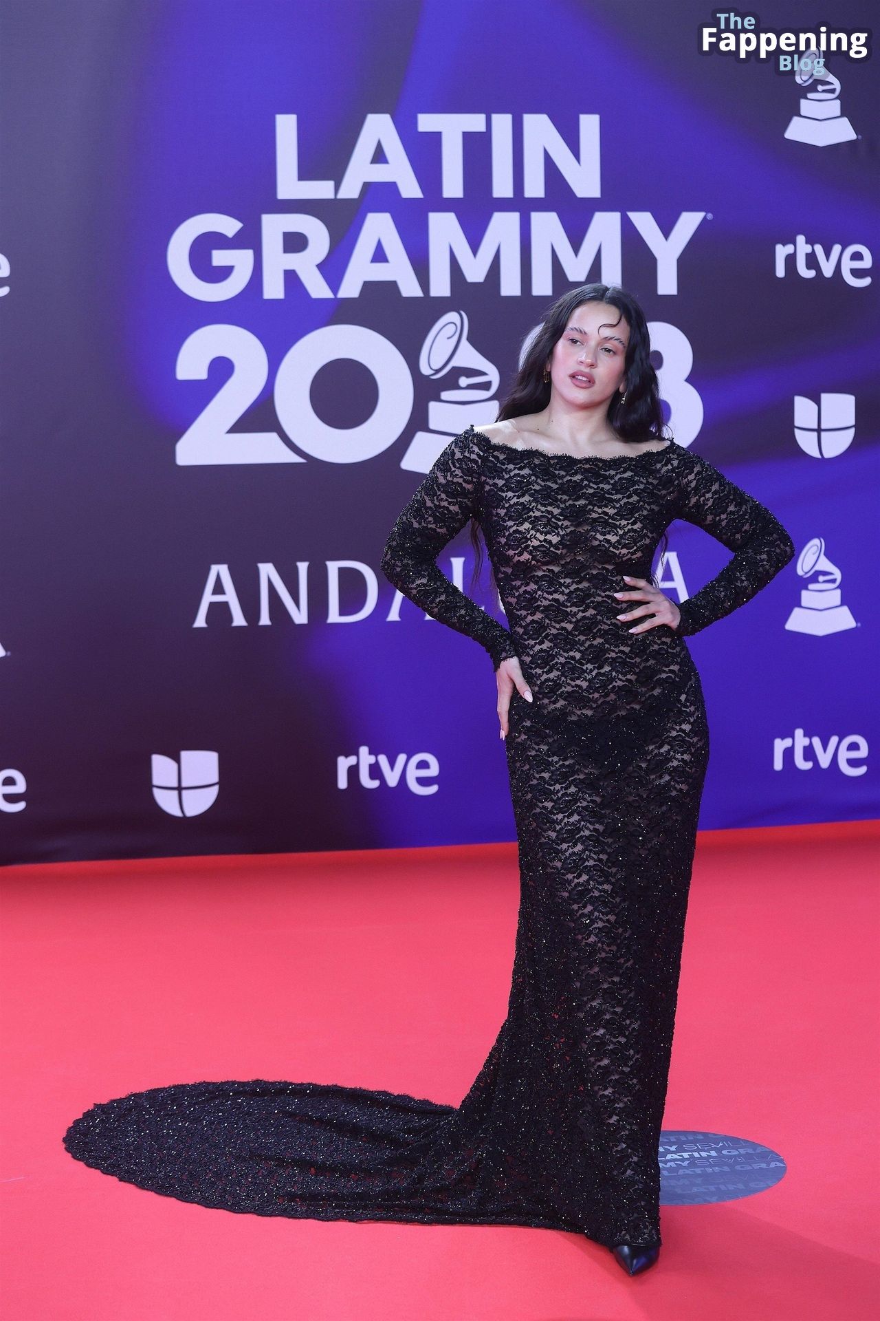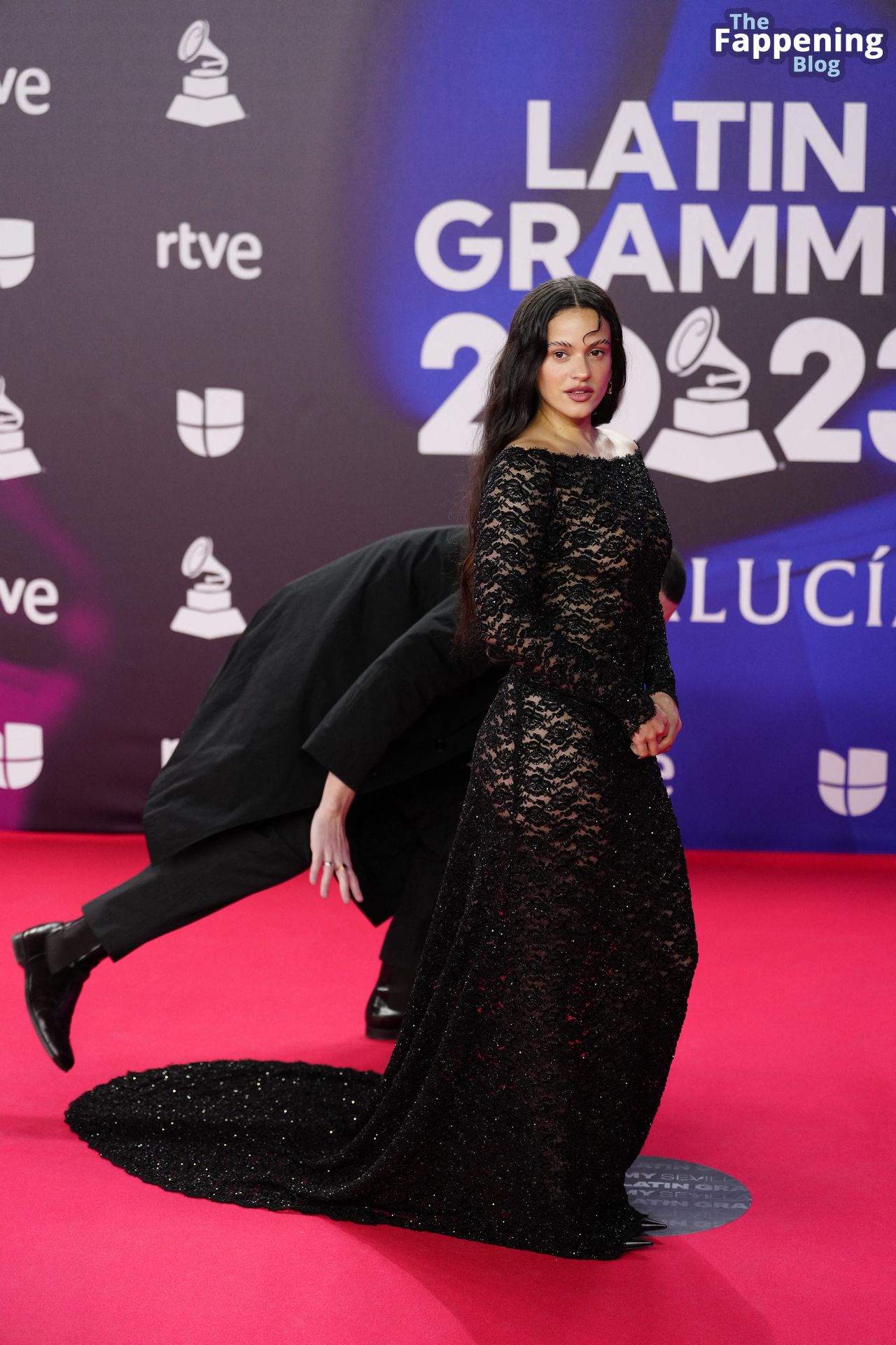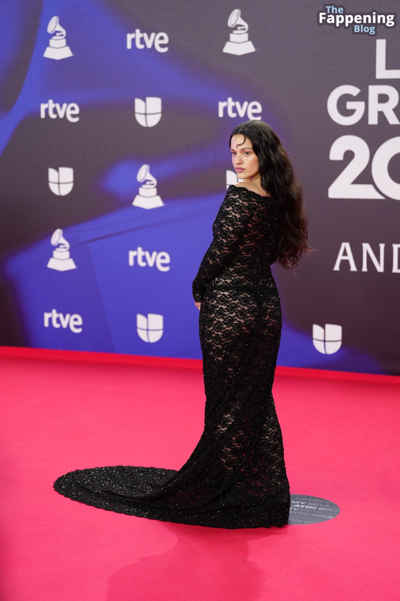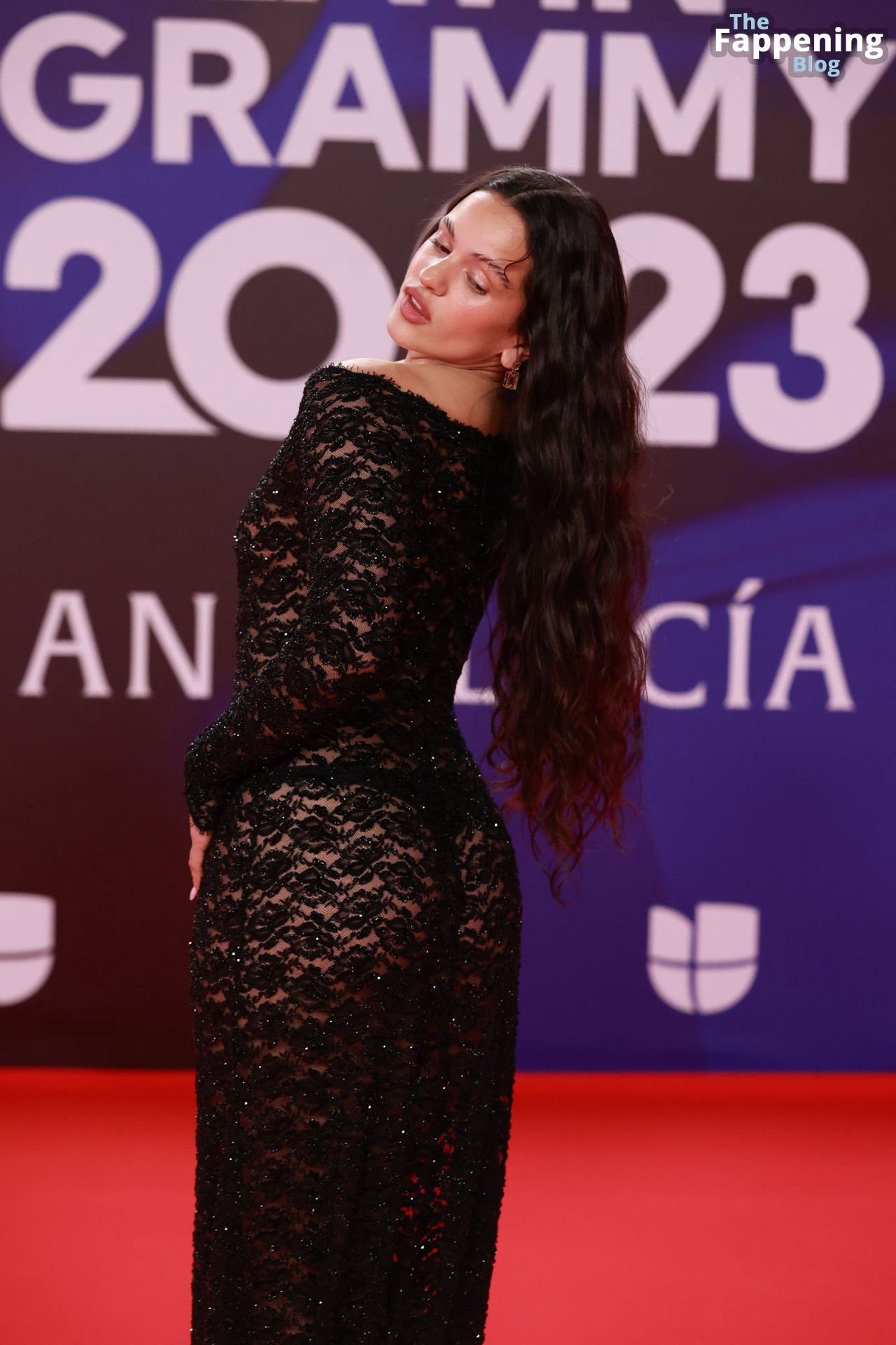 Prepárate para sorprenderte con el estilo impresionante de Rosalia en los Latin GRAMMY Awards en Sevilla. Ella luce un vestido negro transparente que deja ver una sexy tanga negra y un trasero absolutamente espectacular. La sesión de fotos en la entrada del evento estaba llena de celebridades mostrando su presencia.