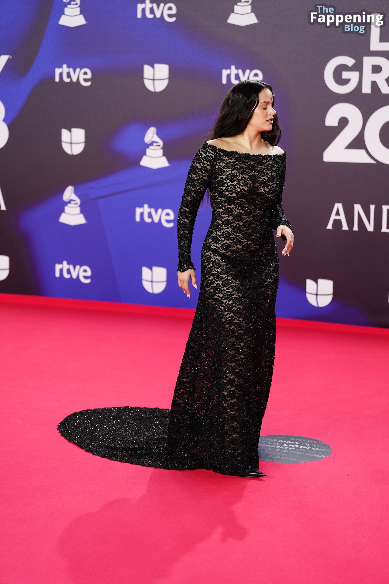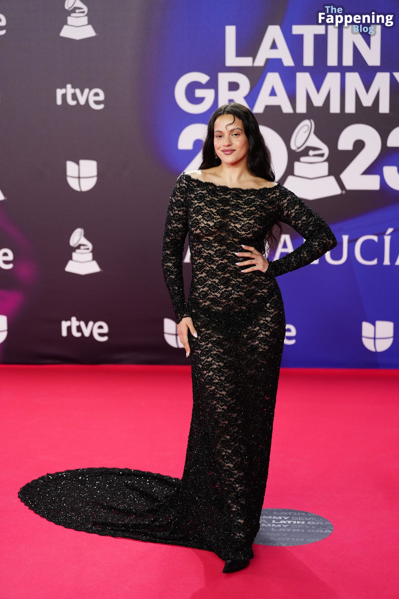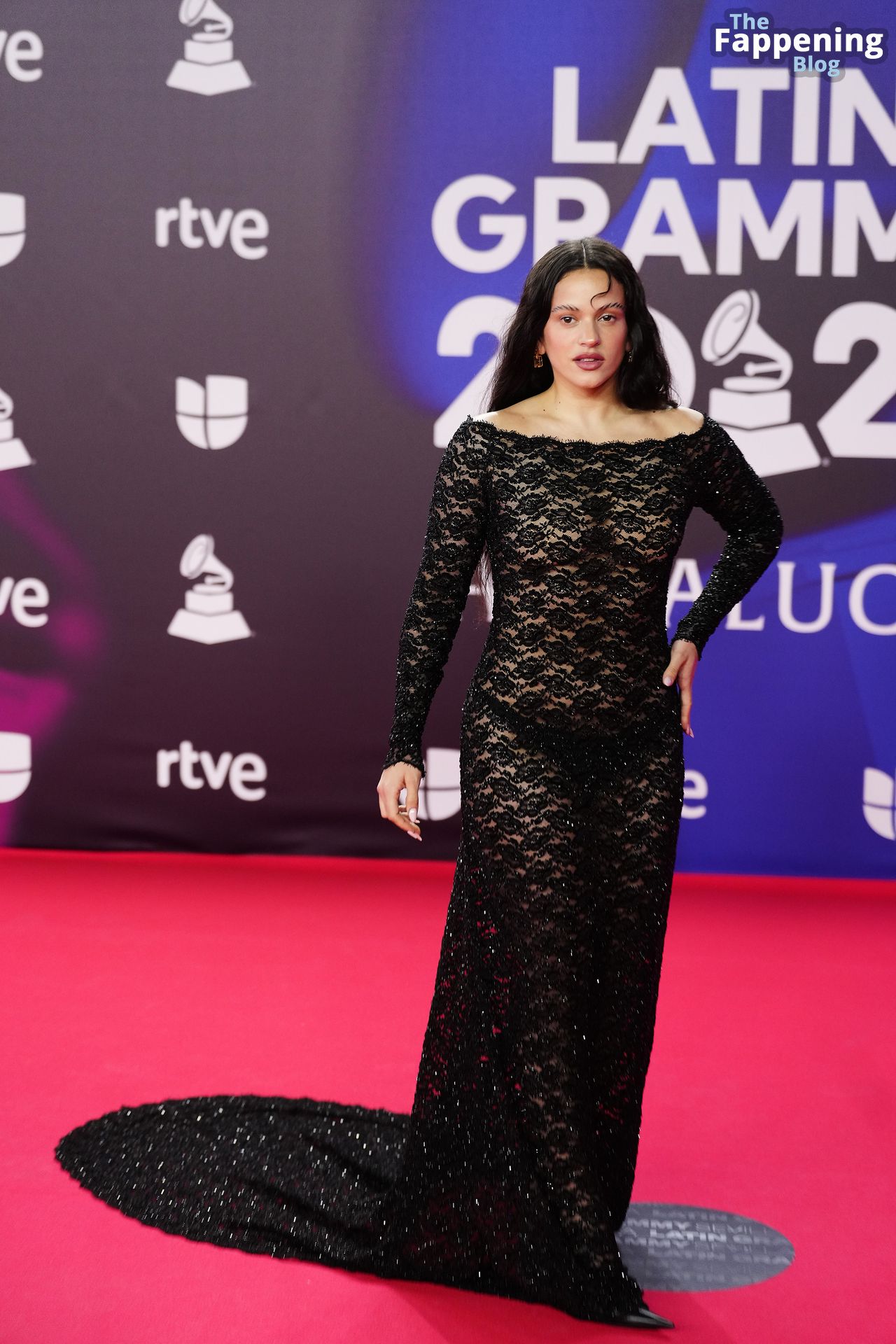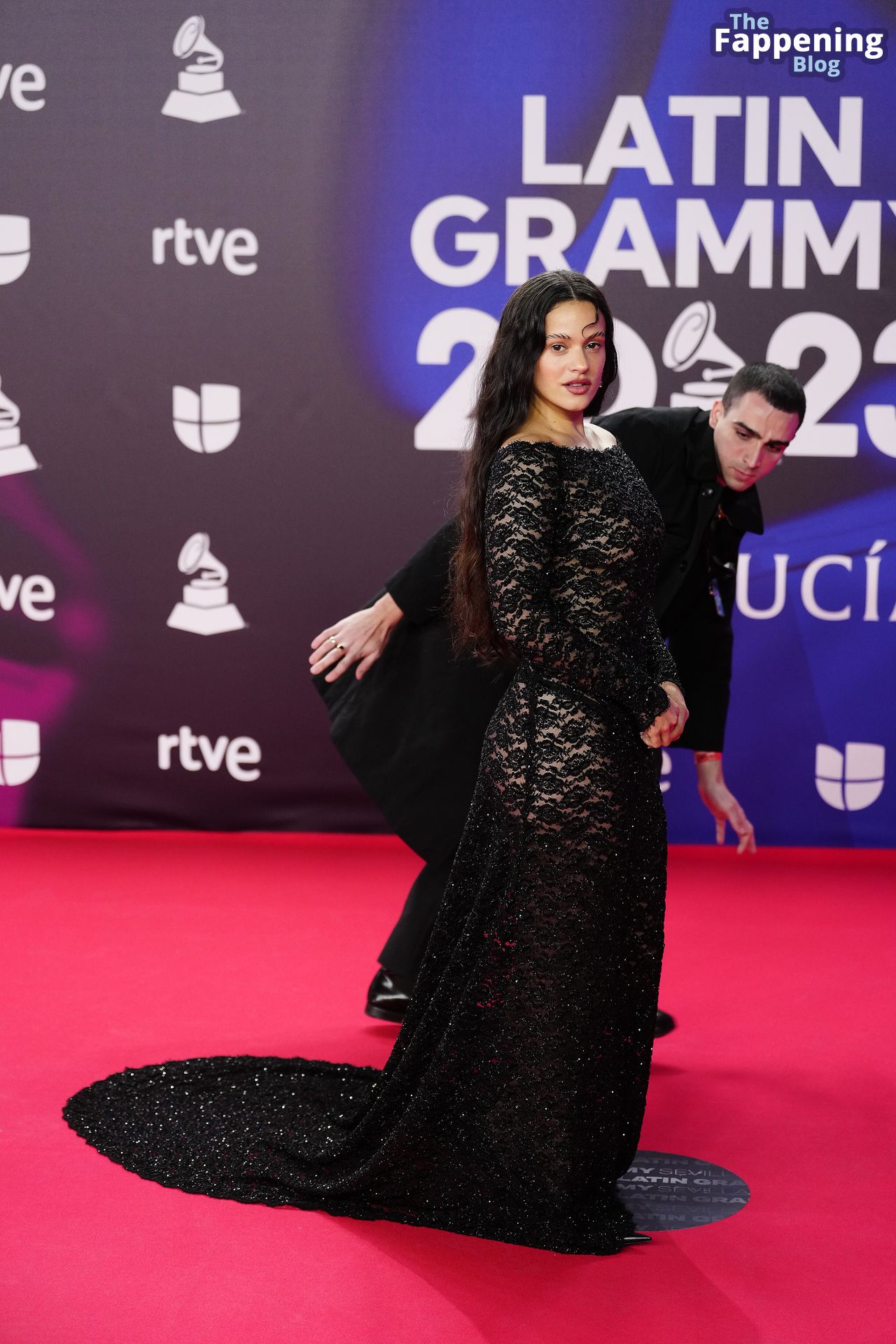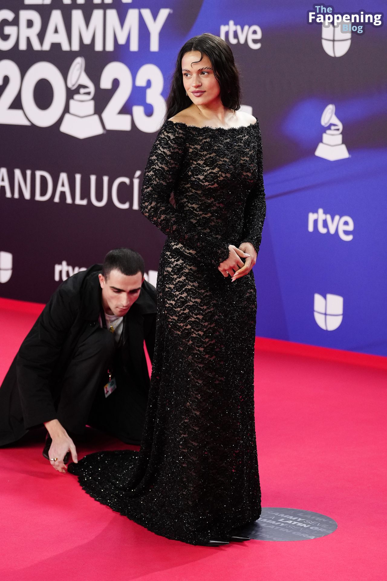 Prepárate para sorprenderte con el estilo impresionante de Rosalia en los Latin GRAMMY Awards en Sevilla. Ella luce un vestido negro transparente que deja ver una sexy tanga negra y un trasero absolutamente espectacular. La sesión de fotos en la entrada del evento estaba llena de celebridades mostrando su presencia.