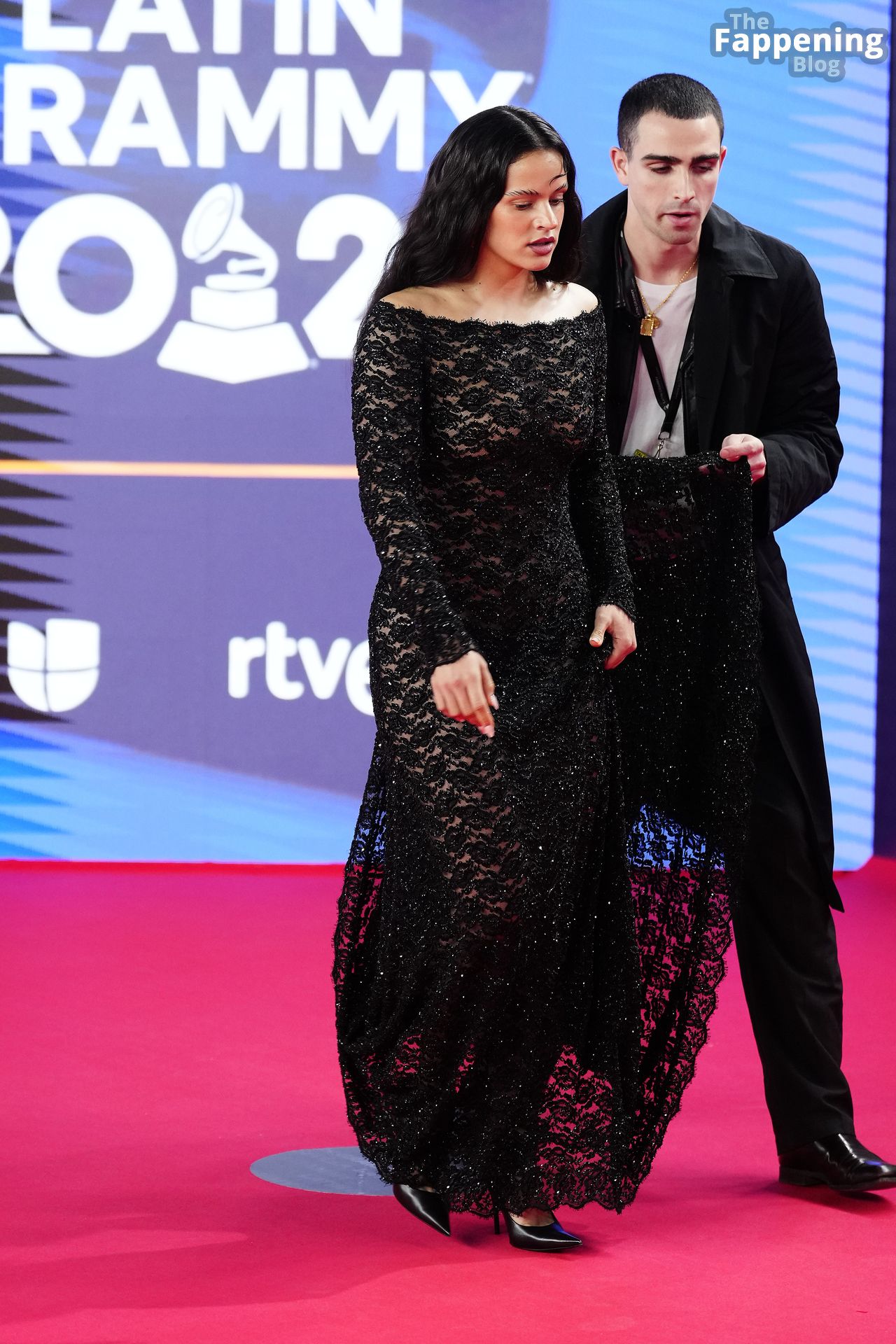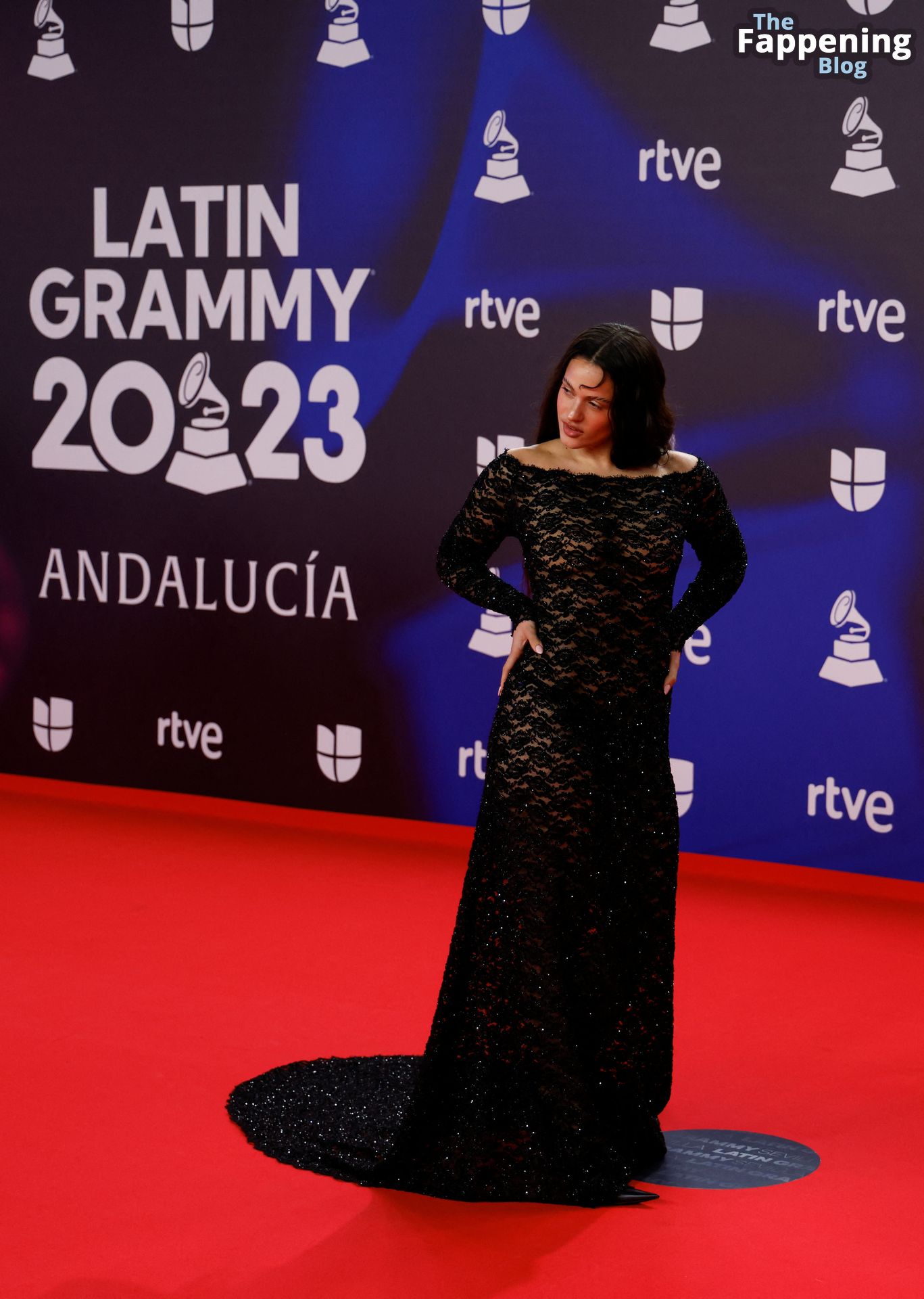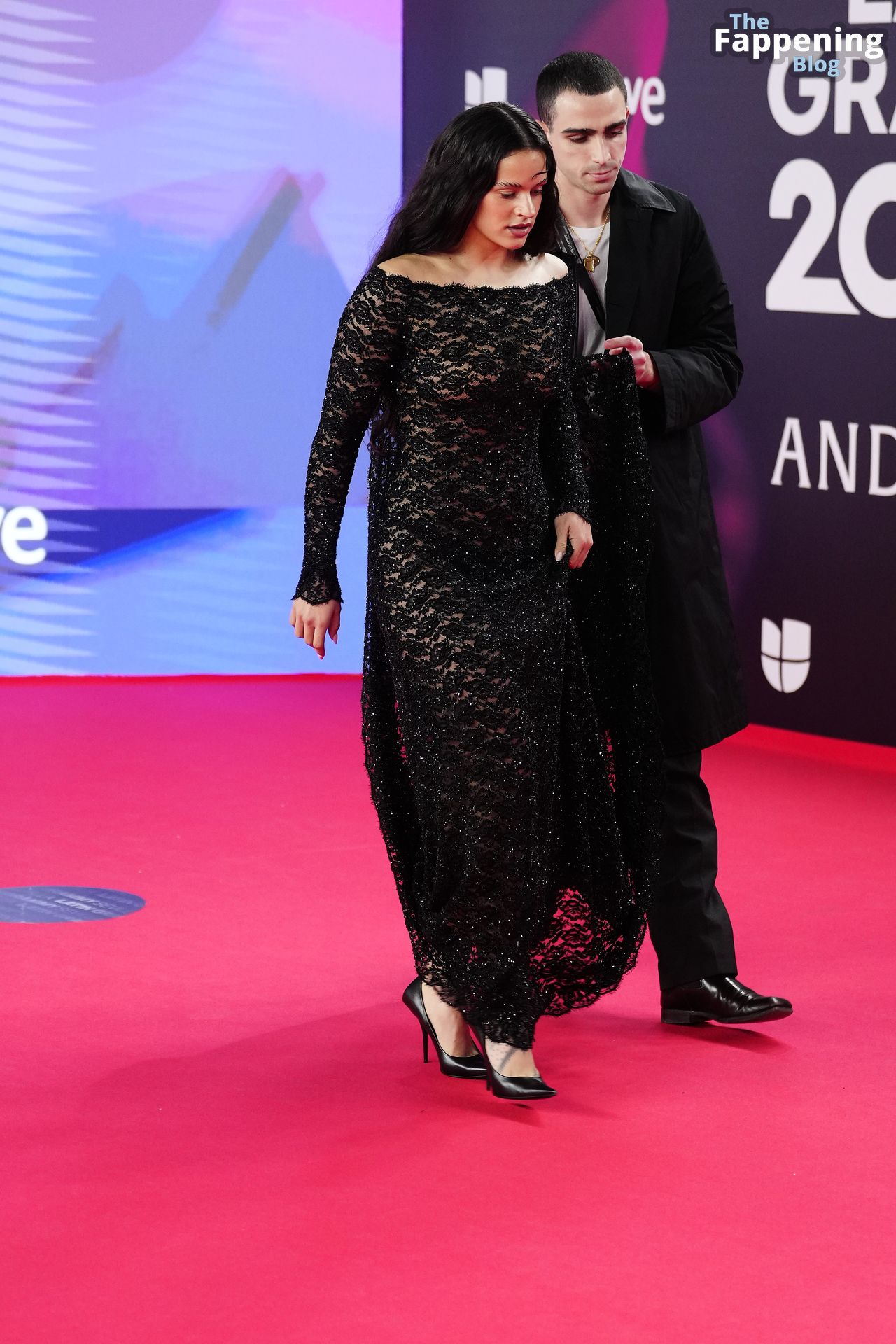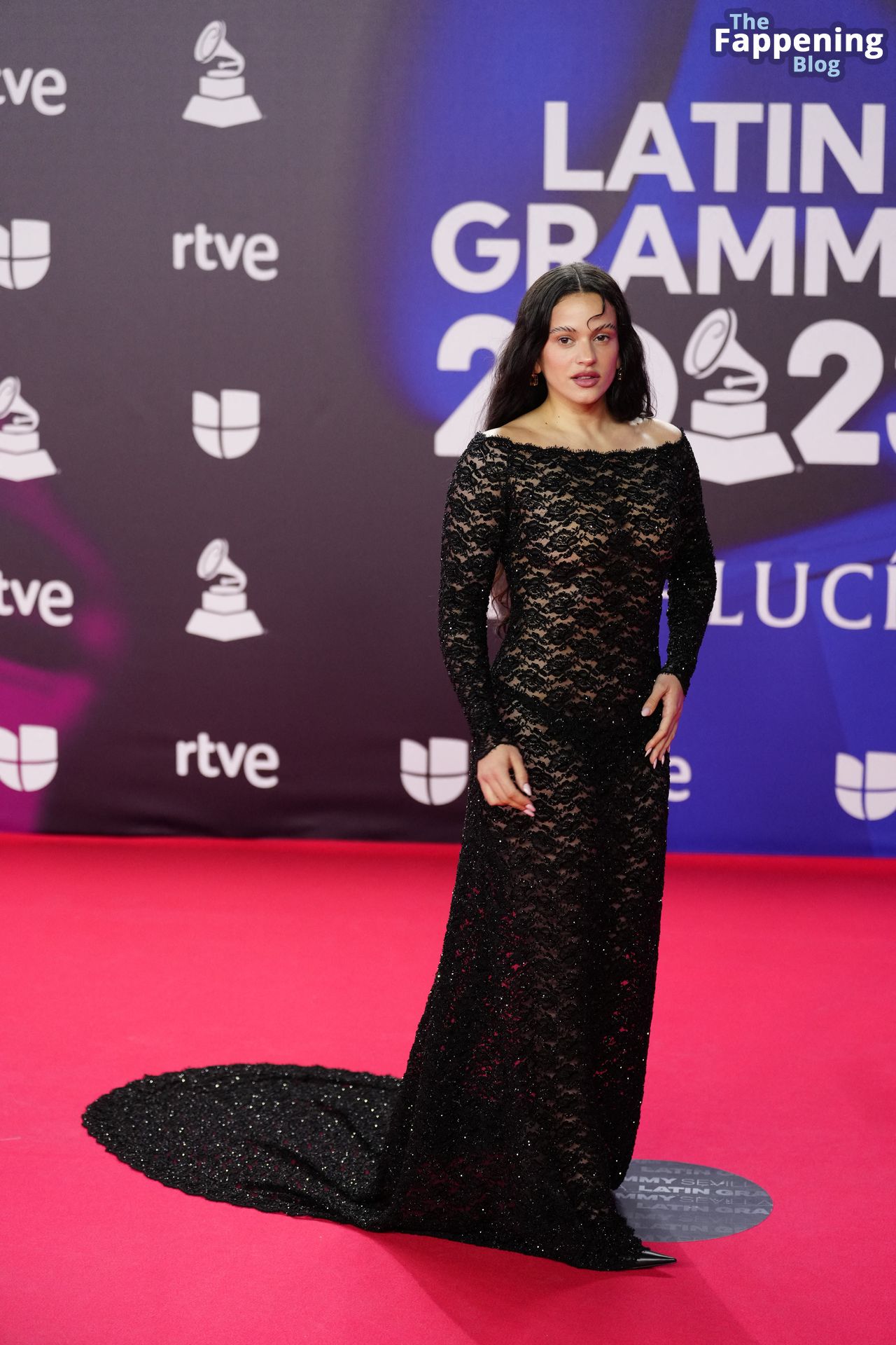 Prepárate para sorprenderte con el estilo impresionante de Rosalia en los Latin GRAMMY Awards en Sevilla. Ella luce un vestido negro transparente que deja ver una sexy tanga negra y un trasero absolutamente espectacular. La sesión de fotos en la entrada del evento estaba llena de celebridades mostrando su presencia.
