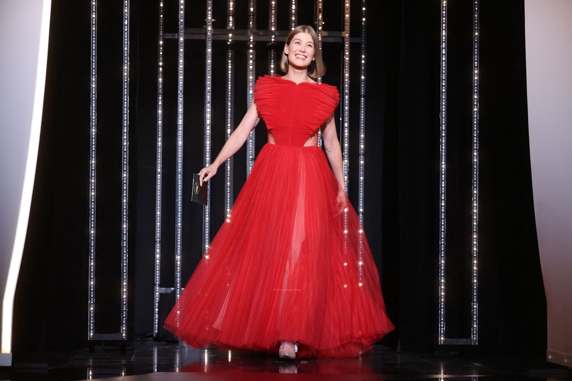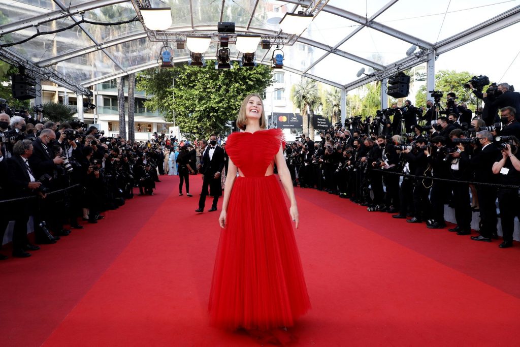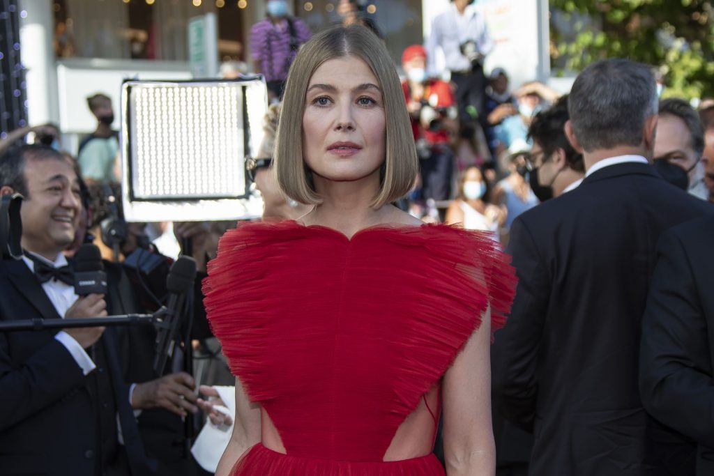La actriz Rosamund Pike llega a la ceremonia de clausura y proyección de la película “OSS 117: Alerte Rouge en Afrique Noire” (OSS 117: Desde África con amor) en Cannes, Francia, 18/07/2021.