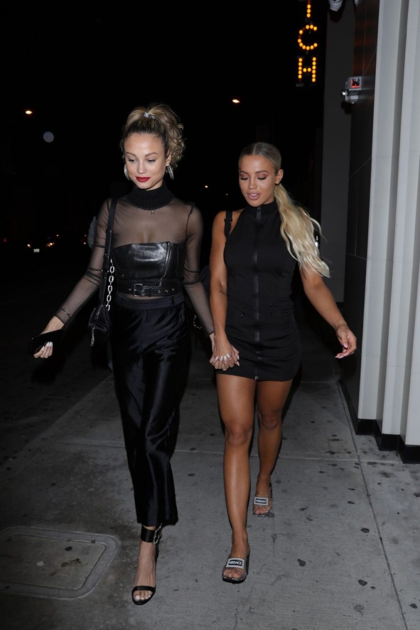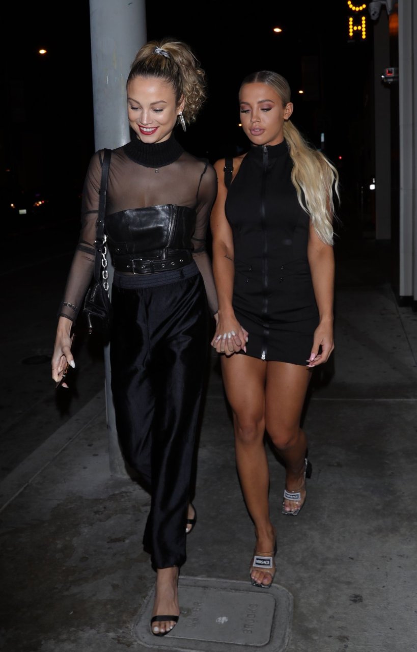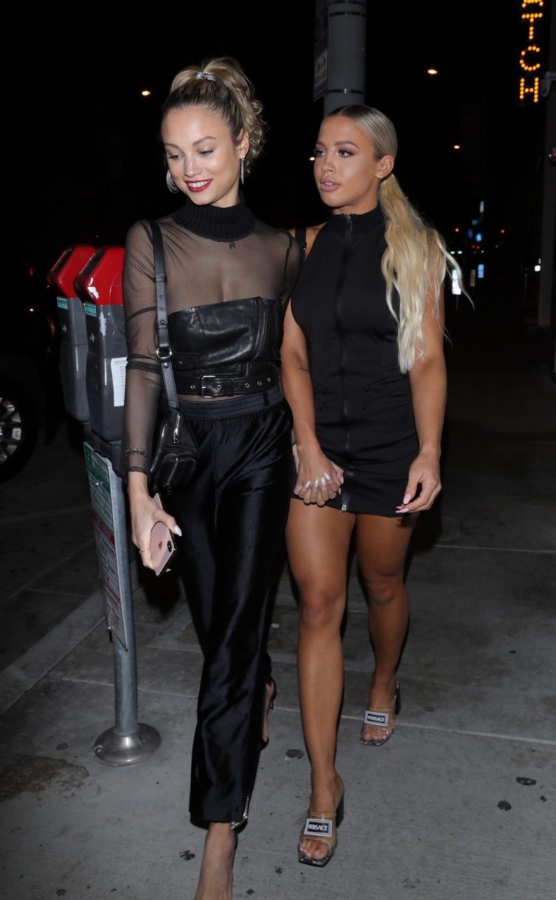 La modelo fitness australiana Tammy Hembrow llevó un vestido negro corto y zapatos transparentes de Versace para una noche de chicas en Catch LA con Rose Bertram en West Hollywood, 17/03/2019.